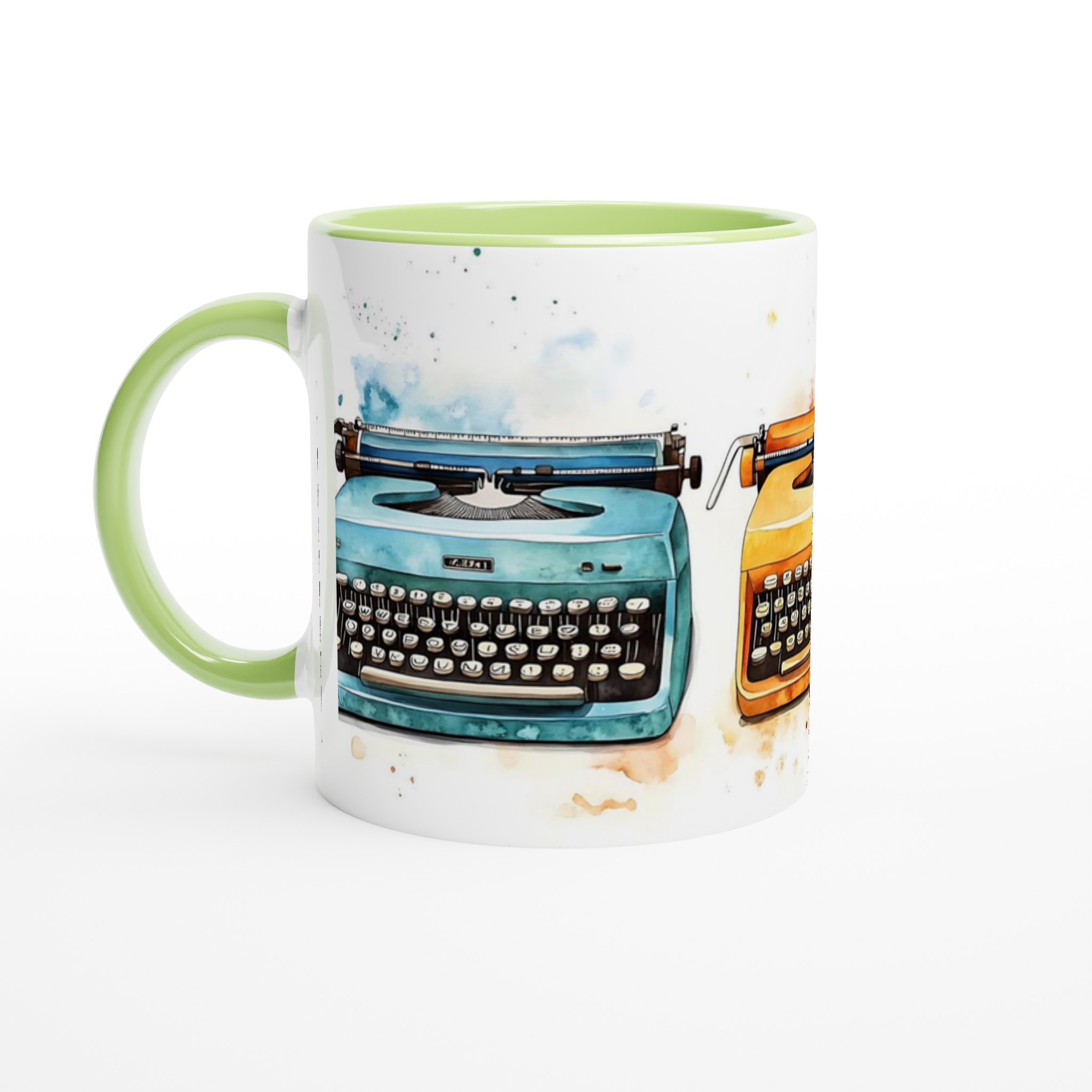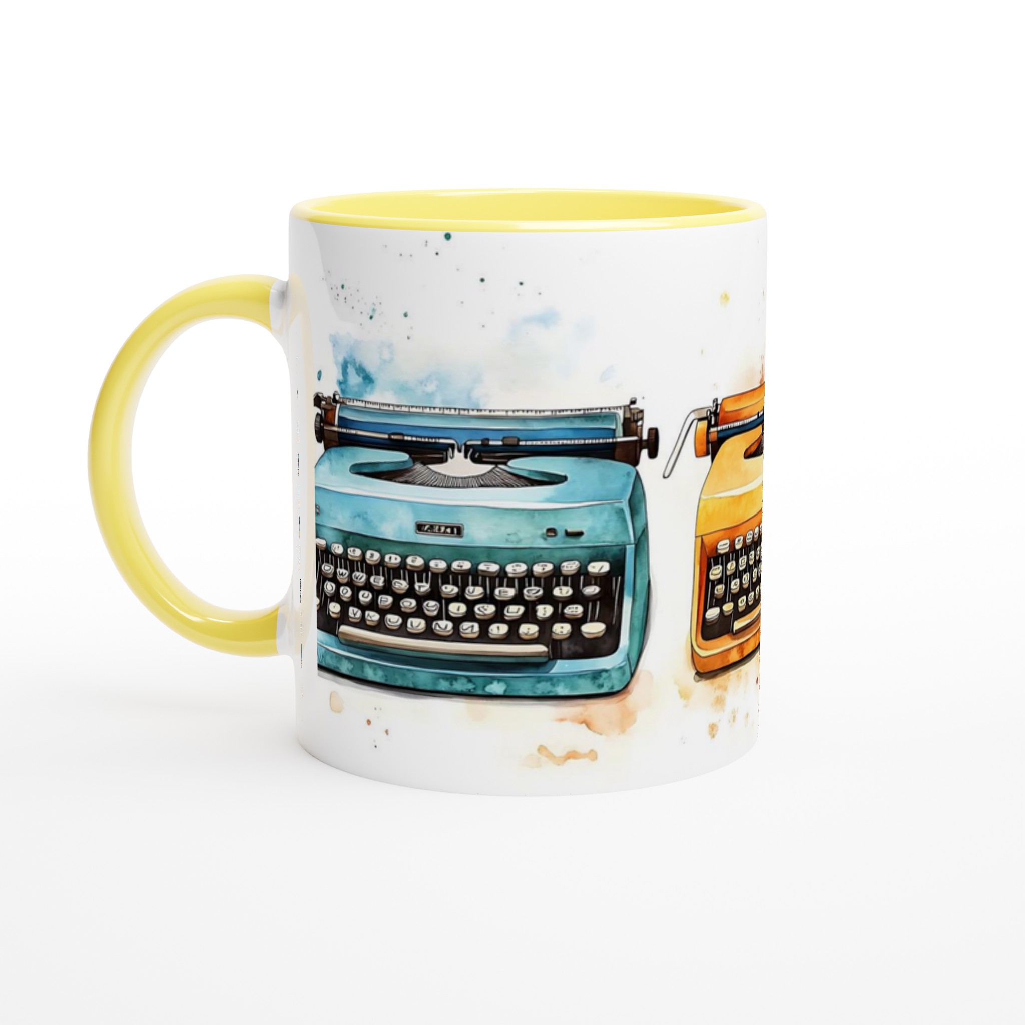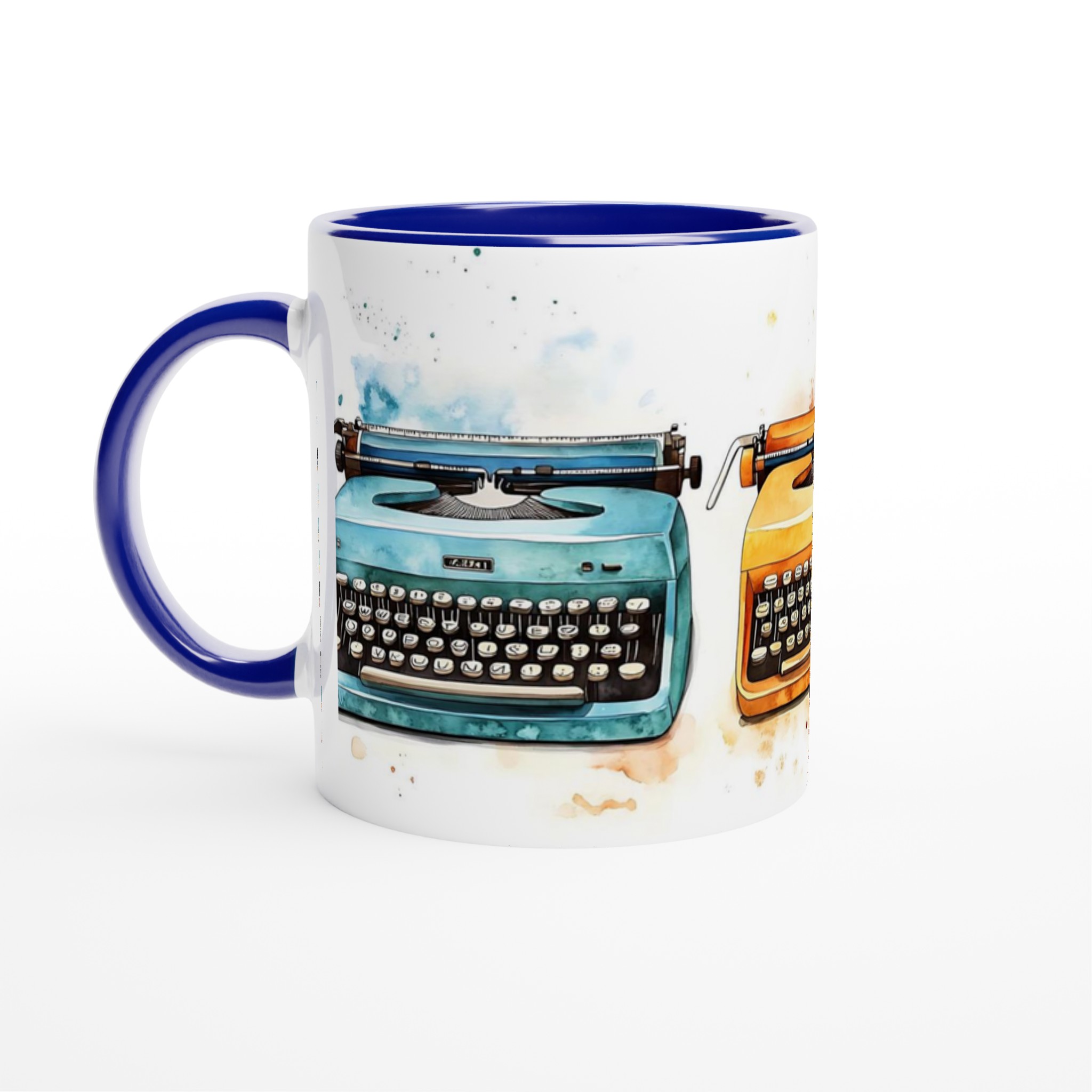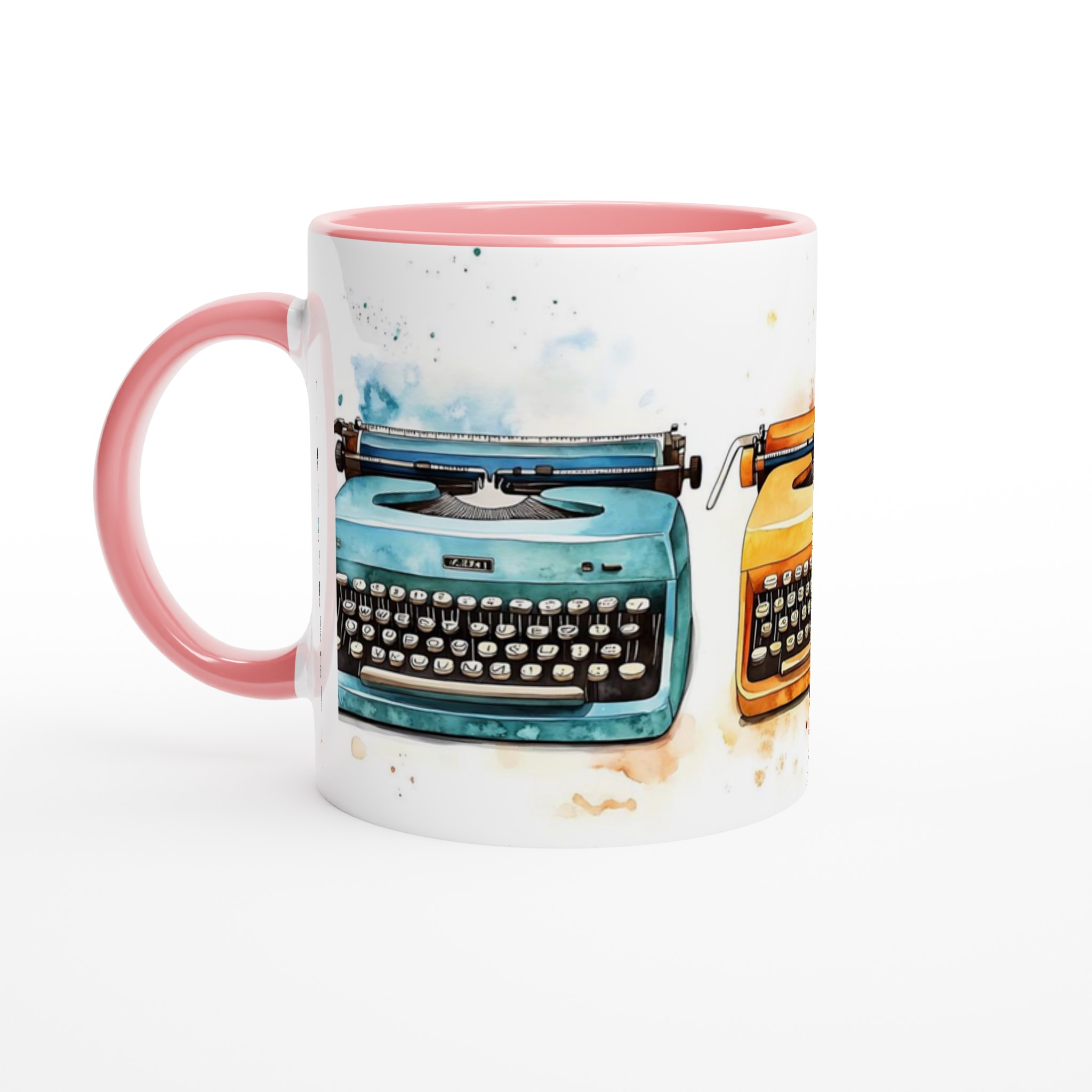 Kliv tillbaka i tiden med en touch av färg med denna charmiga keramiska mugg, som hyllar den klassiska skrivmaskinens tidlösa design. Den här stilrena muggen blir snabbt en vardagsfavorit, perfekt för morgonkaffet, kvällens varma choklad eller när du bara vill njuta av en kopp te. Med sitt unika, akvarellinspirerade tryck av retro skrivmaskiner i livfulla toner blir varje klunk en liten konstupplevelse.