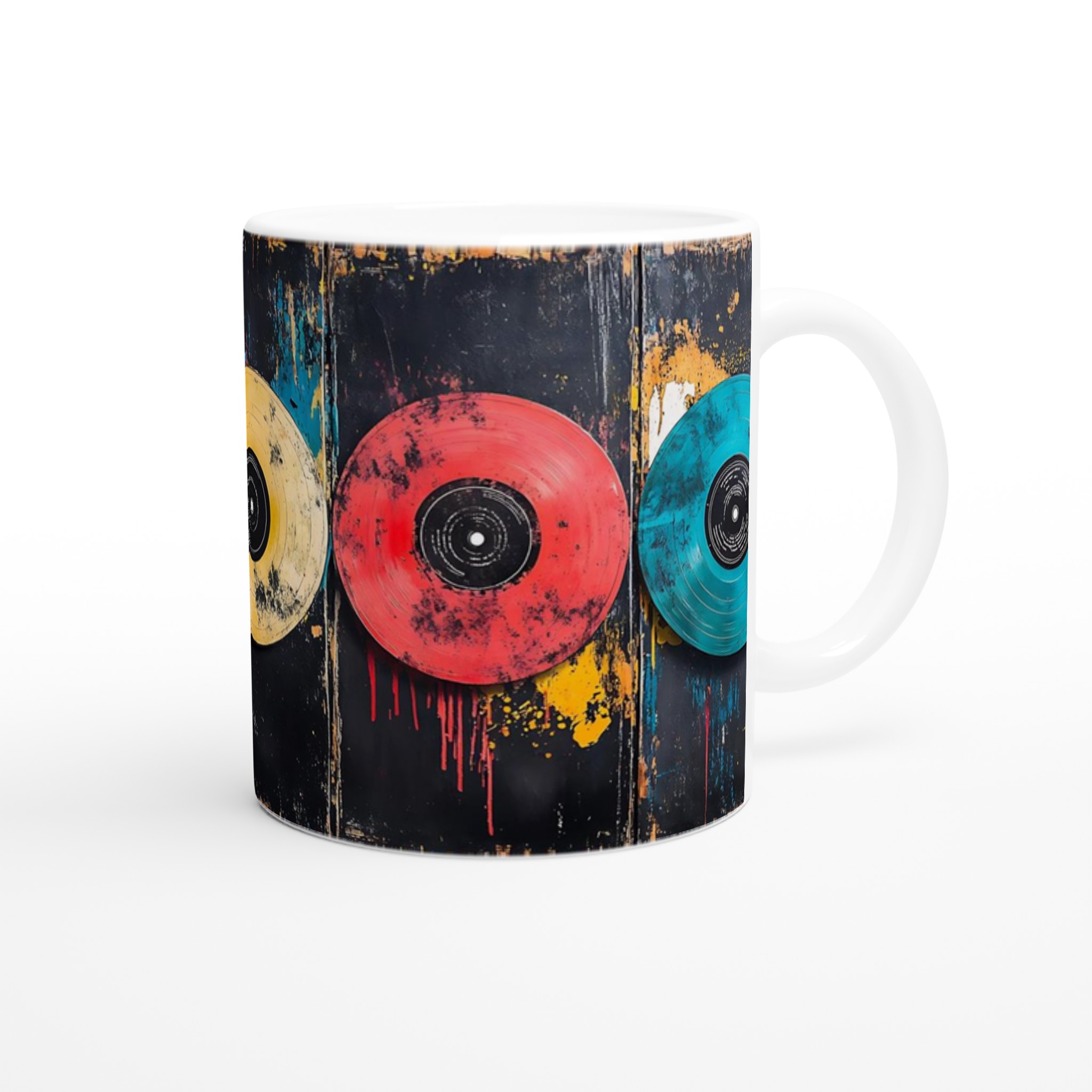 Ge din dag en injektion av nostalgi och färg med vår unika Keramiska Vinylmugg. Inspirerad av de ikoniska vinylskivorna och den råa energin från gatukonst, är denna mugg en hyllning till både musikälskare och de som uppskattar en touch av edgy design. Dess robusta charm och färgstarka, slitna detaljer gör varje klunk till en upplevelse, perfekt för morgonkaffet, kvällens varma choklad eller när du bara vill njuta av en kopp te. Trycket framhävs med klara och levande färger, som håller sig fina även efter många turer i mikron och diskmaskinen.