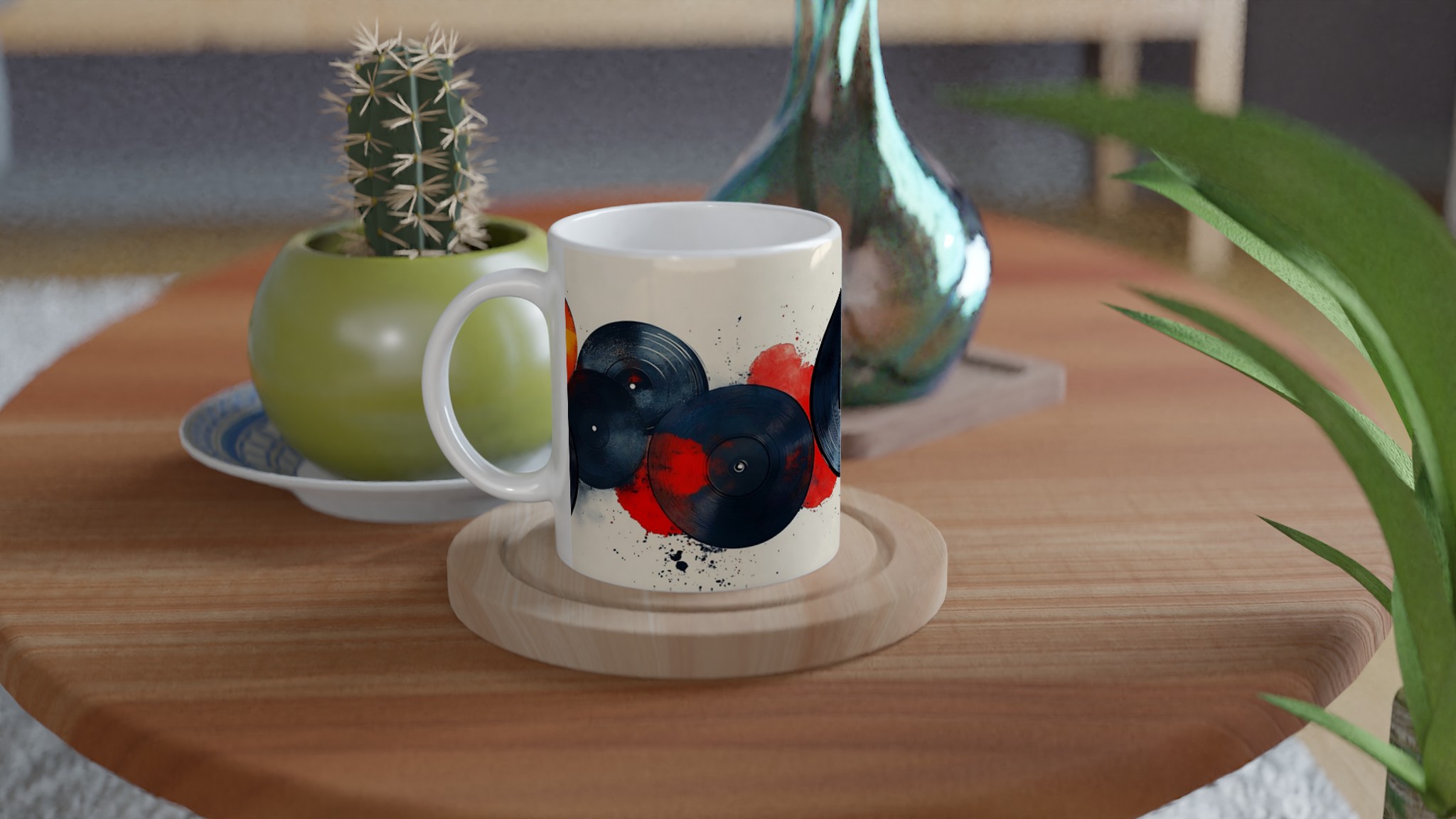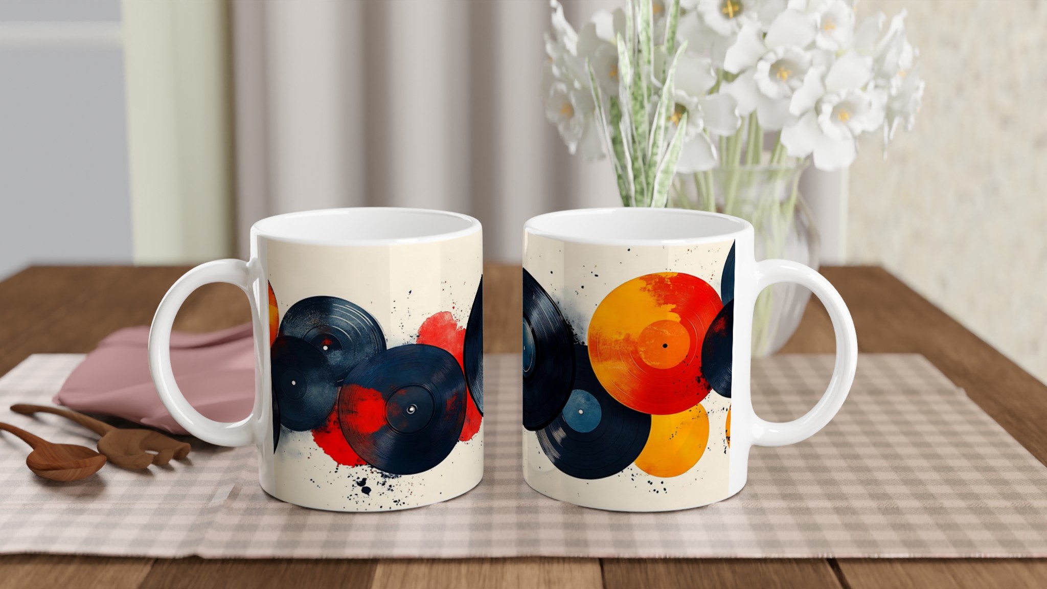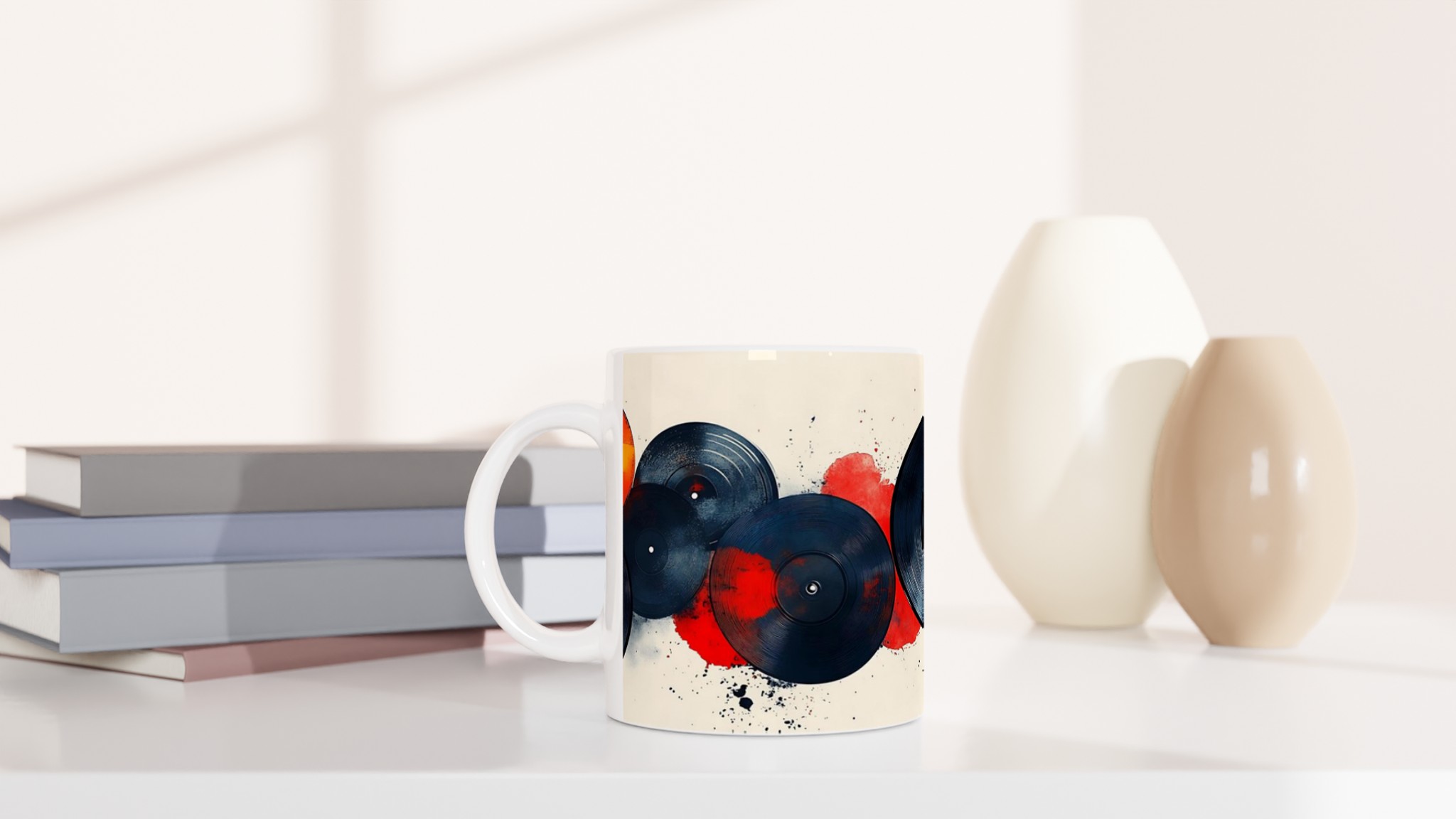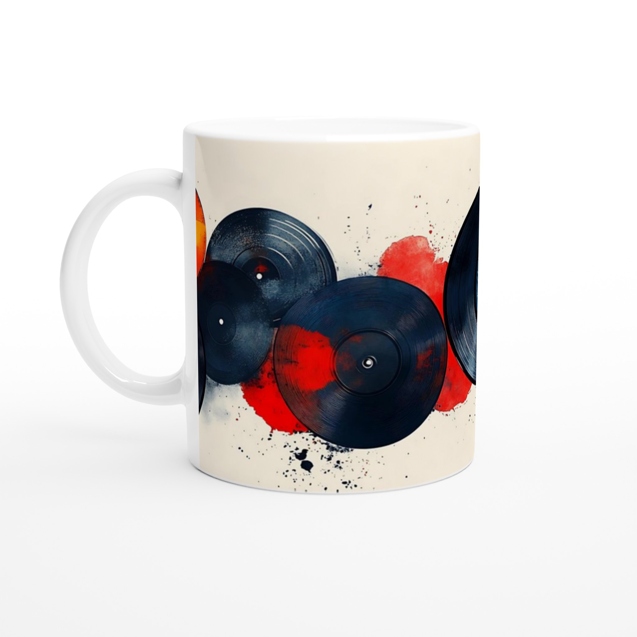 Låt morgonkaffet spinna igång dagen med attityd och färg. Vår premium 11 oz keramiska mugg förvandlar varje klunk till en hyllning till vintage vinyl och modern konst. Med inspirerande rytmer och ett retroestetik som tillför personlighet till din köksbänk blir den en självklar favorit för musikälskare, kreatörer och trendspanare.
