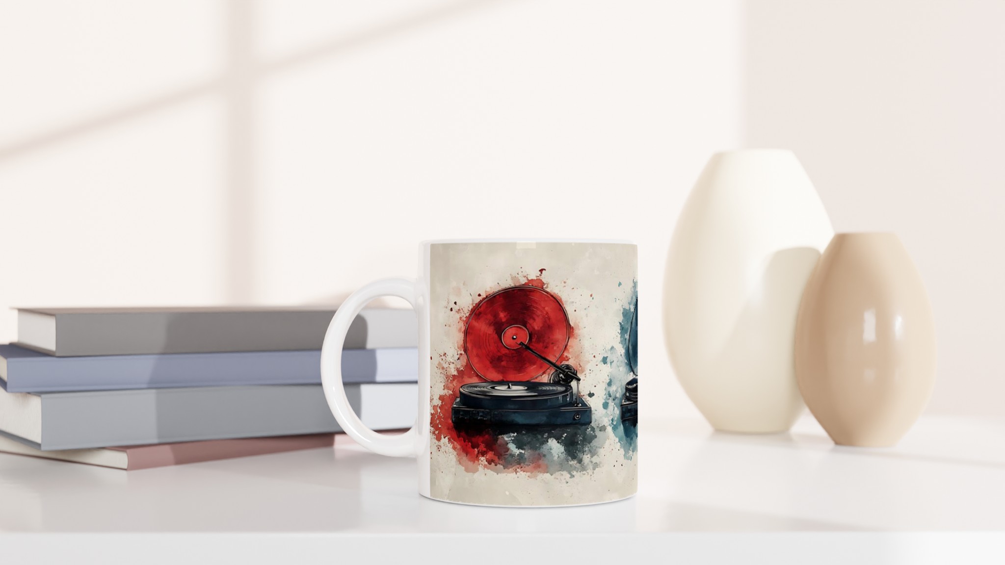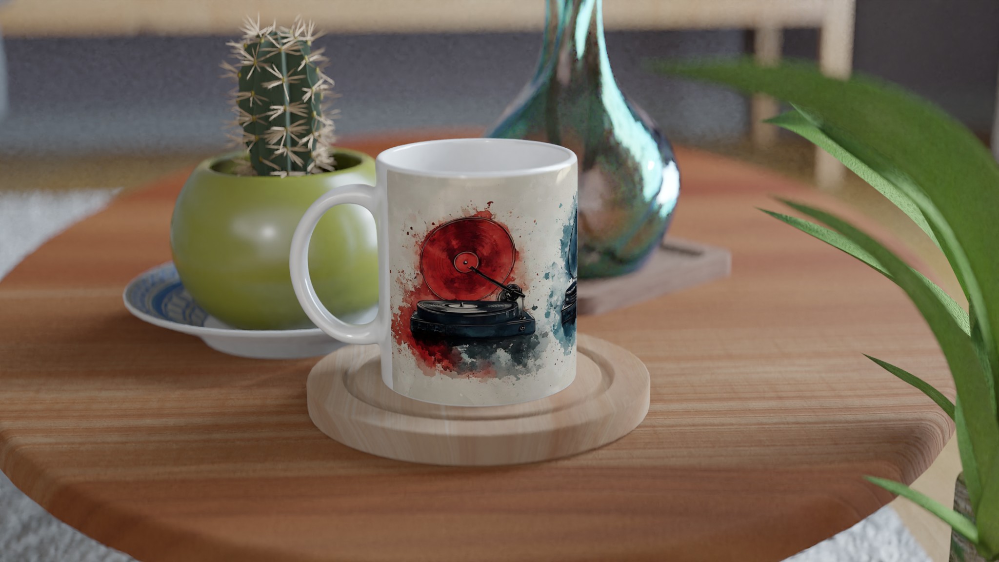 Retro Vinylspelare – Konstnärlig 11oz Keramikmugg i ditt val av sju livfulla färger för musikälskaren