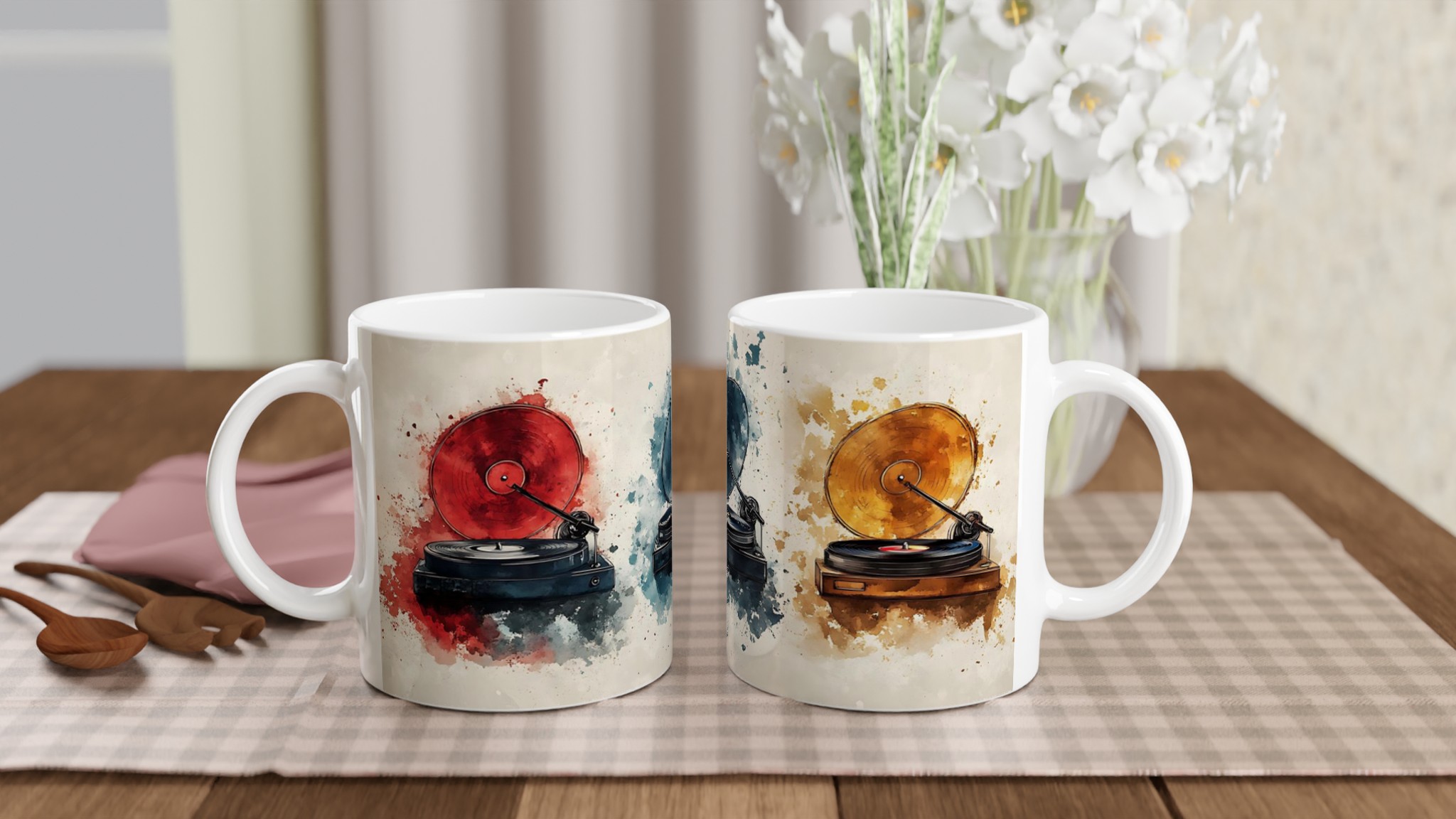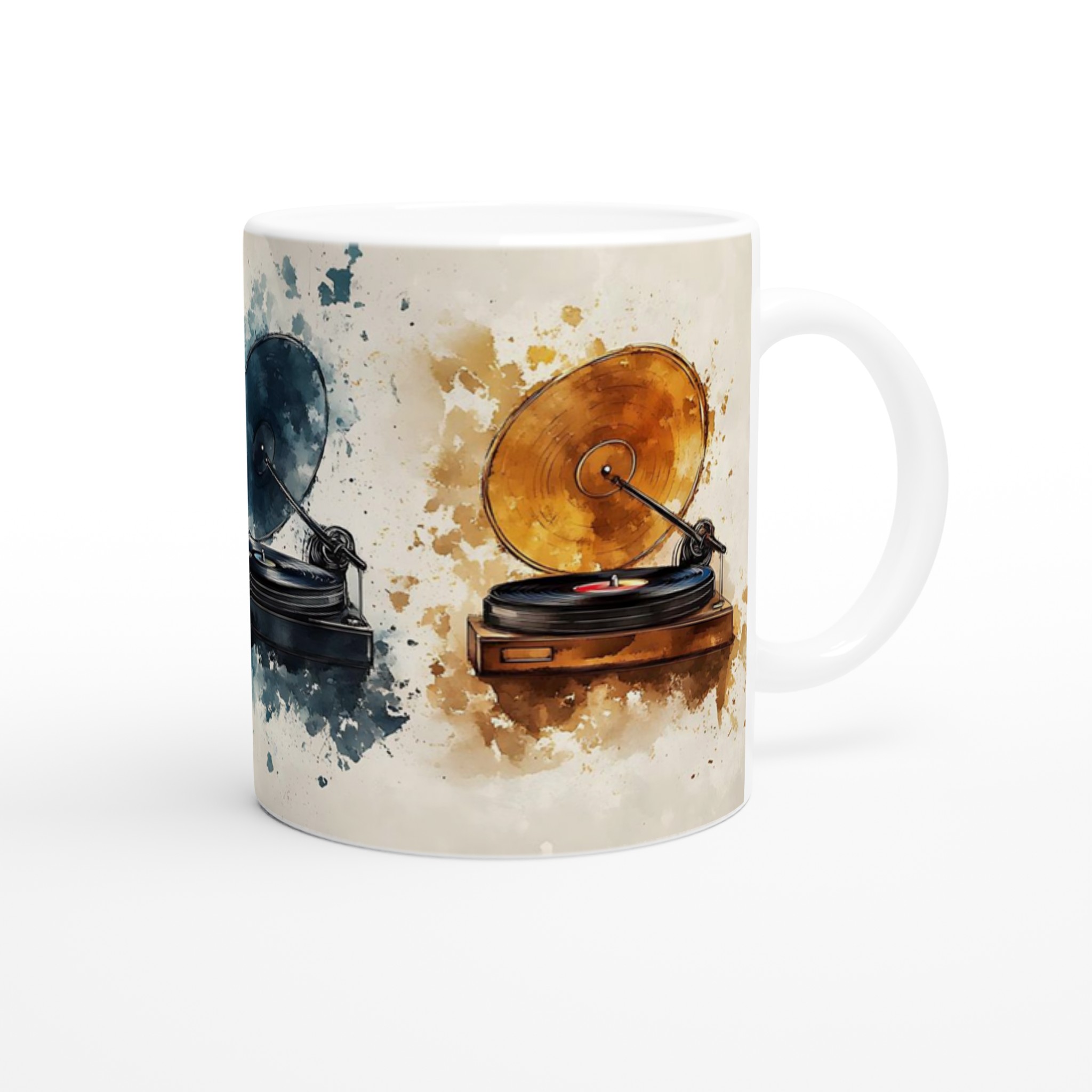 Lyft varje kaffestund med vår premium keramikmugg – stilren, hållbar och skapad för att låta ditt motiv glänsa. Inspirerad av den tidlösa charmen hos klassiska vinylspelare med en modern, akvarellinspirerad twist, är denna mugg perfekt för musikälskaren. De levande färgstänkarna bakom varje spelare fångar ögat och sätter en konstnärlig prägel på din dryckesupplevelse.