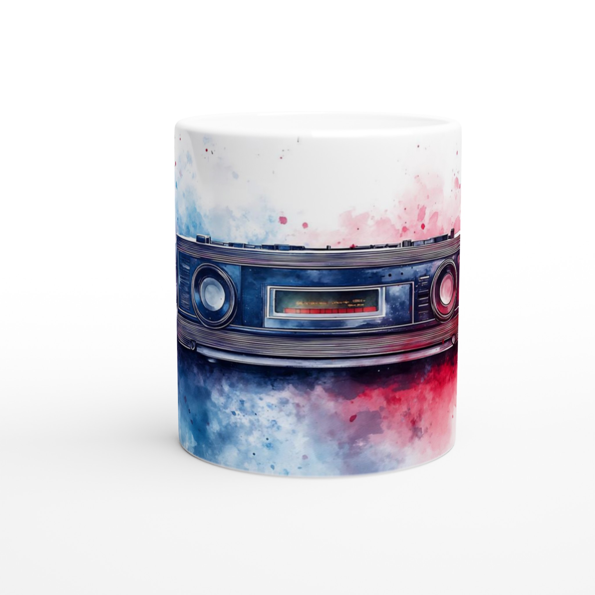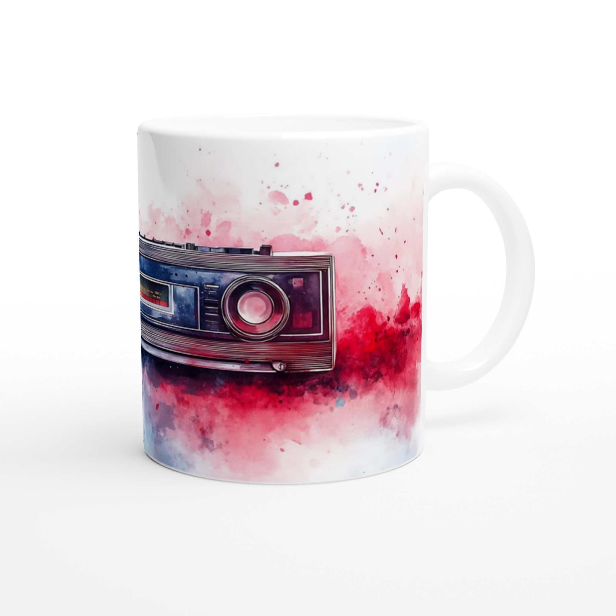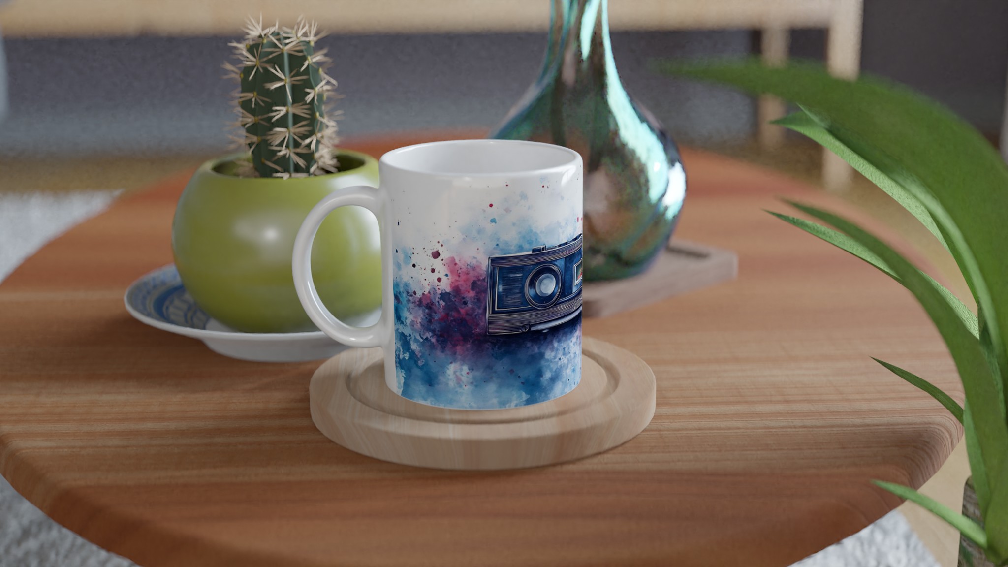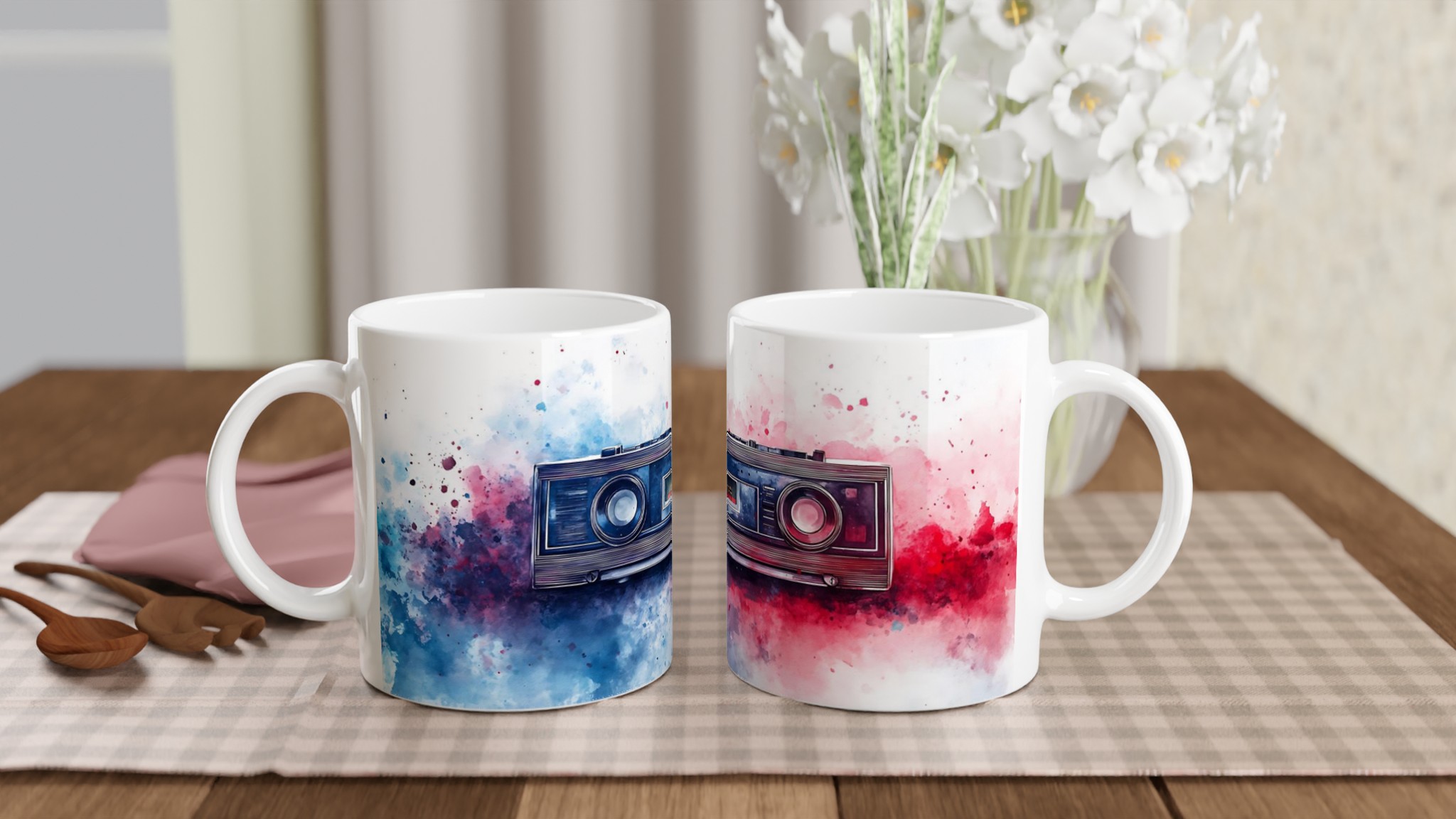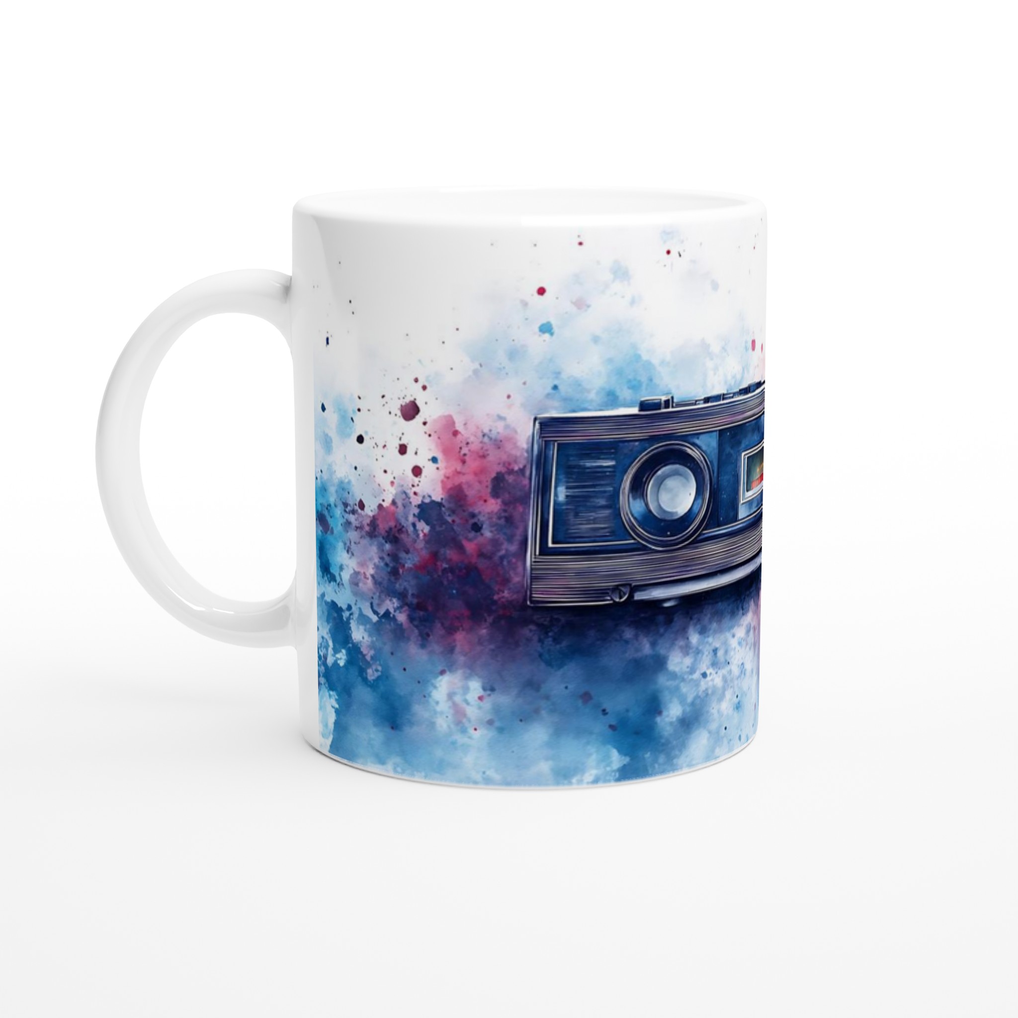 Inspirerad av den klassiska retrokassetten och de dynamiska färgstänkarna i blått och rött, fångar denna mugg nostalgi med en modern konstnärlig twist. Den blanka vita ytan ger ett skarpt och levande tryck som verkligen sticker ut, oavsett om det är en personlig design, ett roligt citat eller en present till någon du tycker om.