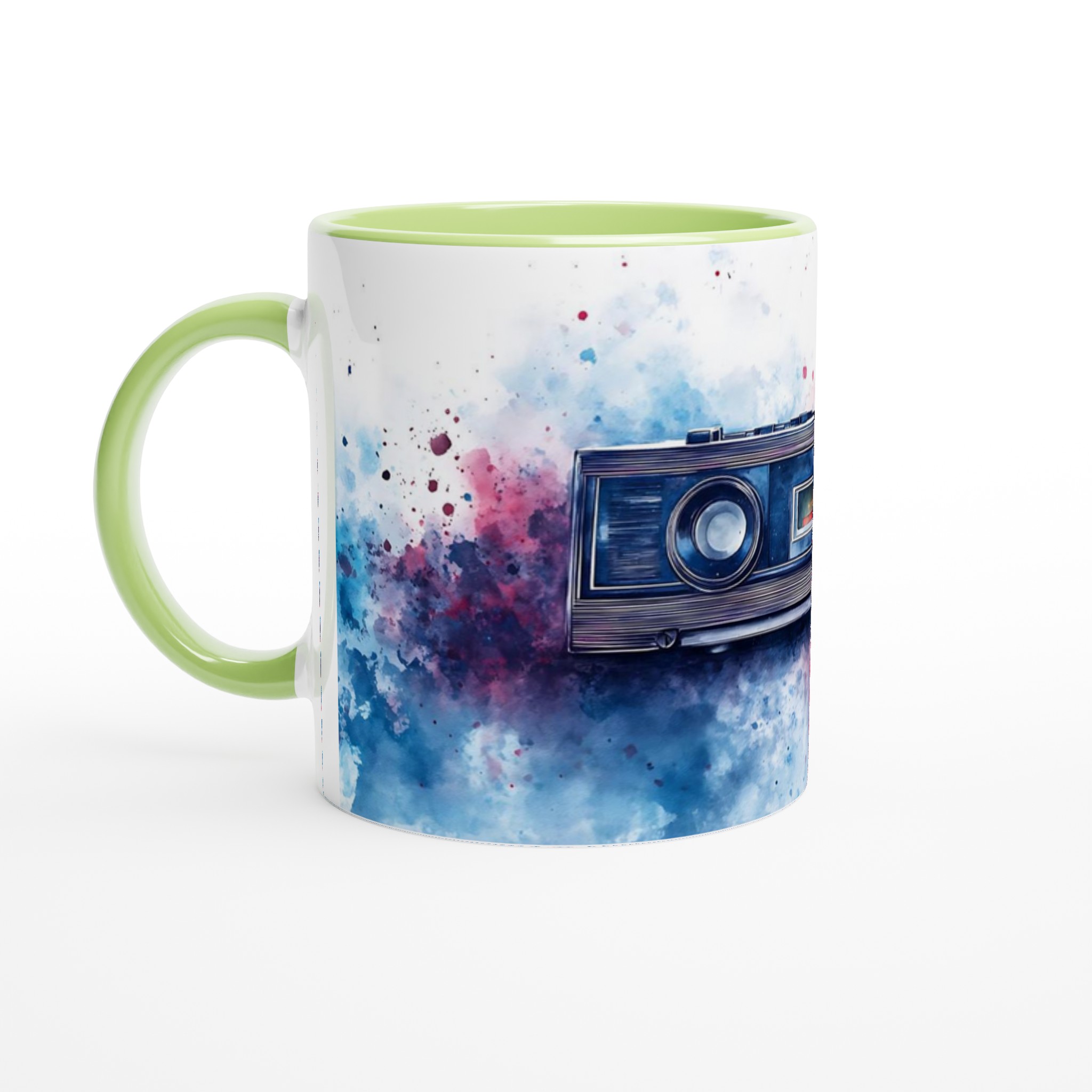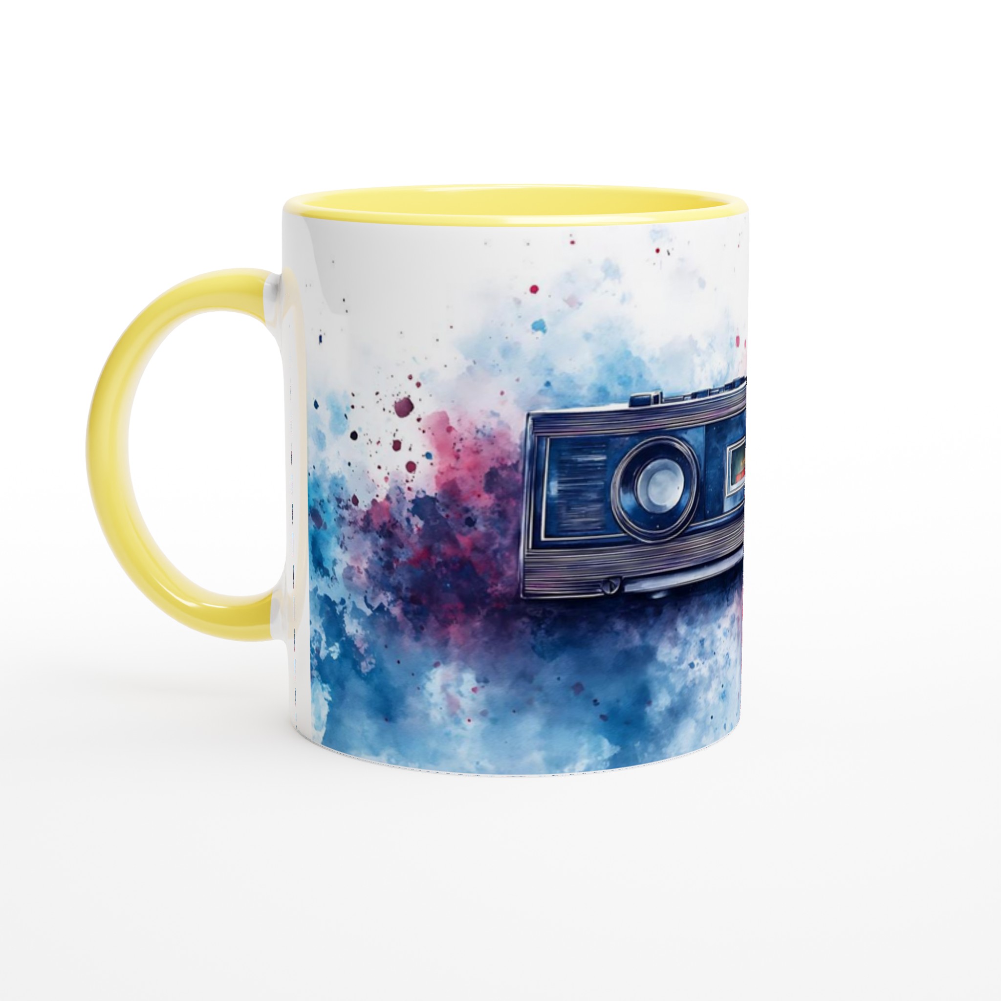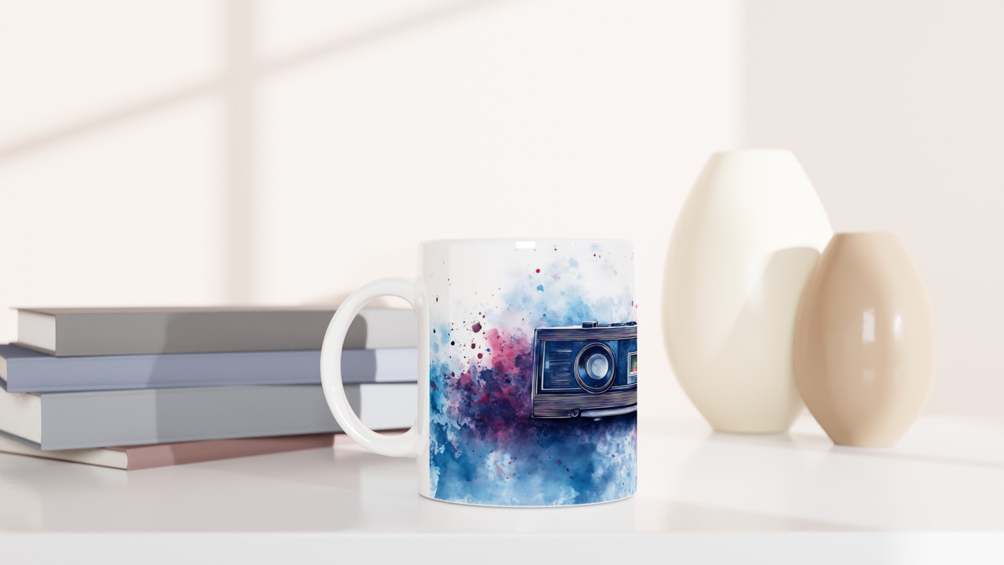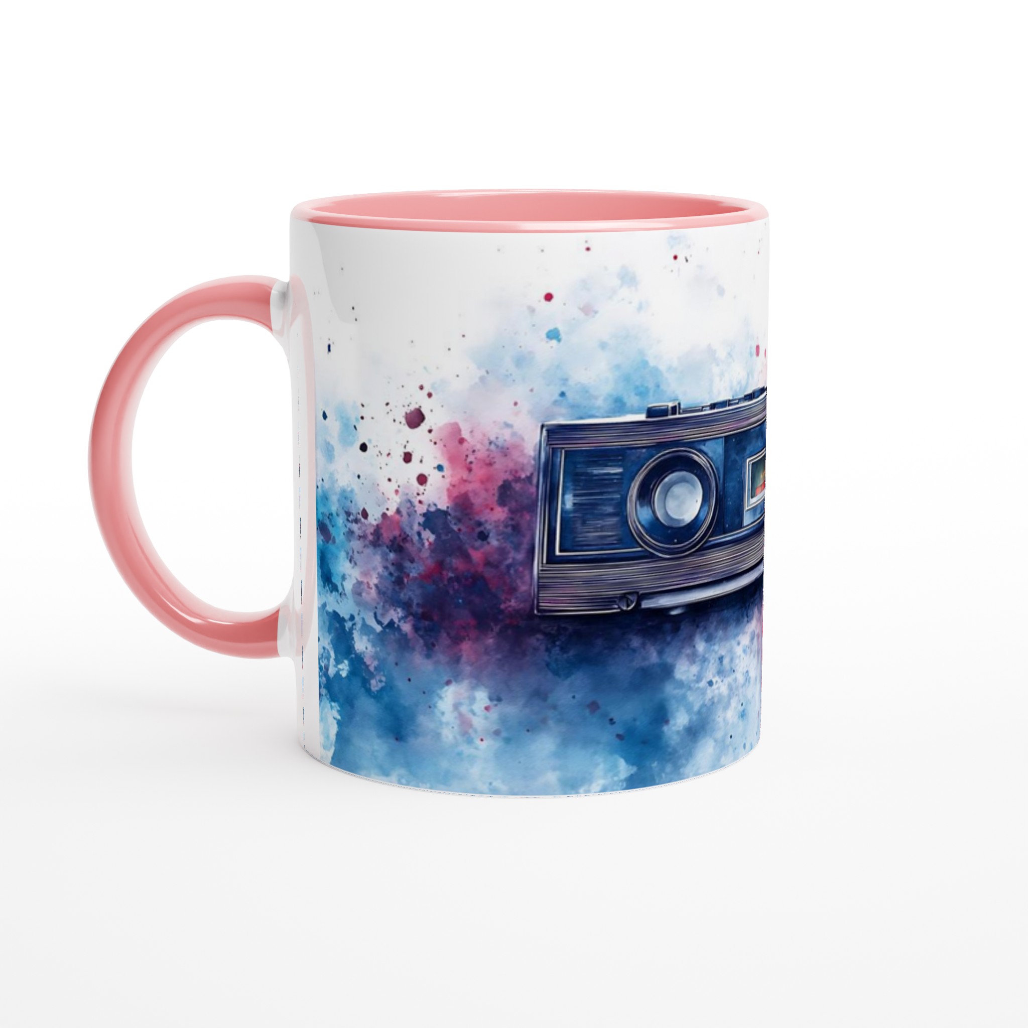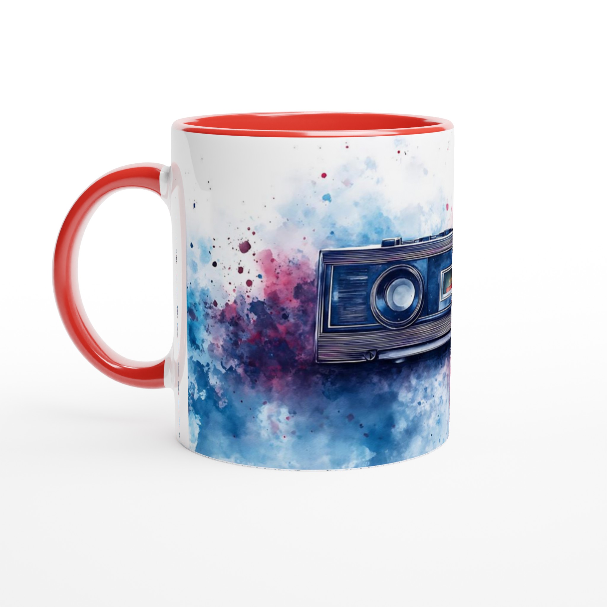 Inspirerad av den klassiska retrokassetten och de dynamiska färgstänkarna i blått och rött, fångar denna mugg nostalgi med en modern konstnärlig twist. Den blanka vita ytan ger ett skarpt och levande tryck som verkligen sticker ut, oavsett om det är en personlig design, ett roligt citat eller en present till någon du tycker om.