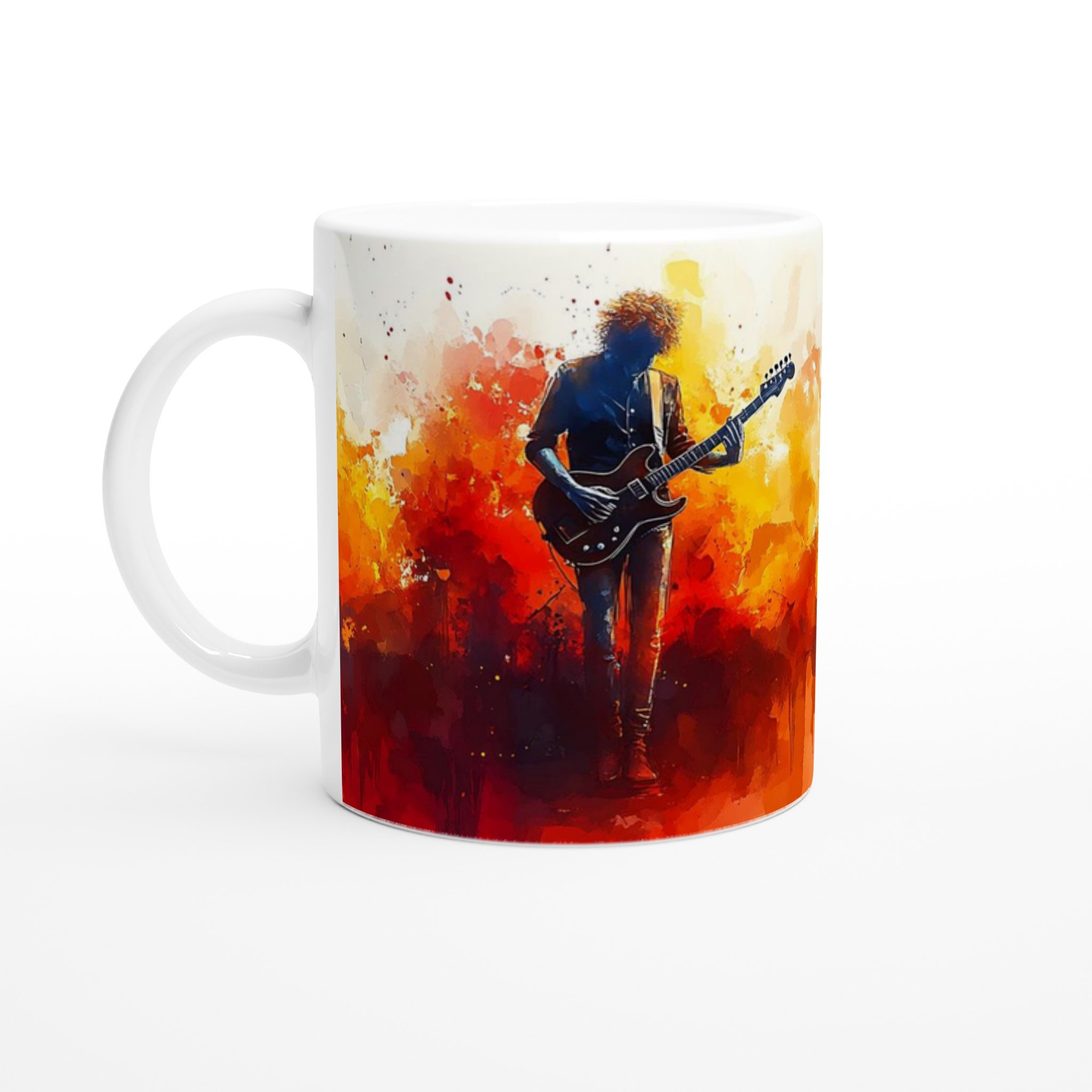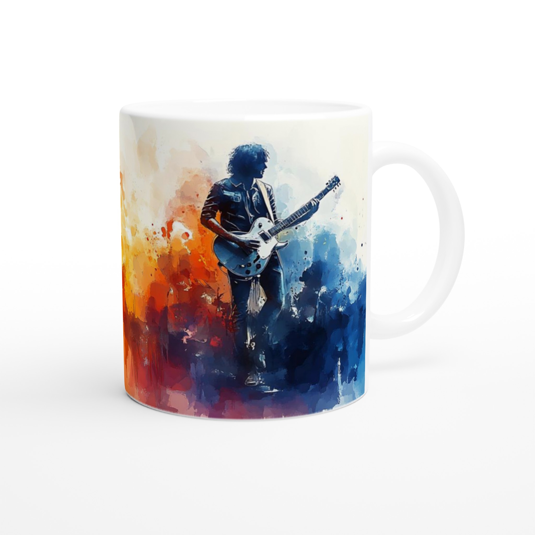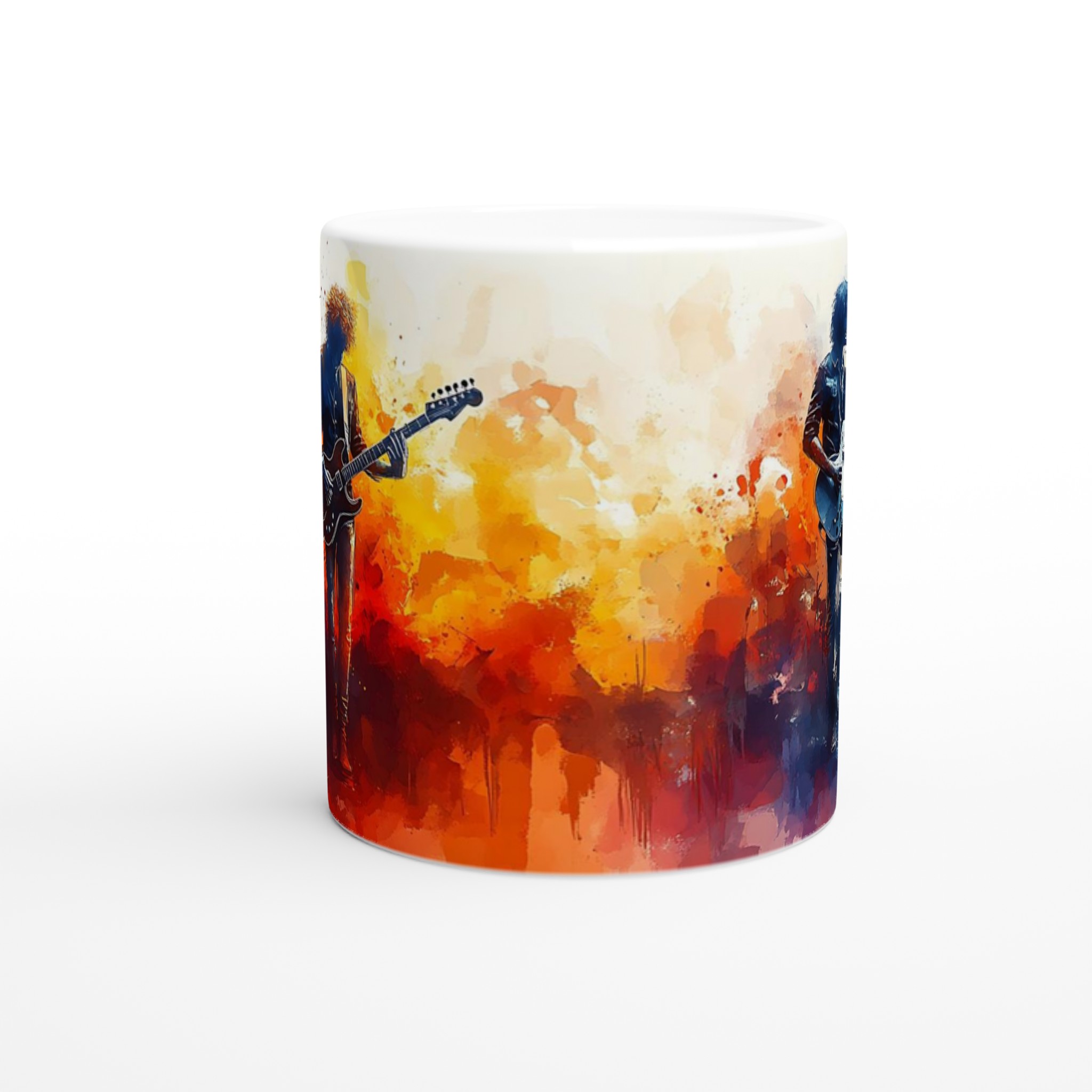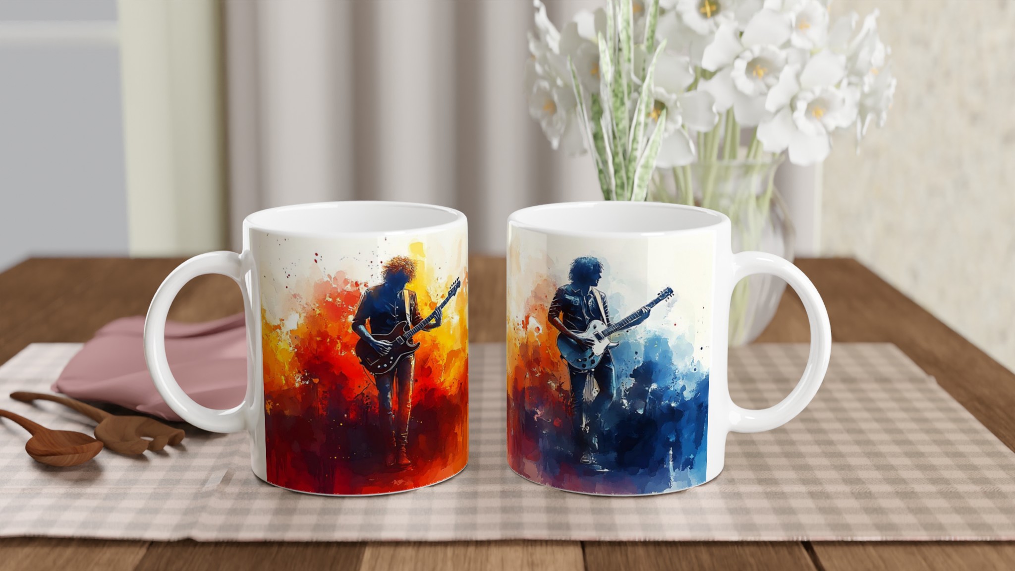 Inspirerad av den elektriska energin från en livekonsert, fångar denna mugg den råa passionen hos gitarrister i en dynamisk akvarellstil. Den blanka vita ytan ger ett skarpt och levande tryck som verkligen sticker ut, oavsett om det är en personlig design, ett roligt citat eller en present till någon du tycker om.