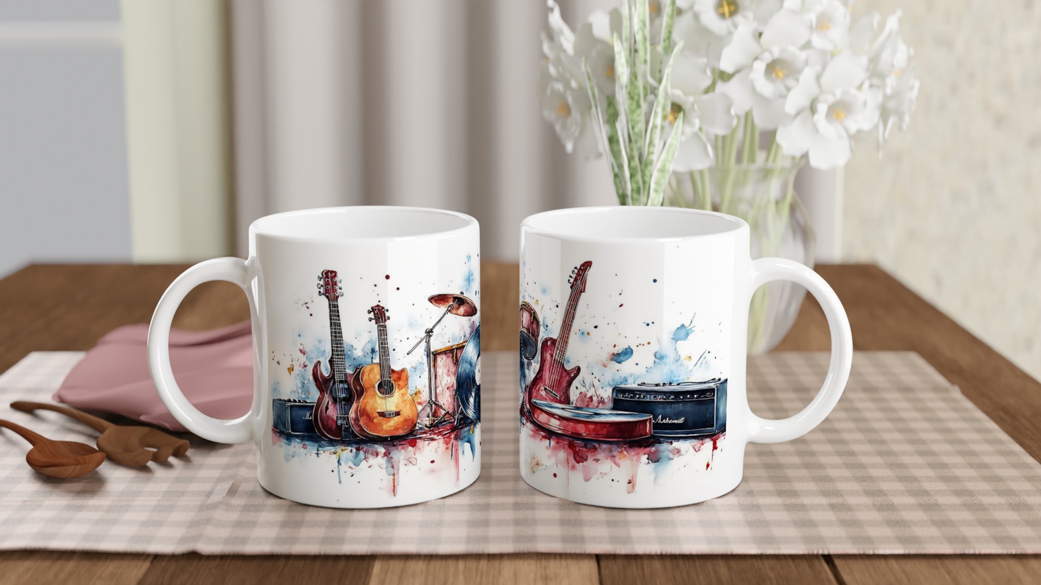 Med en kapacitet på 11 oz (ca 3,25 dl) är den perfekt för morgonkaffe, te, varm choklad eller din favoritdryck på jobbet. En idealisk storlek för både hem och kontor. Välj den färg som bäst speglar din personlighet eller kompletterar din musiksamling, med alternativ som sträcker sig från klassiskt vitt till djärvt rött och djupt blått. Uttryck din stil och ge din dryckesupplevelse en rockig touch!