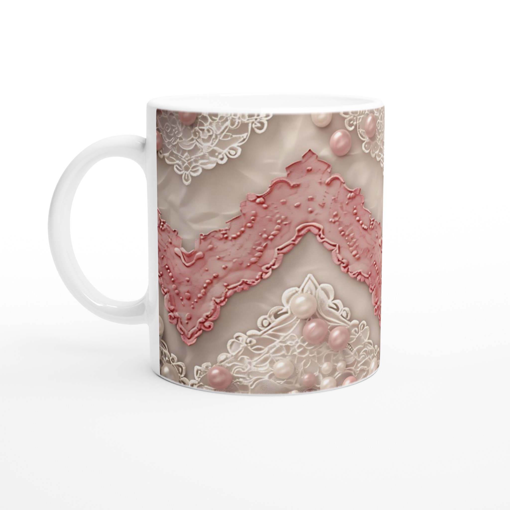 Romantisk 11oz Keramisk Mugg – Drömlika Spetsdetaljer & Pärlemor i ditt Val av Färg