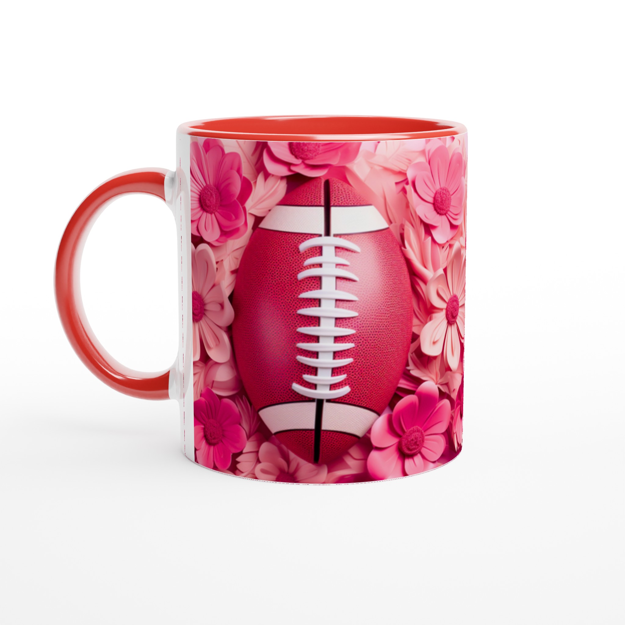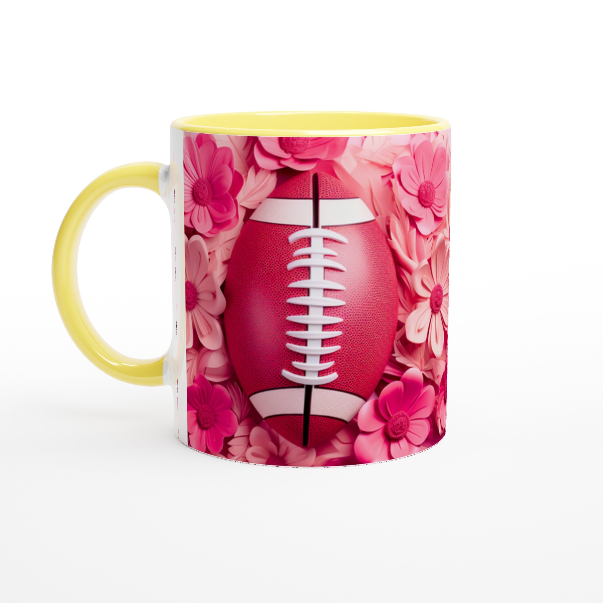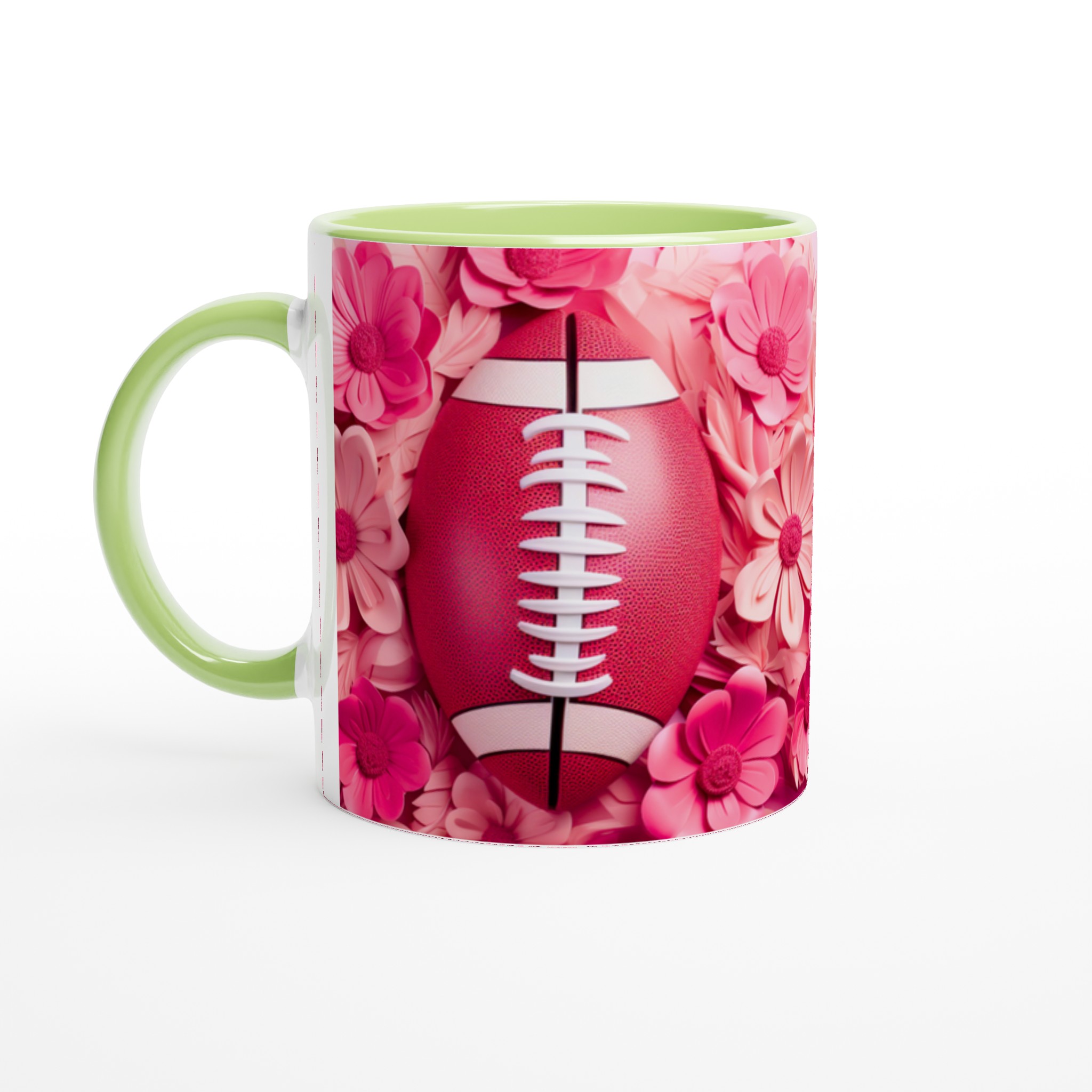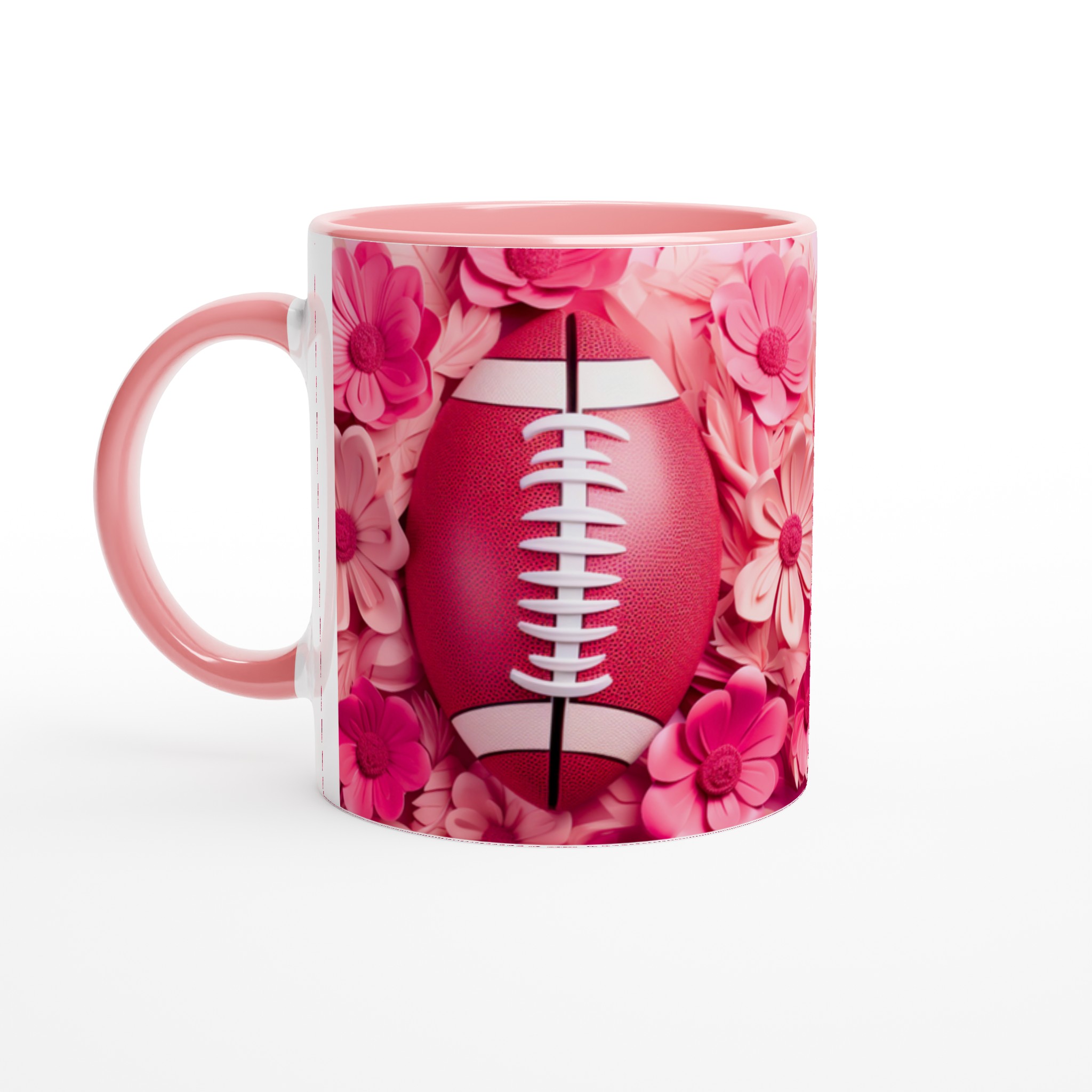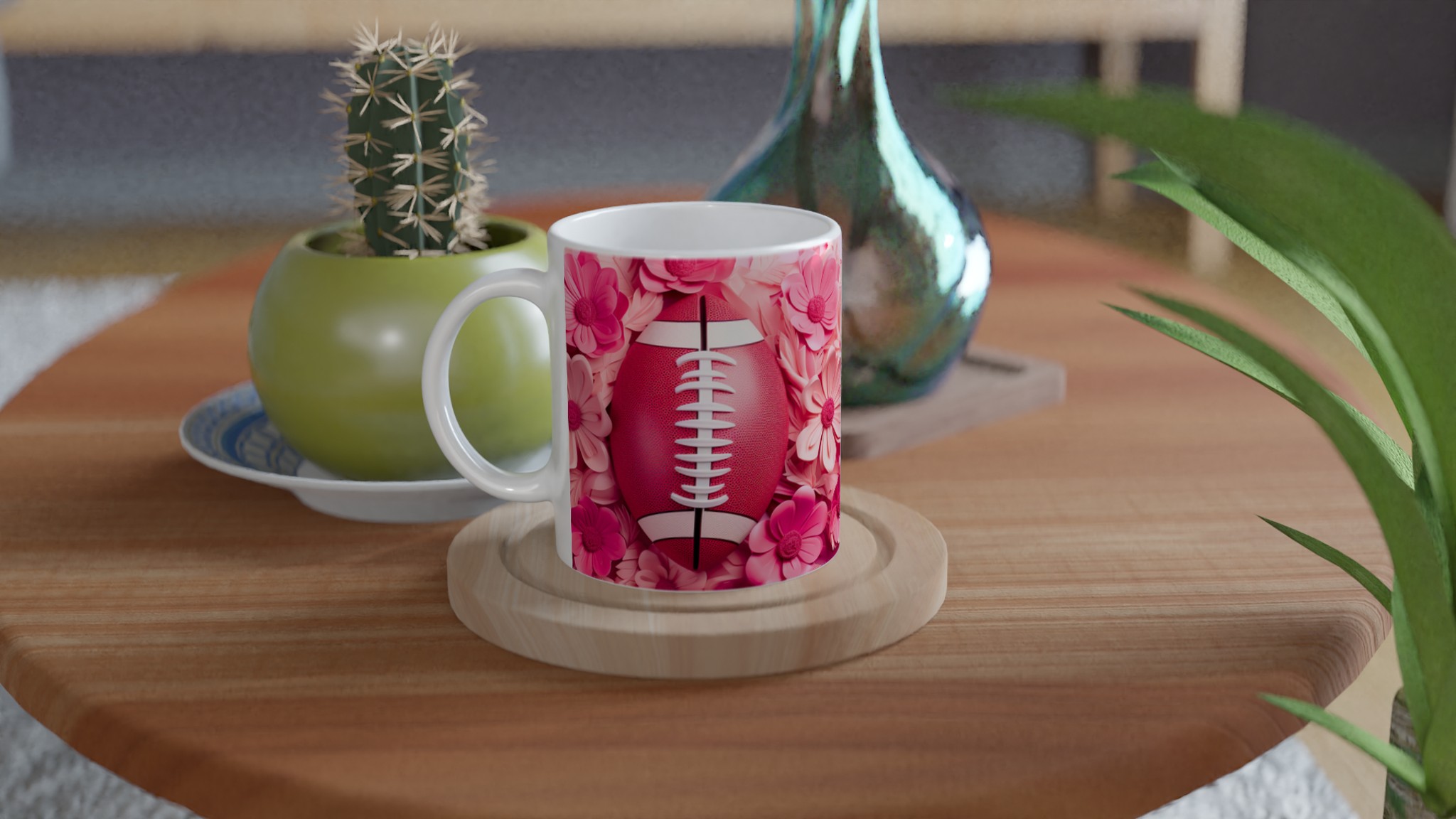Fånga den perfekta mixen av sportentusiasm och romantisk charm med vår unika keramiska mugg. Denna stilrena mugg, prydd med ett förtrollande mönster av rosa blommor och en matchande fotboll, blir snabbt en vardagsfavorit. Perfekt för morgonkaffet, kvällens varma choklad eller när du bara vill njuta av en kopp te. Den blanka vita ytan framhäver trycken med klara och levande färger, som håller sig fina även efter många turer i mikron och diskmaskinen.