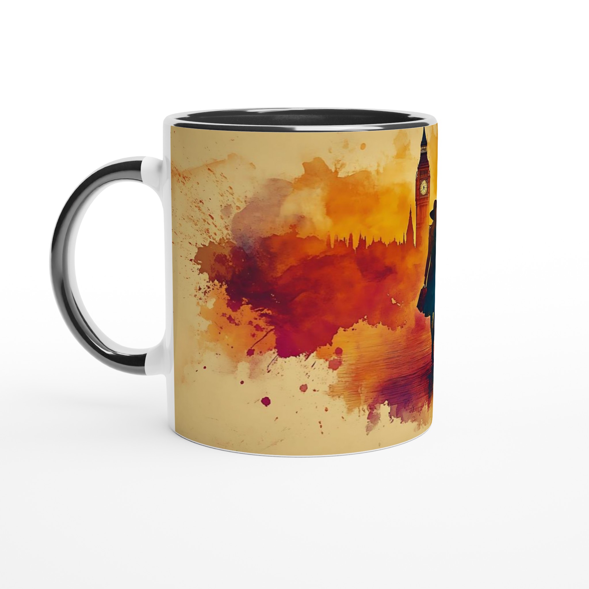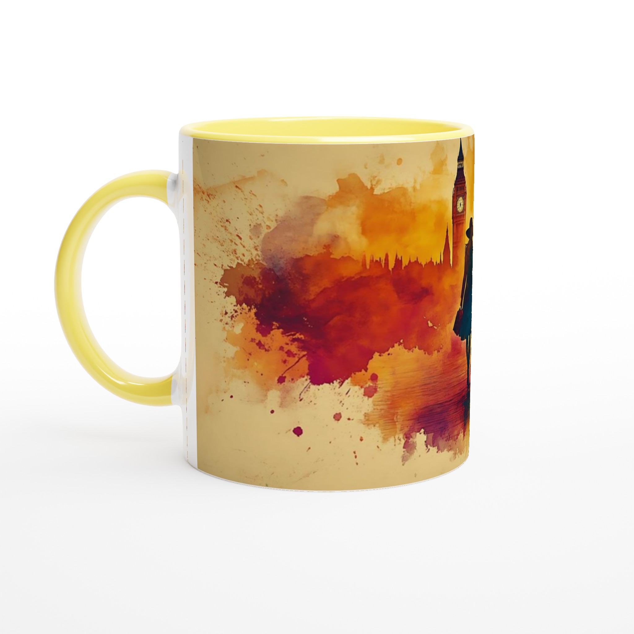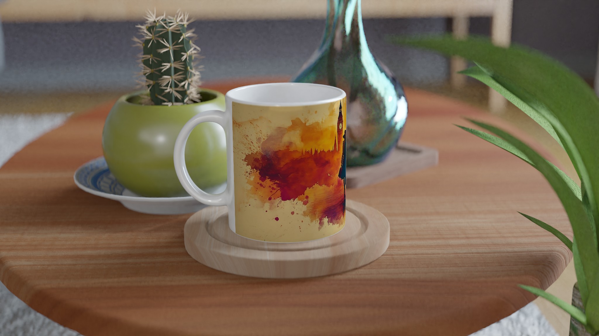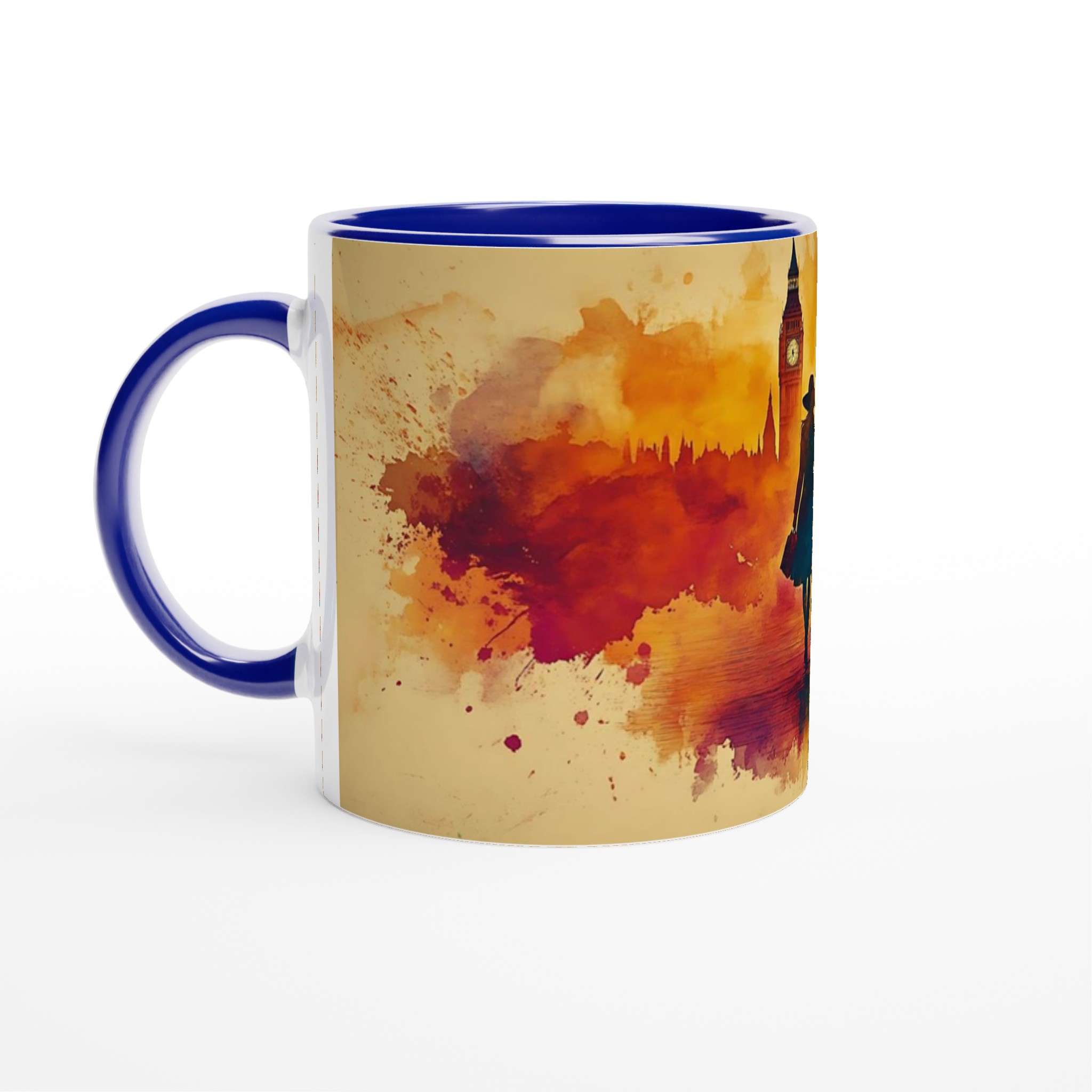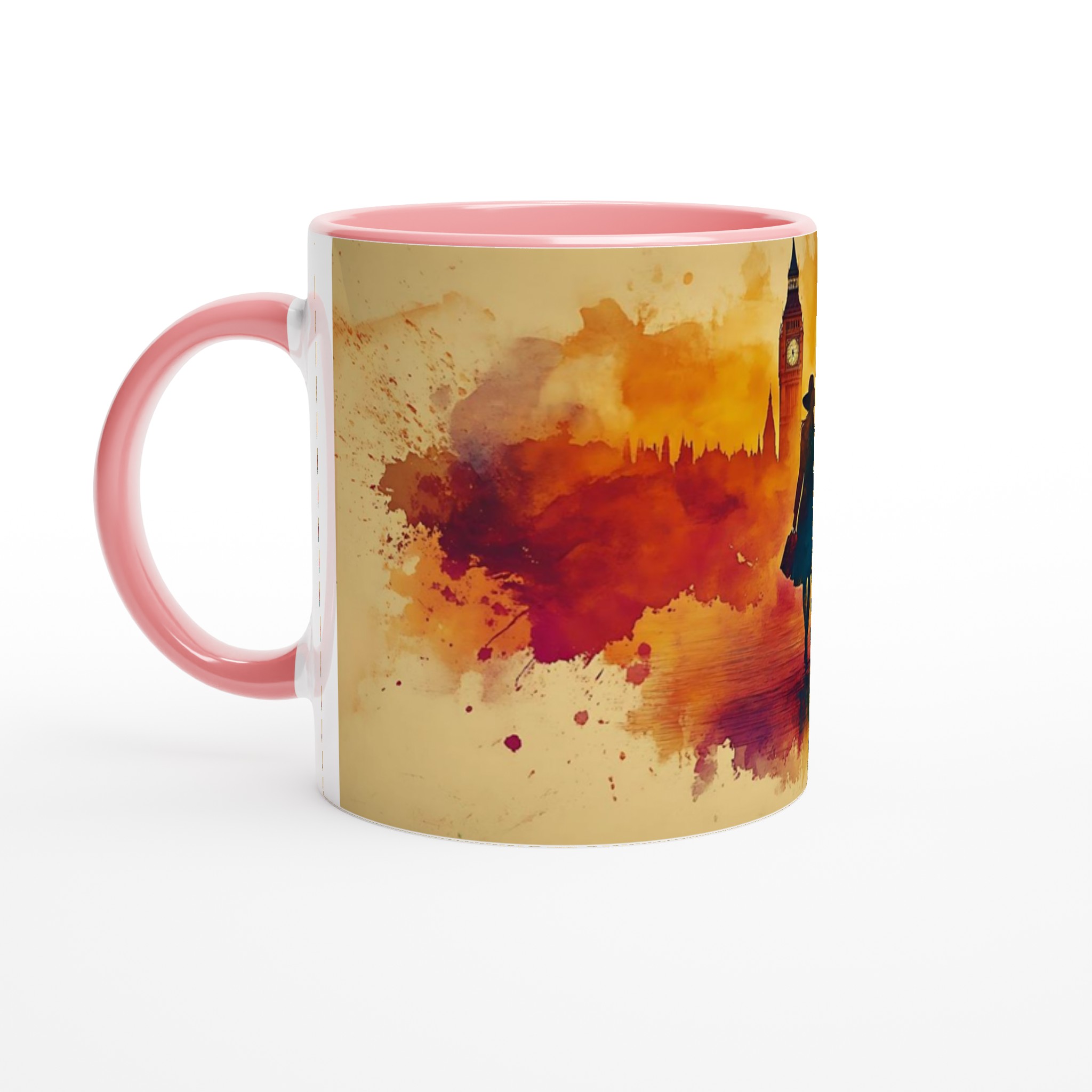 Fånga den romantiska stämningen från en promenad genom London med denna unika keramiska mugg. Motivet, som föreställer två figurer som vandrar bland ikoniska landmärken i en drömsk akvarellstil, skapar en känsla av äventyr och tidlös elegans. De varma orange och röda tonerna möter djupa blå nyanser, vilket ger en fängslande kontrast som väcker liv i varje kopp.