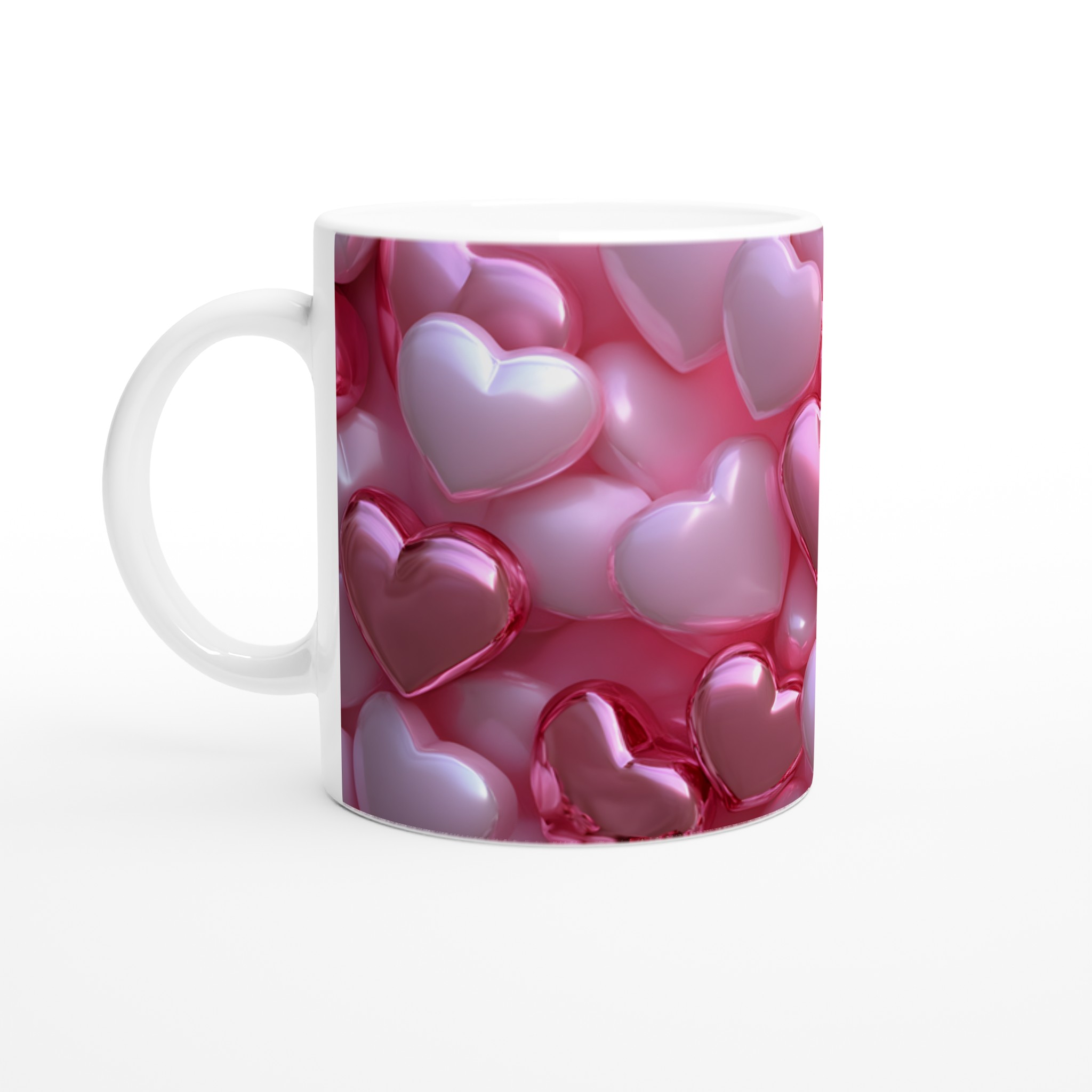 Den blanka vita ytan gör att de rosa hjärtmotiven framträder klart och färgstarkt, vilket gör muggen till en riktig favorit i vardagen. Den höga kvaliteten säkerställer att trycket behåller sin lyster även efter många omgångar i både mikrovågsugn och diskmaskin, så att dina kärleksfulla motiv består.