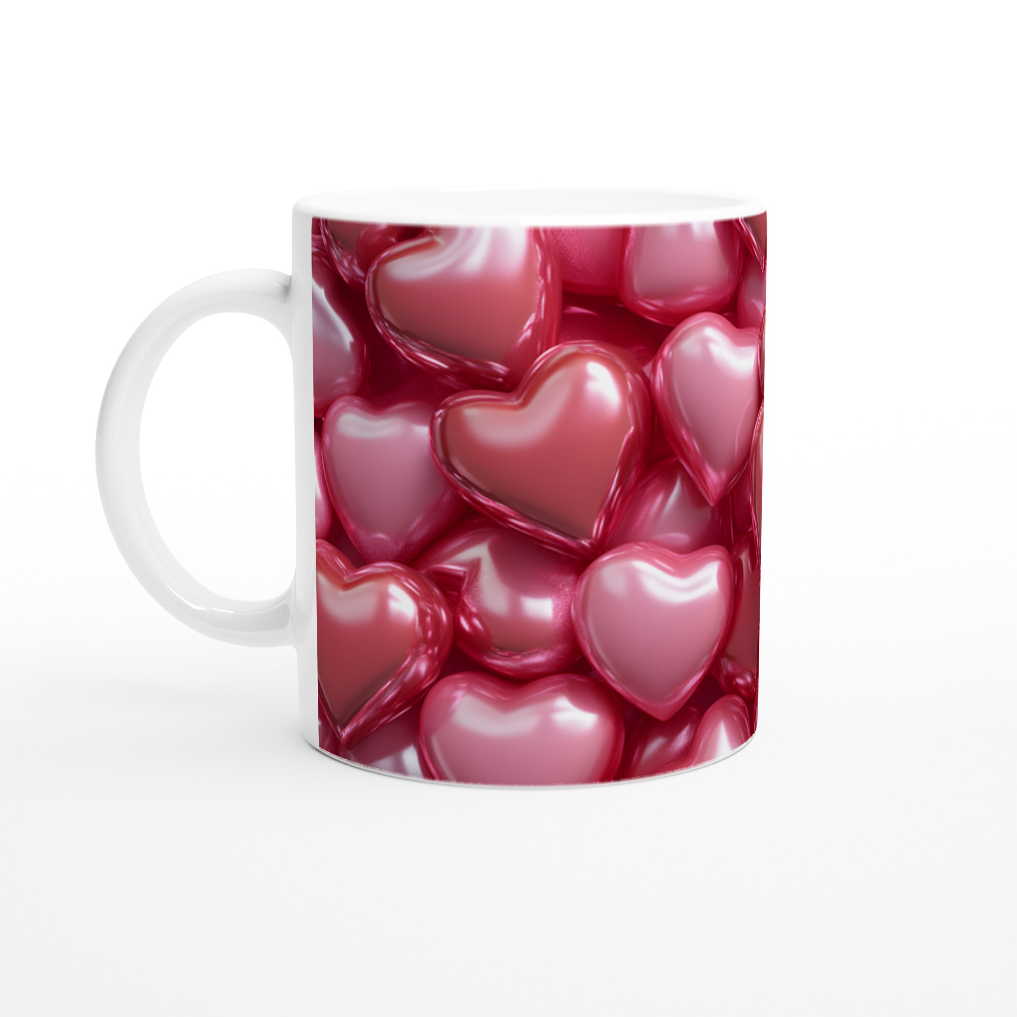 Den blanka vita keramikytan säkerställer att trycket framträder klart och färgstarkt, precis som kärleken själv. Du kan vara trygg med att din mugg behåller sin lyster och sina livfulla färger, även efter otaliga användningar och turer i diskmaskinen och mikrovågsugnen. Muggen rymmer 11 oz (cirka 3,25 dl), en idealisk storlek för både hem och kontor.
