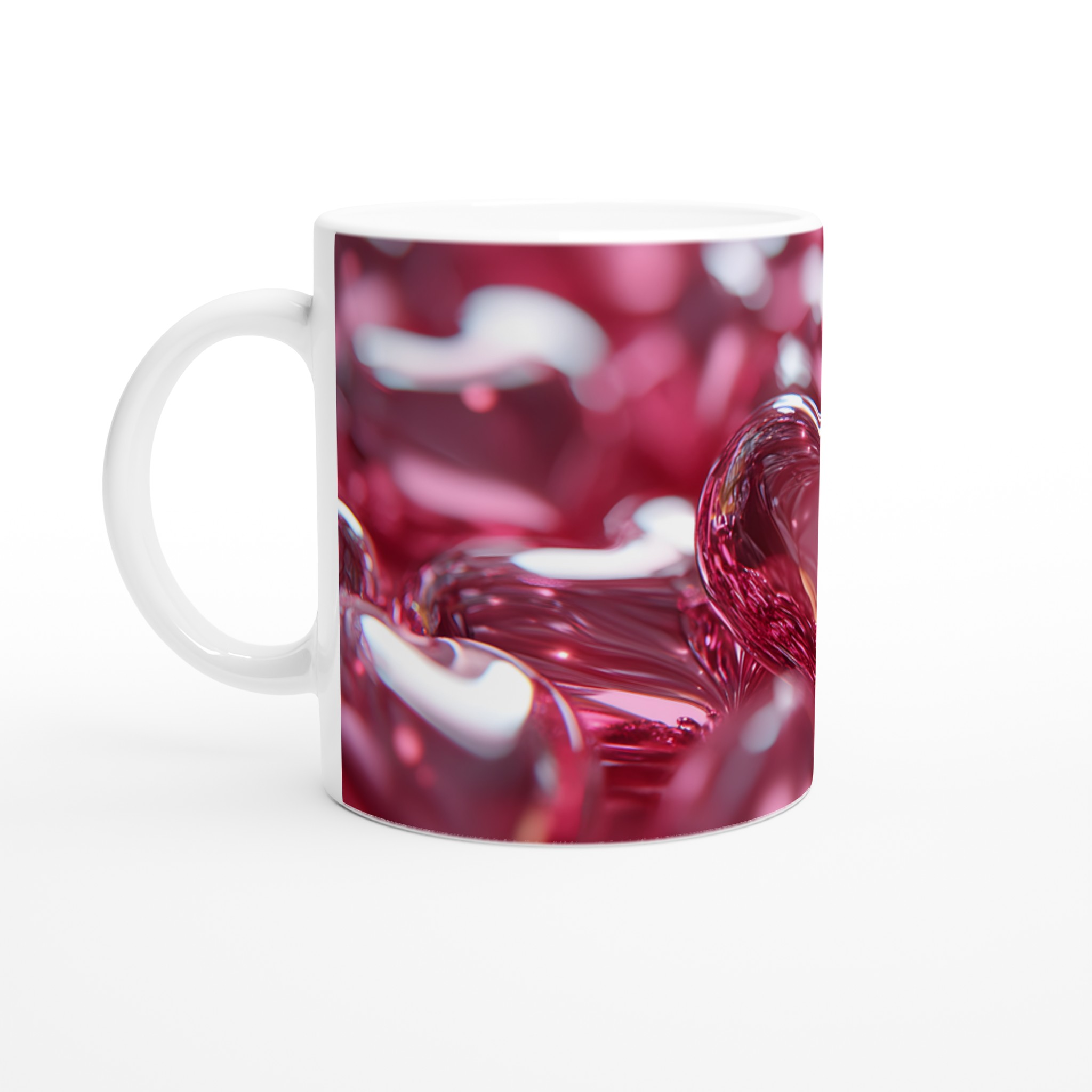 Den blanka vita ytan gör att trycket med de lekfulla, skimrande rosa hjärtana framträder klart och färgstarkt, vilket gör muggen till en riktig favorit i vardagen. Tack vare den höga kvaliteten behåller trycket sin lyster även efter många omgångar i både mikrovågsugn och diskmaskin, så att din mugg fortsätter att sprida glädje länge.