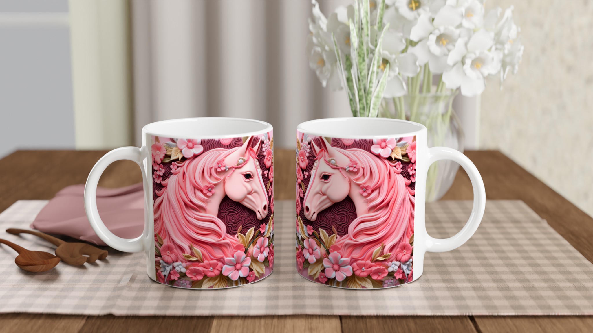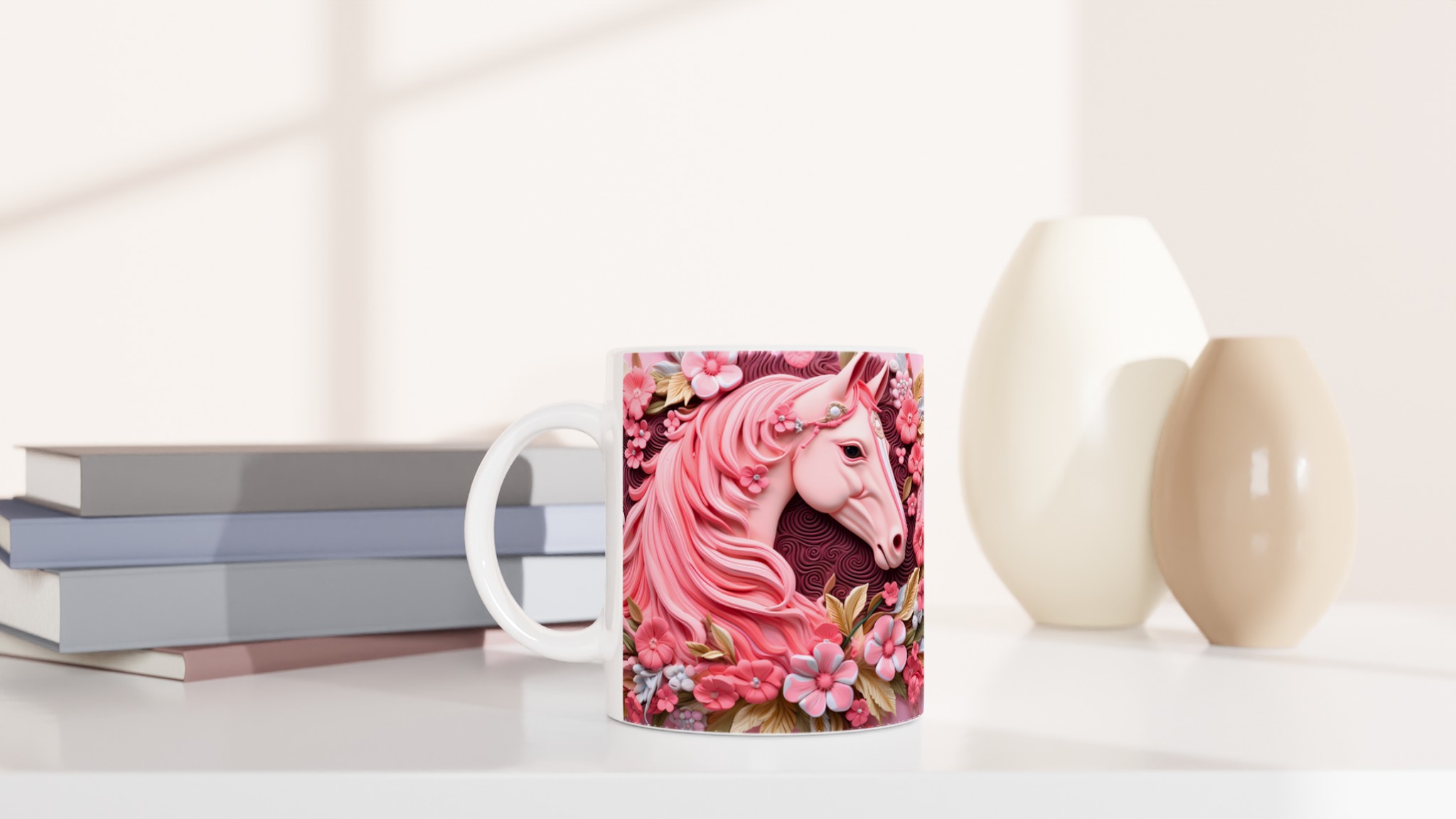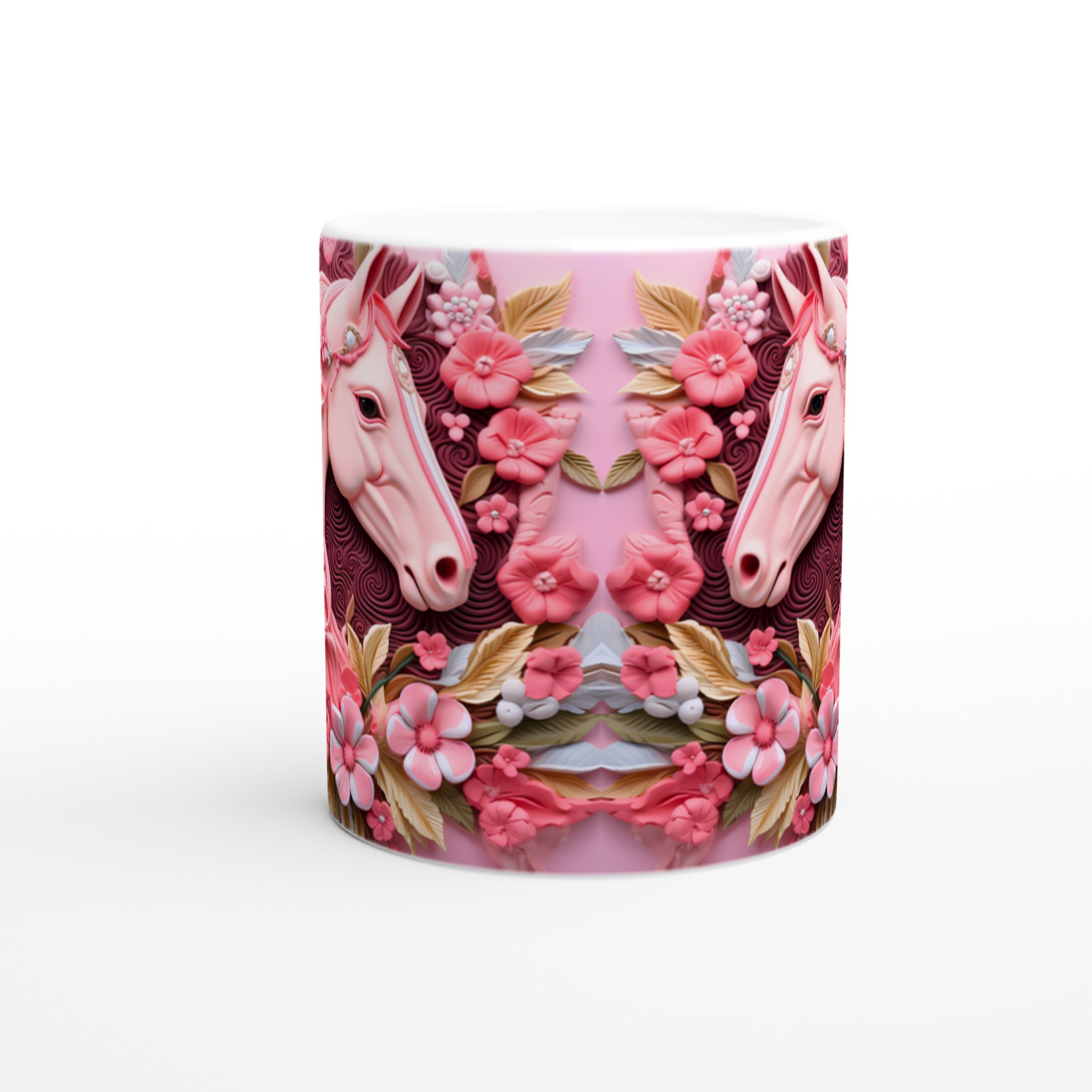 Fånga den magiska känslan varje dag med vår Rosa Drömhäst keramiska mugg. Denna stilrena mugg, prydd med ett förtrollande motiv av rosa hästar omgivna av blommande detaljer, blir snabbt en vardagsfavorit. Perfekt för morgonkaffet, kvällens varma choklad eller när du bara vill njuta av en kopp te i en värld av fantasi. Den blanka vita ytan gör att trycken framhävs med klara och levande färger, som håller sig fina även efter många turer i mikron och diskmaskinen.