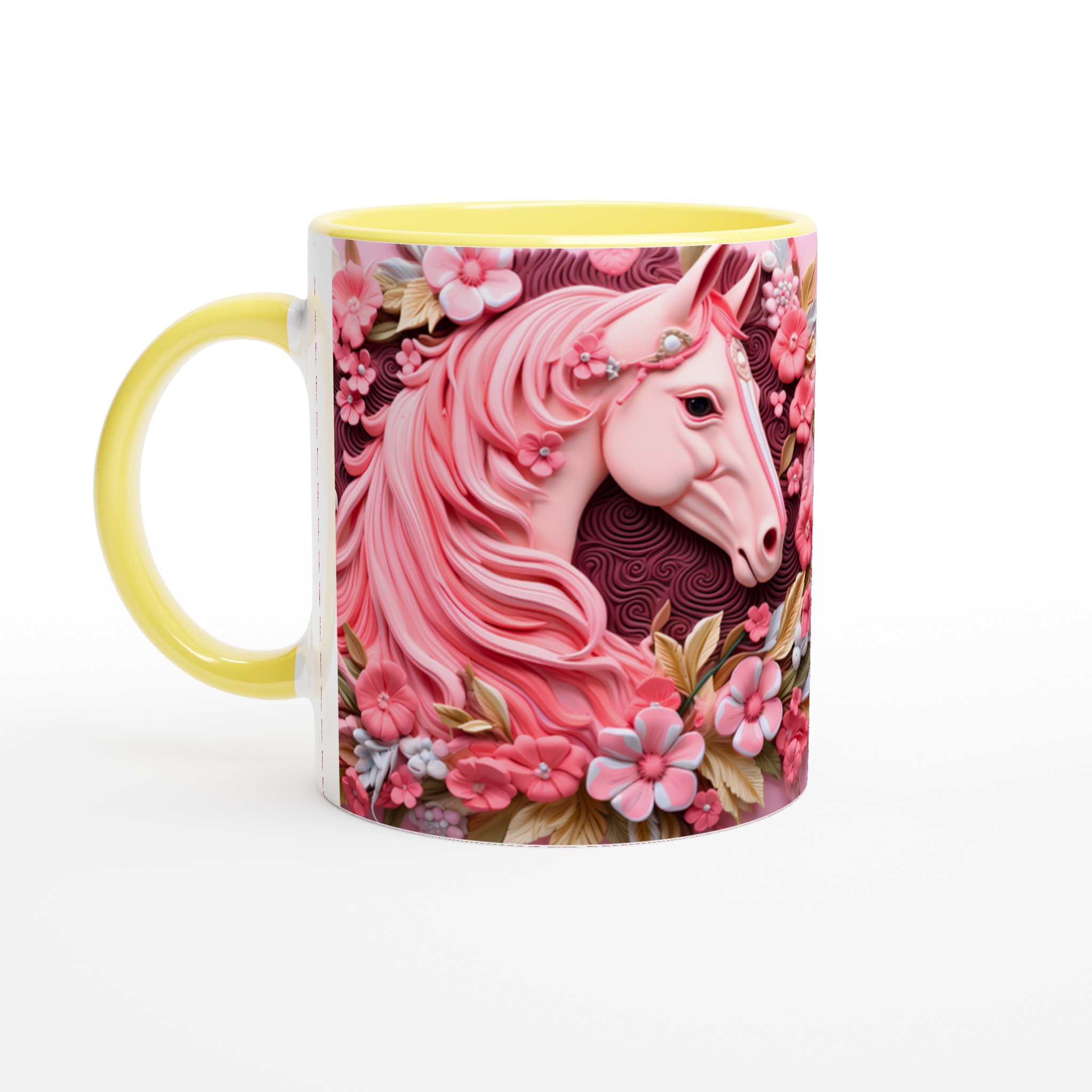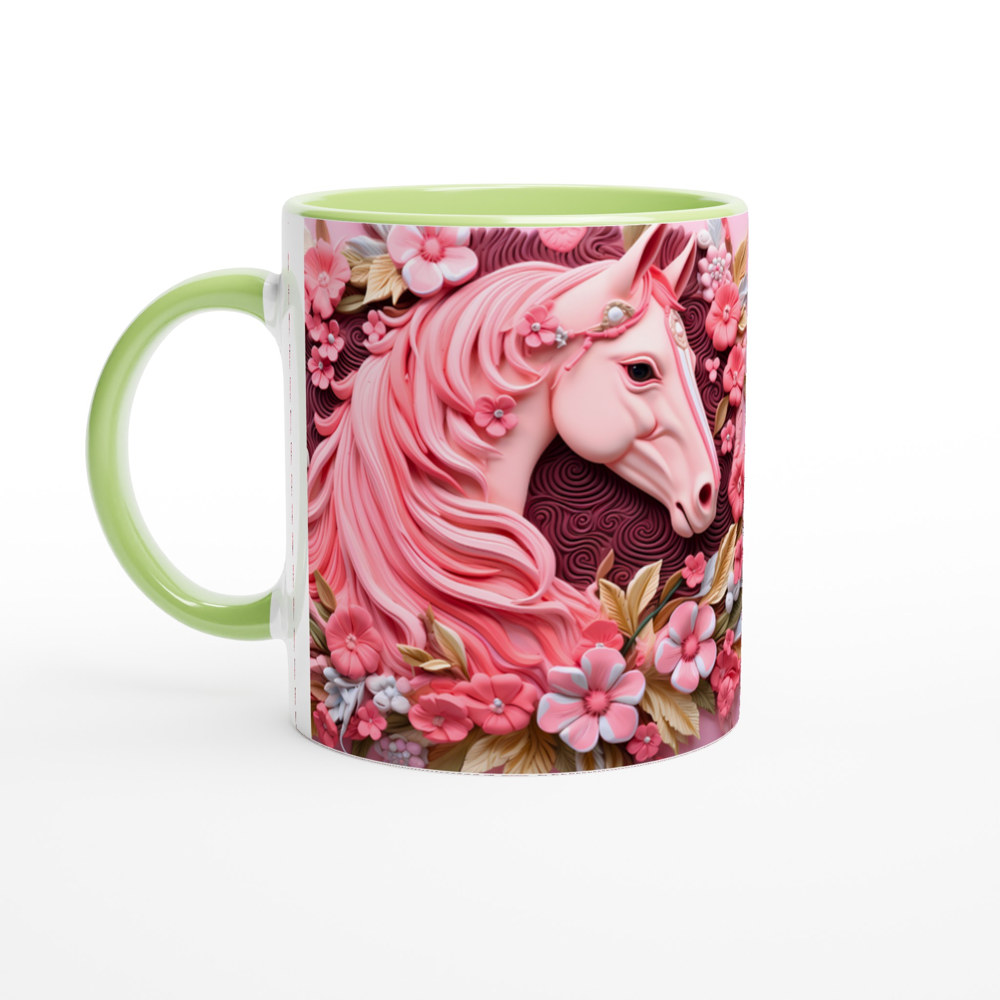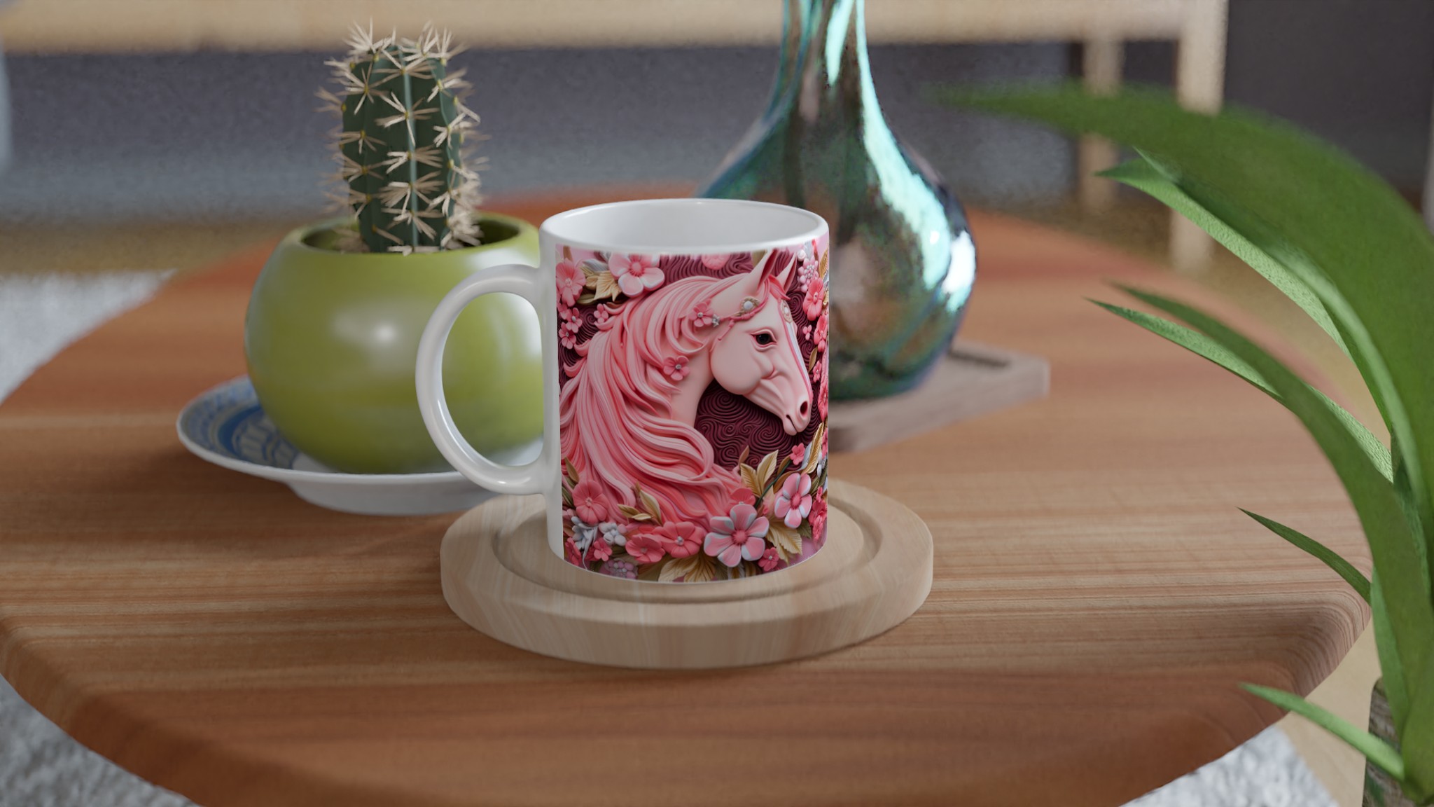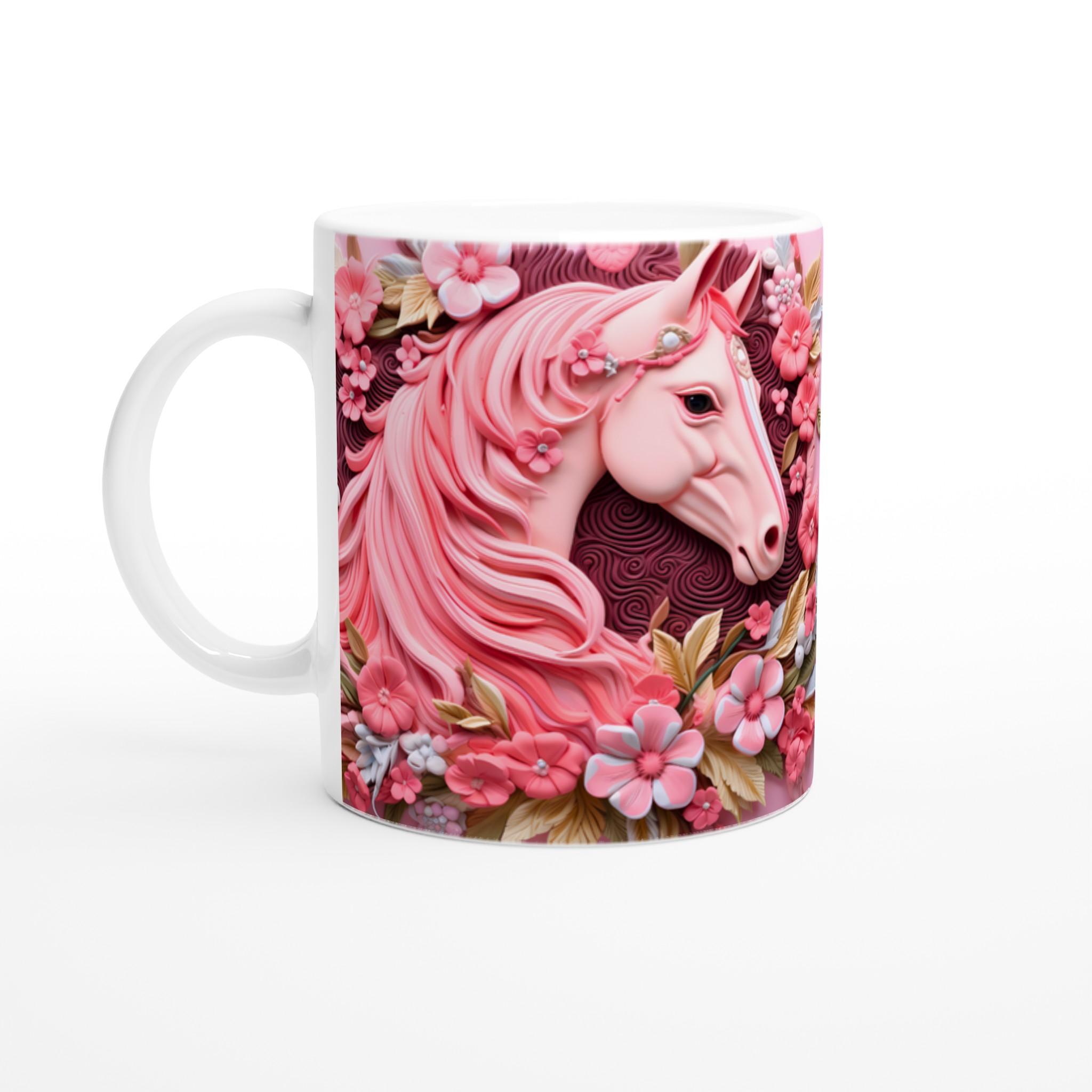 Fånga den magiska känslan varje dag med vår Rosa Drömhäst keramiska mugg. Denna stilrena mugg, prydd med ett förtrollande motiv av rosa hästar omgivna av blommande detaljer, blir snabbt en vardagsfavorit. Perfekt för morgonkaffet, kvällens varma choklad eller när du bara vill njuta av en kopp te i en värld av fantasi. Den blanka vita ytan gör att trycken framhävs med klara och levande färger, som håller sig fina även efter många turer i mikron och diskmaskinen.