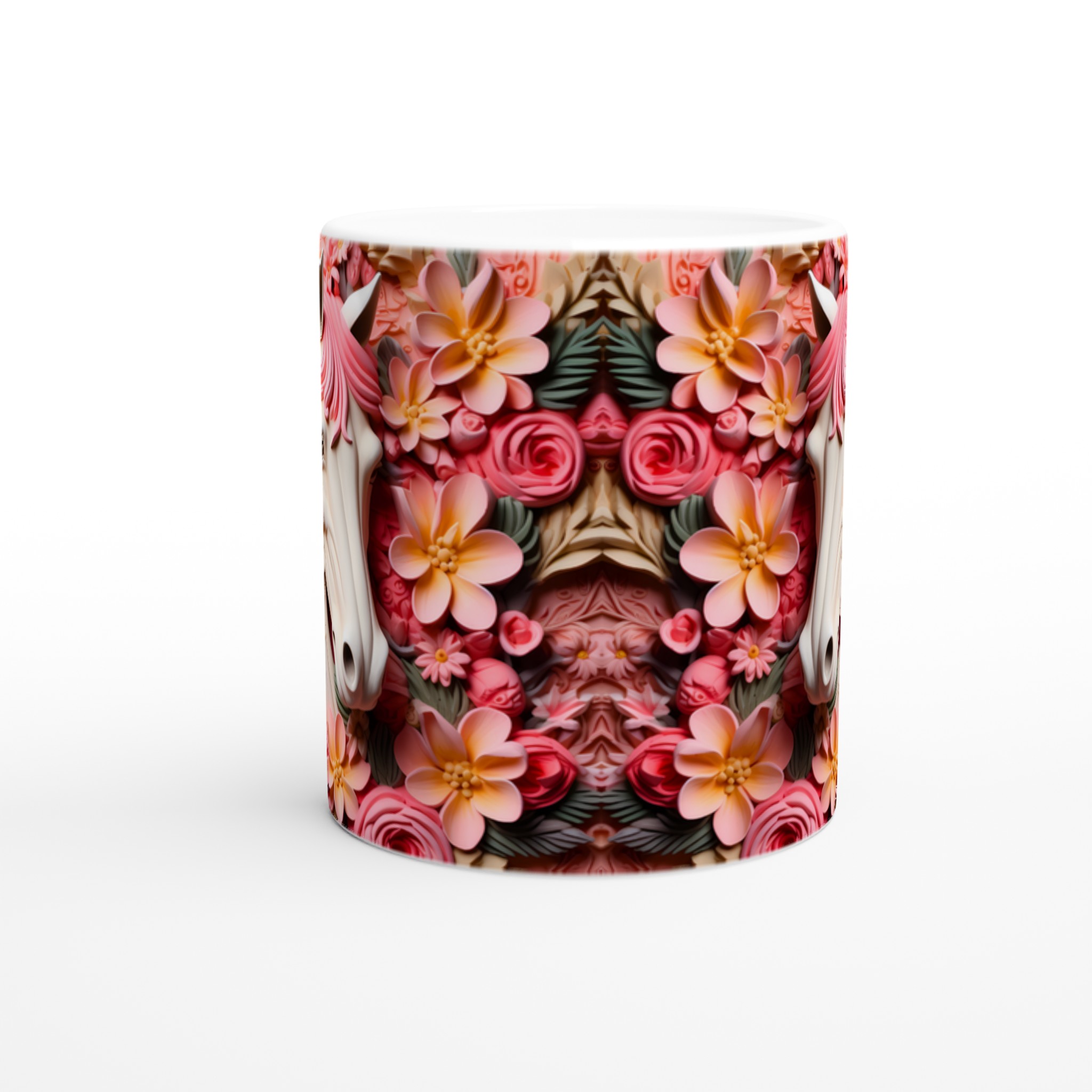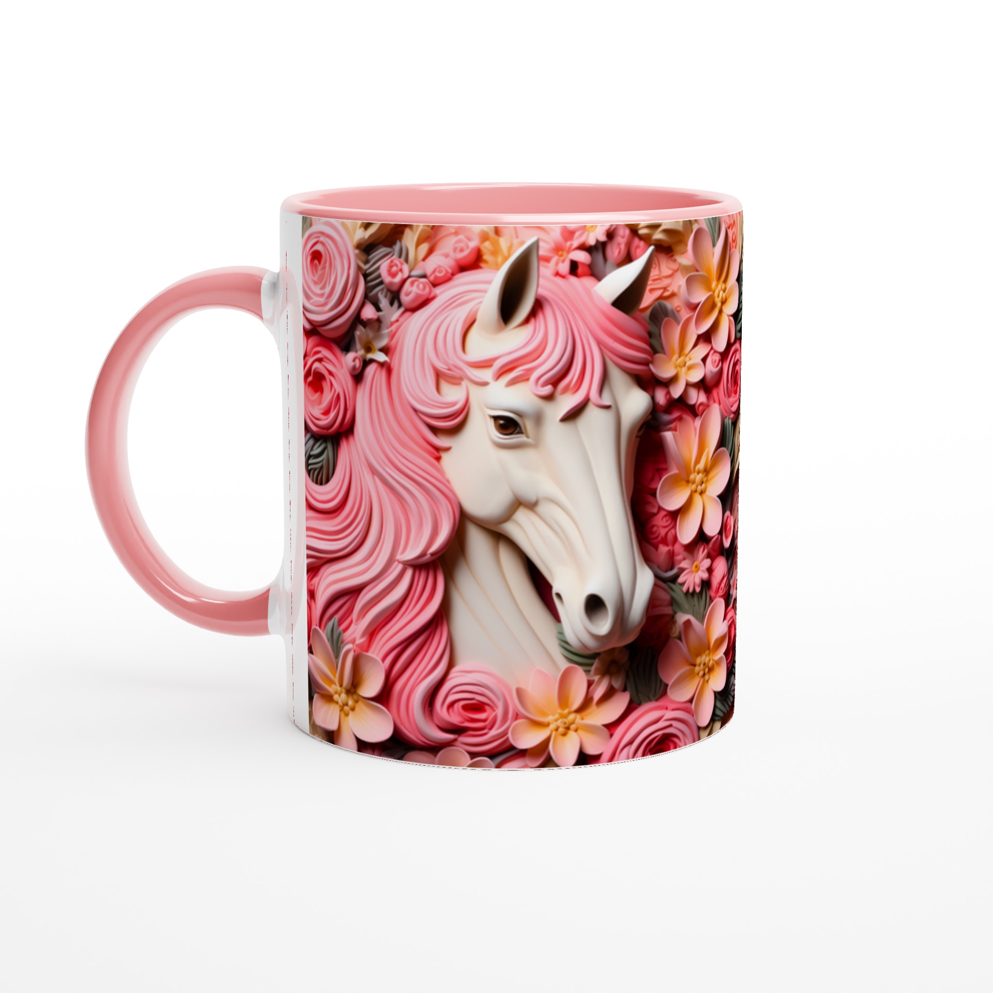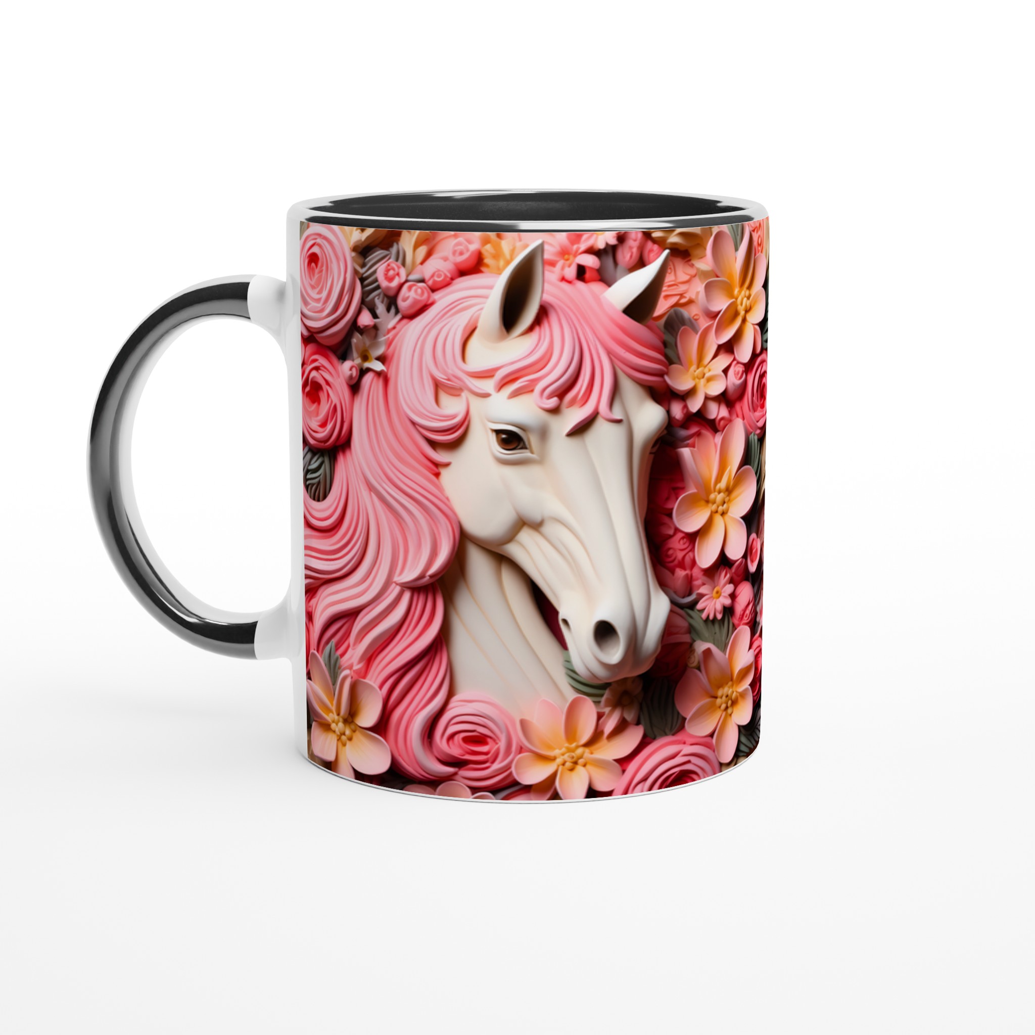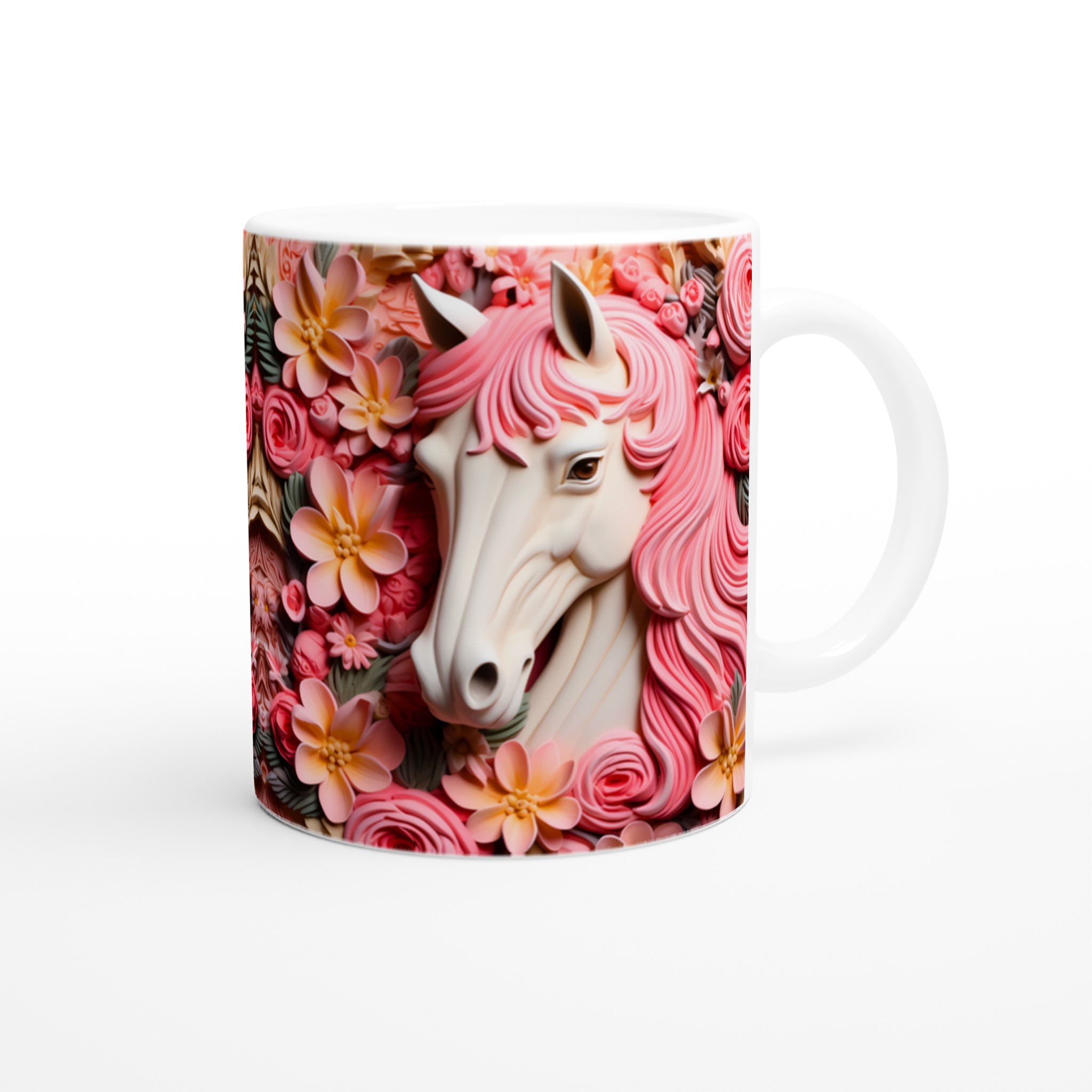 Föreställ dig att börja dagen med en kopp kaffe i denna förtrollande keramiska mugg, prydd med en drömlik häst omgiven av ljuvliga rosa och aprikosfärgade blommor. Denna mugg är inte bara en dryckesbehållare, utan ett konstverk som förvandlar varje sipp till en stund av lugn och skönhet. Med sin blanka vita yta framhävs det fantasifulla trycket med otrolig klarhet, och de levande färgerna består, kopp efter kopp, även efter många turer i mikron och diskmaskinen.