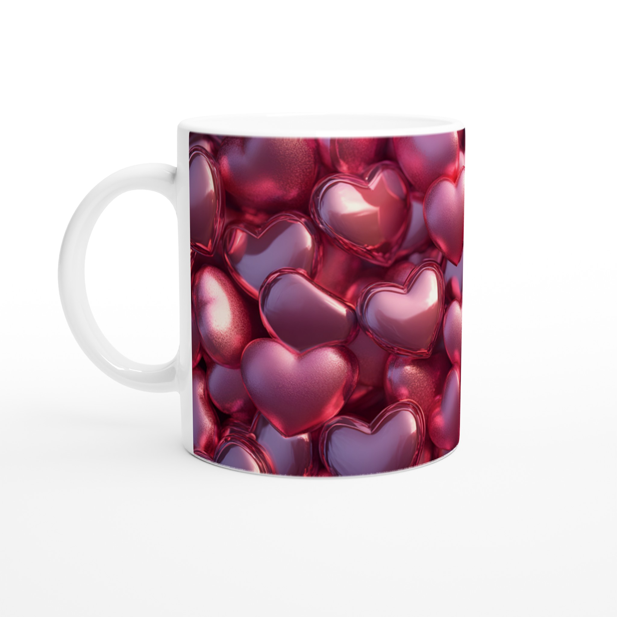 Fånga kärleken i varje klunk med denna förtrollande keramikmugg, prydd med en bakgrund av glänsande rosa hjärtan. Denna mugg är inte bara en behållare för din favoritdryck, utan en hyllning till romantik och värme, perfekt för alla dagens stunder – morgonkaffet, en värmande kopp te eller en härlig varm choklad.