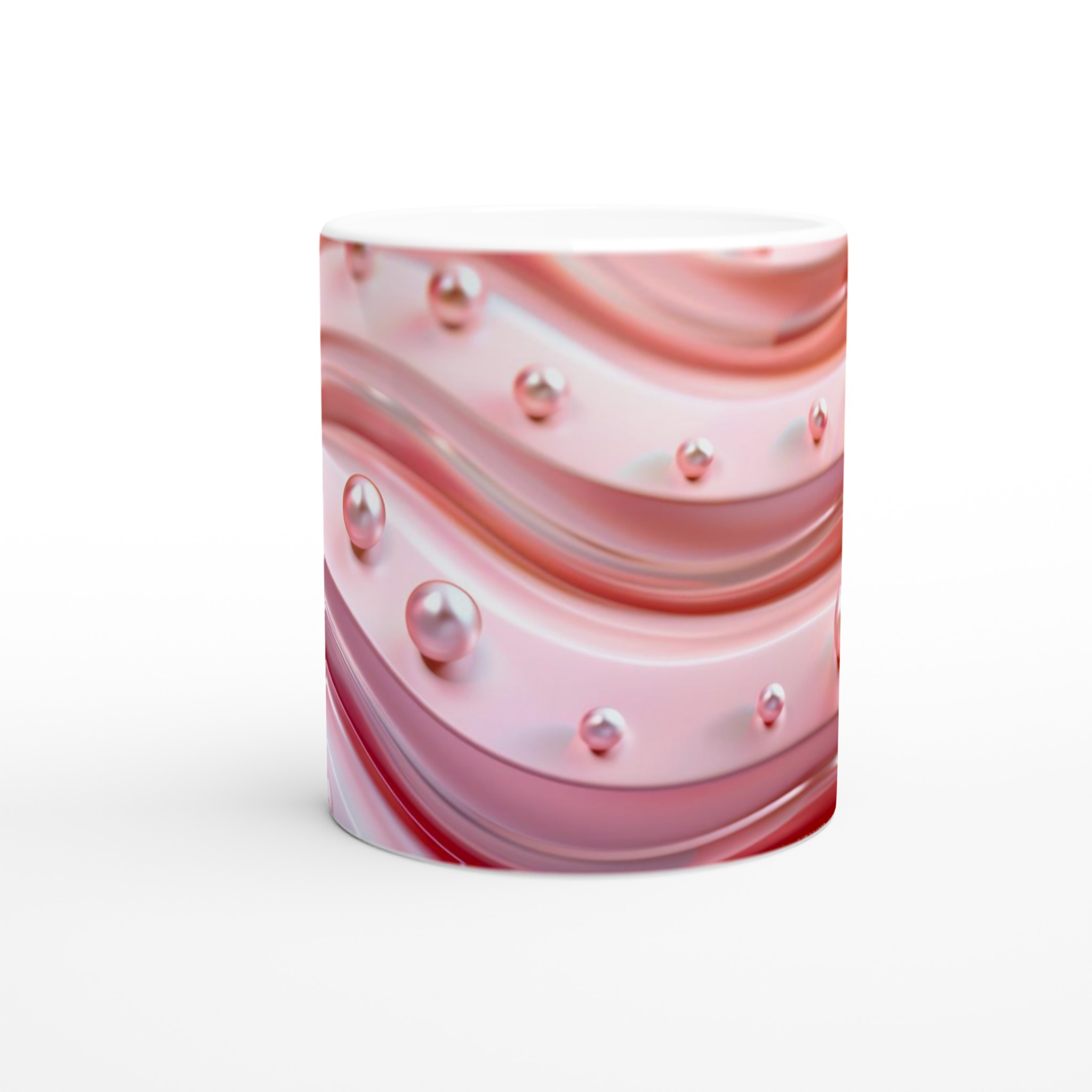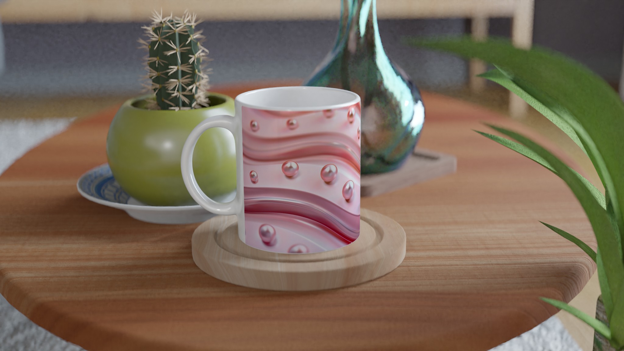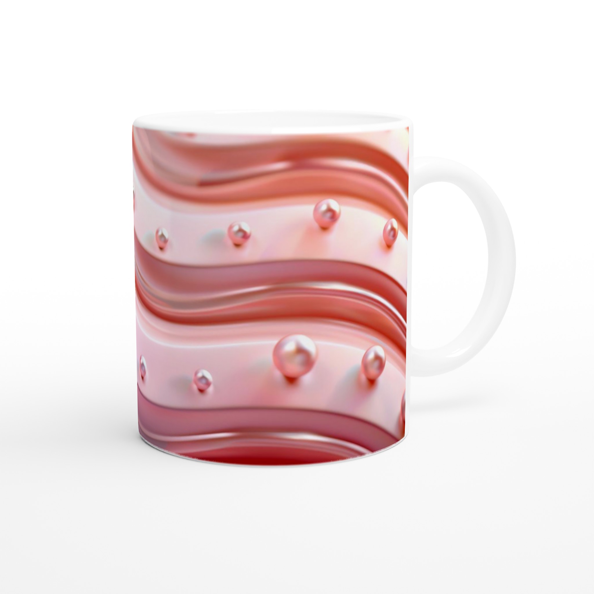 Låt dig svepas med av en våg av rosa elegans med vår förtrollande keramikmugg, inspirerad av bildens lugna flöde och skimrande pärlor. Denna stilrena och vackra mugg är perfekt för alla dagens stunder – morgonkaffet, en värmande kopp te eller en härlig varm choklad. Den blanka ytan gör att trycken framträder klart och färgstarkt, vilket gör muggen till en riktig favorit i vardagen, oavsett om du väljer en klassisk vit eller någon av våra livfulla nyanser.