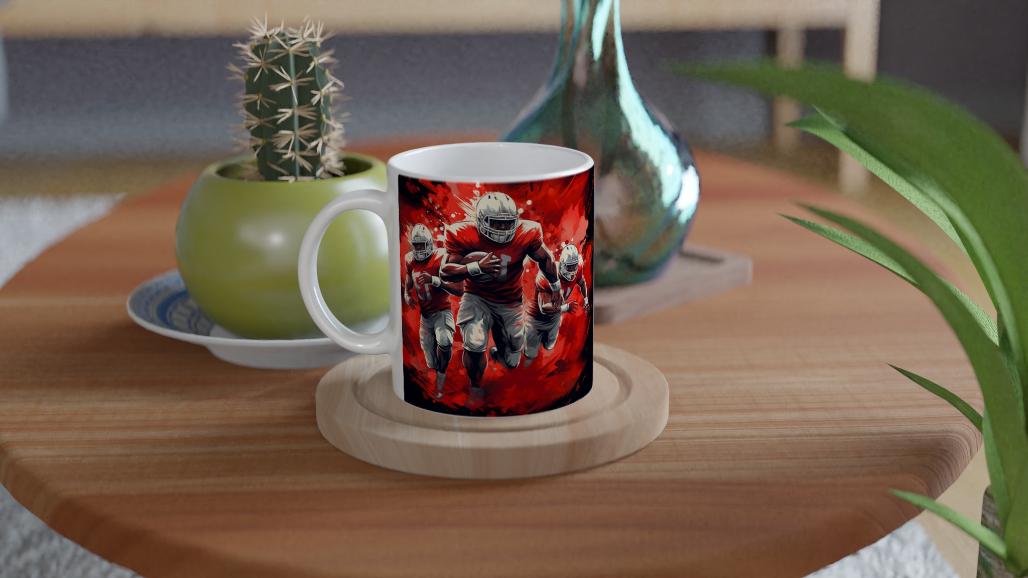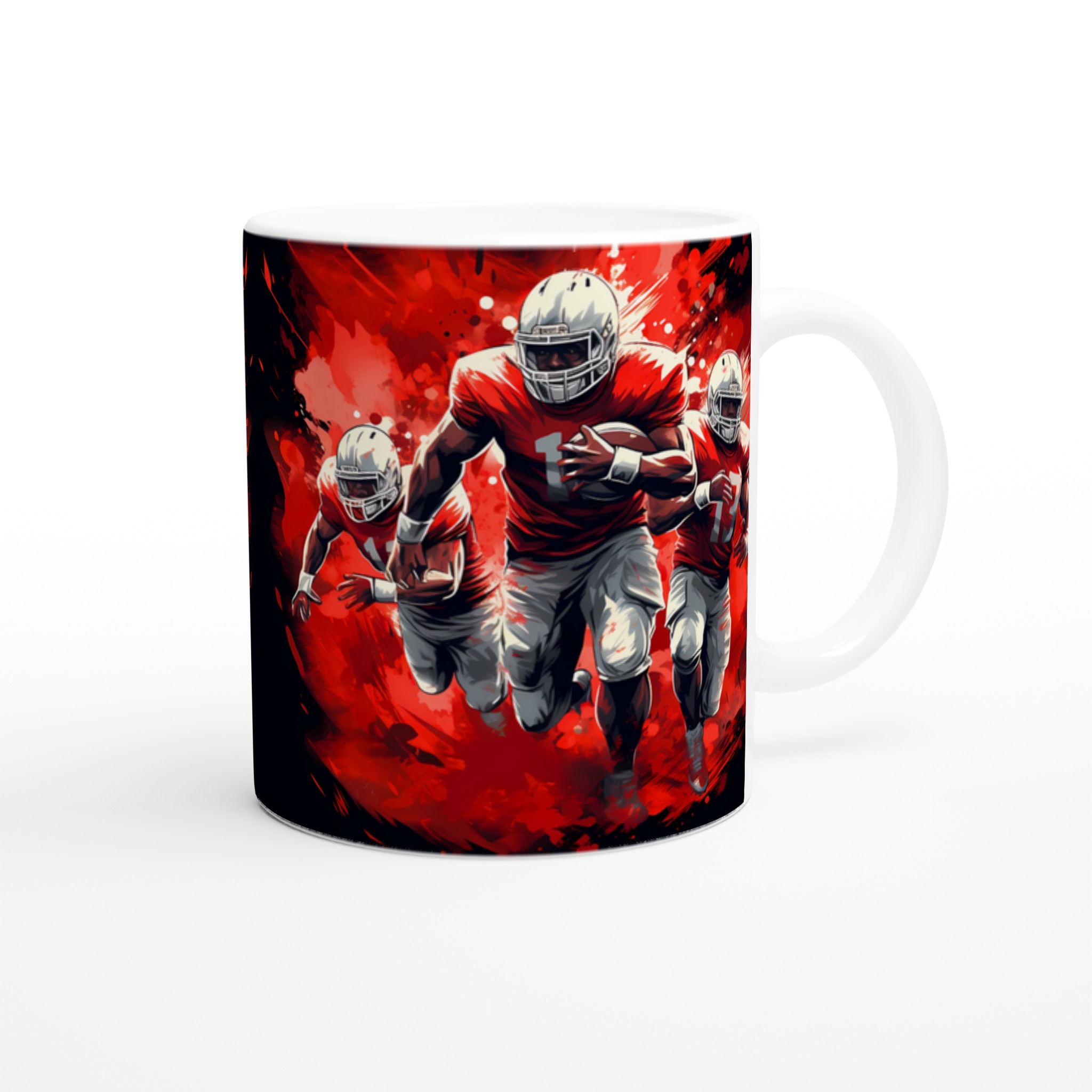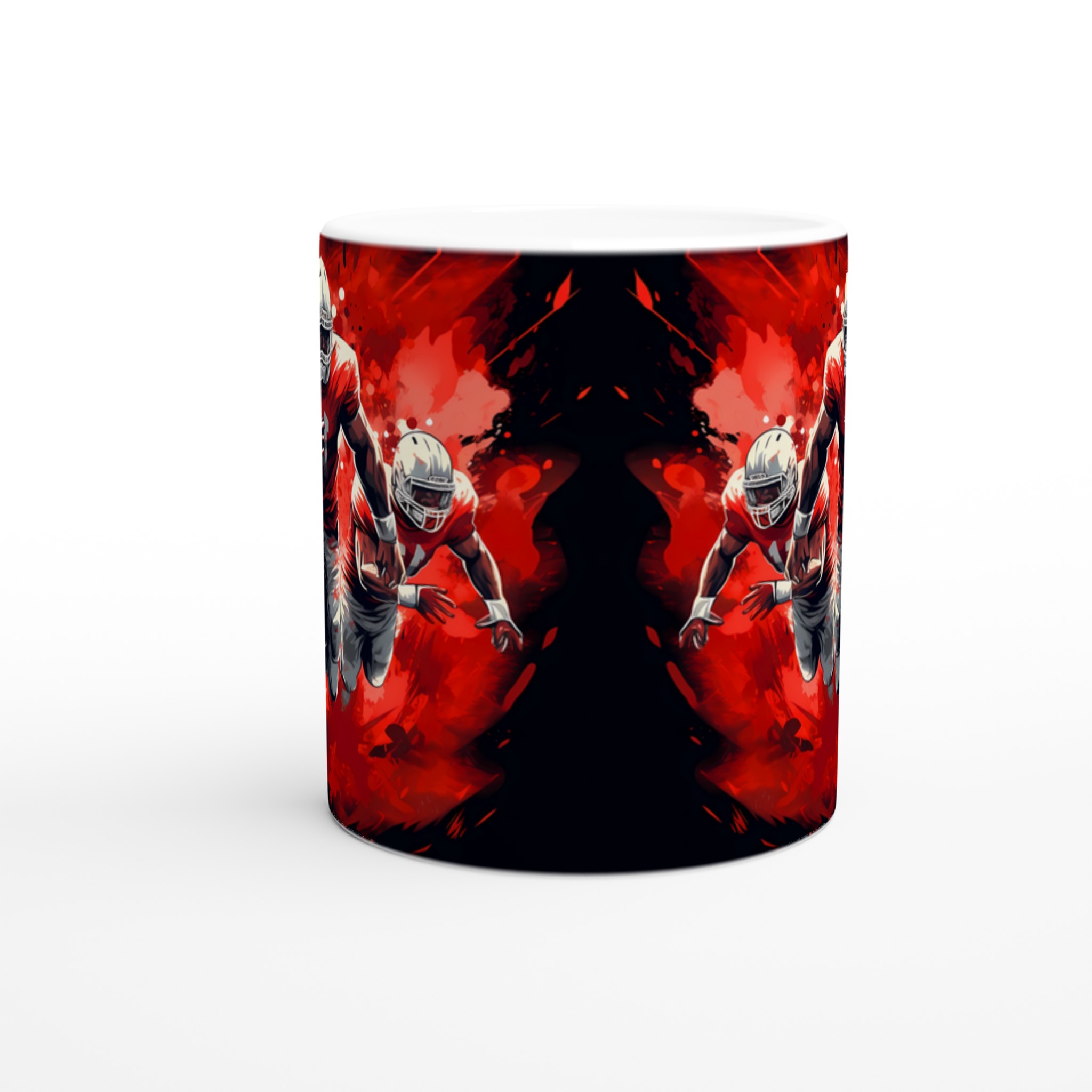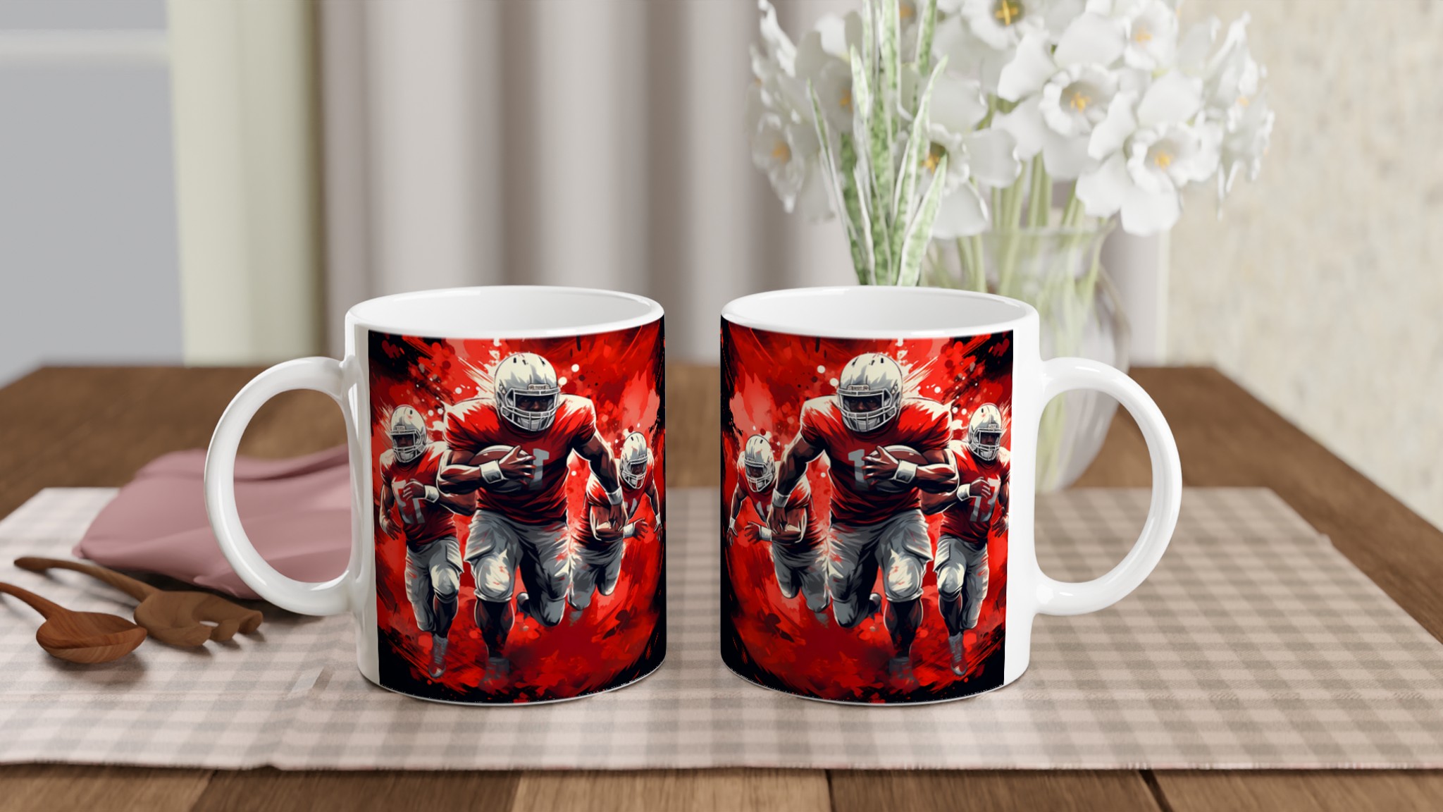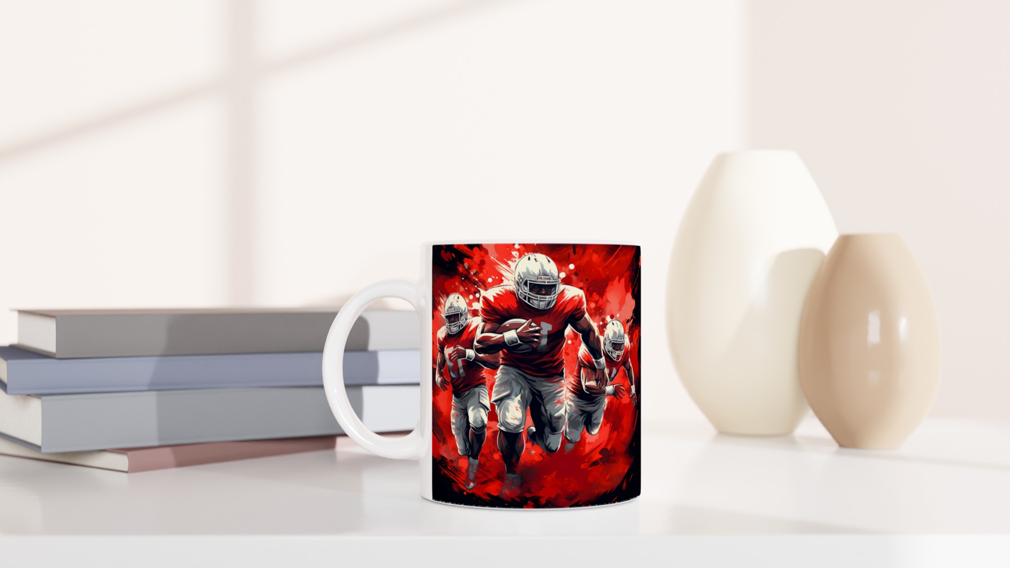Fånga sportens spänning med den här dynamiska keramiska muggen, designad för alla rugbyentusiaster. Varje klunk blir en hyllning till spelets råa energi och beslutsamhet, med en konstnärlig framställning av rugby-spelare i full action mot en dramatisk röd bakgrund. Den här muggen är mer än bara ett kärl för din favoritdryck; den är en daglig påminnelse om passionen och kraften i sporten.