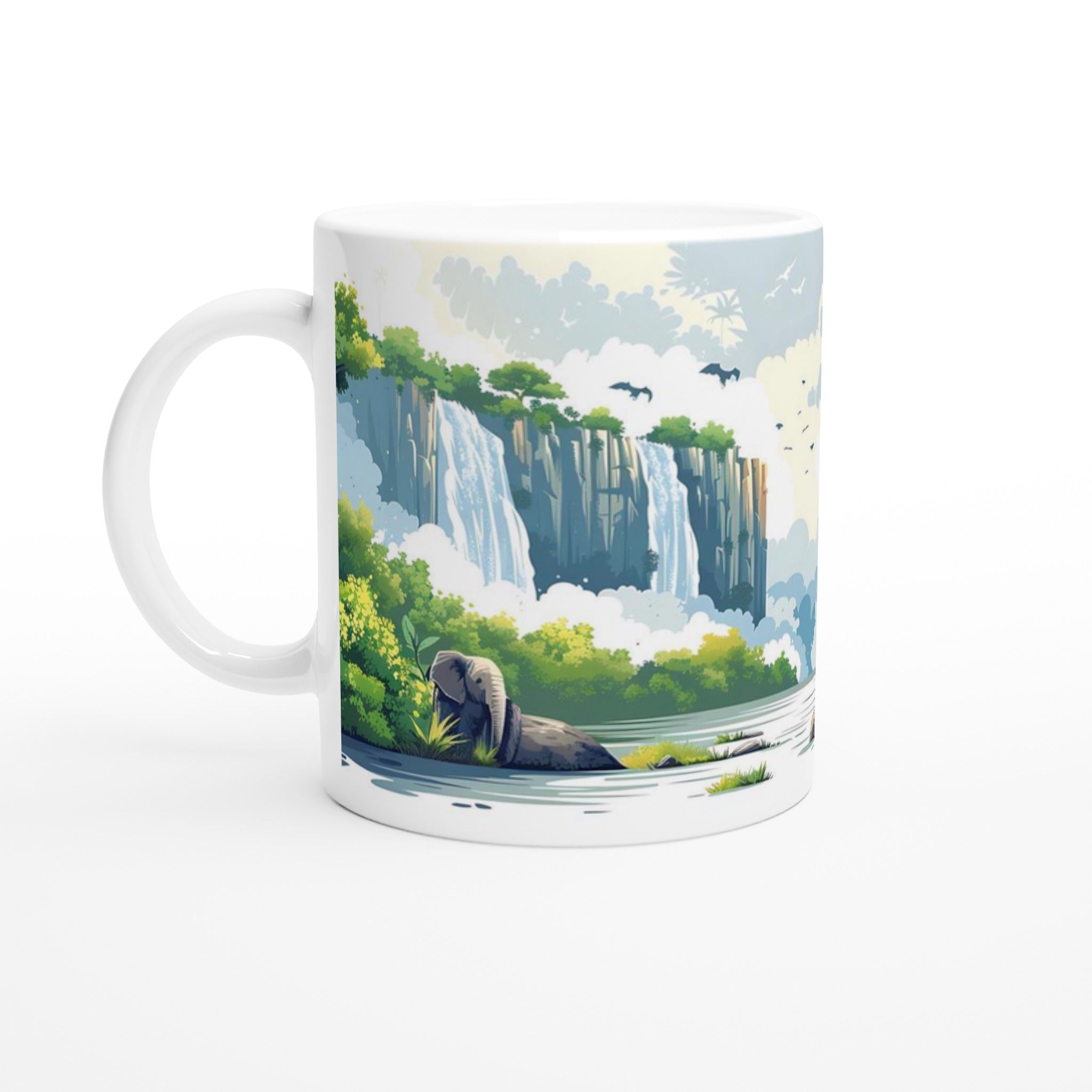 Inspirerad av den majestätiska skönheten i en safari med brusande vattenfall och lummig grönska, ger denna mugg en känsla av äventyr till din vardag. Den blanka ytan ger ett skarpt och levande tryck som verkligen sticker ut, oavsett om det är en personlig design, ett roligt citat eller en present till någon du tycker om.