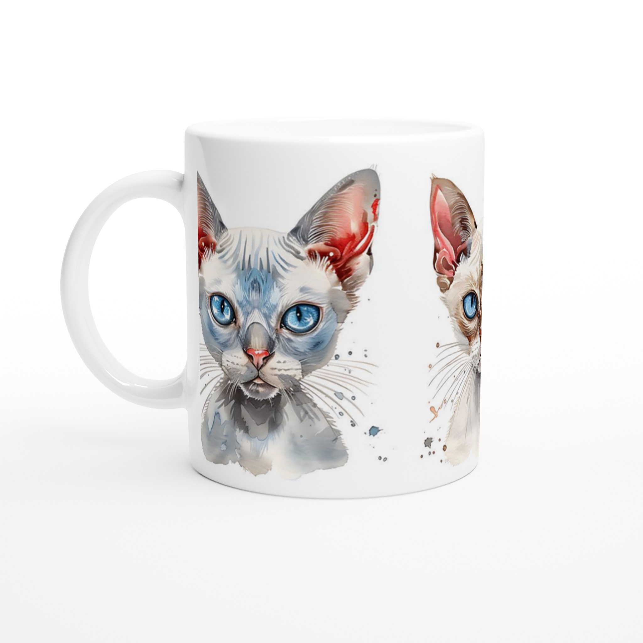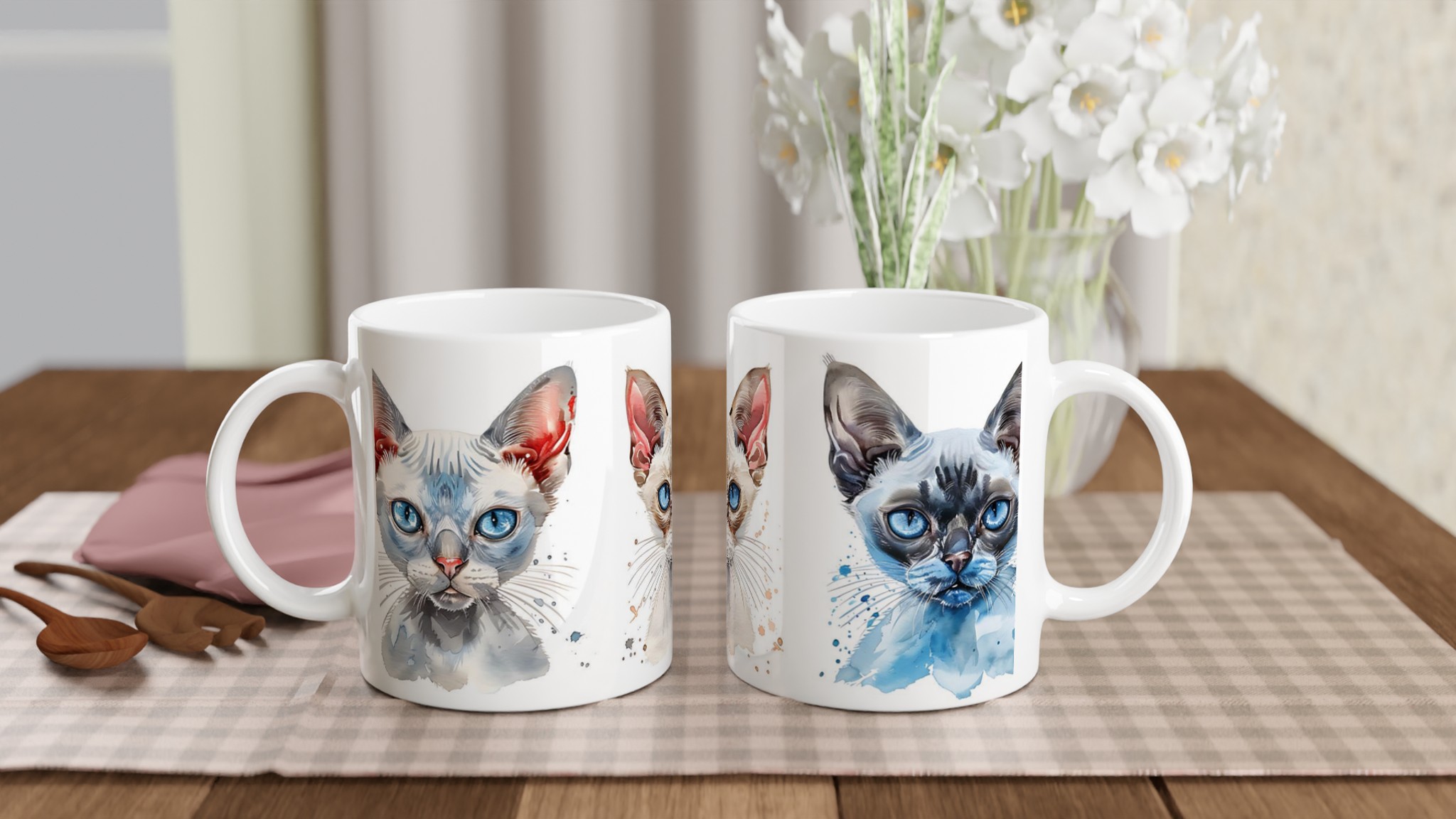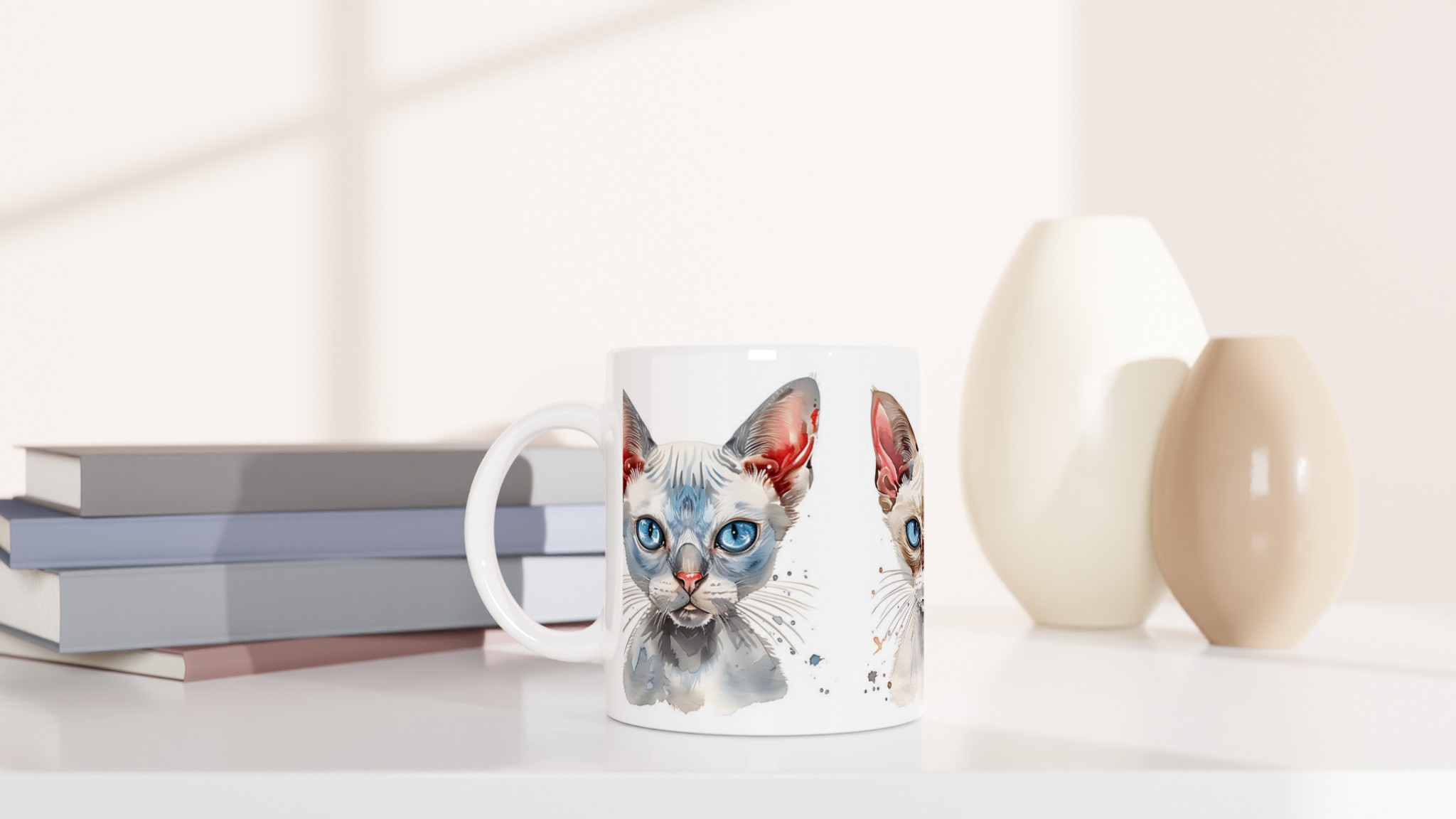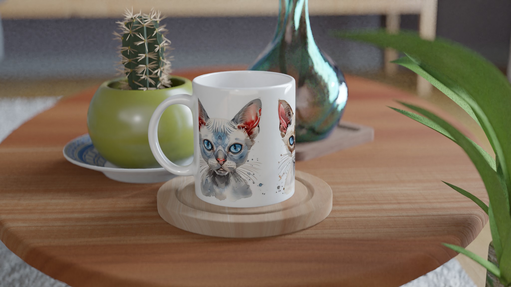 Klassisk keramikmugg, 11 oz, med akvarellmotiv av sfinxkatter