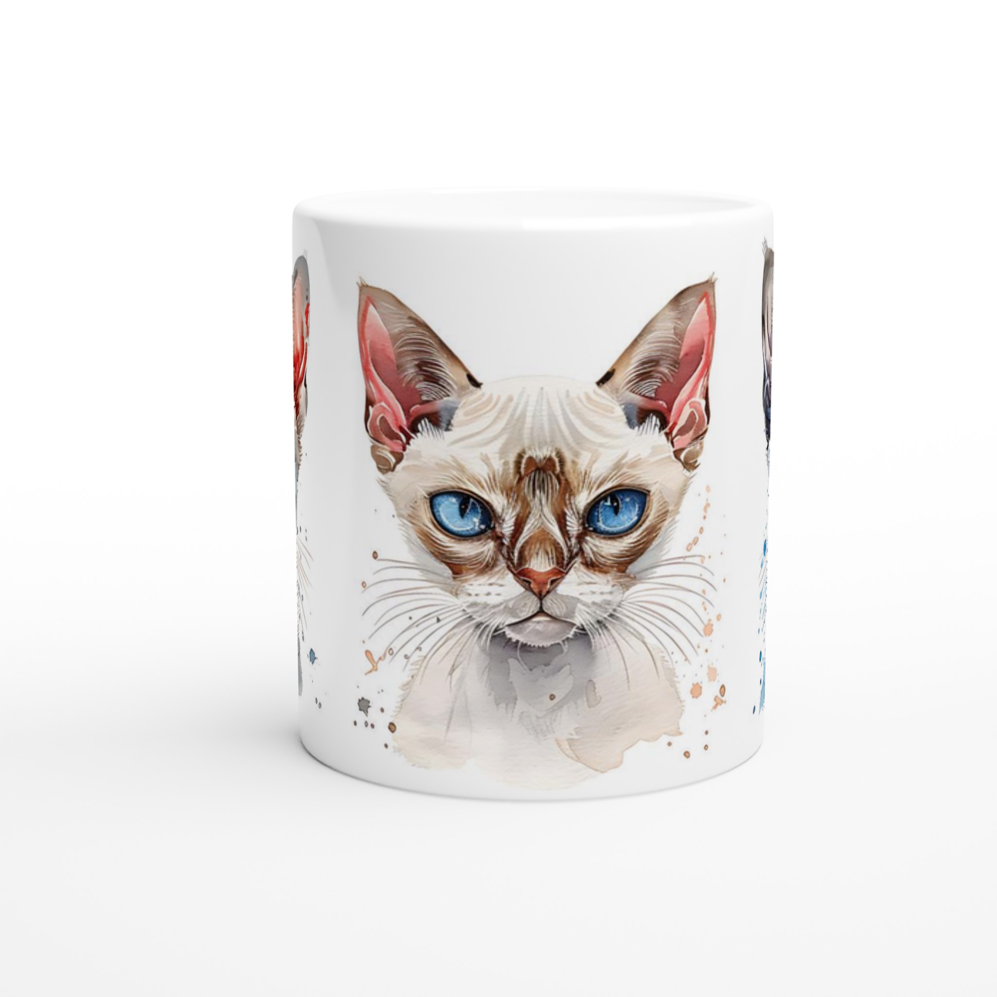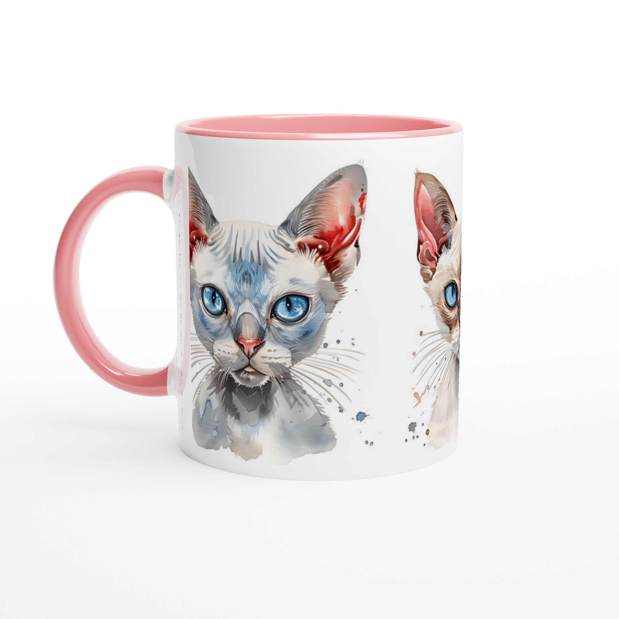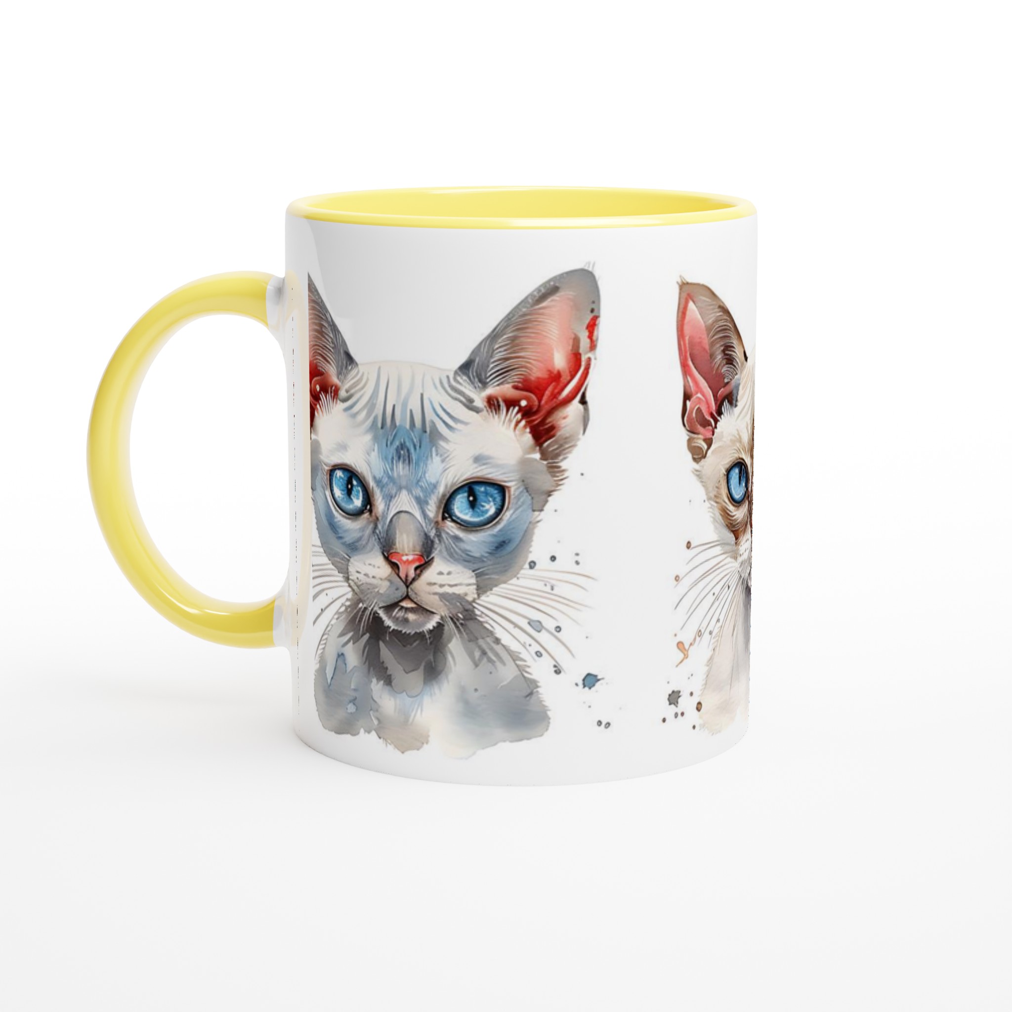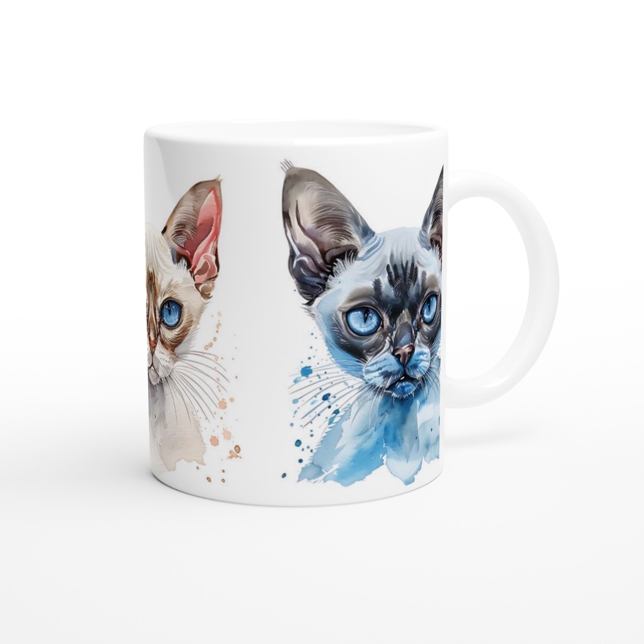 Klassisk keramikmugg, 11 oz, med akvarellmotiv av sfinxkatter