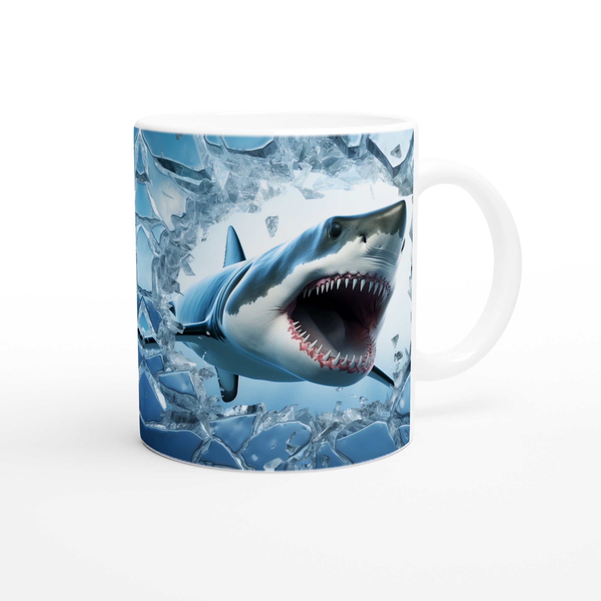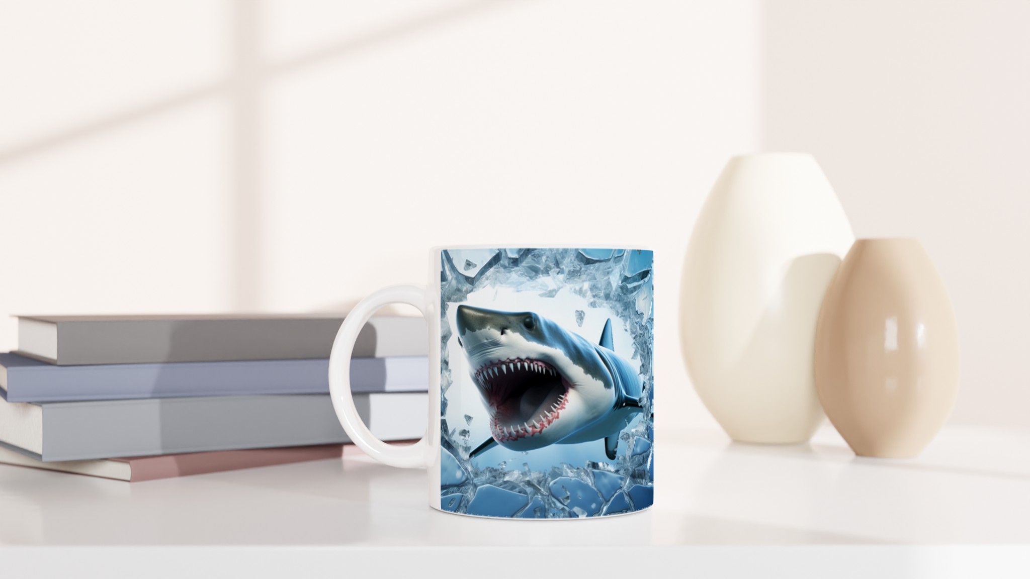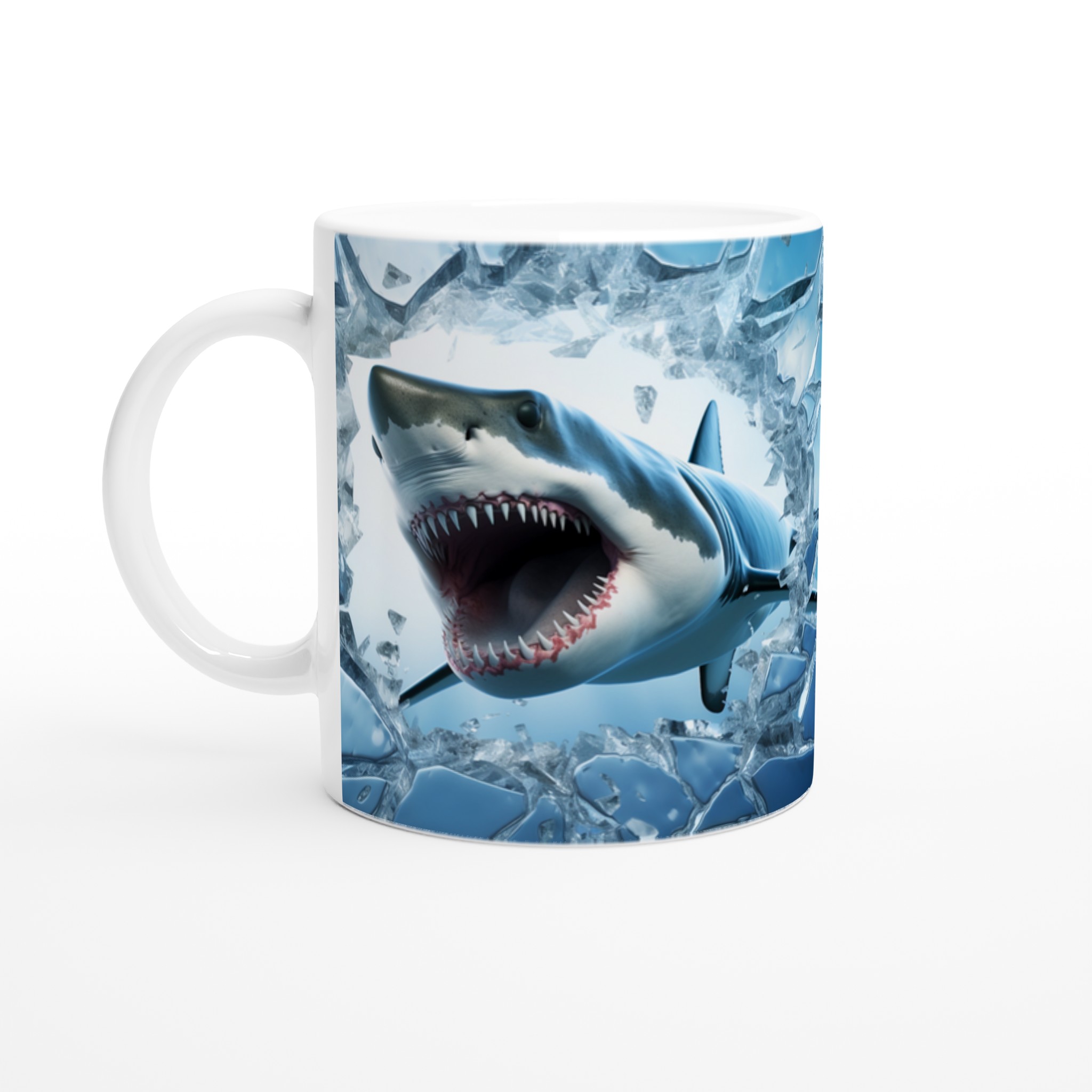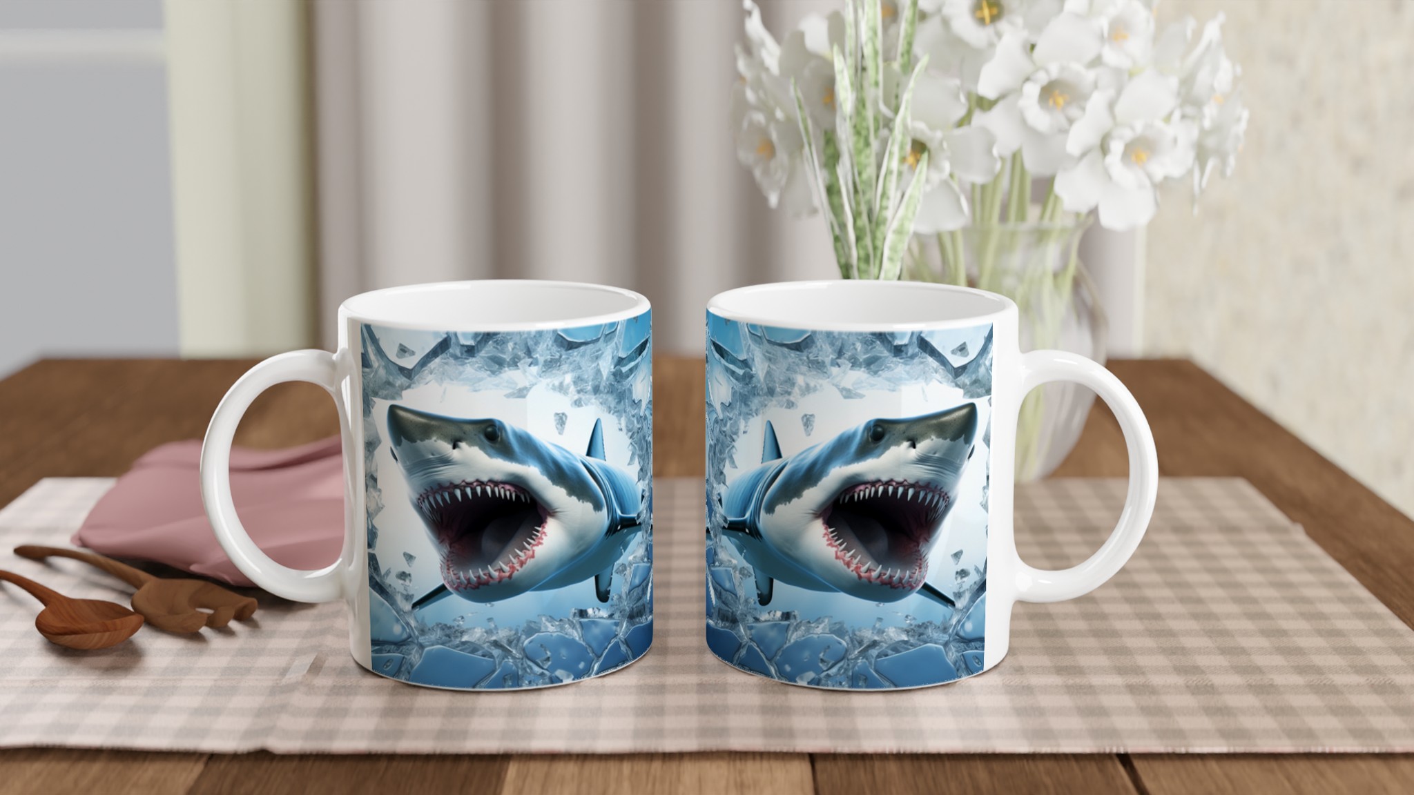 Gör varje fika till ett äventyr med vår ’Shark Attack’ keramiska mugg! Denna mugg fångar den råa kraften och skönheten hos hajar som bryter igenom ytan i en explosion av is och vatten, allt i en fantastisk, dynamisk design. Perfekt för morgonkaffet, kvällens varma choklad eller när du bara vill njuta av en kopp te med en extra kick av spänning. Den blanka vita ytan gör att trycken framhävs med klara och levande färger, som håller sig fina även efter många turer i mikron och diskmaskinen.