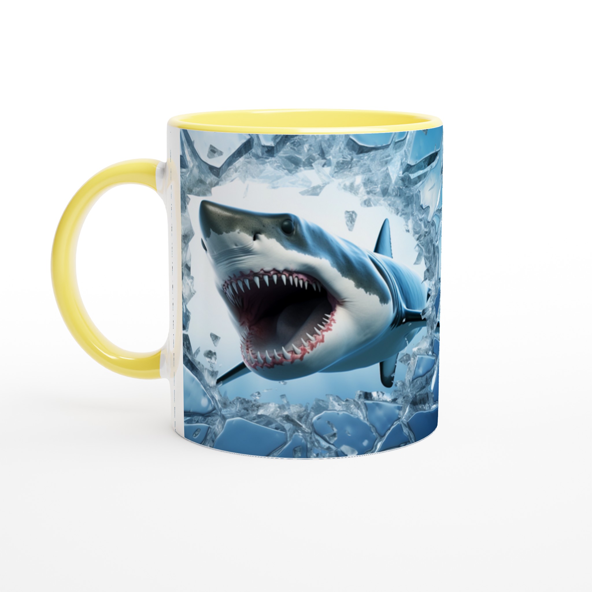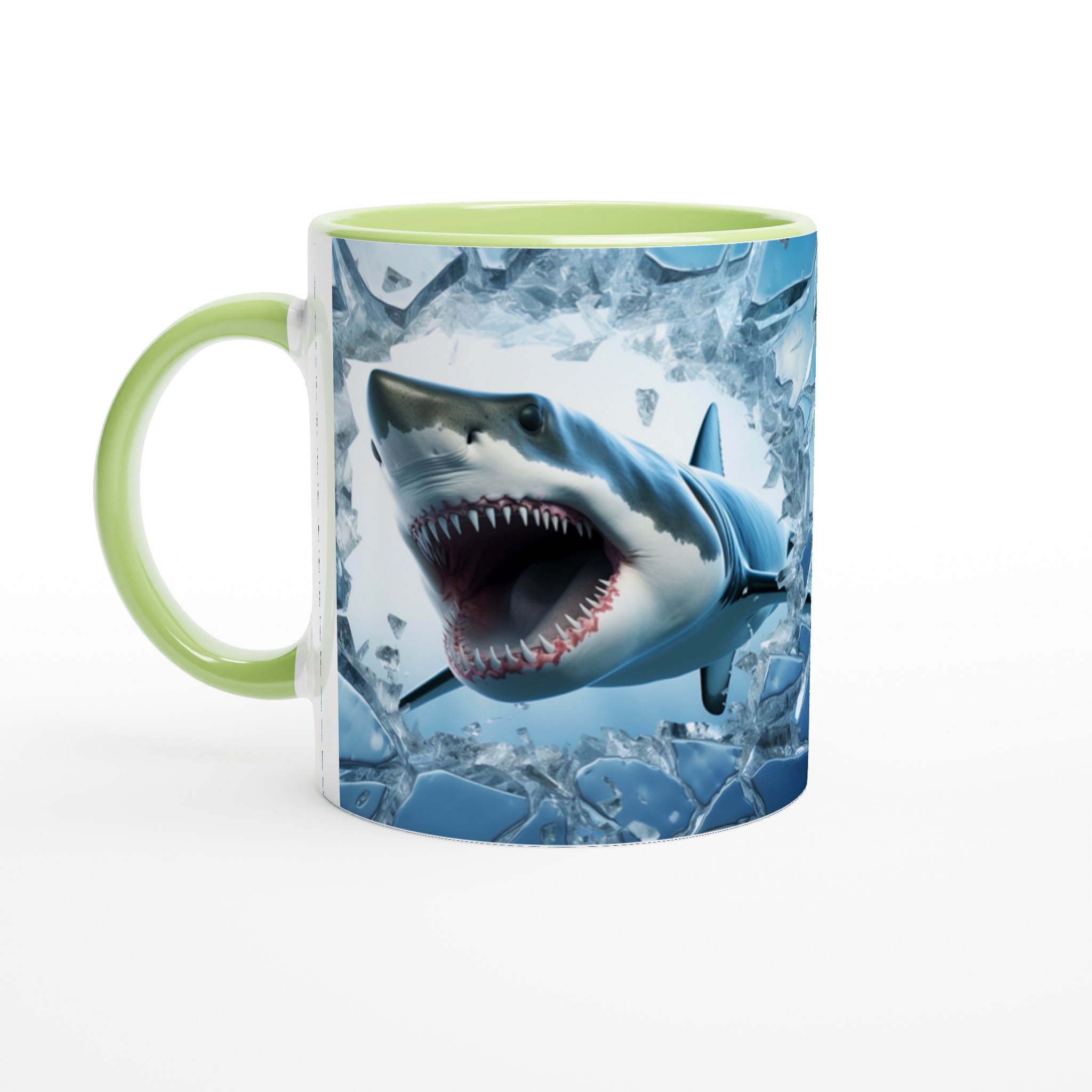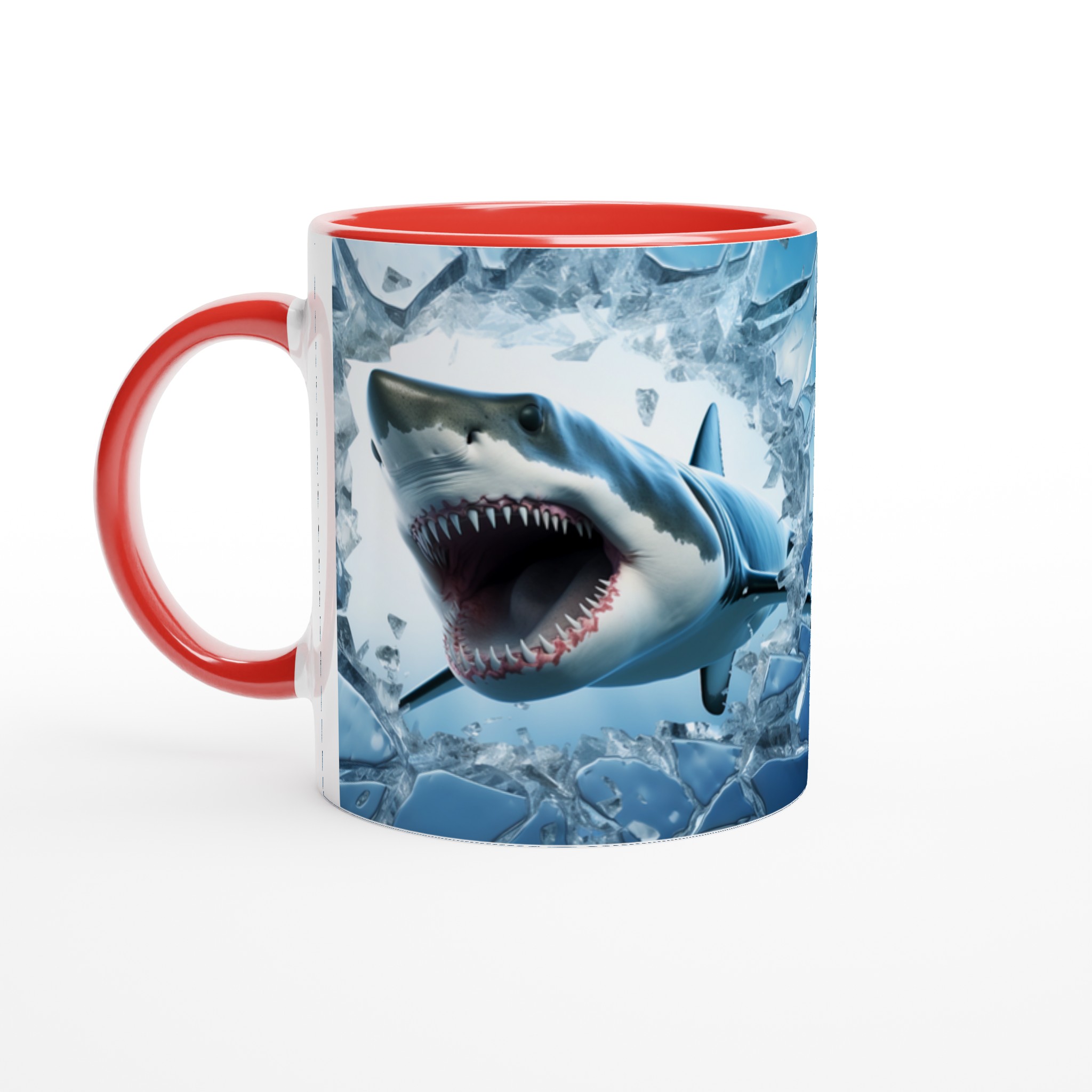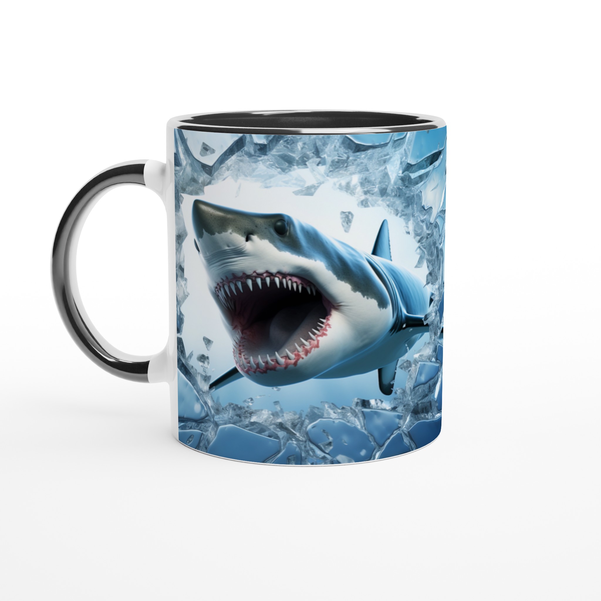Gör varje fika till ett äventyr med vår ’Shark Attack’ keramiska mugg! Denna mugg fångar den råa kraften och skönheten hos hajar som bryter igenom ytan i en explosion av is och vatten, allt i en fantastisk, dynamisk design. Perfekt för morgonkaffet, kvällens varma choklad eller när du bara vill njuta av en kopp te med en extra kick av spänning. Den blanka vita ytan gör att trycken framhävs med klara och levande färger, som håller sig fina även efter många turer i mikron och diskmaskinen.