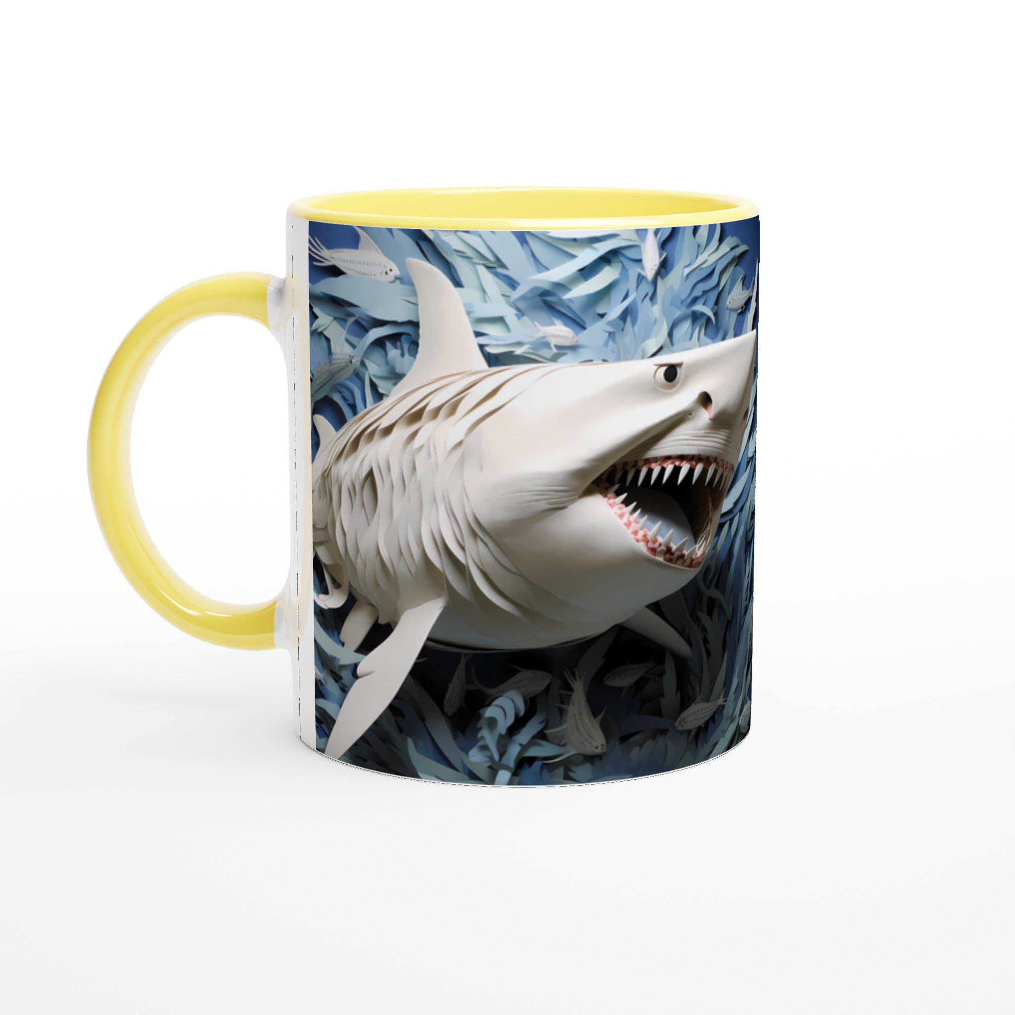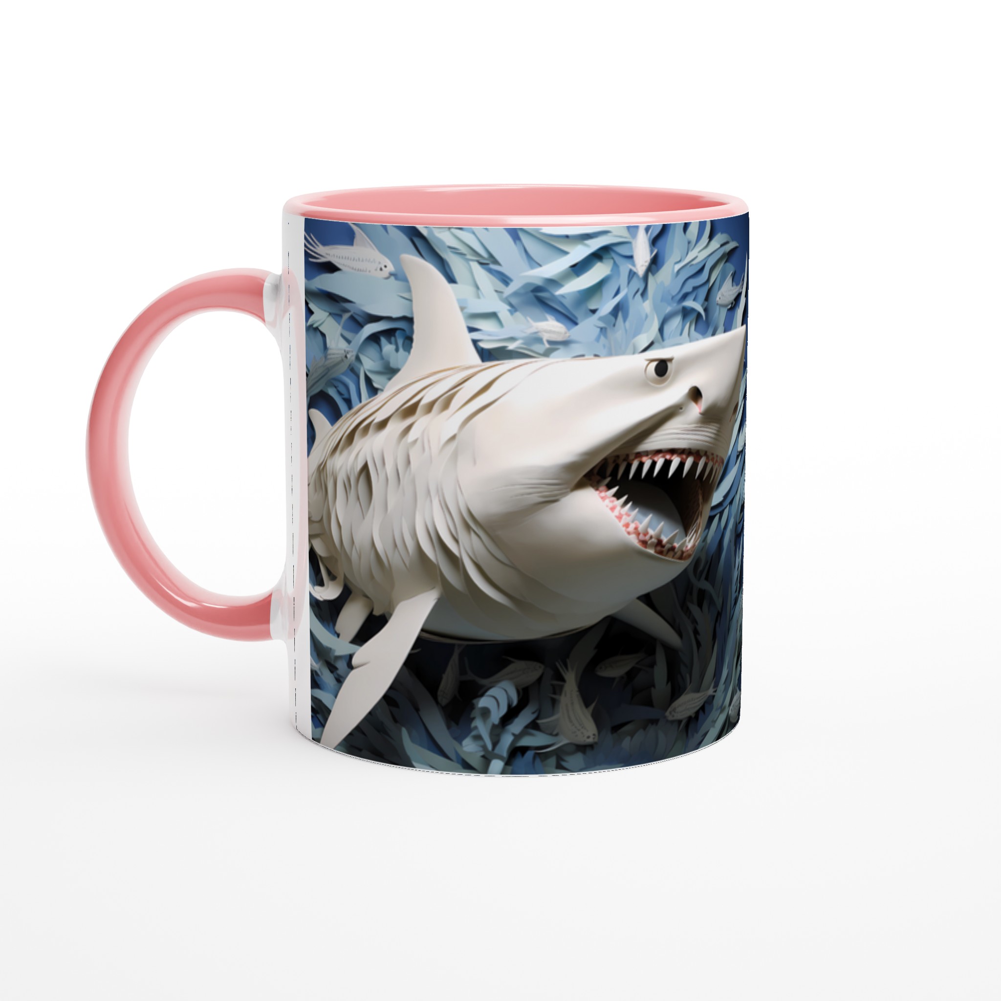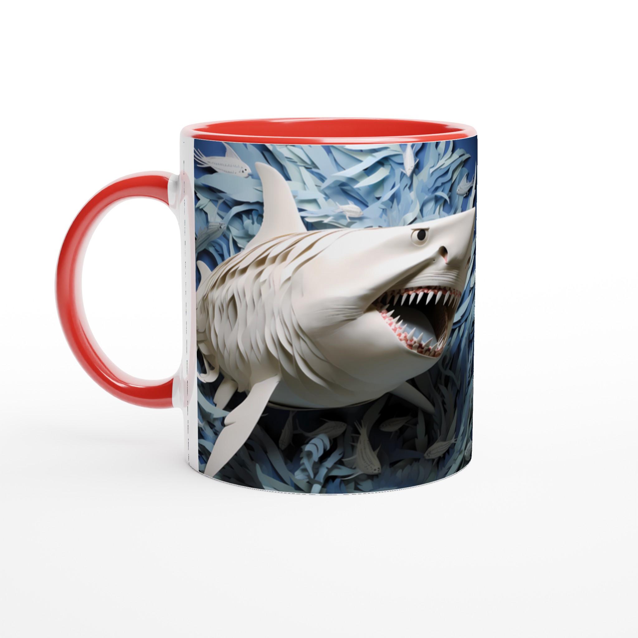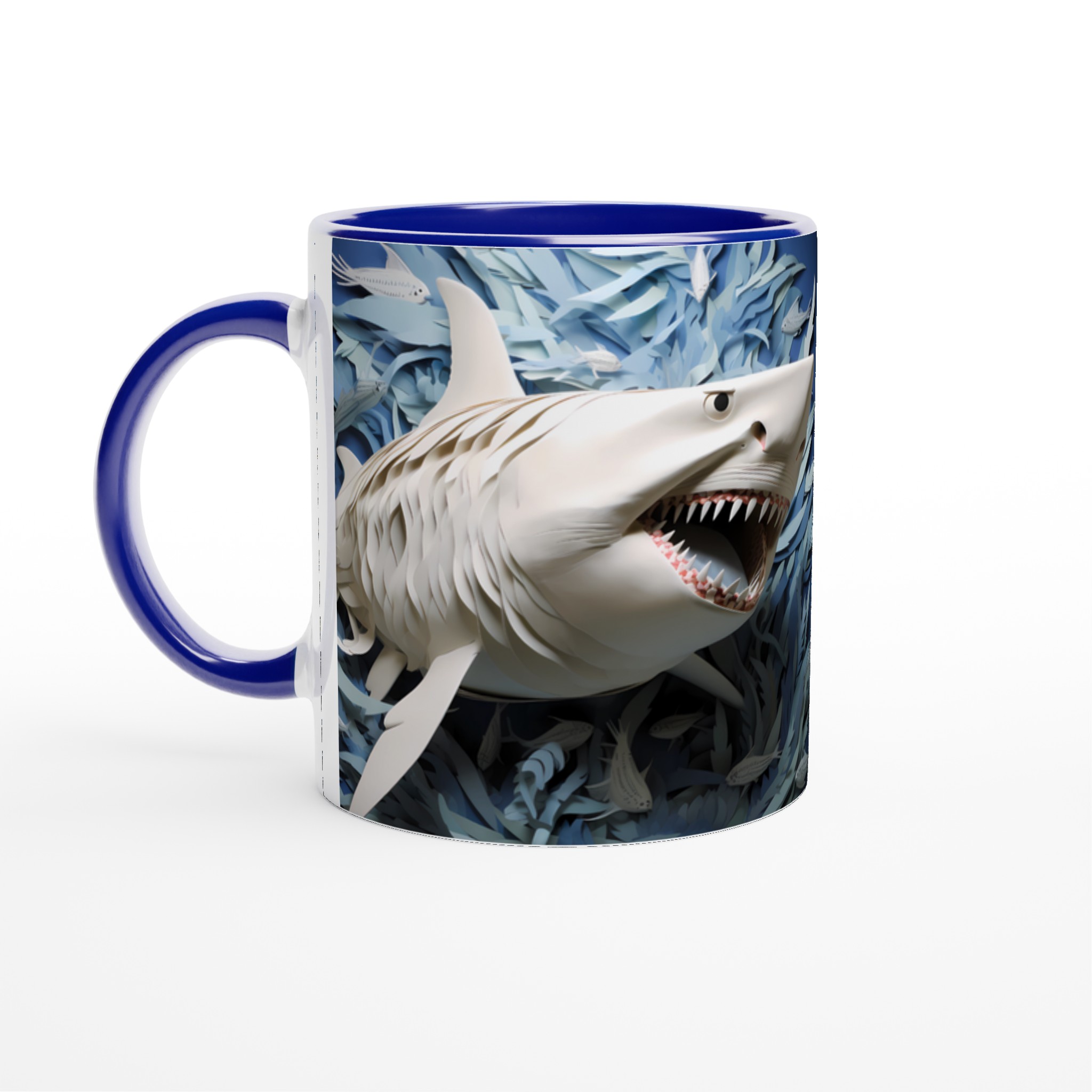 Dyk rakt in i din morgonrutin med vår unika keramiska mugg, prydd med ett dramatiskt men stilrent hajmönster. Den här muggen blir snabbt en vardagsfavorit och en riktig konversationsstartare, perfekt för morgonkaffet, kvällens varma choklad eller när du bara vill njuta av en kopp te. Den blanka vita ytan framhäver tryckets intensiva färger och skarpa detaljer, som håller sig fina även efter många turer i mikron och diskmaskinen.