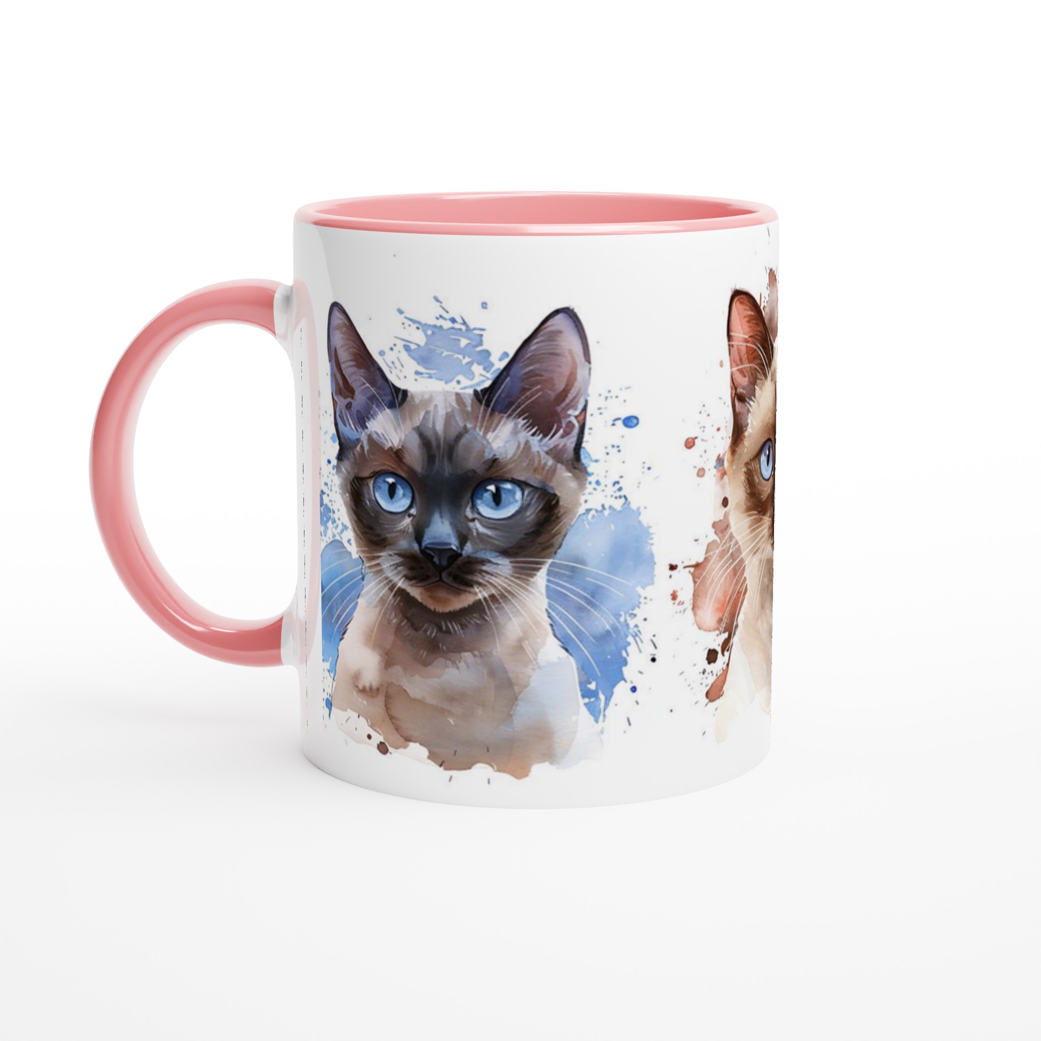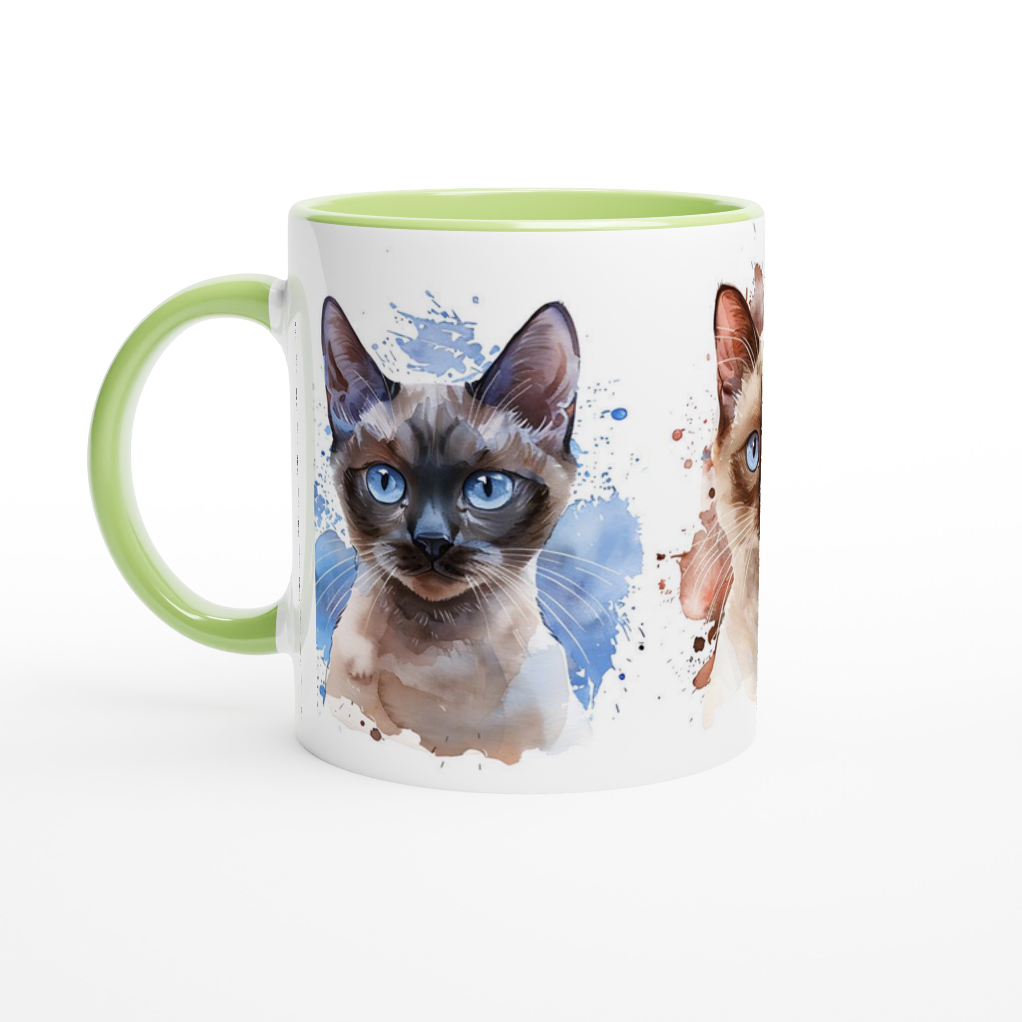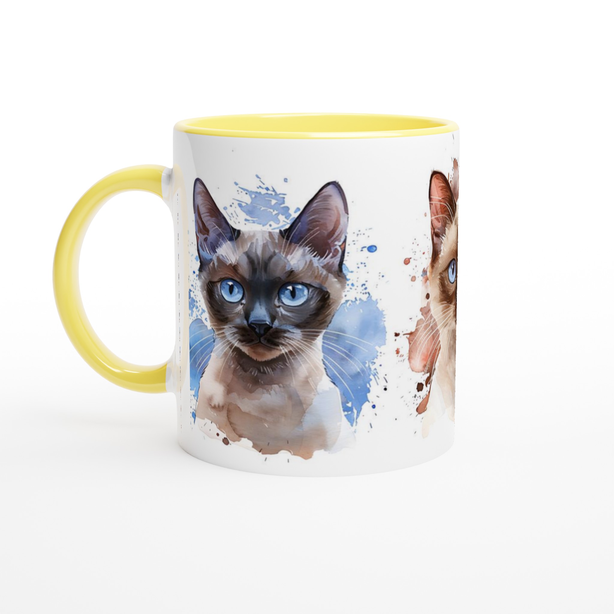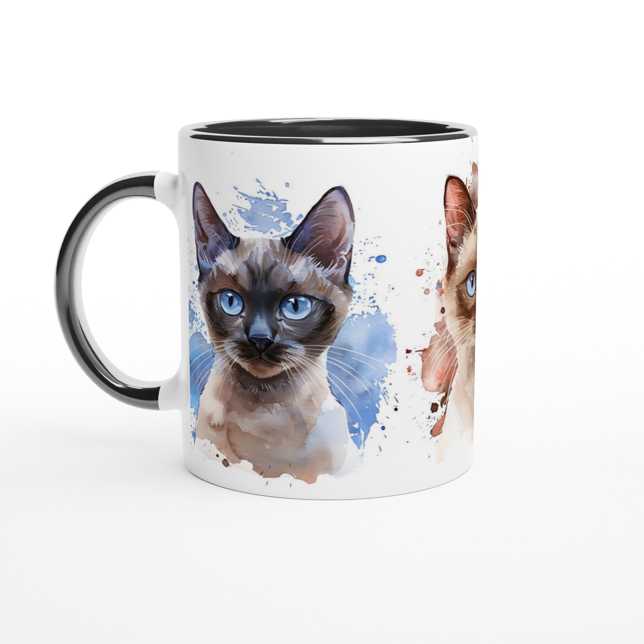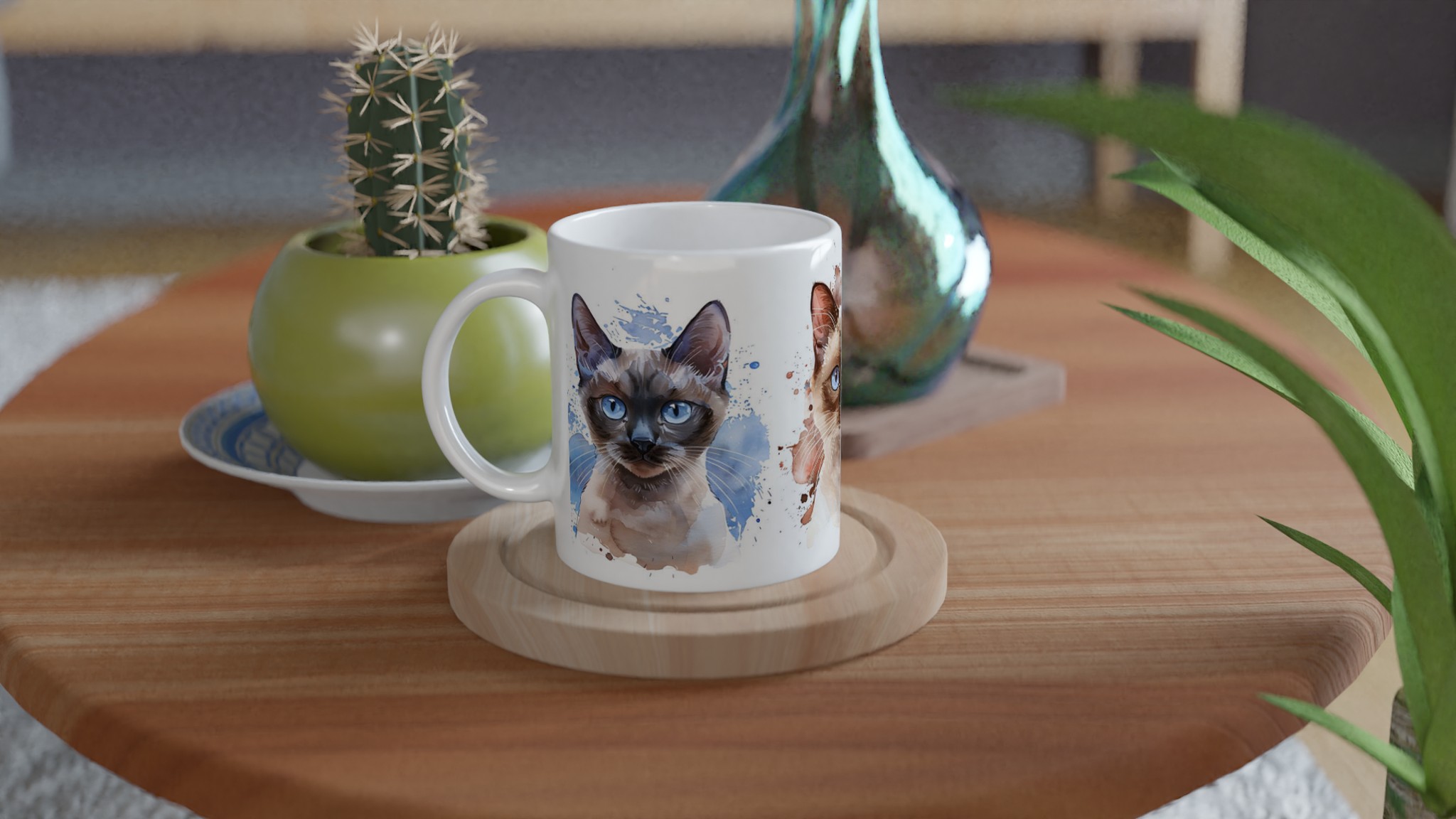 För kattälskaren som uppskattar både stil och en god kopp! Den här unika keramiska muggen, prydd med en förtrollande akvarellillustration av en siamesk katt, blir snabbt en favorit. De levande färgstänkarna bakom den detaljrika kattbilden ger varje mugg en konstnärlig touch, perfekt för morgonkaffet, kvällens varma choklad, eller när du bara vill njuta av en kopp te med en gnutta personlighet.