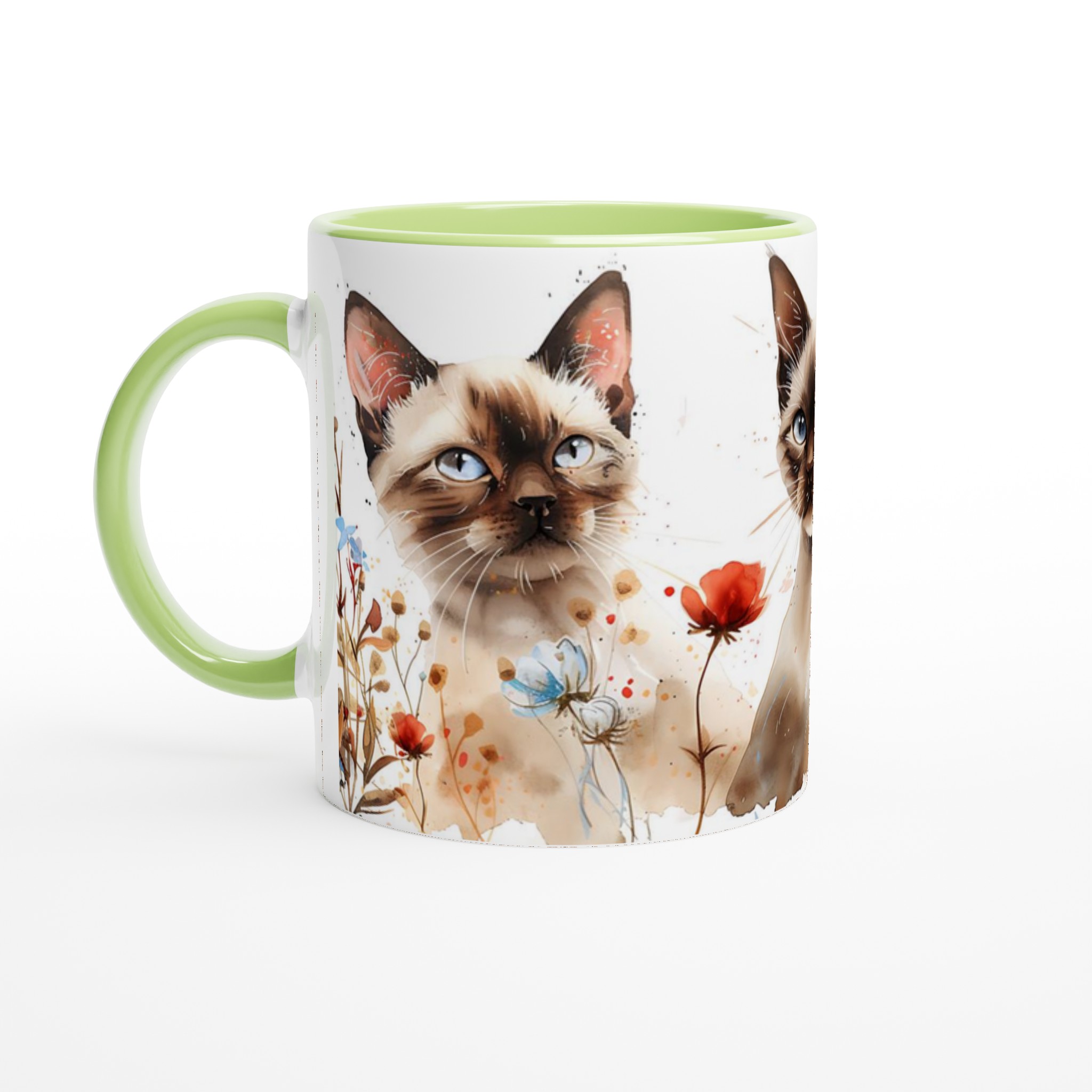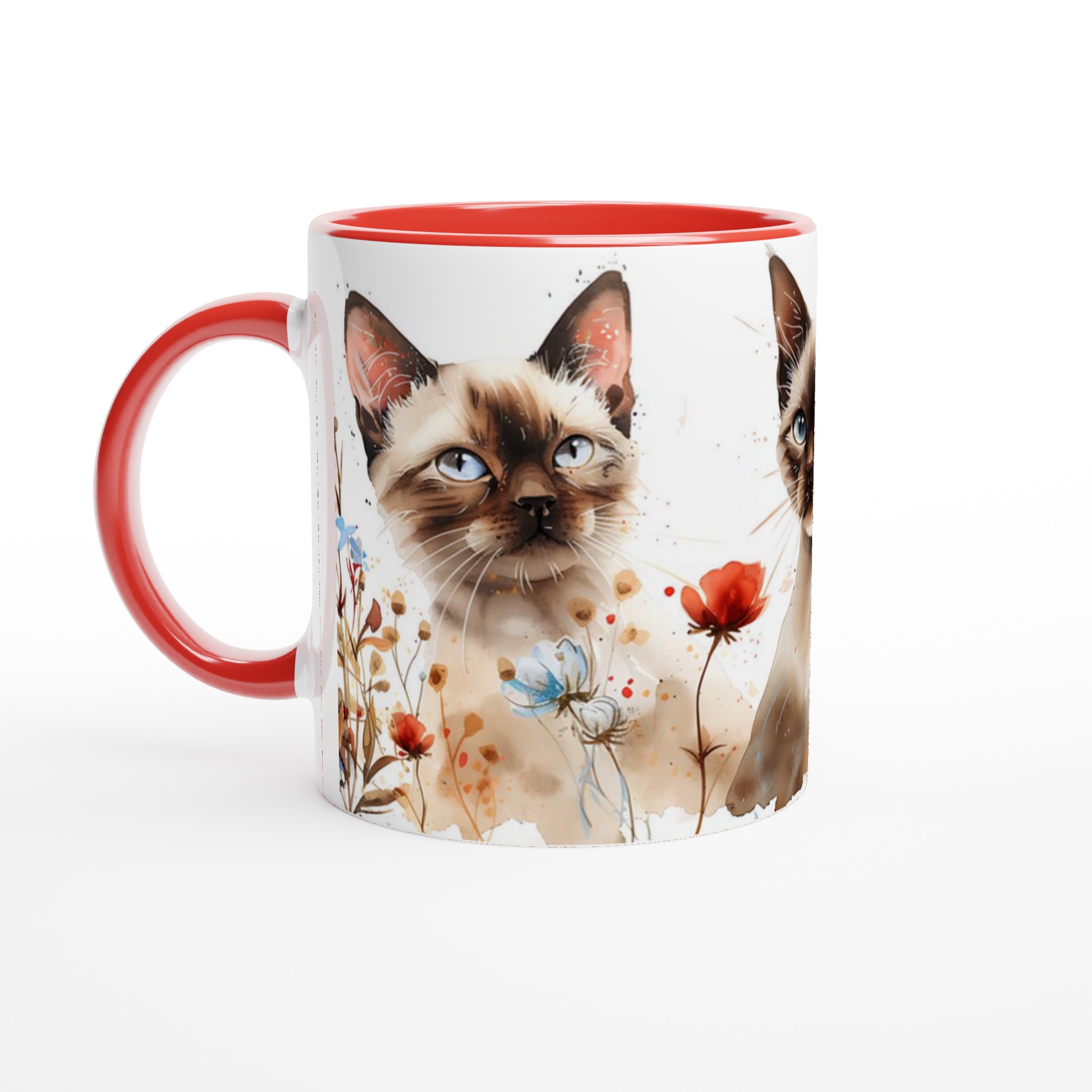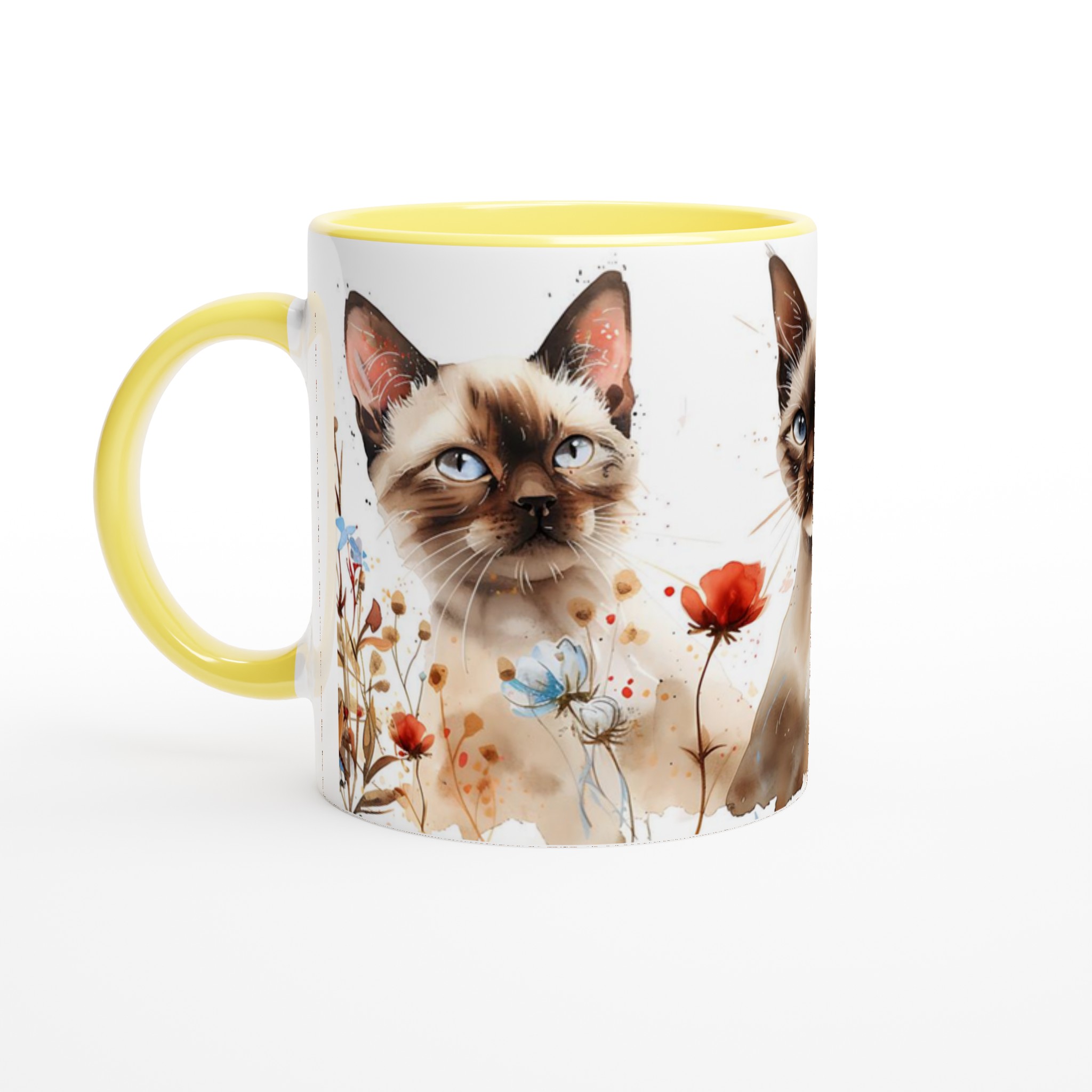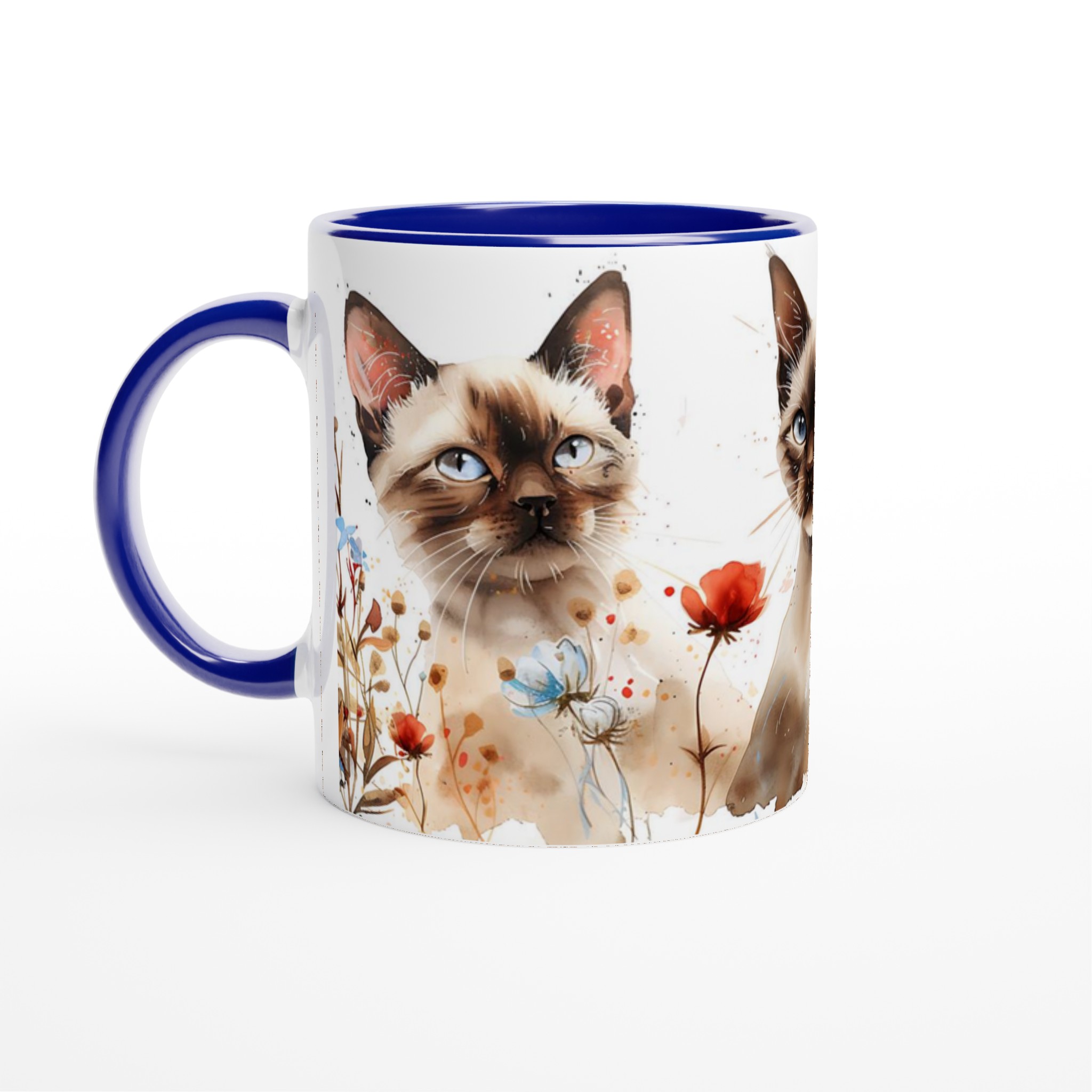 Siamkattsdrömmar: Keramisk Mugg – Konstnärlig Akvarell med Charmiga Katter & Blommor