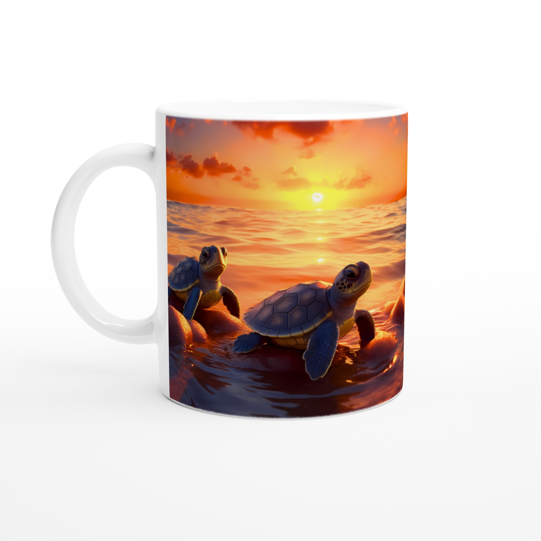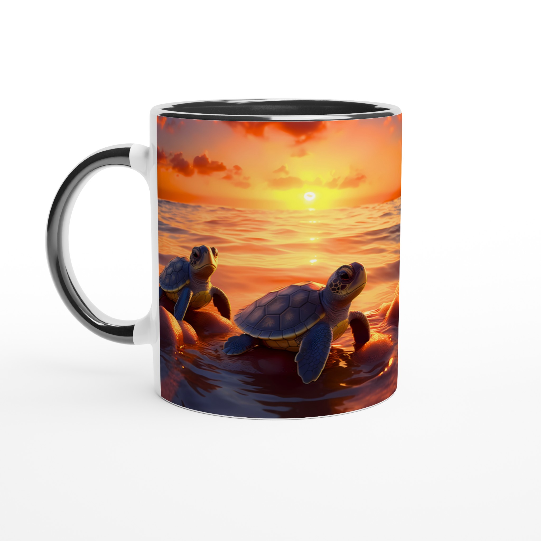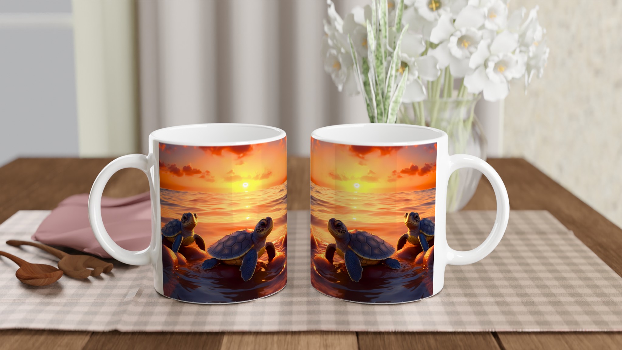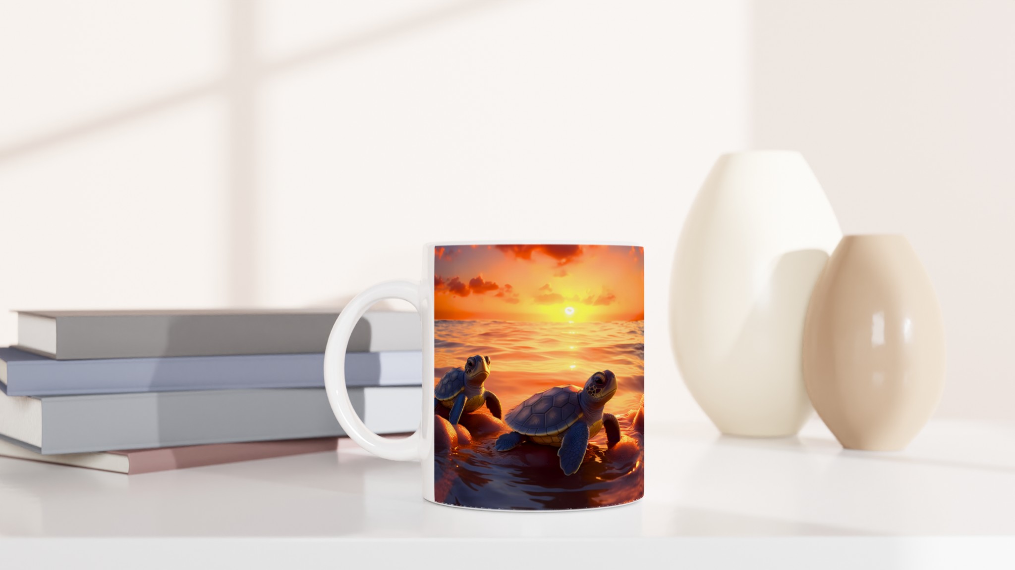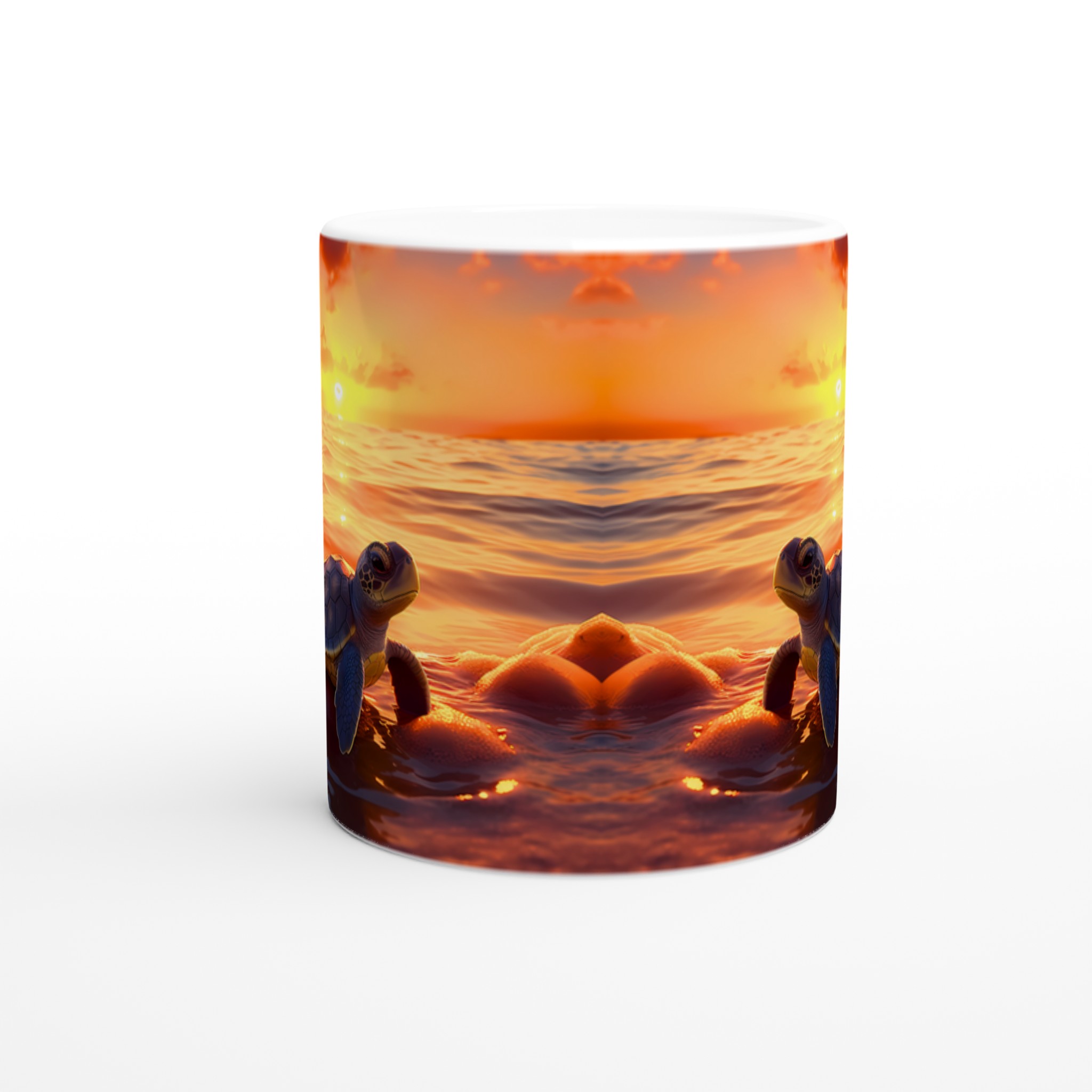Fånga den lugna magin från en solnedgång över havet med vår unika keramiska mugg, prydd med bedårande sjösköldpaddor som reflekterar de varma, gyllene tonerna från horisonten. Den här stilrena keramiska muggen blir snabbt en vardagsfavorit. Perfekt för morgonkaffet, kvällens varma choklad eller när du bara vill njuta av en kopp te.