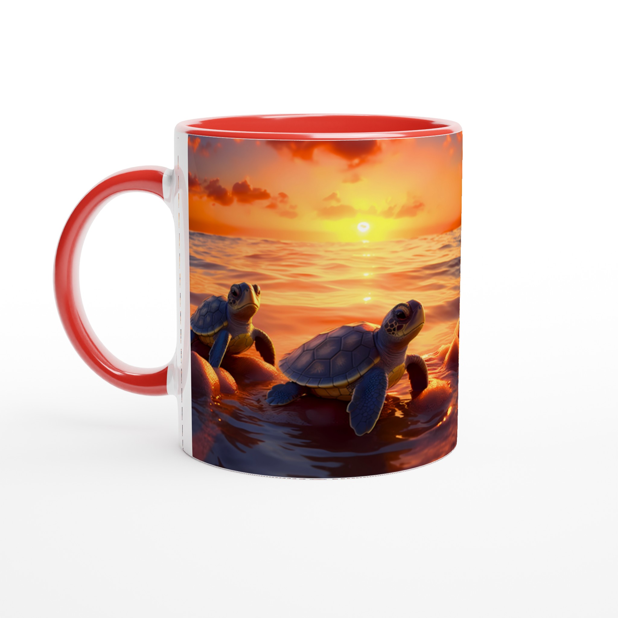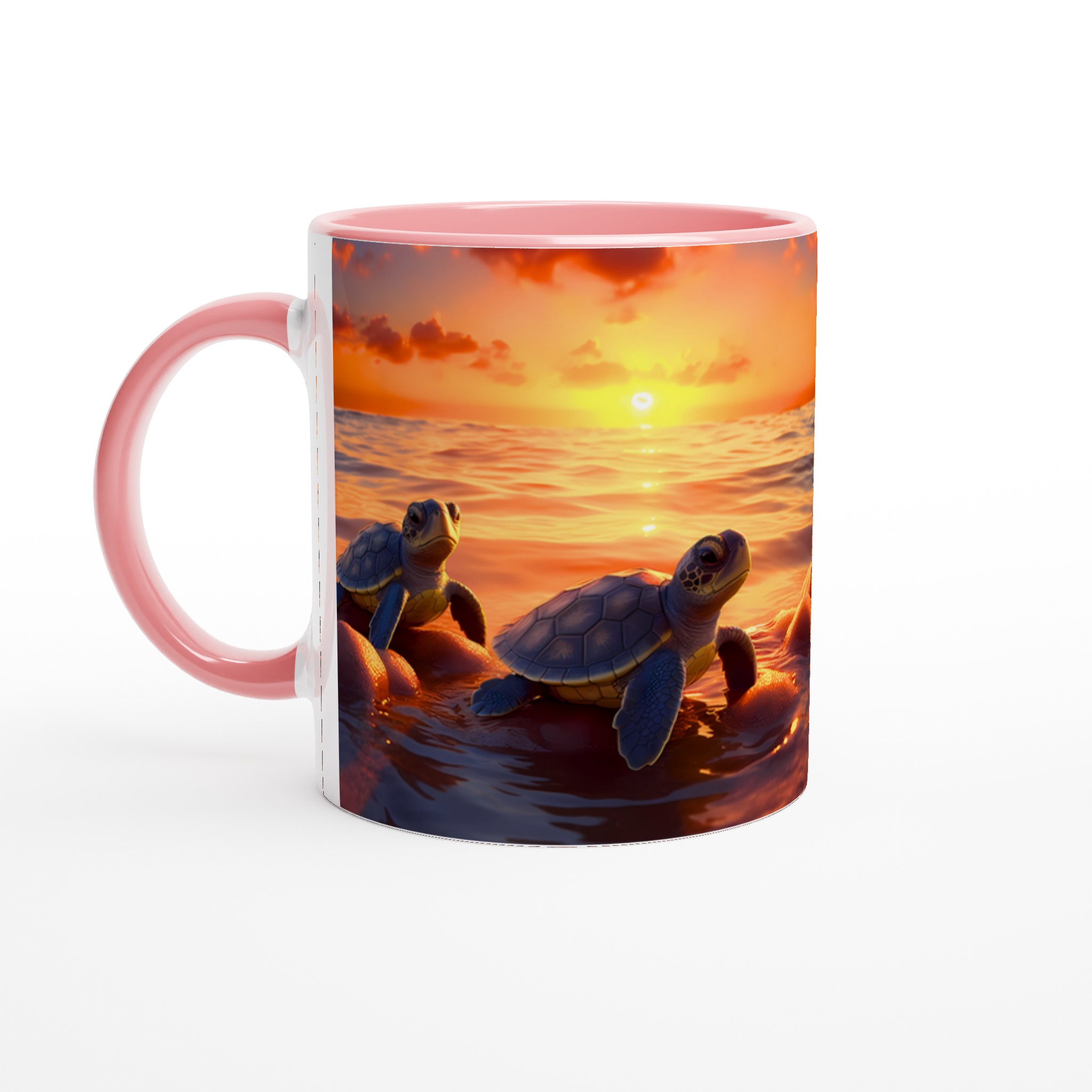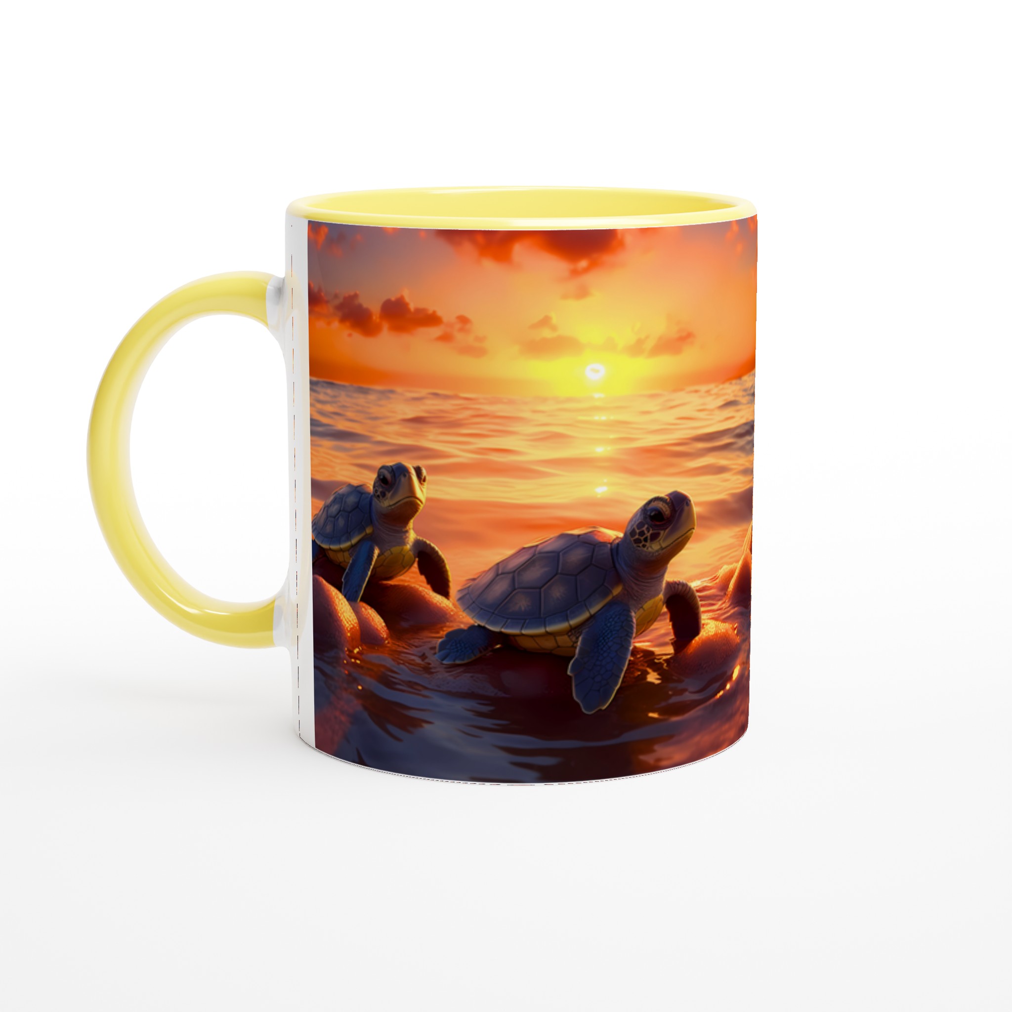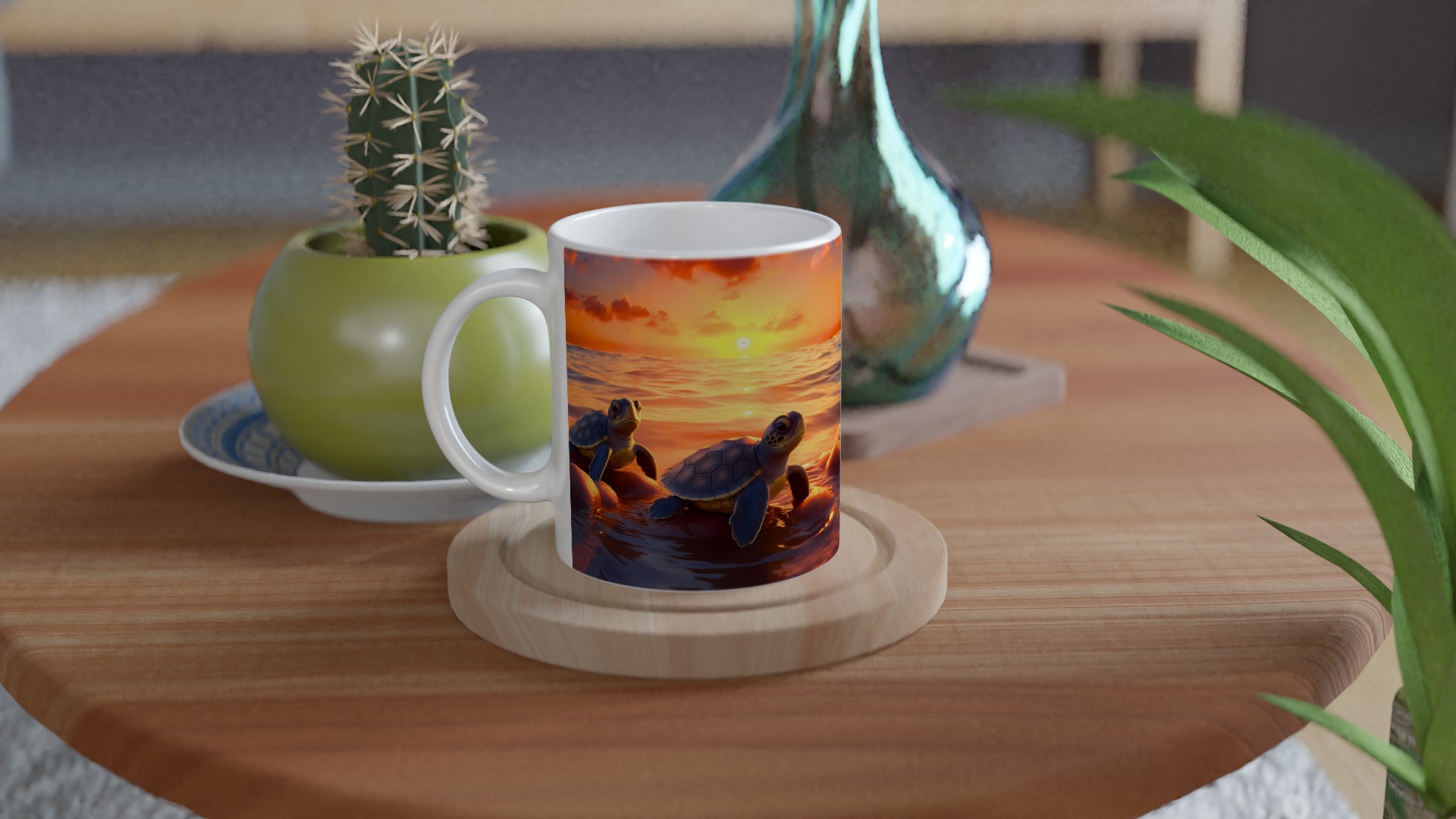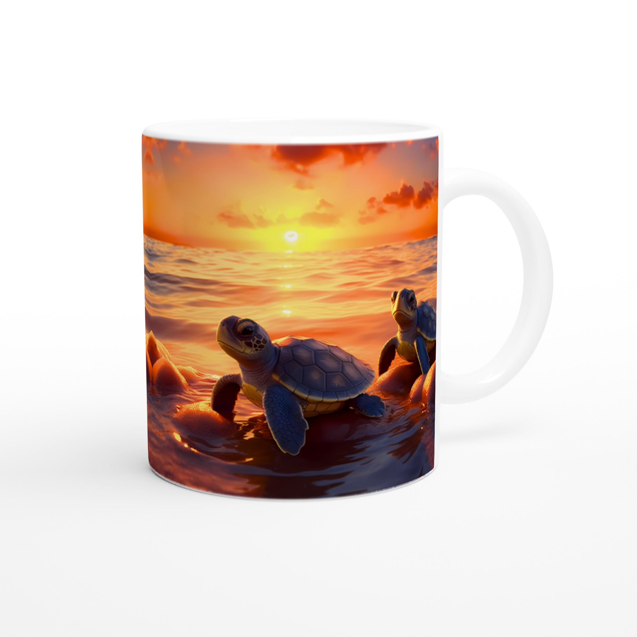 Fånga den lugna magin från en solnedgång över havet med vår unika keramiska mugg, prydd med bedårande sjösköldpaddor som reflekterar de varma, gyllene tonerna från horisonten. Den här stilrena keramiska muggen blir snabbt en vardagsfavorit. Perfekt för morgonkaffet, kvällens varma choklad eller när du bara vill njuta av en kopp te.