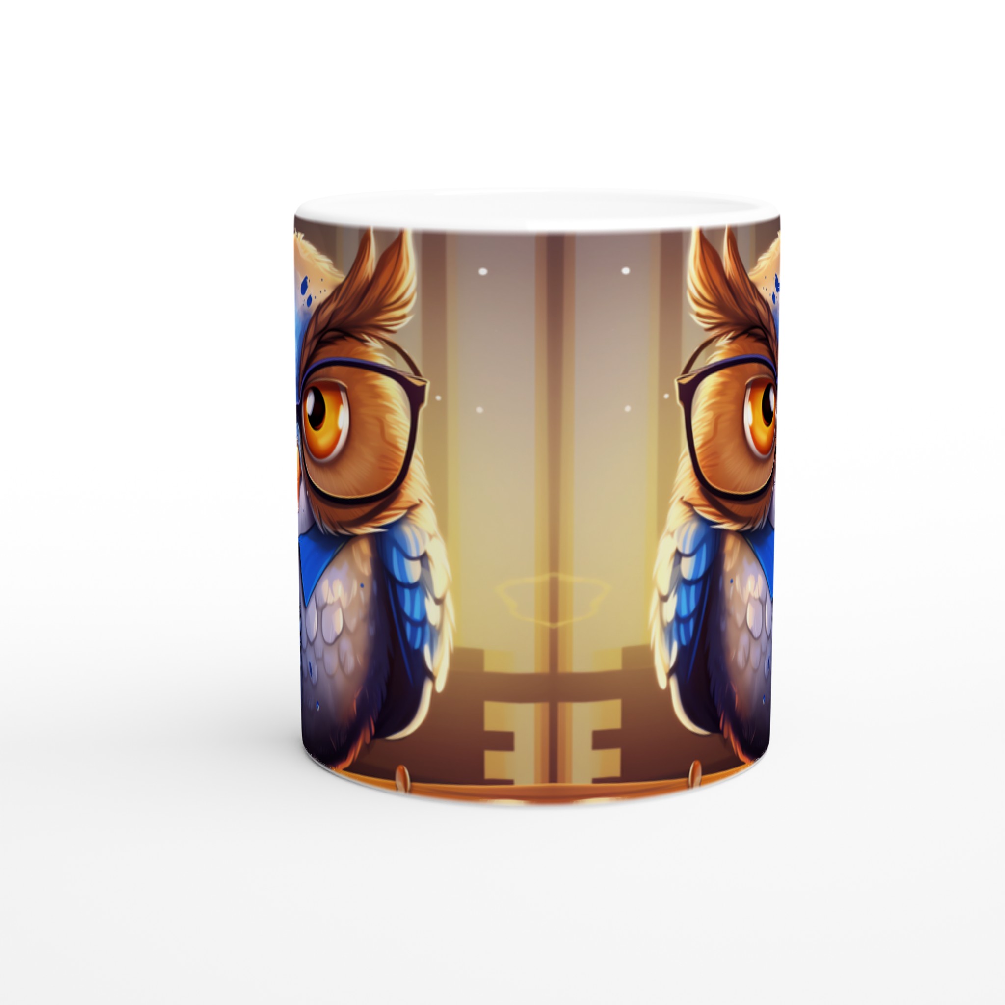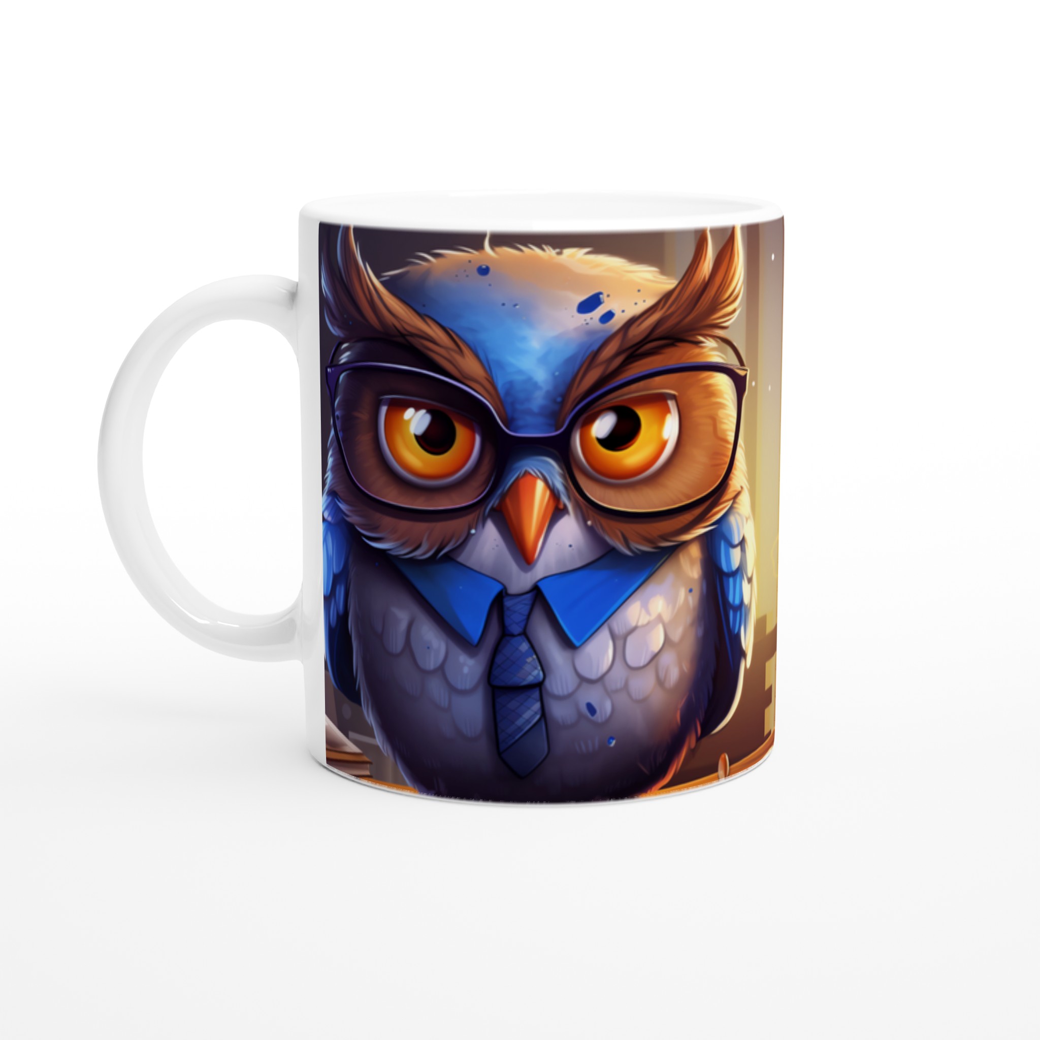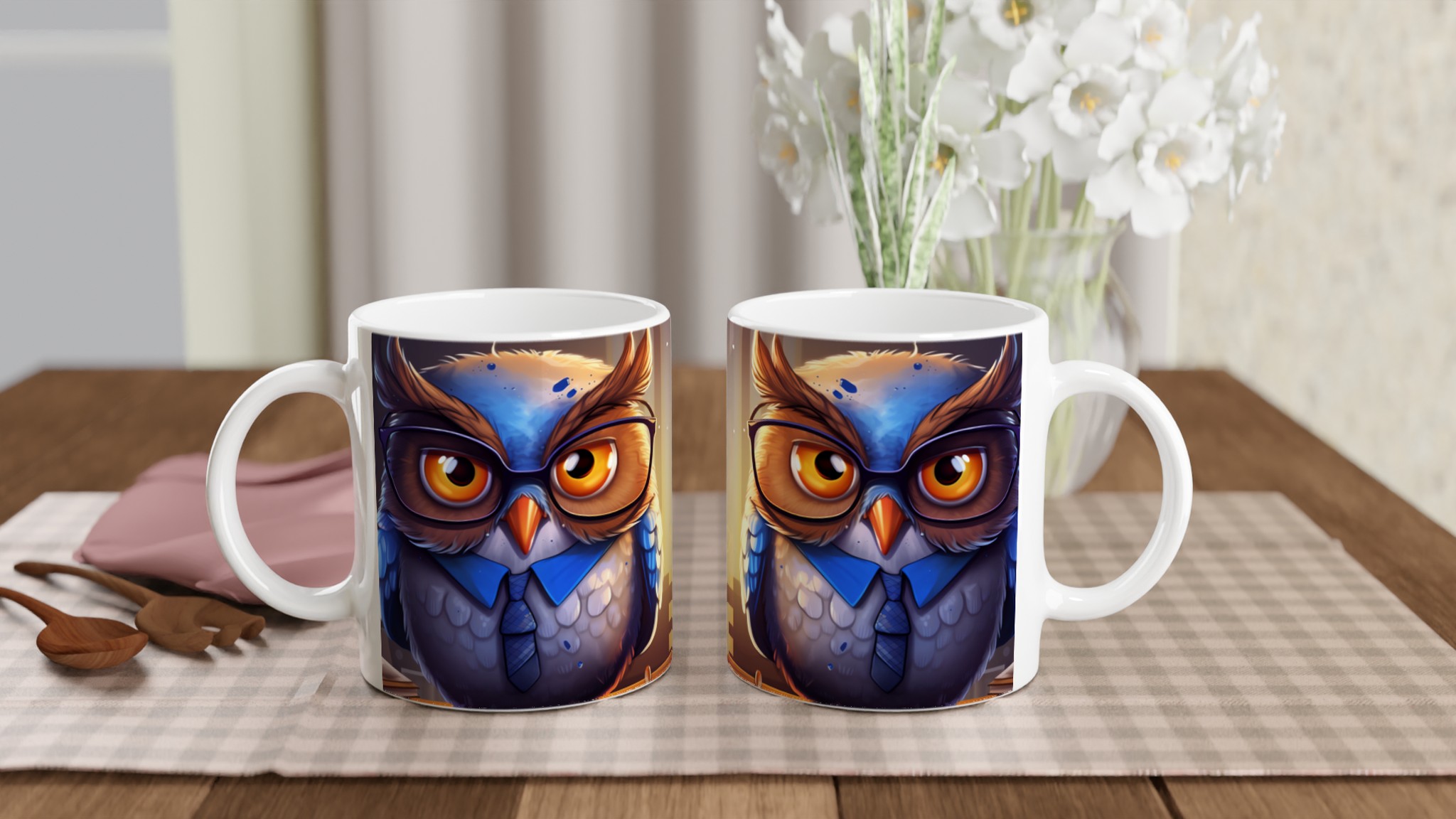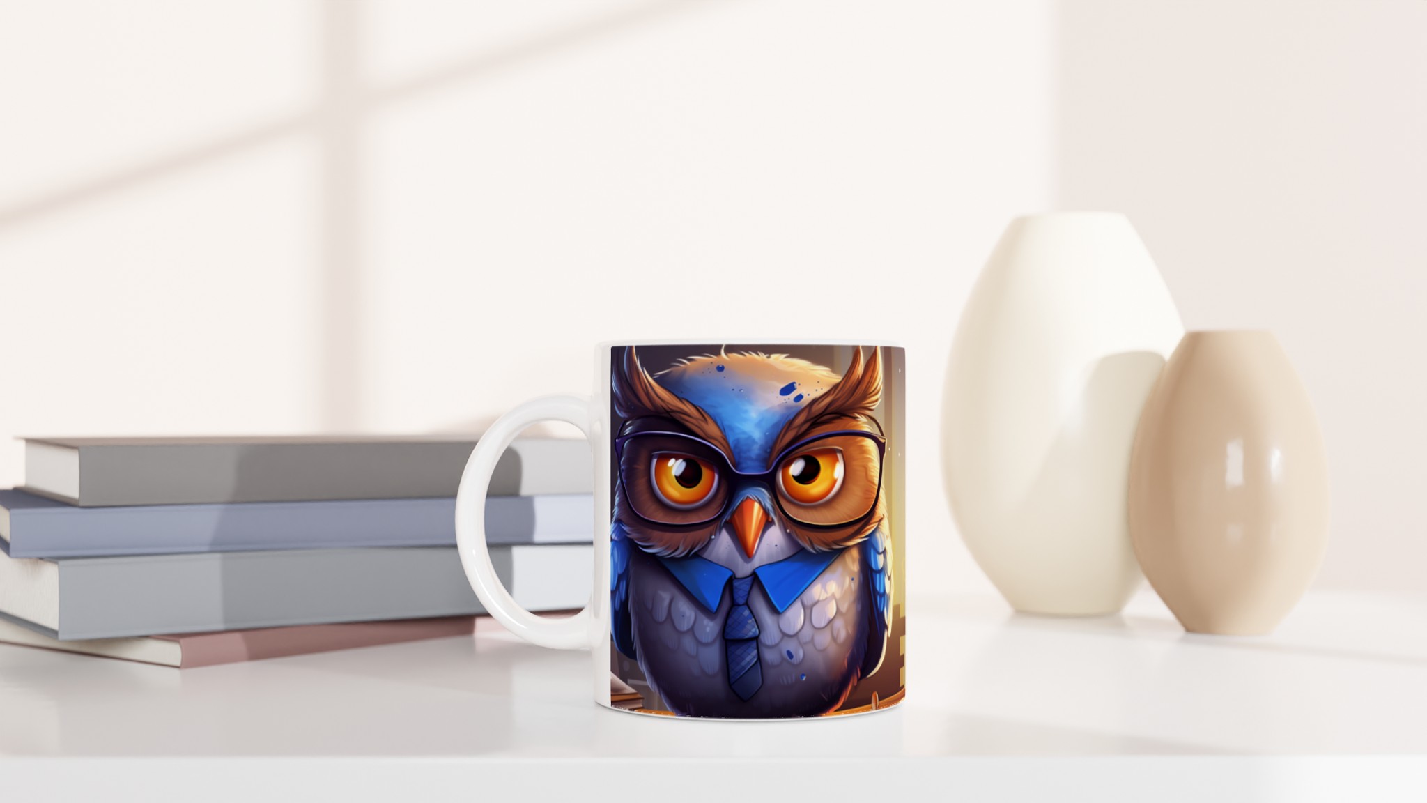 Lyft din fikapaus med denna charmiga keramiska mugg, prydd med en stilfull och intelligent uggla i glasögon och slips. Denna mugg blir snabbt en favorit för alla tillfällen, oavsett om det är för morgonkaffet, kvällens varma choklad, eller en lugn stund med te. Ugglans karaktäristiska charm och de levande färgerna kommer garanterat att förgylla din dag. Välj din favoritfärg och låt den här kloka ugglan sprida glädje i ditt hem eller på kontoret.