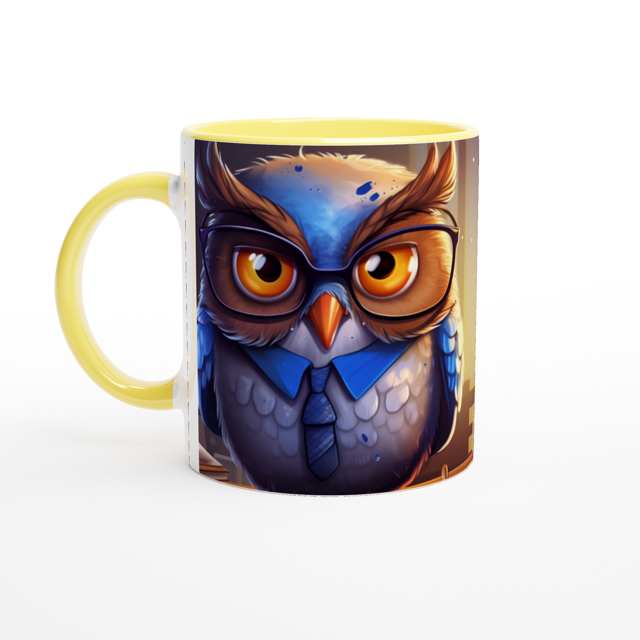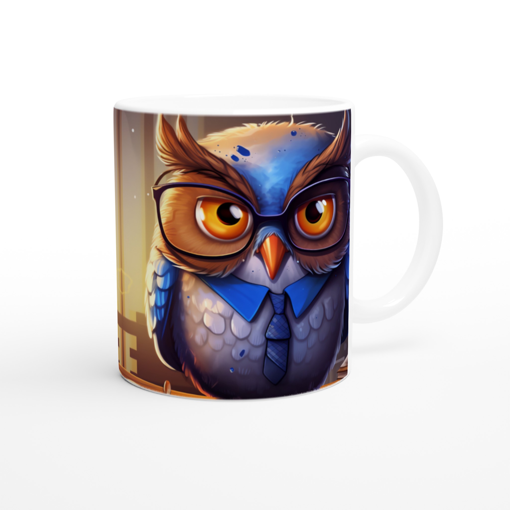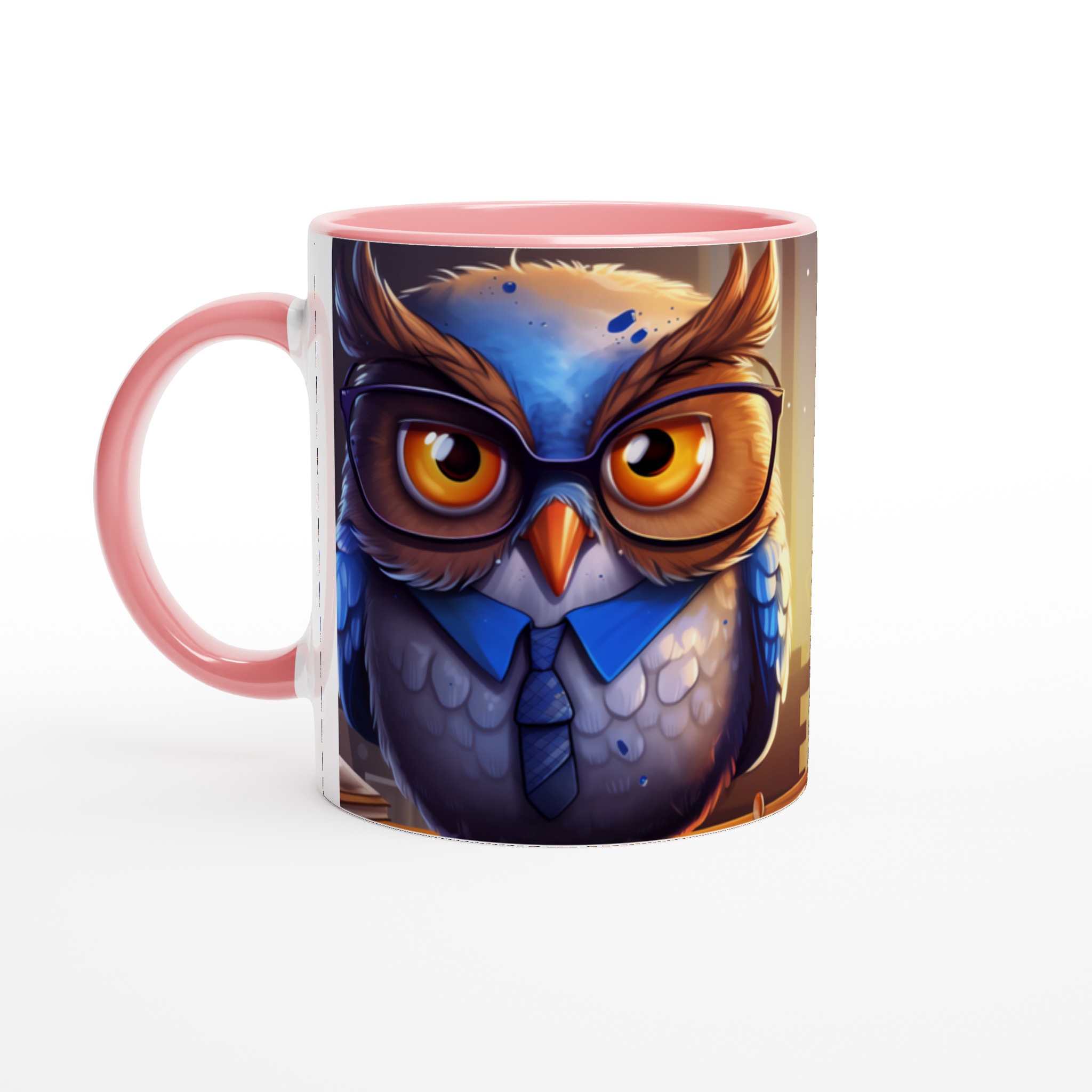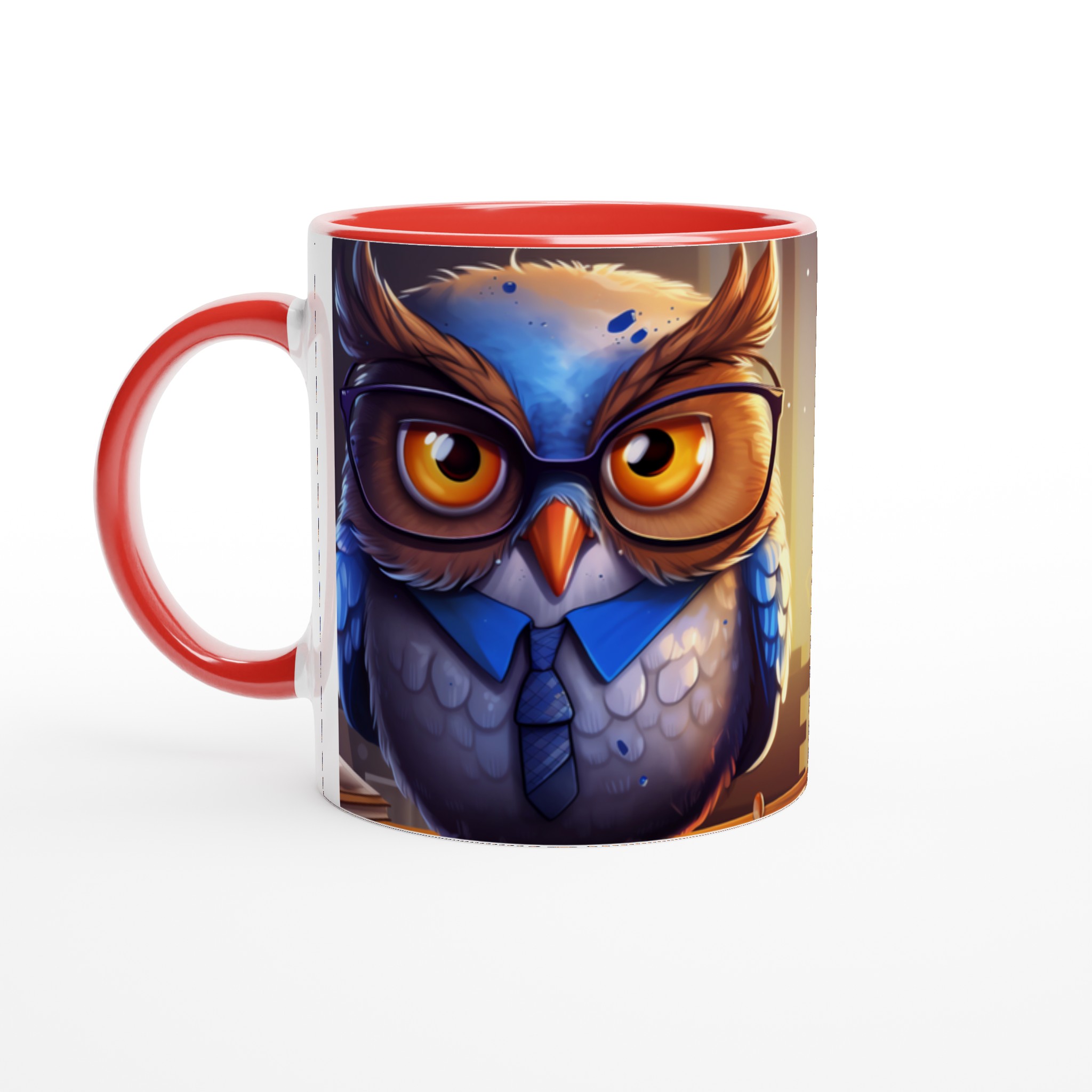 Lyft din fikapaus med denna charmiga keramiska mugg, prydd med en stilfull och intelligent uggla i glasögon och slips. Denna mugg blir snabbt en favorit för alla tillfällen, oavsett om det är för morgonkaffet, kvällens varma choklad, eller en lugn stund med te. Ugglans karaktäristiska charm och de levande färgerna kommer garanterat att förgylla din dag. Välj din favoritfärg och låt den här kloka ugglan sprida glädje i ditt hem eller på kontoret.