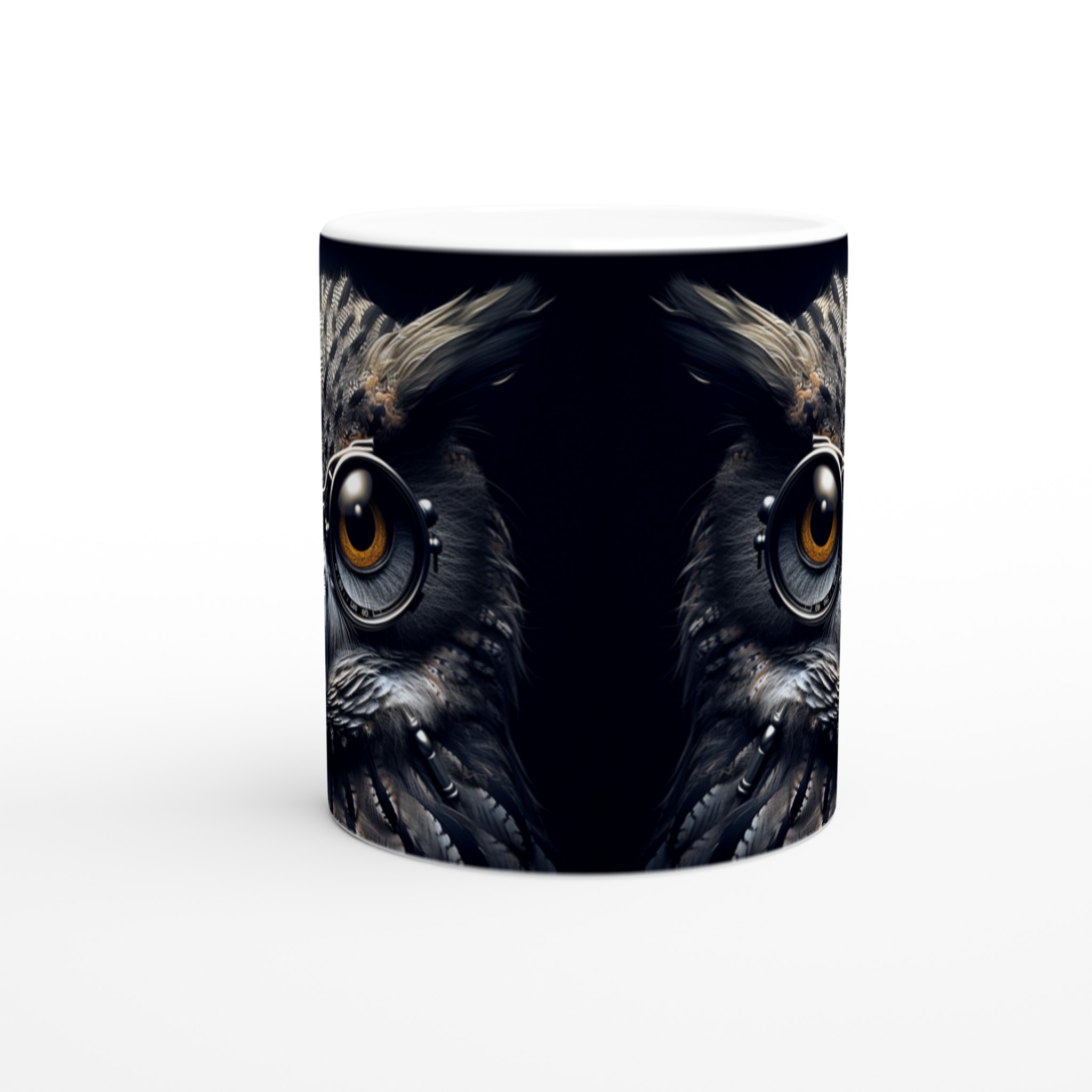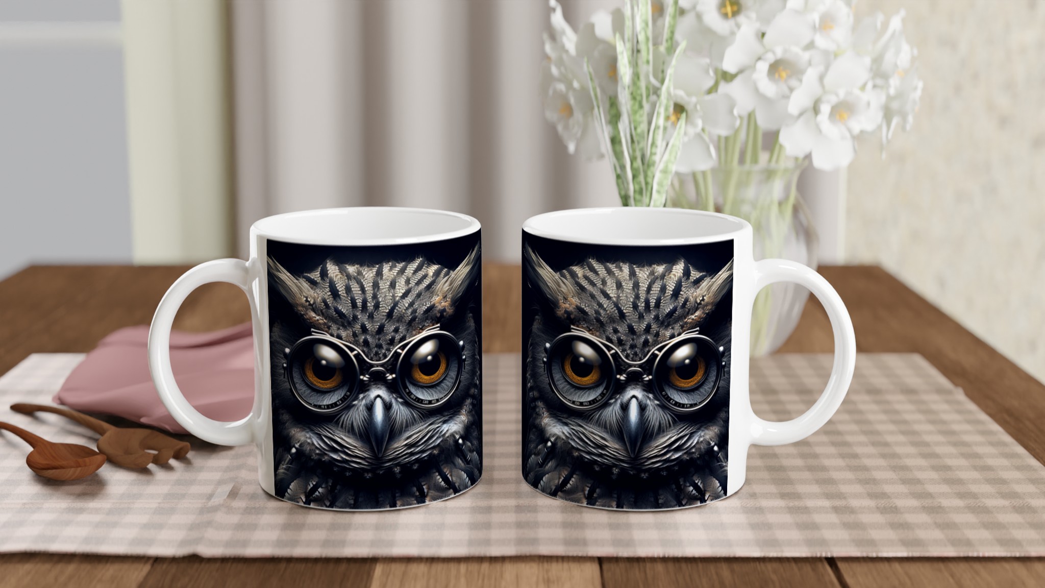 Lyft din dryckesupplevelse med vår smarta uggla-mugg, en verklig konversationsstartare! Denna stilrena keramiska mugg blir snabbt en vardagsfavorit, perfekt för morgonkaffet, kvällens varma choklad eller när du bara vill njuta av en kopp te. Den distinkta designen, med en klok uggla prydd med kameralinser som glasögon, framhävs vackert på den blanka ytan. Trycket behåller sina klara och levande färger, även efter många turer i mikron och diskmaskinen.