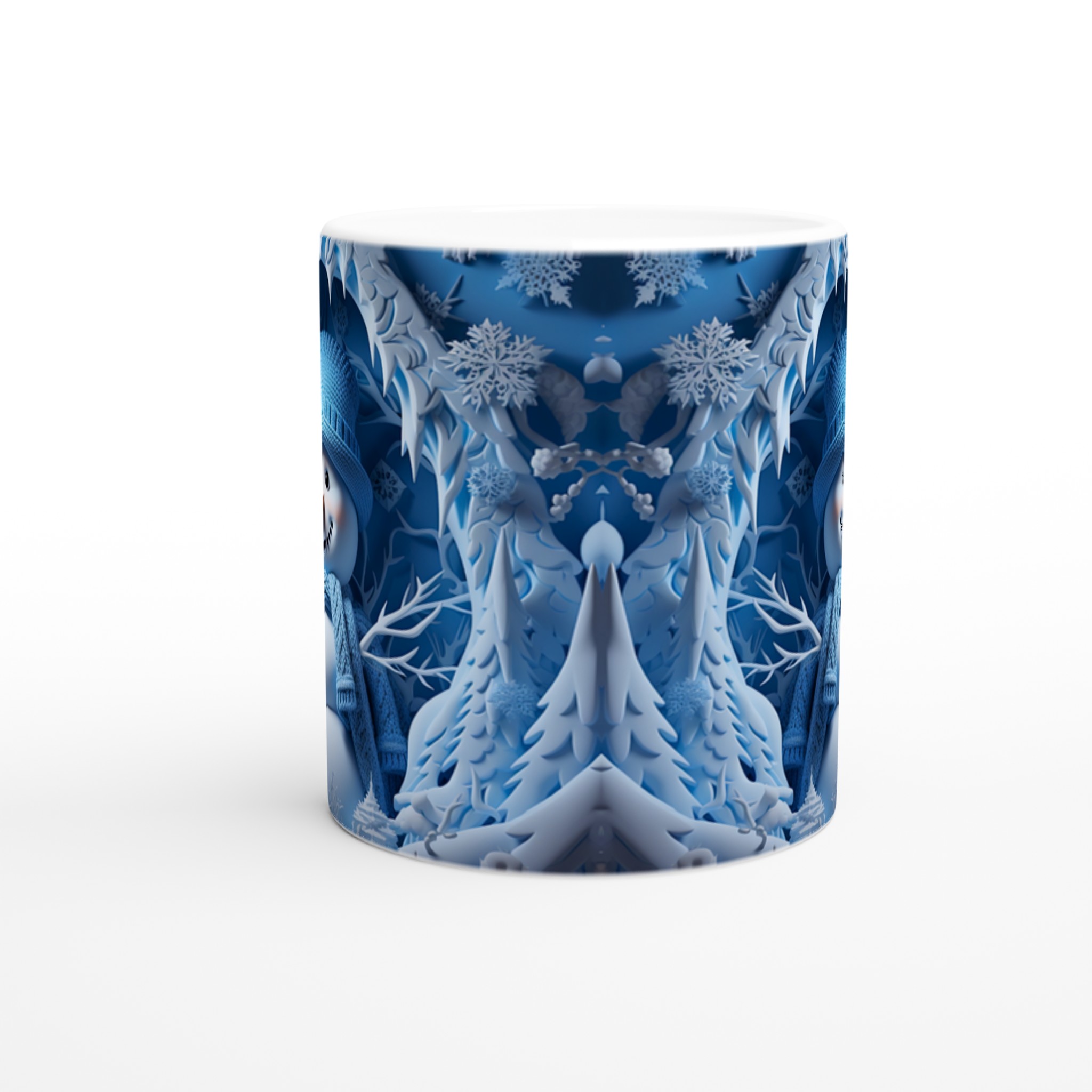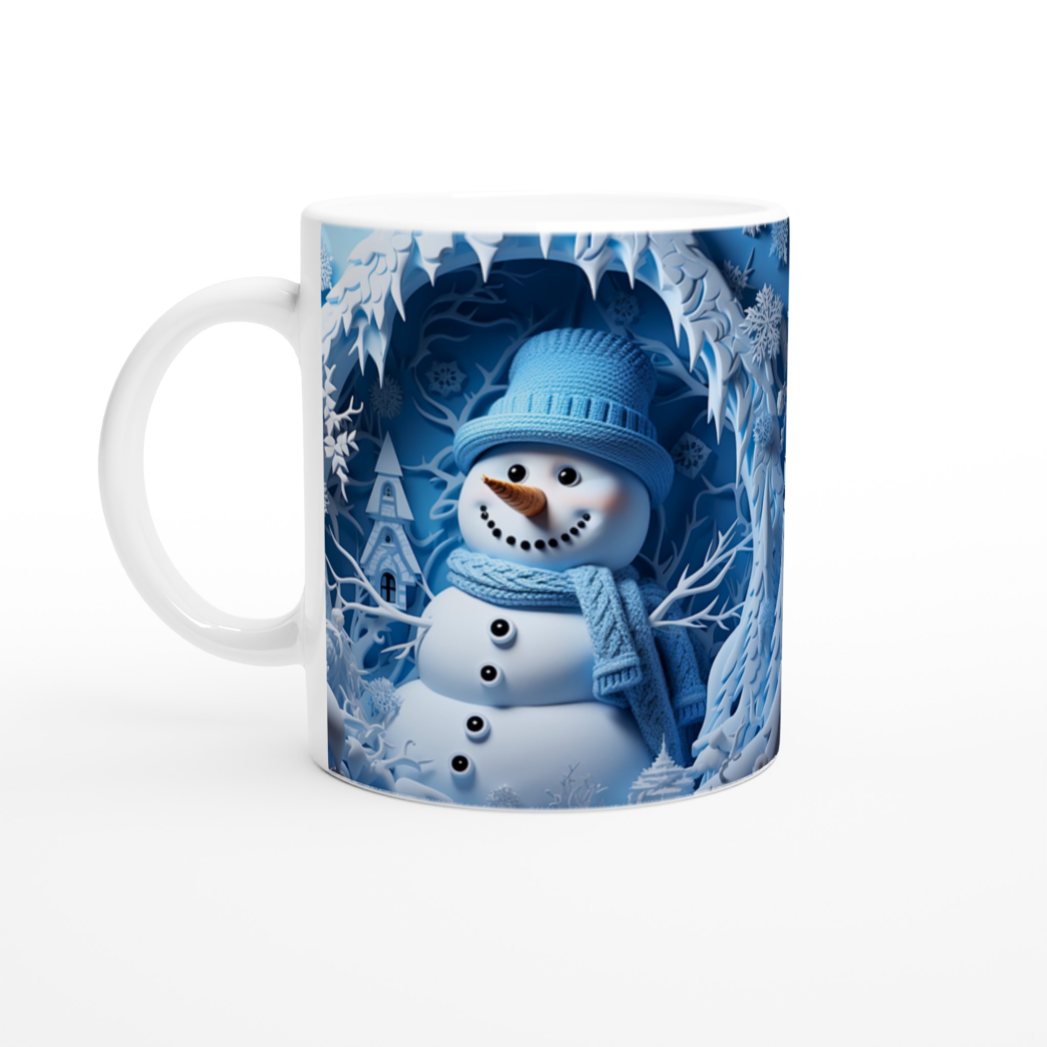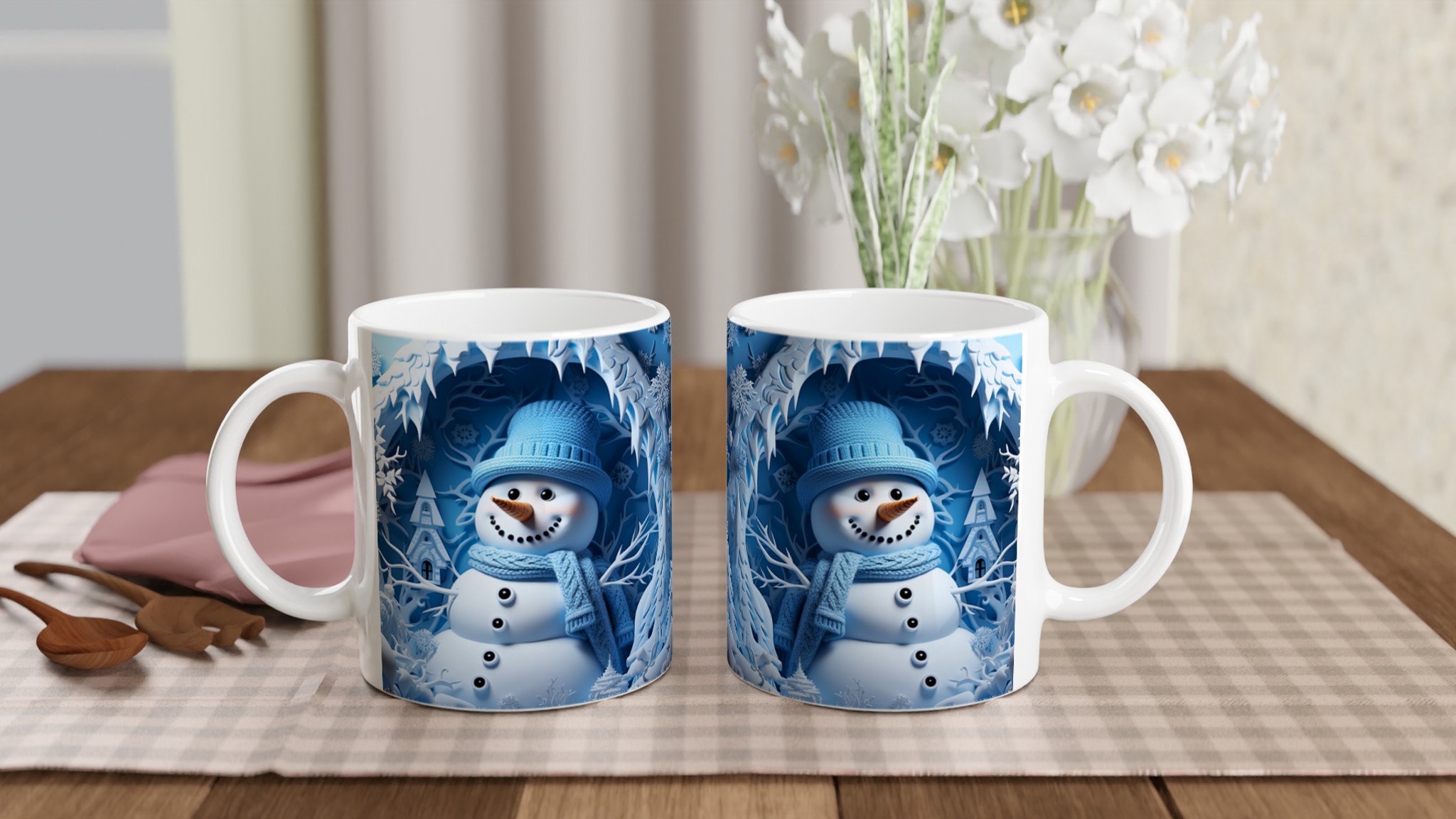 Fånga den charmiga magin från ett frostigt vinterlandskap med denna förtrollande keramiska mugg! Prydd med en söt snögubbe och delikata snöflingor mot en lugnande blå bakgrund, är denna mugg din perfekta följeslagare för att värma upp kalla dagar. Föreställ dig att krypa upp med din favoritdryck och låta dig svepas med av den mysiga vinterviben.