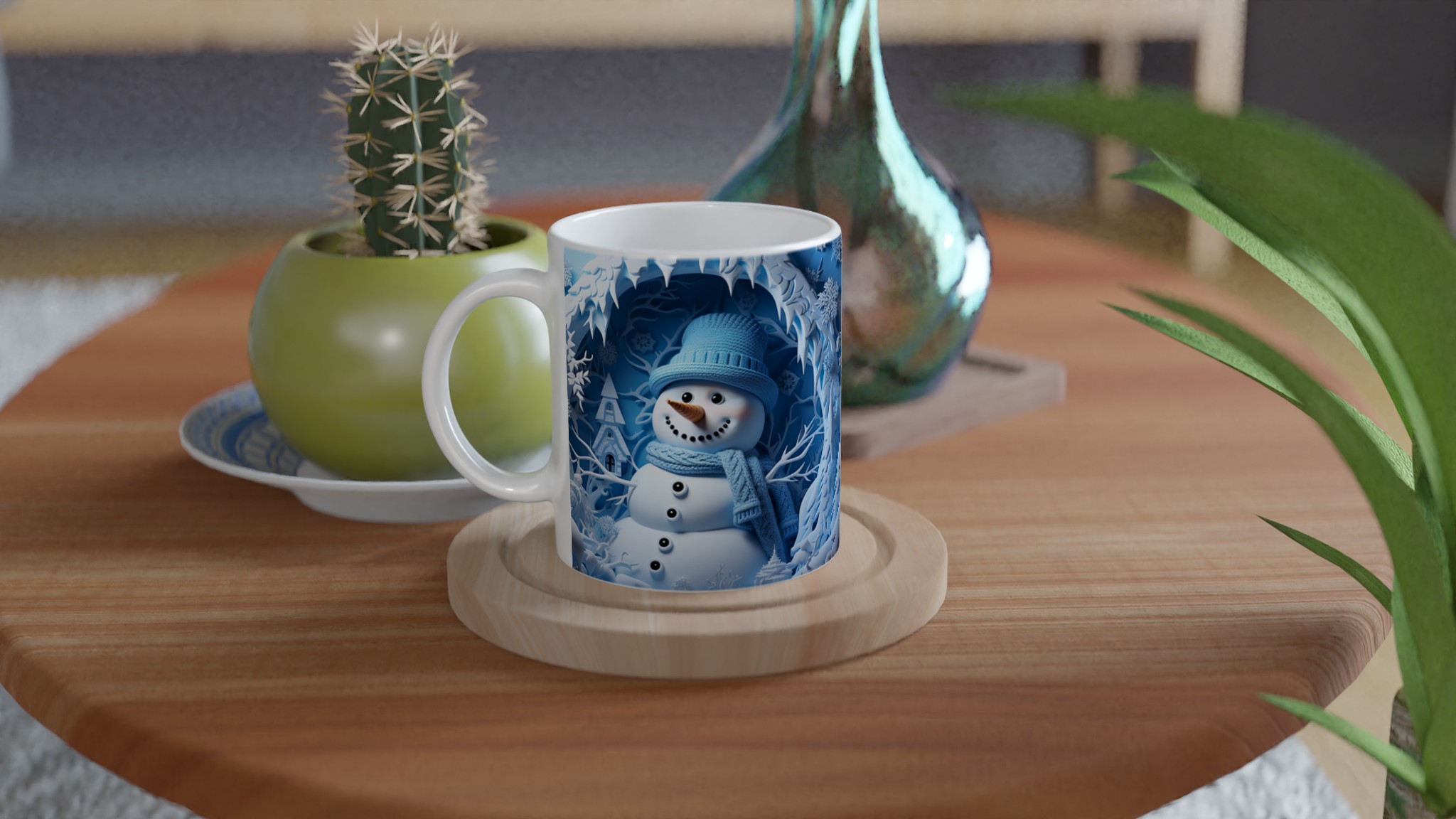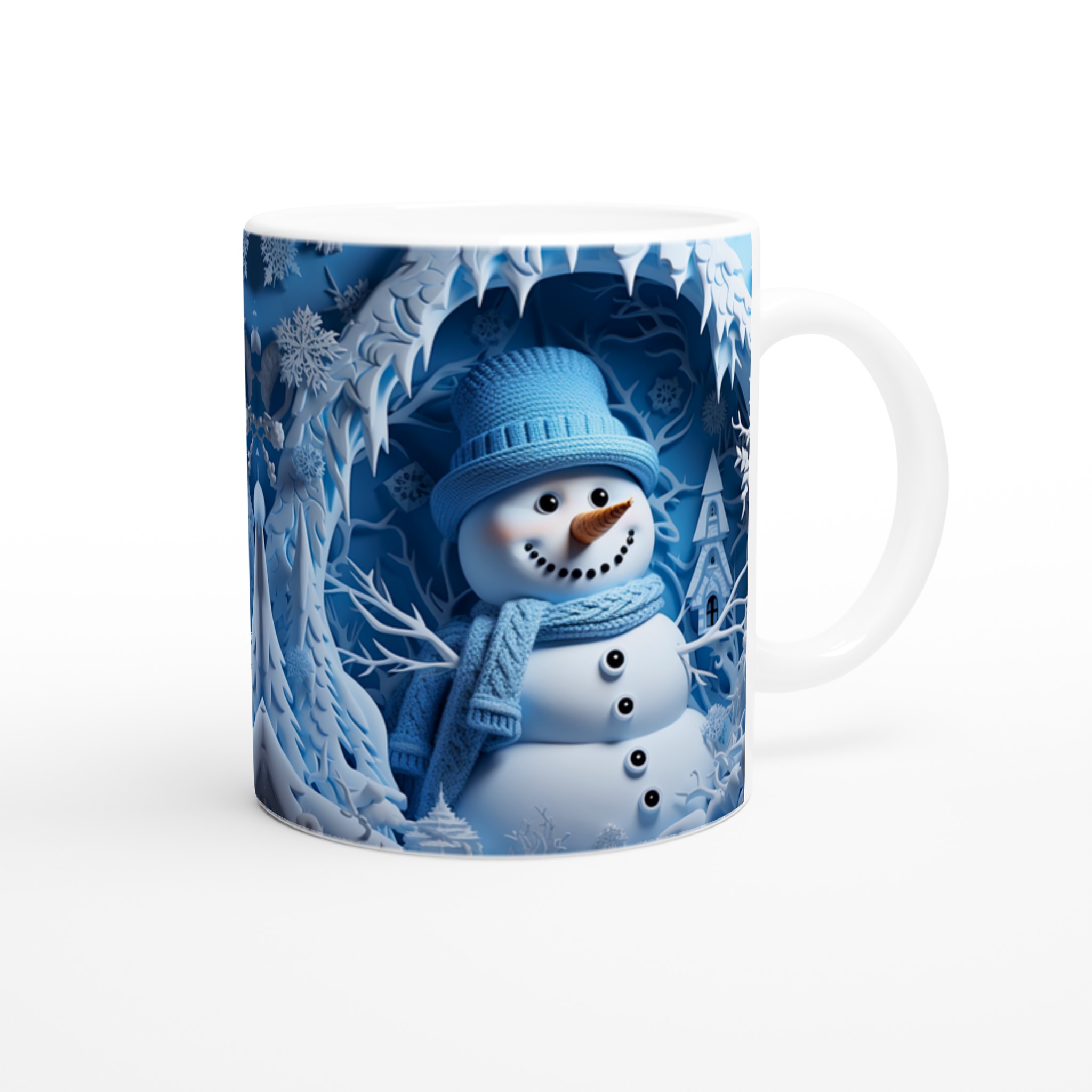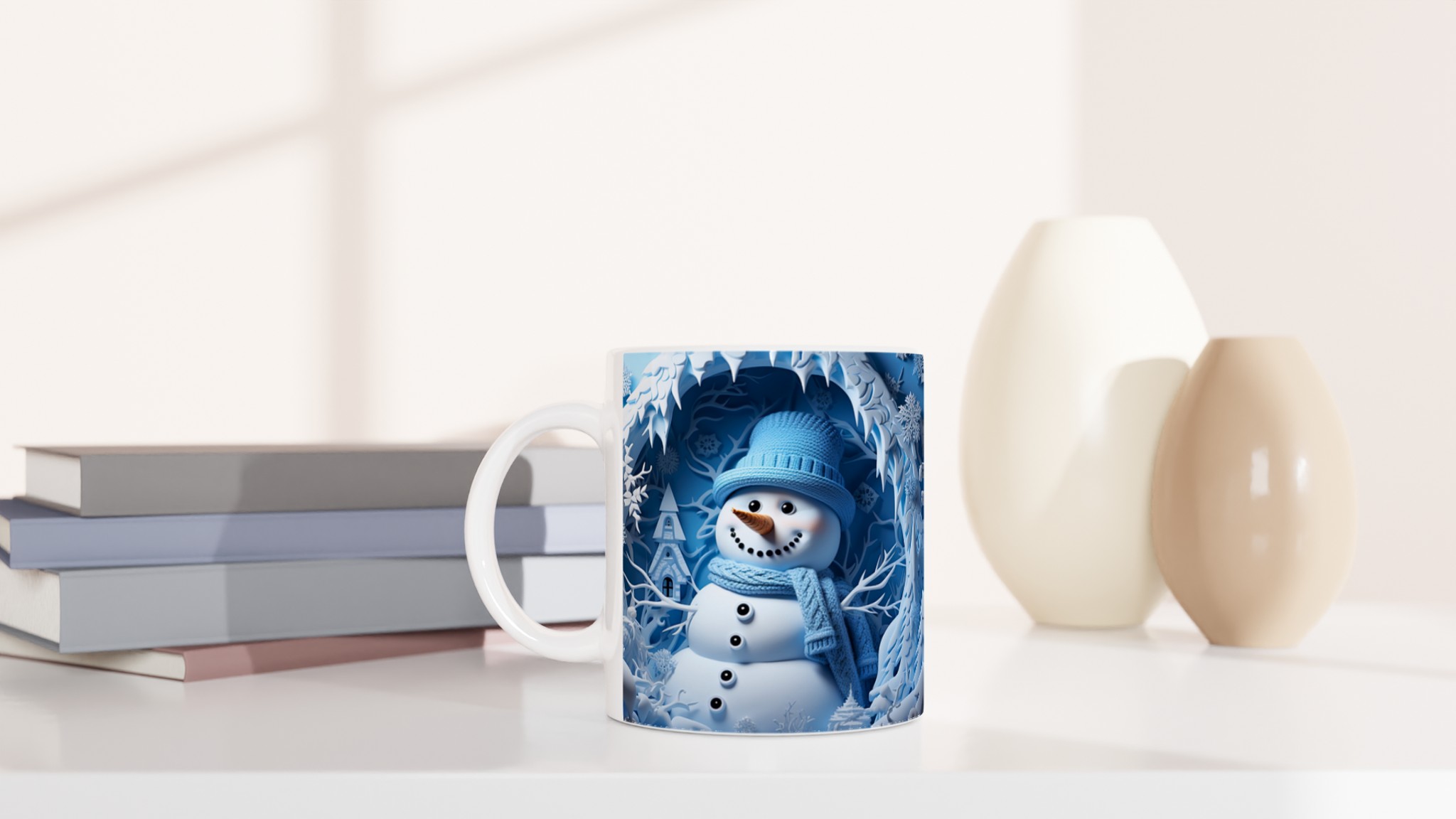 Fånga den charmiga magin från ett frostigt vinterlandskap med denna förtrollande keramiska mugg! Prydd med en söt snögubbe och delikata snöflingor mot en lugnande blå bakgrund, är denna mugg din perfekta följeslagare för att värma upp kalla dagar. Föreställ dig att krypa upp med din favoritdryck och låta dig svepas med av den mysiga vinterviben.