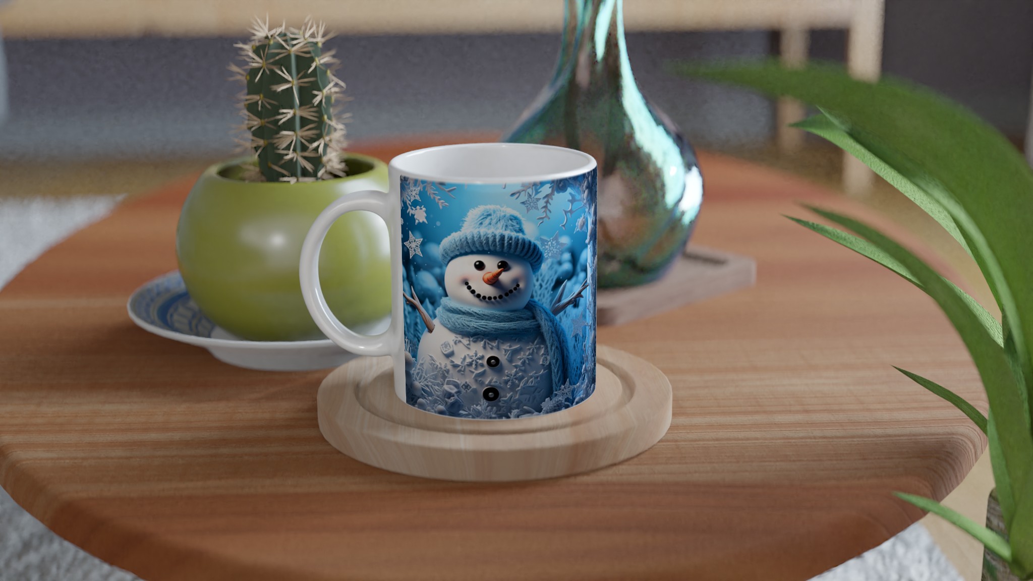 Fånga den glada vinterandan med vår charmiga keramiska mugg, prydd med en vänlig snögubbe i en drömsk, snötäckt miljö. Denna mugg blir snabbt en vardagsfavorit, perfekt för morgonkaffet, kvällens varma choklad eller när du bara vill njuta av en kopp te i julens och vinterns tecken. Den blanka ytan framhäver trycket med klara och levande färger, som håller sig fina även efter många turer i mikron och diskmaskinen.