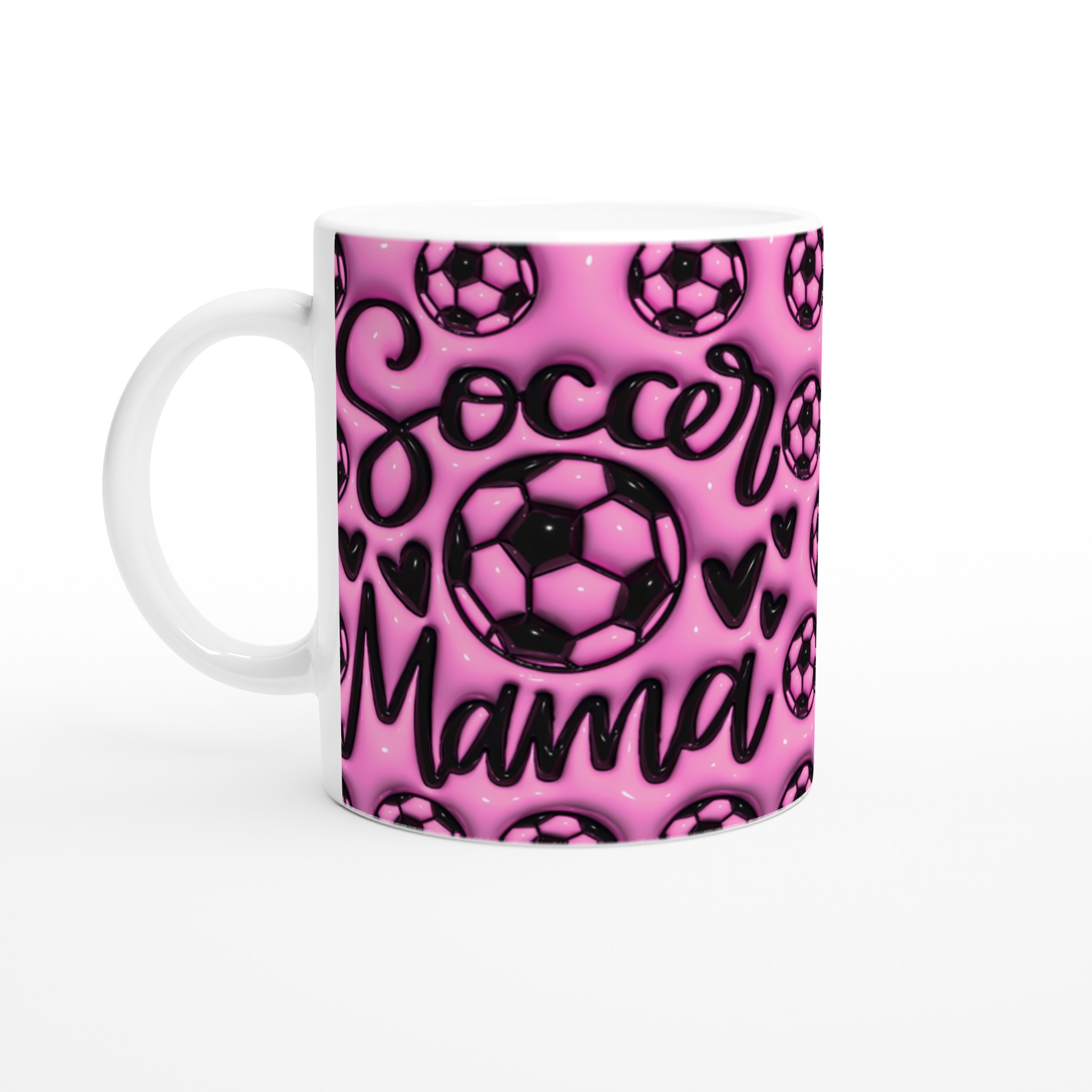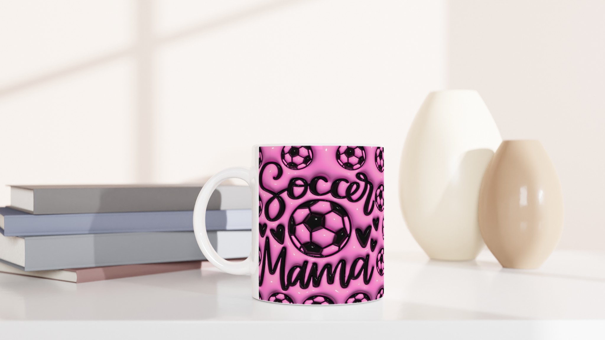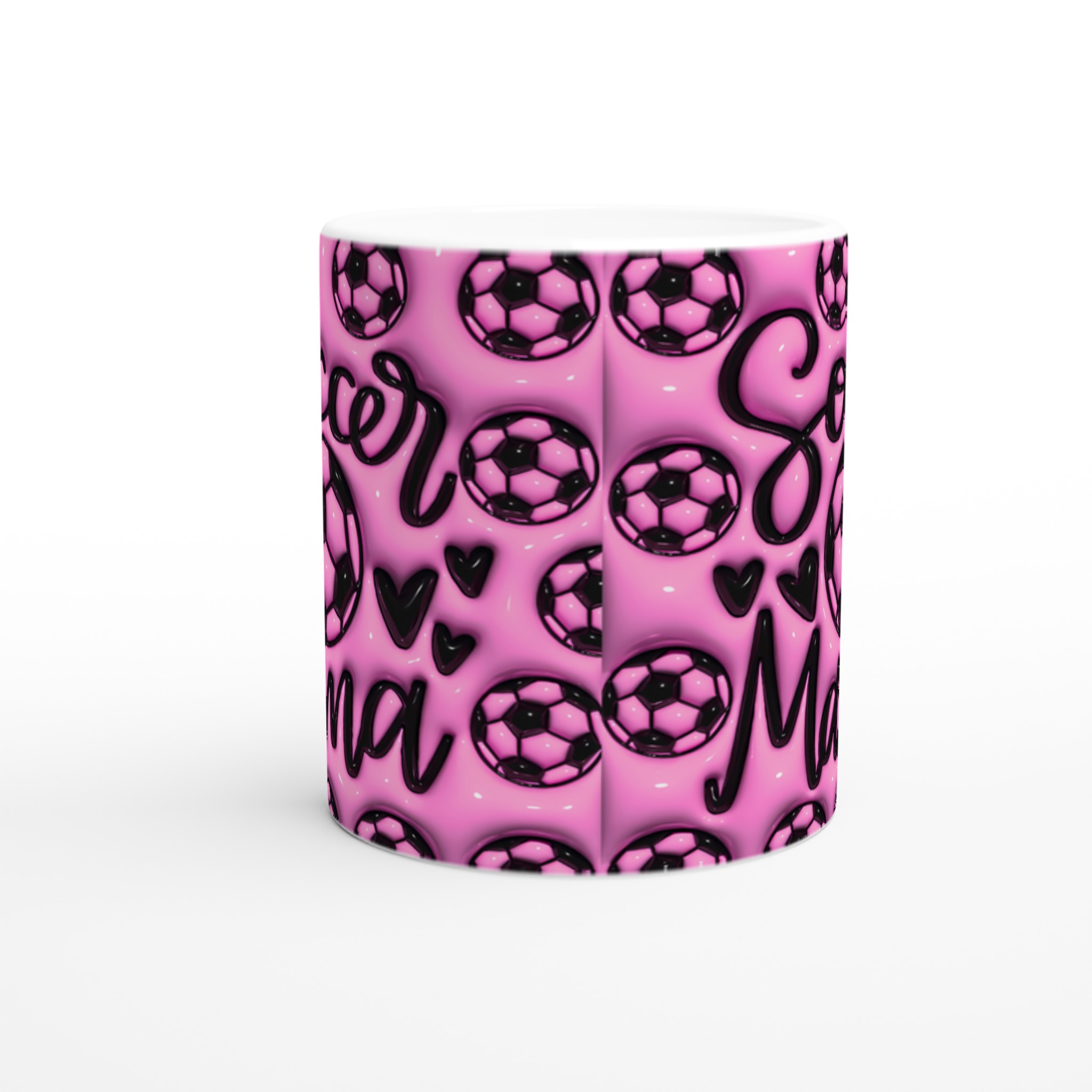 Fira din passion som Soccer Mama med denna charmiga keramiska mugg! Oavsett om du hejar från sidlinjen, skjutsar till träningen eller bara vill ha en mysig stund hemma, blir denna mugg din perfekta följeslagare. Den iögonfallande designen, med bubbligt rosa ”Soccer Mama” text och matchande fotbollar, är ett lekfullt sätt att visa din laganda. Den blanka ytan får designen att framhävas med klara och levande färger, som håller sig fina även efter många turer i mikron och diskmaskinen.