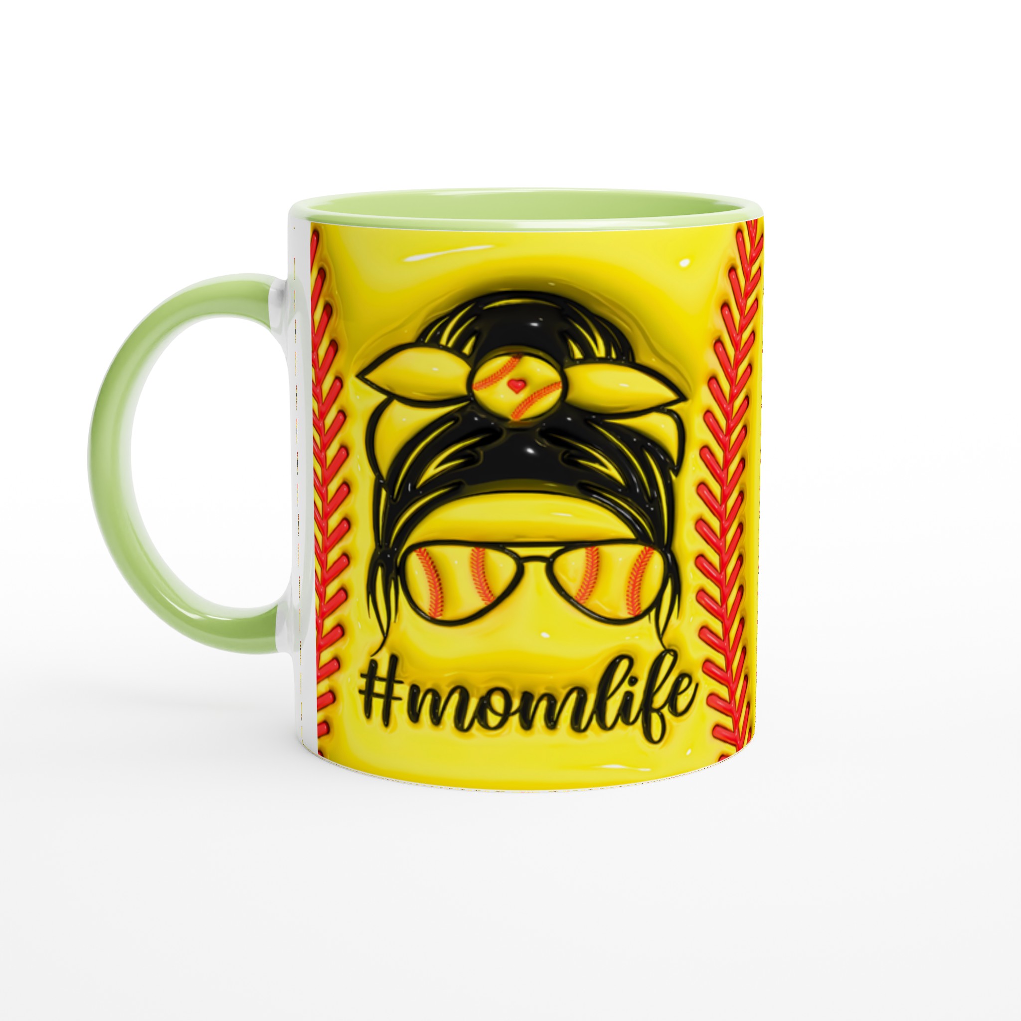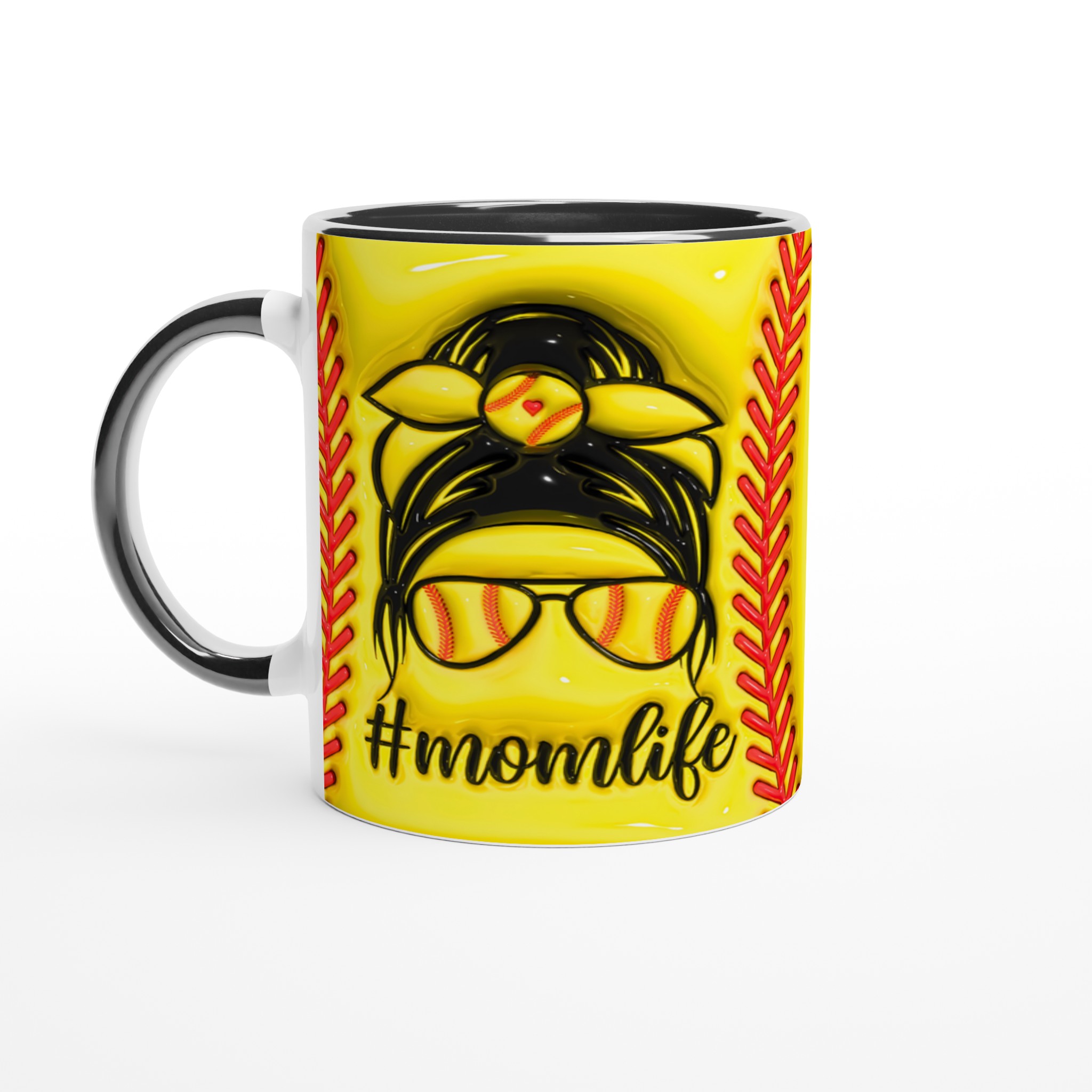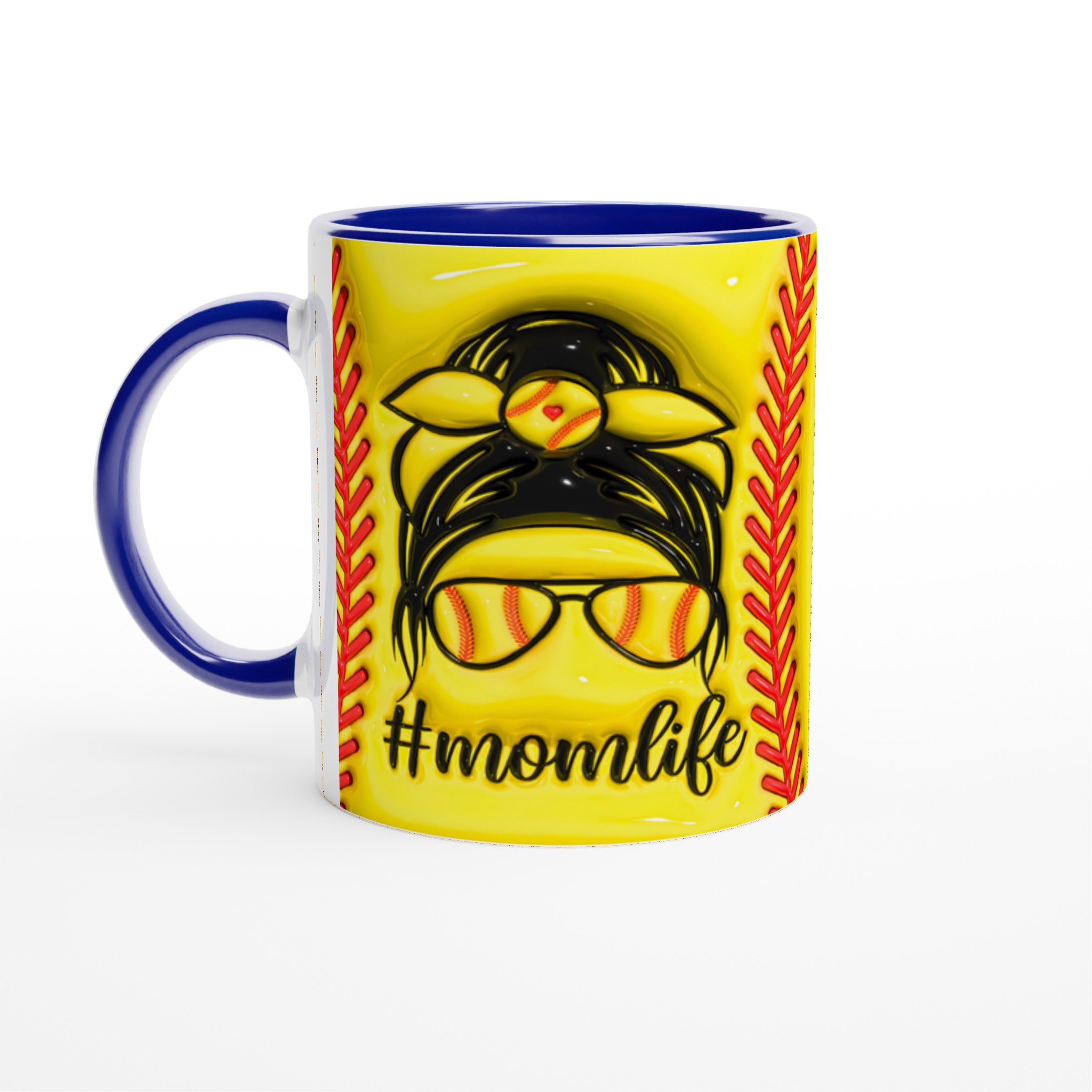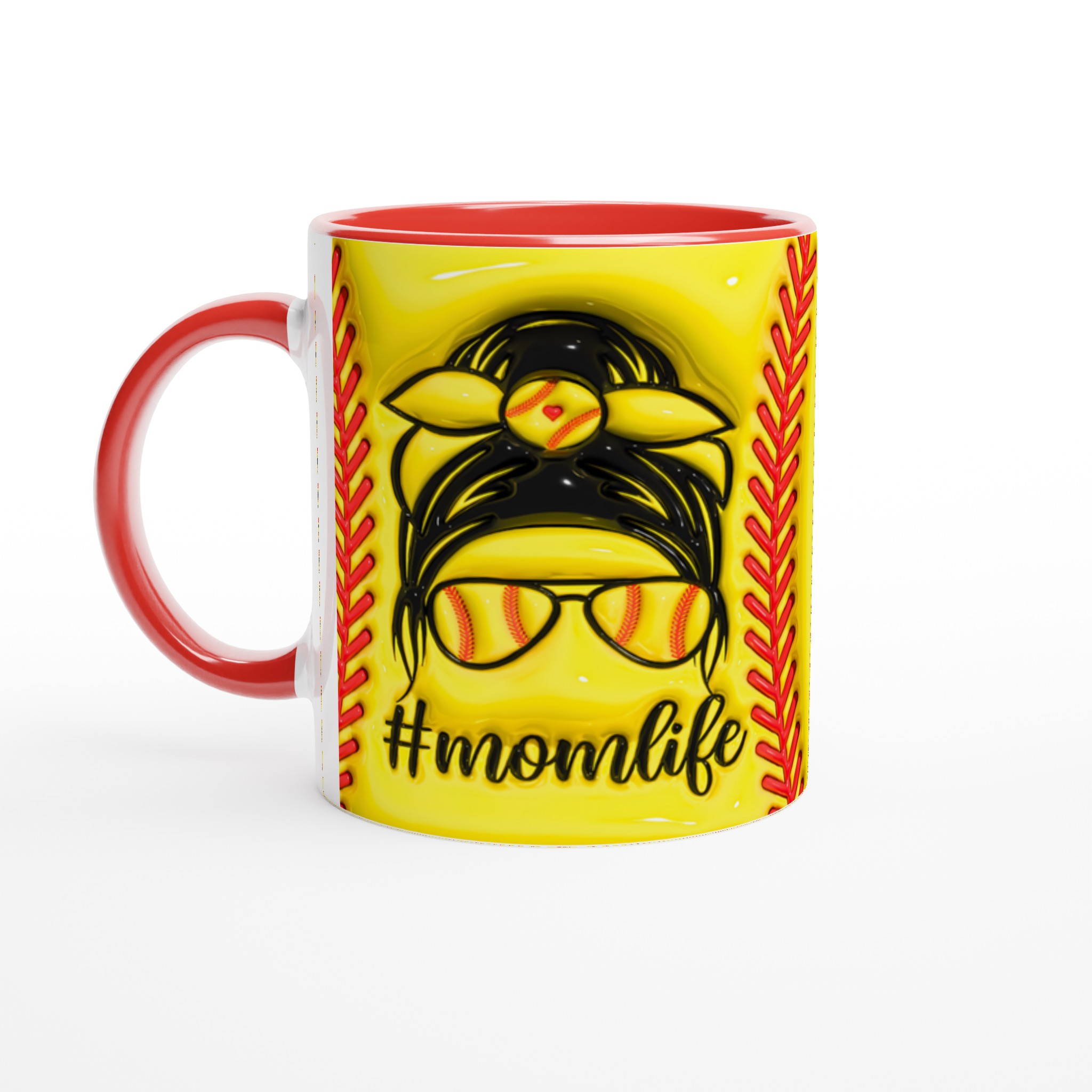 Fira din #Momlife med stolthet och stil! Den här keramikmuggen är en hyllning till alla softball-mammor, med en rolig bulle-frisyr, solglasögon med baseboll-detaljer och en sportig sömdesign. Den levande gula färgen med röda accenter kommer att förgylla varje morgon eller sena kväll på läktaren.
