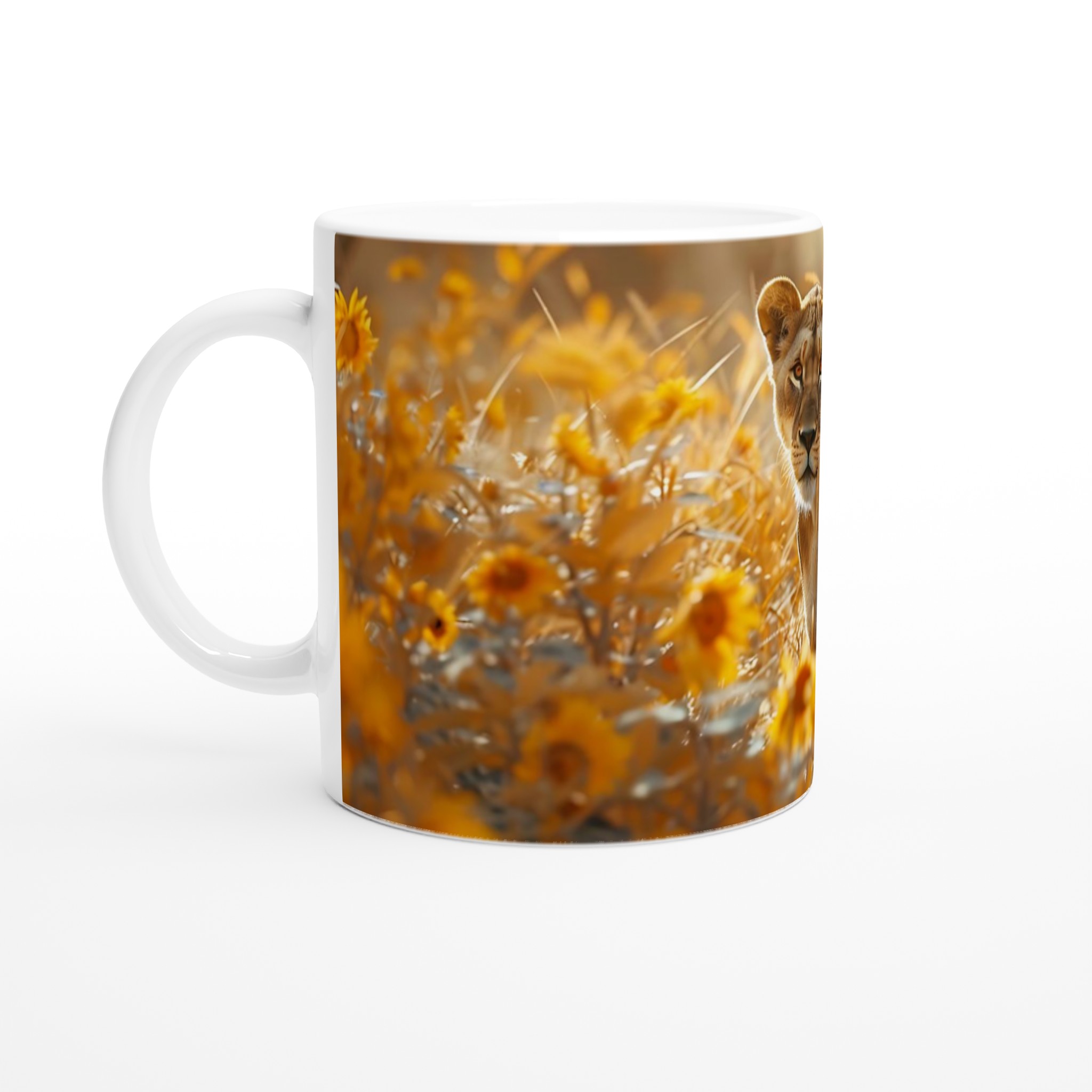 Fånga den majestätiska skönheten och den gyllene värmen från savannen varje gång du tar en klunk med vår ”Solkysst Lejoninna” mugg. Inspirerad av solnedgångens varma färger och naturens vilda elegans, framhäver denna mugg ett skarpt och levande tryck som verkligen sticker ut. Oavsett om du väljer en personlig design, ett inspirerande citat eller den storslagna lejoninnan som blickar ut över ett fält av solrosor, är denna mugg en perfekt present till någon du tycker om eller en uppskattad del av din egen samling.