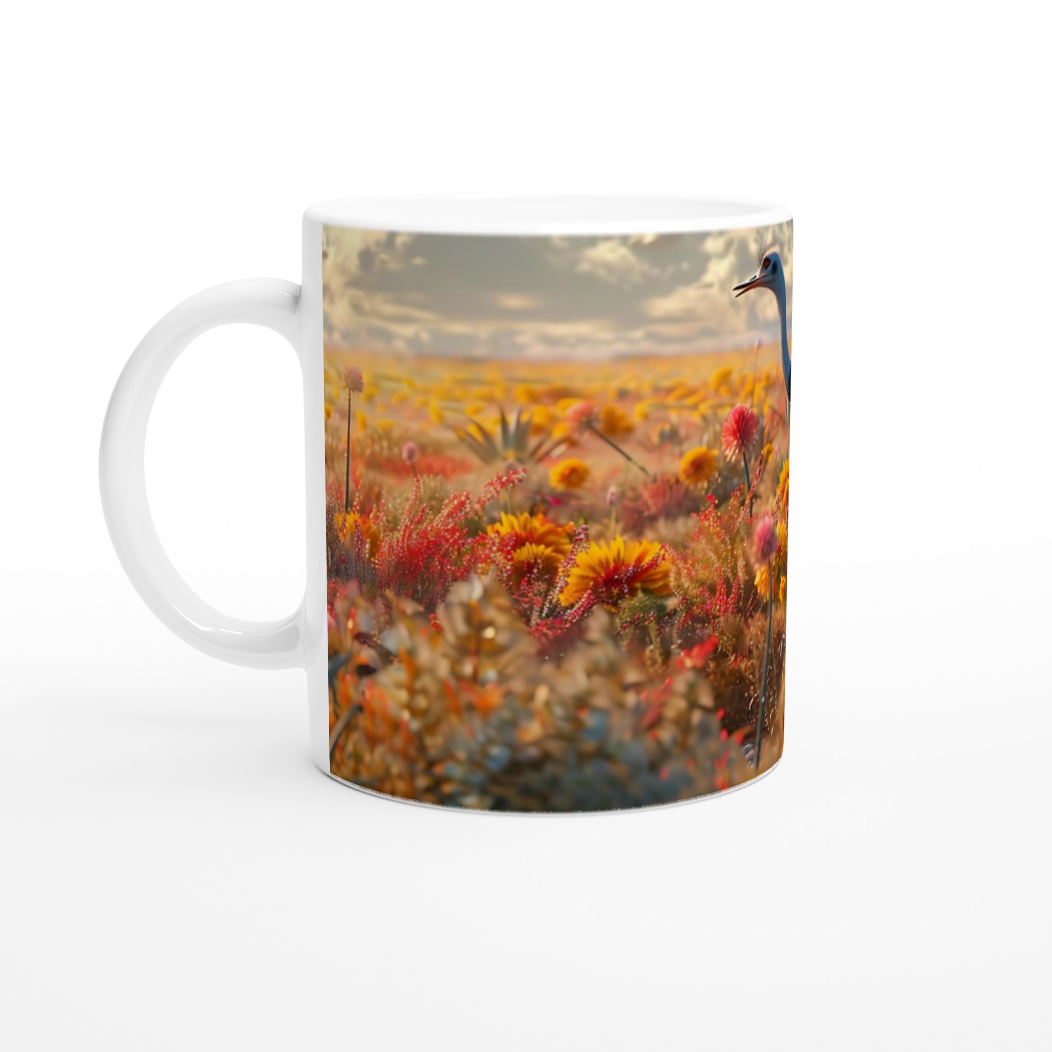 Inspirerad av savannens gyllene solnedgångar, där strutsar strövar fritt bland blommande fält, fångar denna mugg den varma och inbjudande känslan av äventyr. Den blanka vita ytan ger ett skarpt och levande tryck som verkligen sticker ut, oavsett om det är en personlig design, ett roligt citat eller en present till någon du tycker om. Välj bland sju fantastiska keramiska färger – ”Ceramic White”, ”Ceramic Yellow”, ”Ceramic Pink”, ”Ceramic Green”, ”Ceramic Red”, ”Ceramic Black” eller ”Ceramic Blue” – för att matcha din personliga stil eller din inredning.