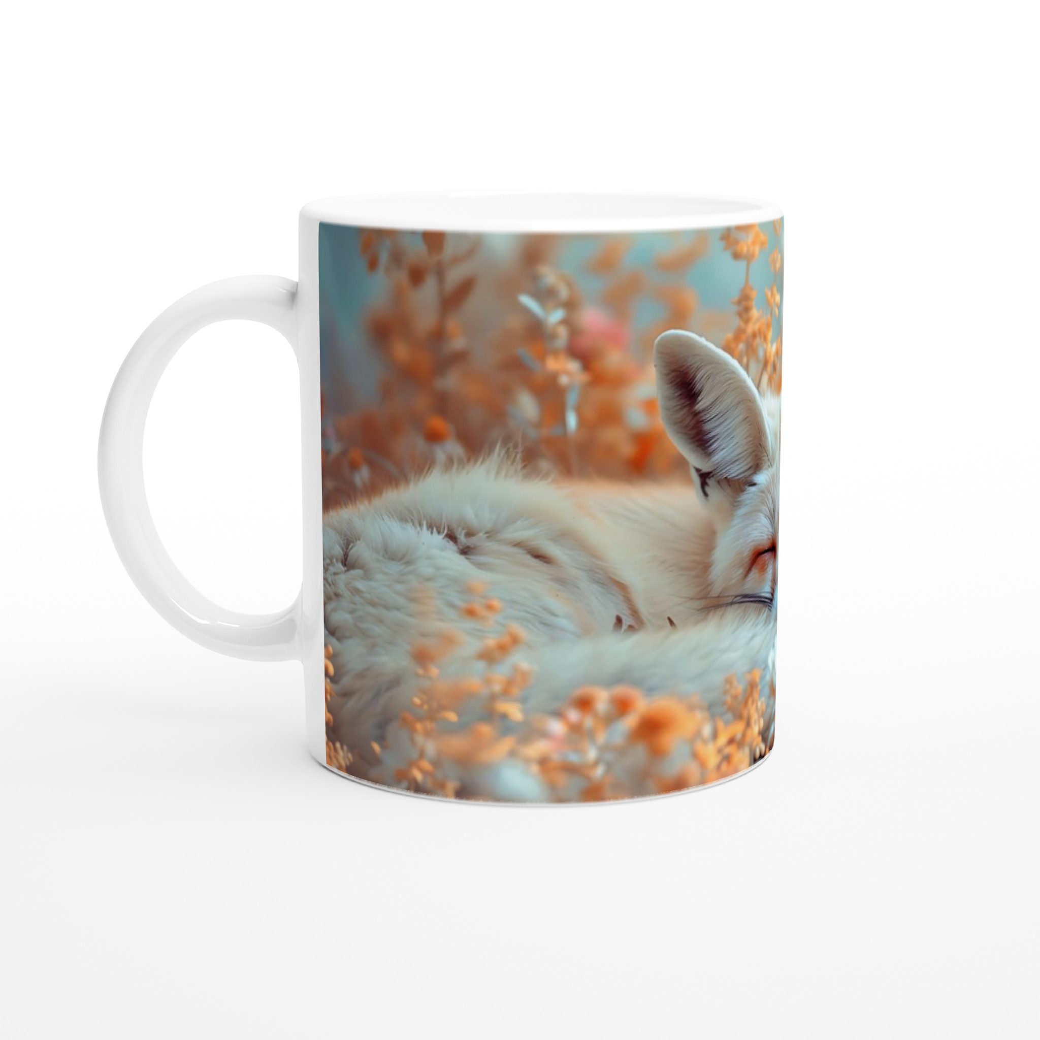 Denna mugg fångar den lugna skönheten hos en sovande fennec-räv, omgiven av en drömsk palett av aprikos, persika och mjuka jordfärger som framkallar en känsla av lugn och naturens magi. Det konstnärliga motivet är inbäddat i en varm och inbjudande blomsterprakt, perfekt för dig som älskar djur, natur eller bara vill ha en kopp som sprider glädje och frid.