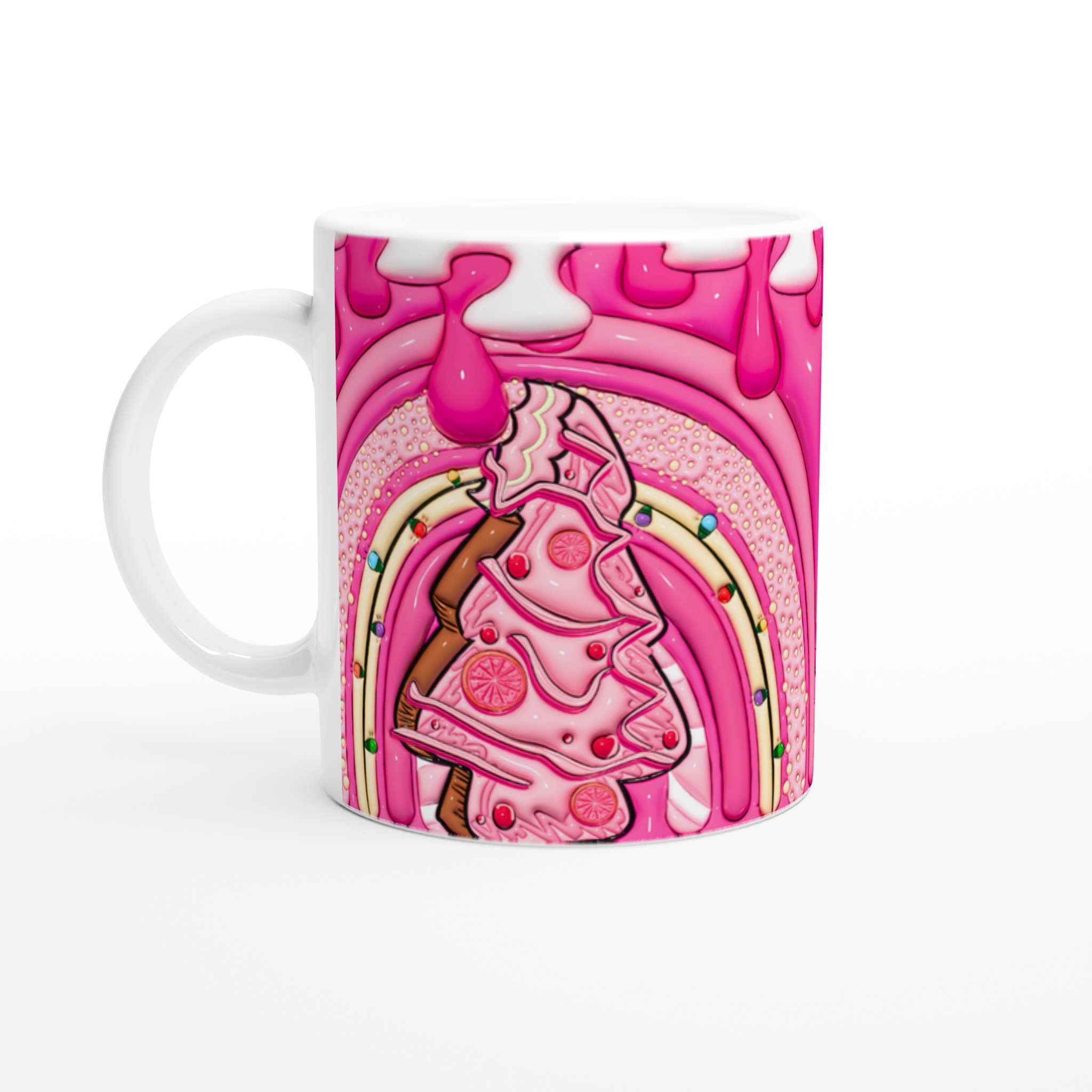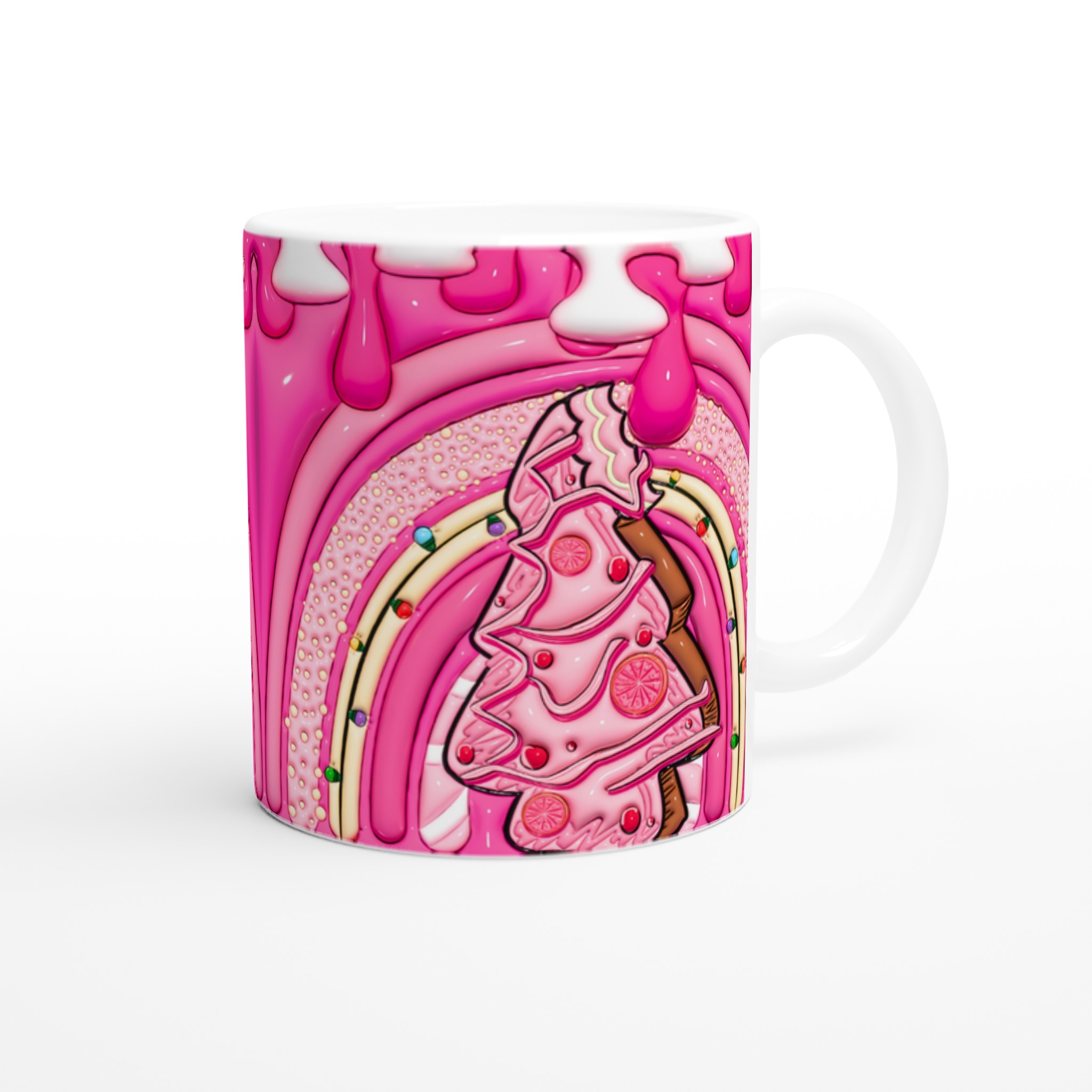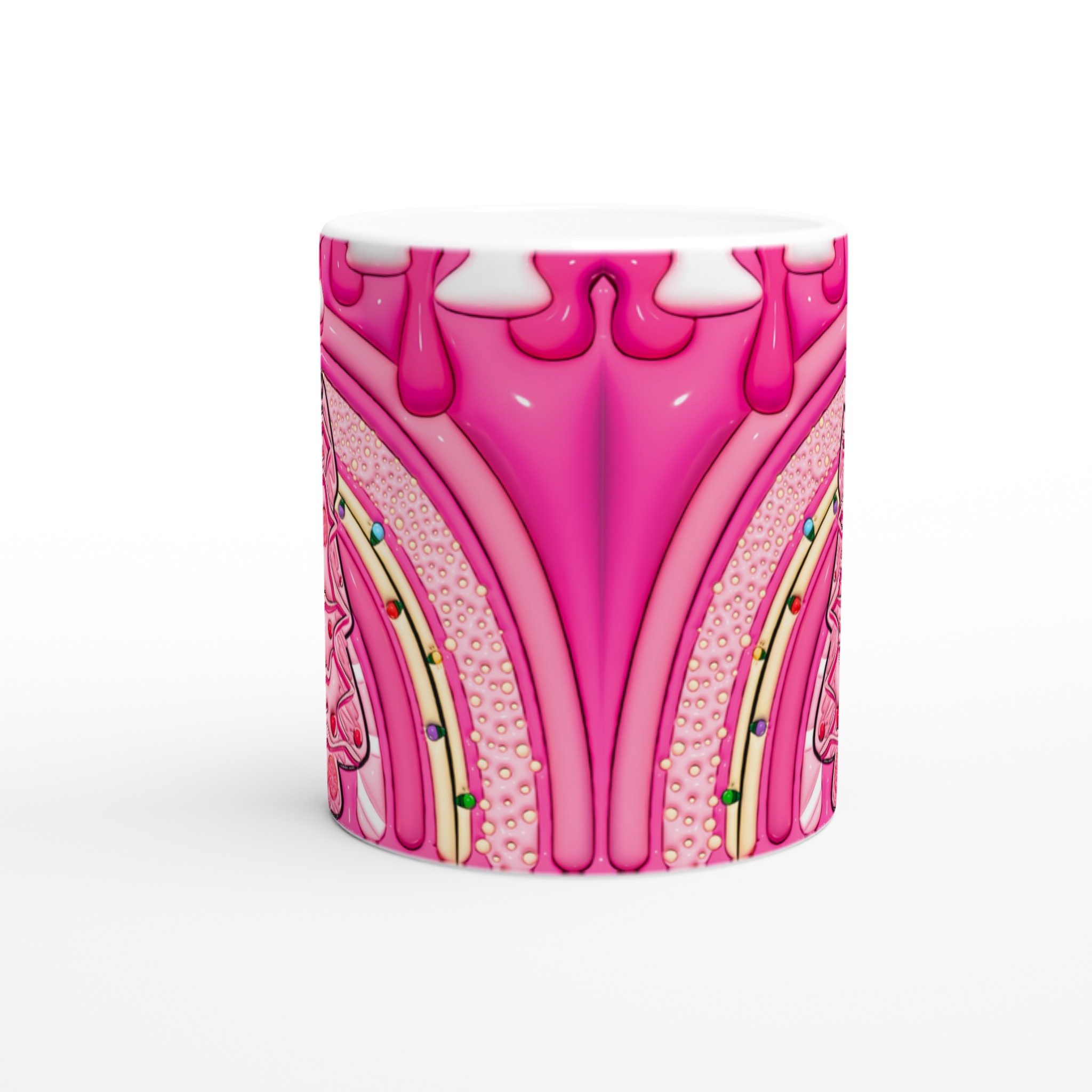 Ge din dag en söt start med denna ljuvliga keramiska mugg, inspirerad av fantasifulla godsaker och en lekfull design. Den blanka vita ytan skapar den perfekta bakgrunden för den livfulla illustrationen av bubbelgumrosa och vaniljiga detaljer, som framhävs med klara och levande färger. Oavsett om det är morgonkaffet, kvällens varma choklad eller en lugn stund med te, blir denna mugg snabbt din favorit.