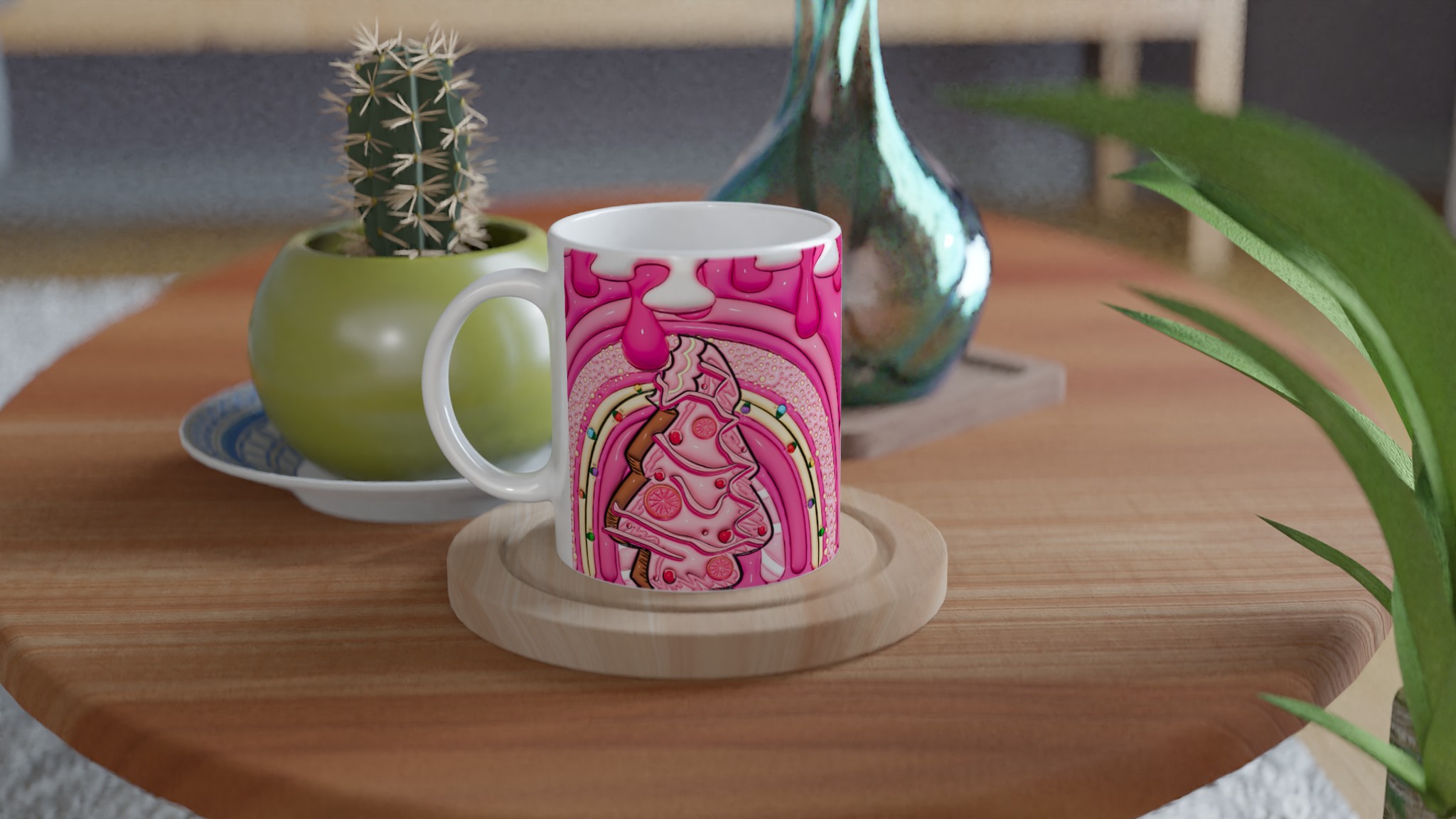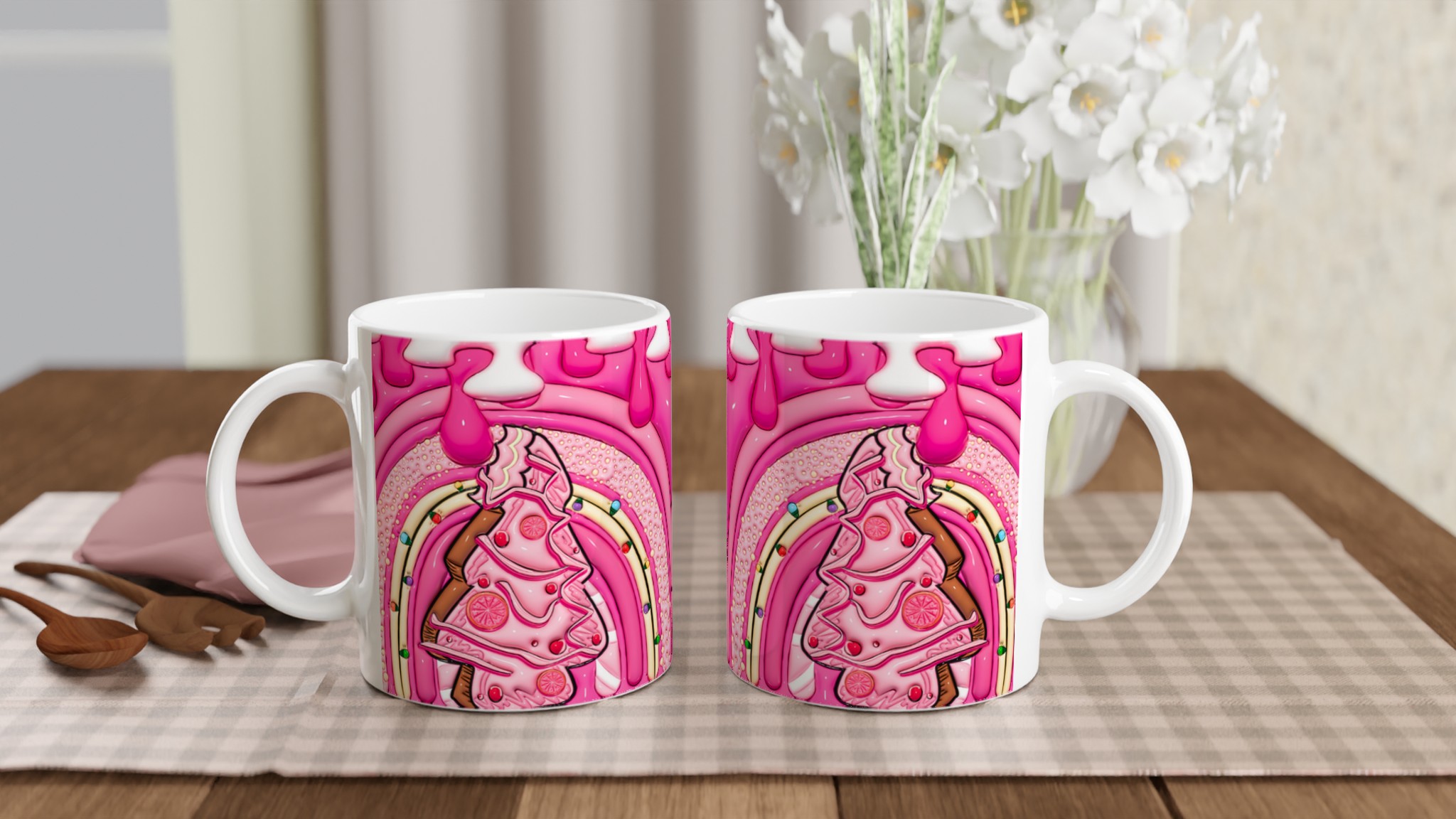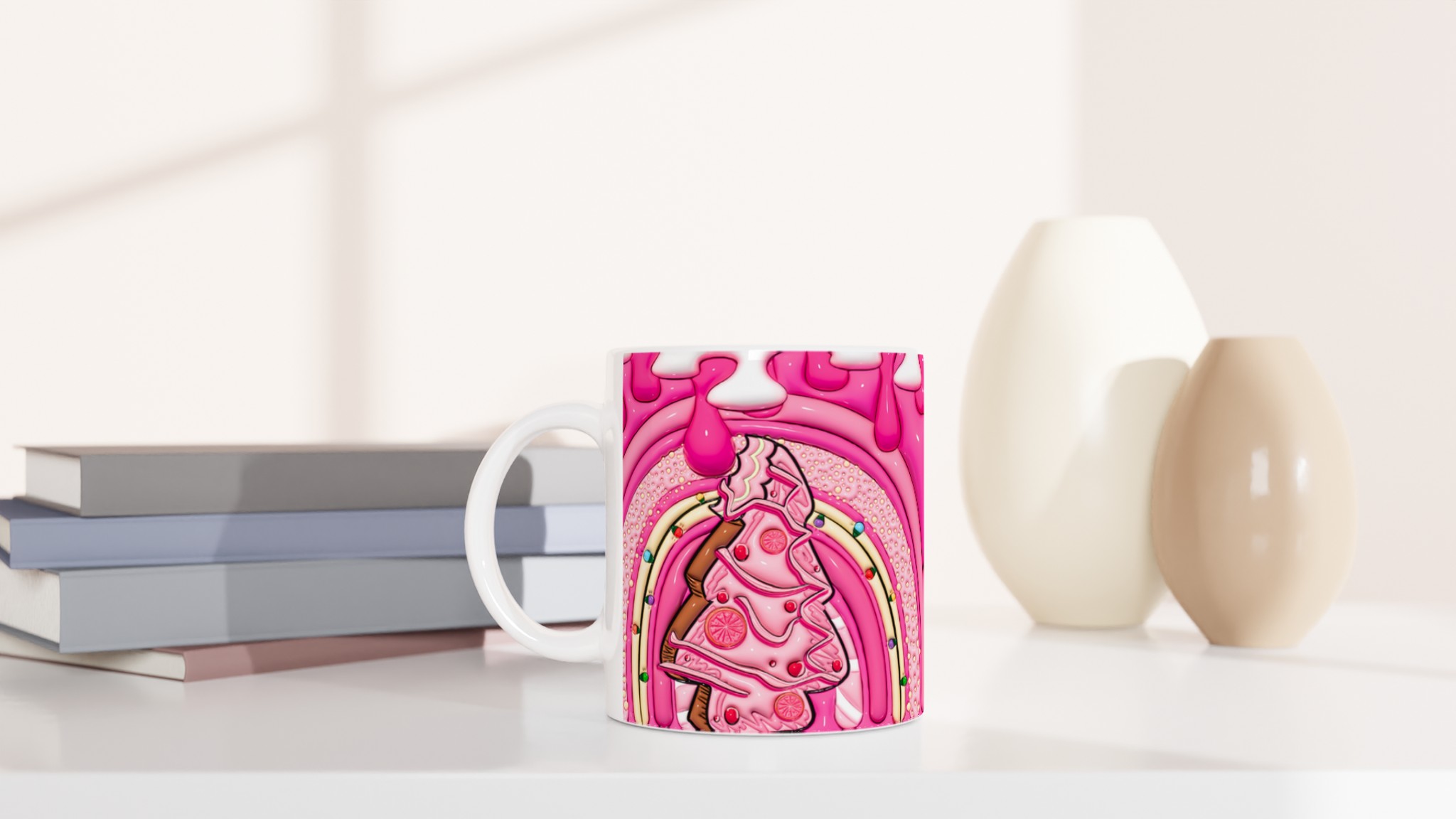 Ge din dag en söt start med denna ljuvliga keramiska mugg, inspirerad av fantasifulla godsaker och en lekfull design. Den blanka vita ytan skapar den perfekta bakgrunden för den livfulla illustrationen av bubbelgumrosa och vaniljiga detaljer, som framhävs med klara och levande färger. Oavsett om det är morgonkaffet, kvällens varma choklad eller en lugn stund med te, blir denna mugg snabbt din favorit.