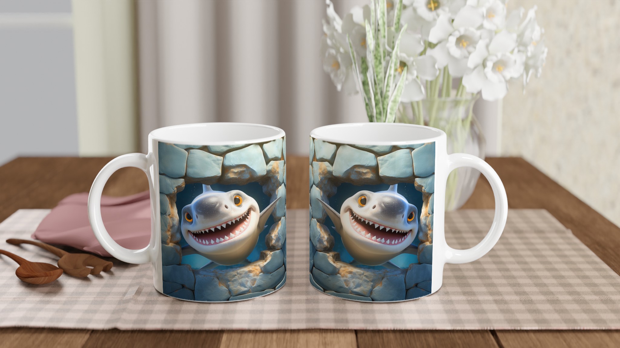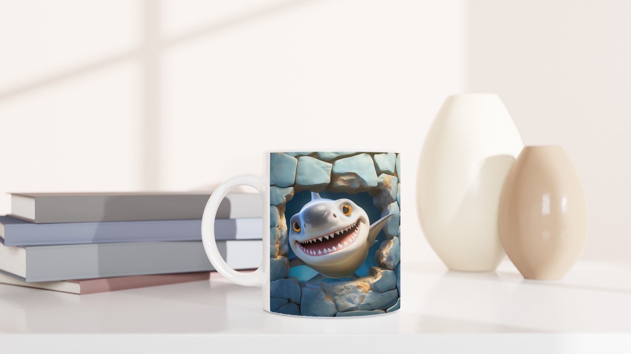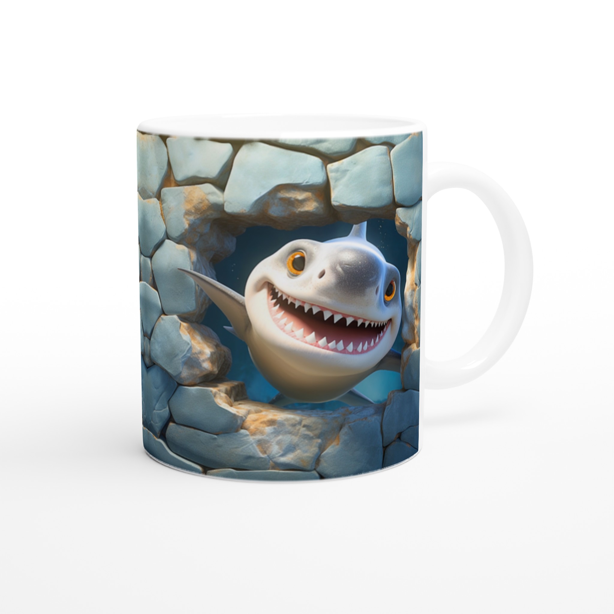 Muggen är inte bara praktisk och rolig – den är också en uppskattad present till familj, vänner eller kollegor. En enkel men personlig gåva som alltid kommer till användning och garanterat får mottagaren att dra på smilbanden. Skapa din egen unika mugg genom att välja bland en regnbåge av färger, från klassiskt vitt till piggt gult eller djupt blått. Varje färgval ger hajen en ny bakgrund att le emot!