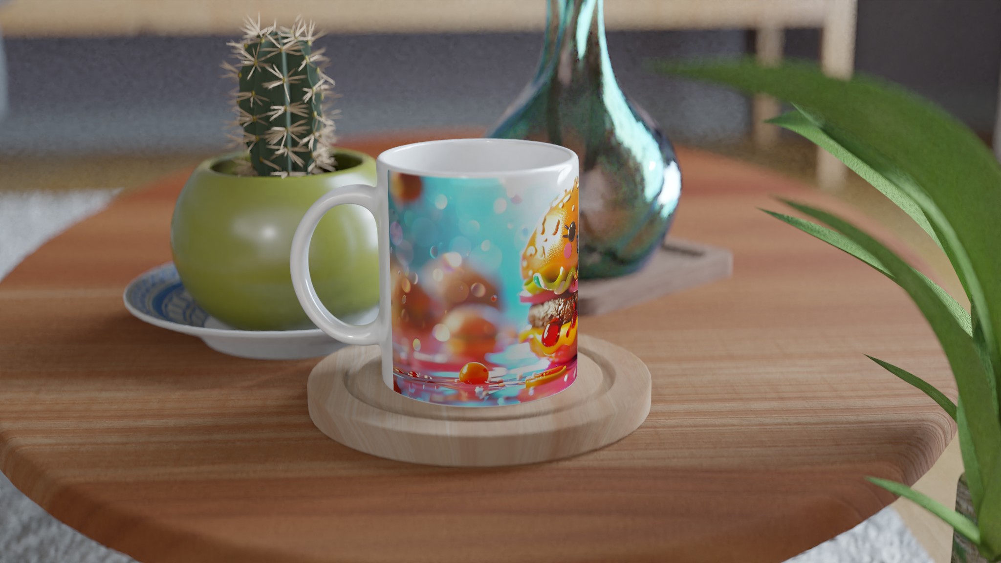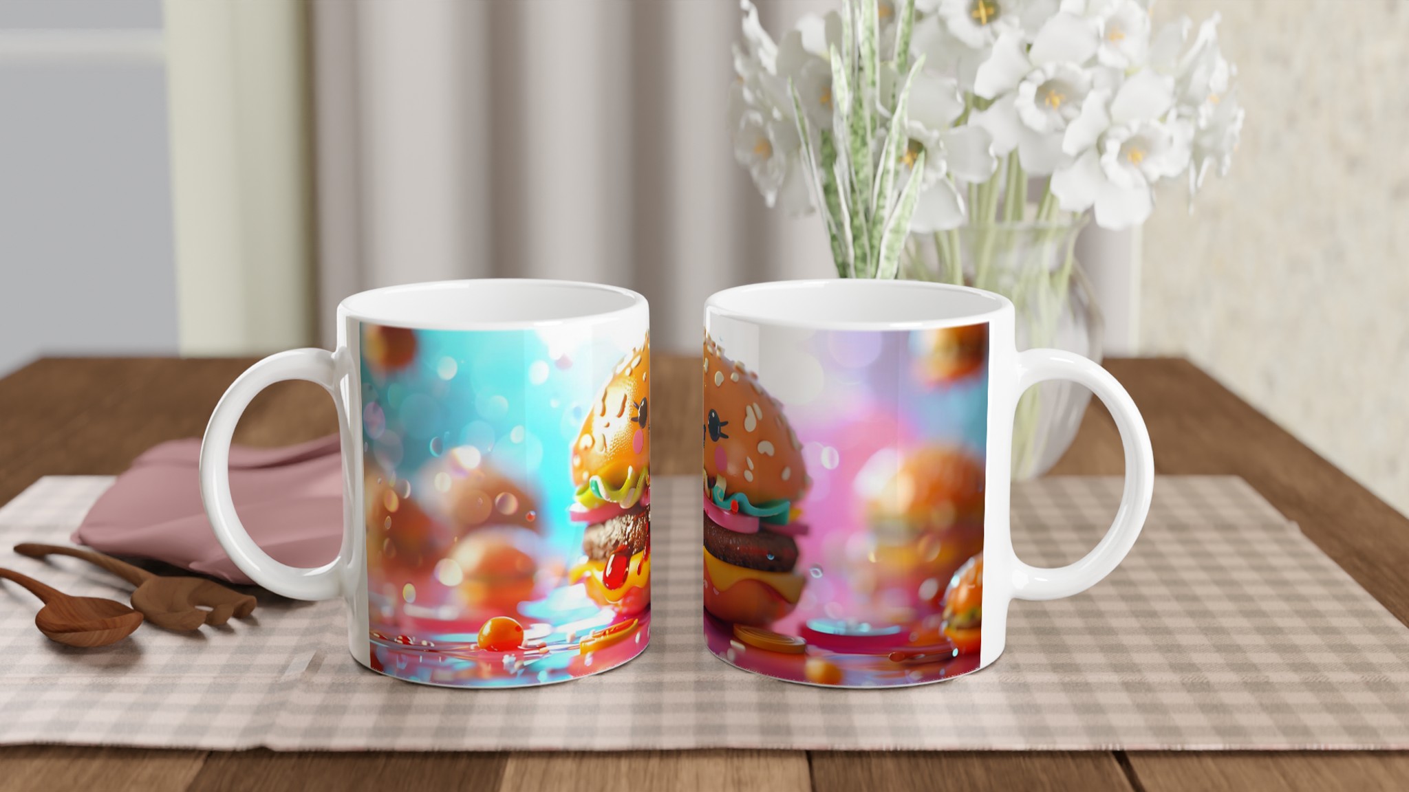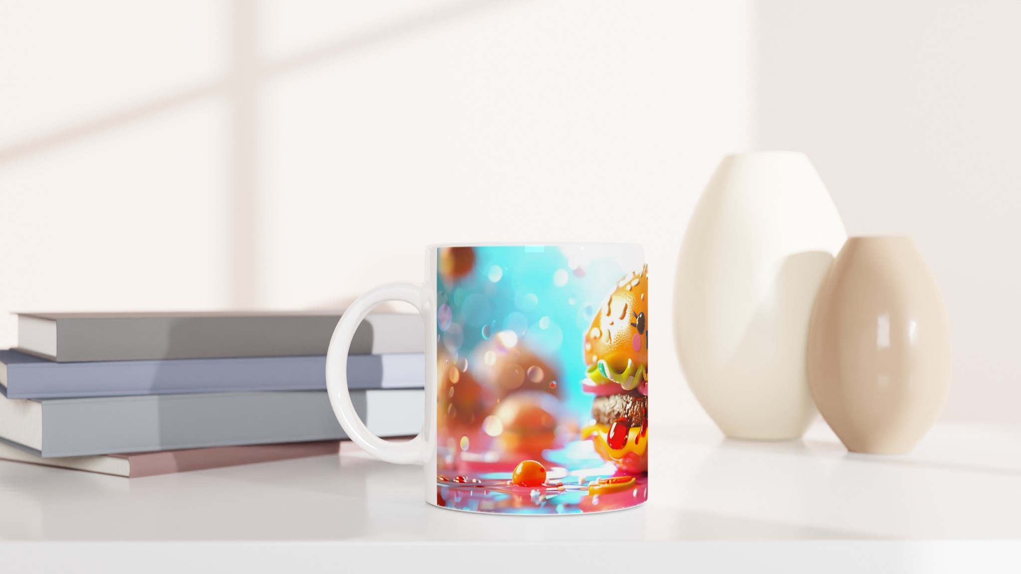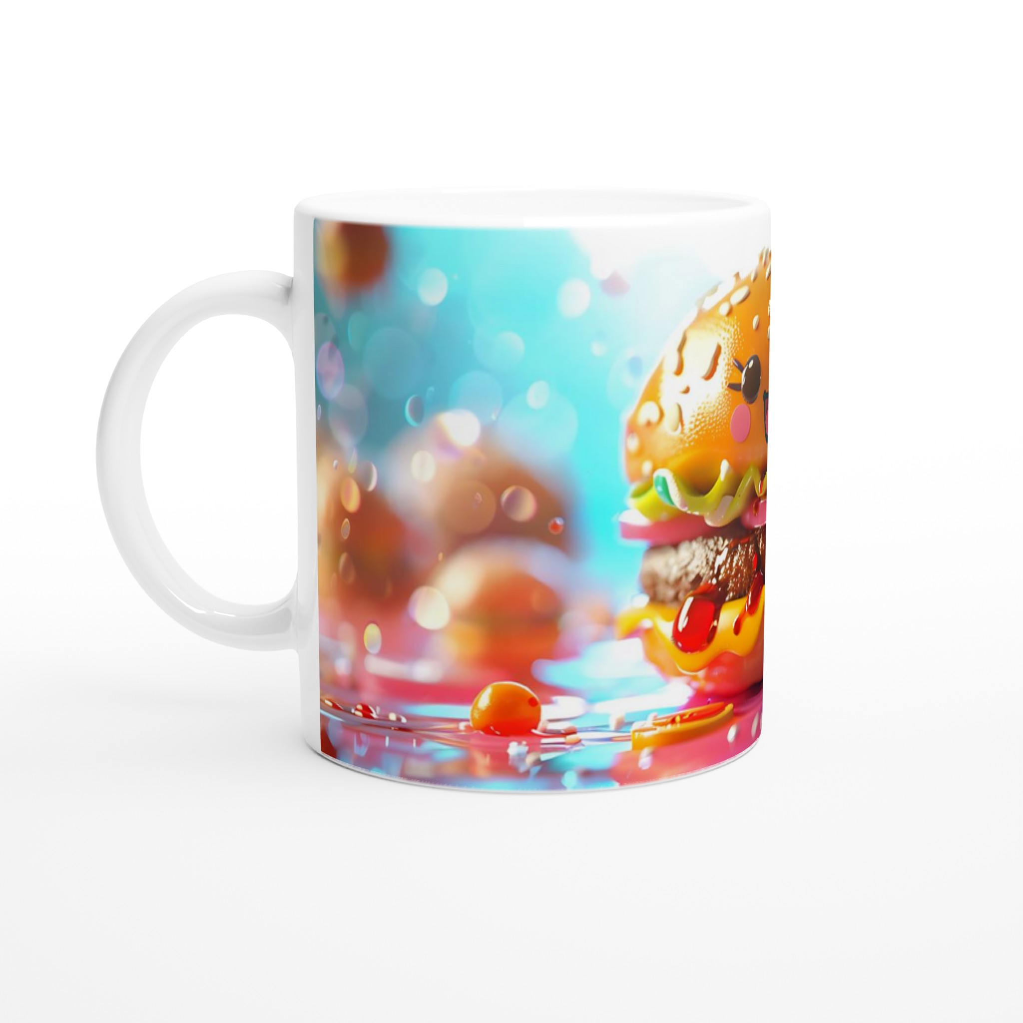 Lys upp din dag med vår förtjusande Hamburger Keramiska Mugg! Denna lekfulla och vackra keramikmugg, prydd med ett bedårande hamburgermotiv, är perfekt för alla dagens stunder – morgonkaffet, en värmande kopp te eller en härlig varm choklad. Den blanka vita ytan gör att trycken framträder klart och färgstarkt, vilket gör muggen till en riktig favorit i vardagen. Tack vare den höga kvaliteten behåller trycket sin lyster även efter många omgångar i både mikrovågsugn och diskmaskin.