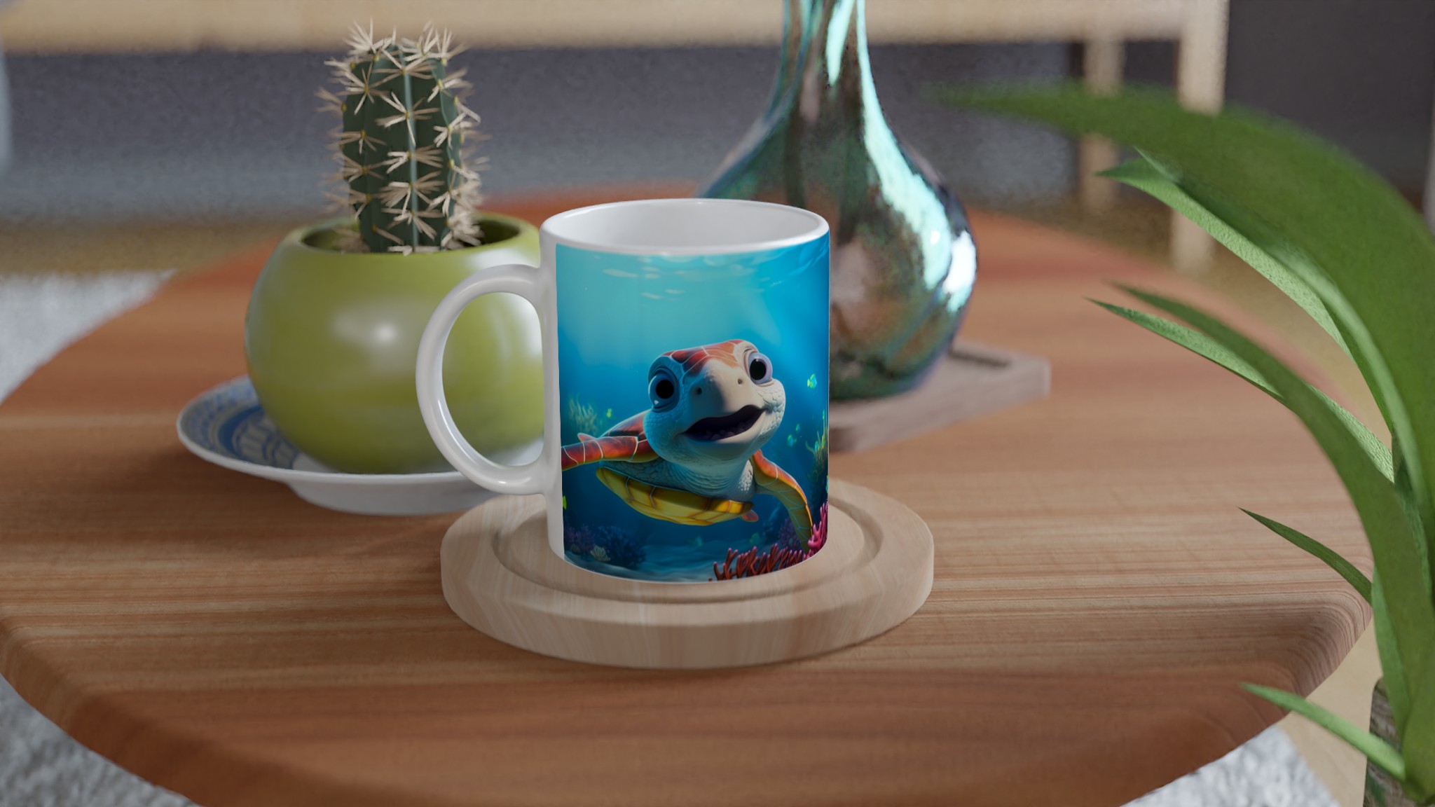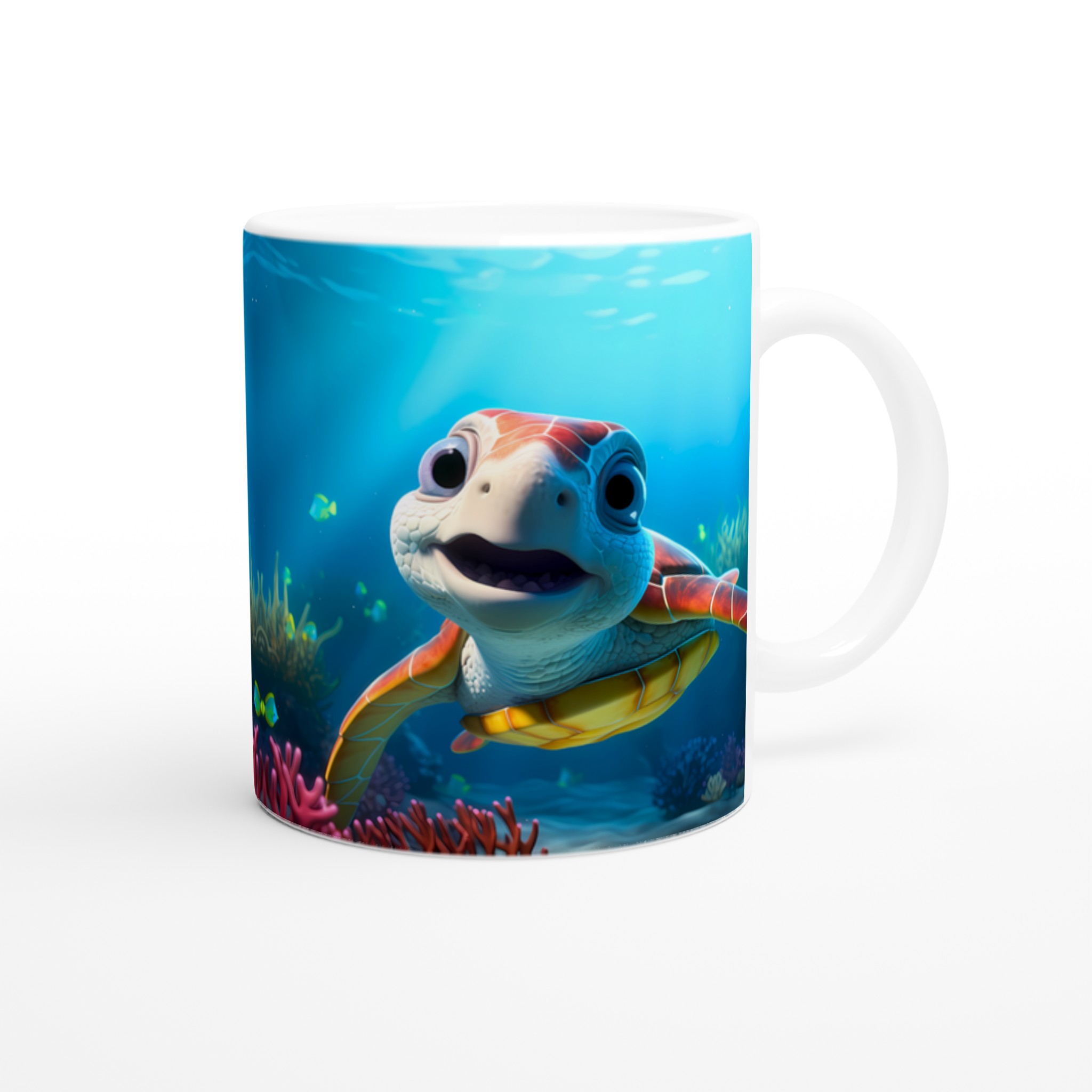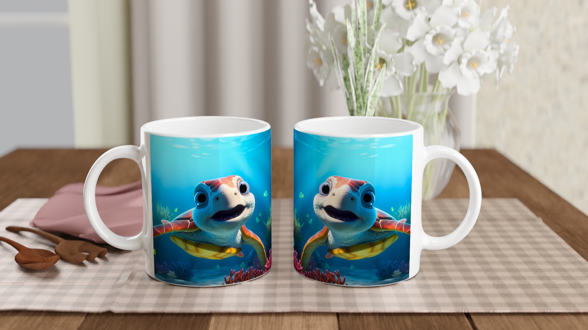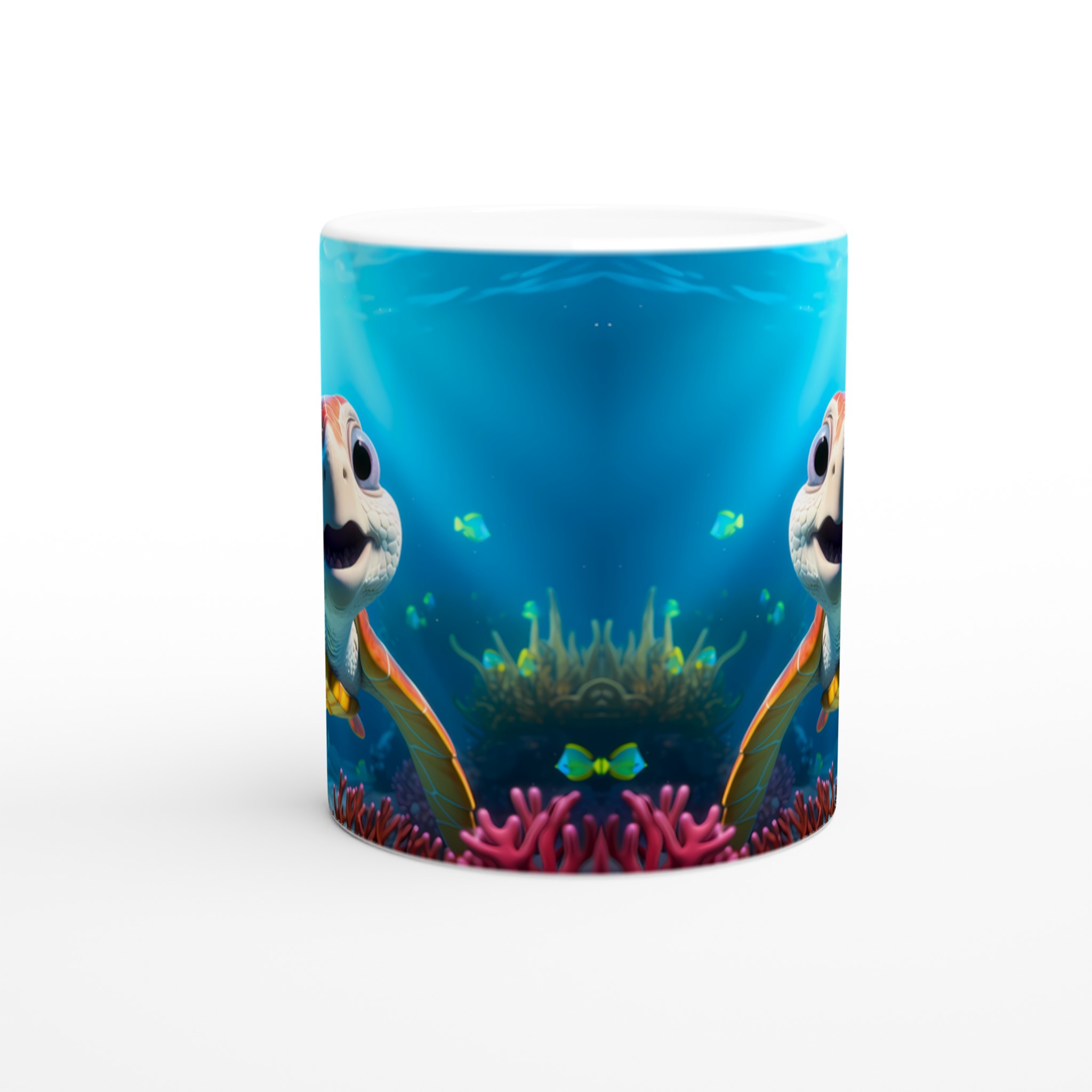 Dyk ner i en värld av charm med denna bedårande keramiska mugg, prydd med en vänlig havssköldpadda som simmar i ett livfullt korallrev. Den lekfulla designen, inspirerad av havets lugna blå och de glada färgerna från undervattenslivet, gör varje klunk till en liten semester. Perfekt för morgonkaffet, kvällens varma choklad eller när du bara vill njuta av en kopp te i gott sällskap.