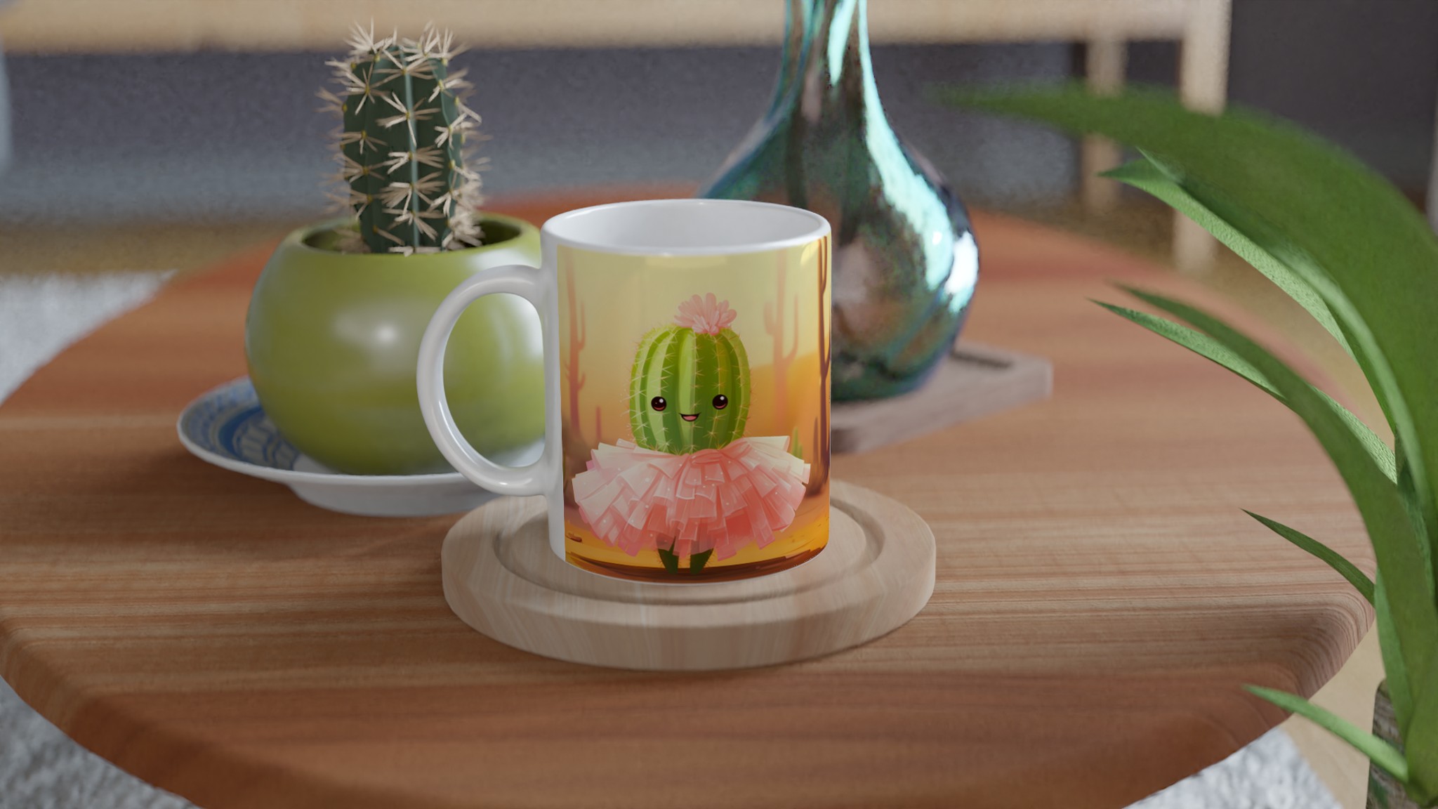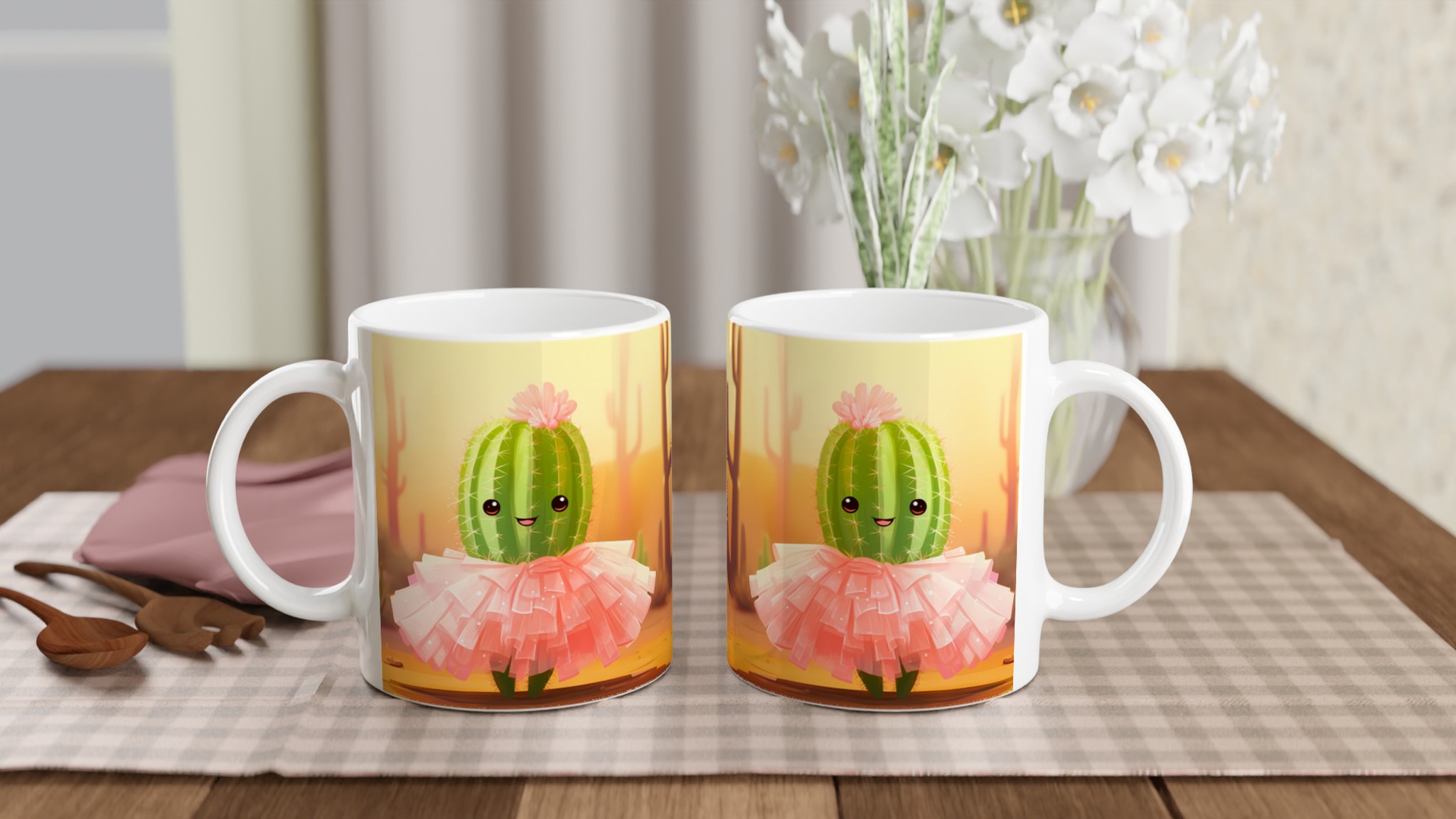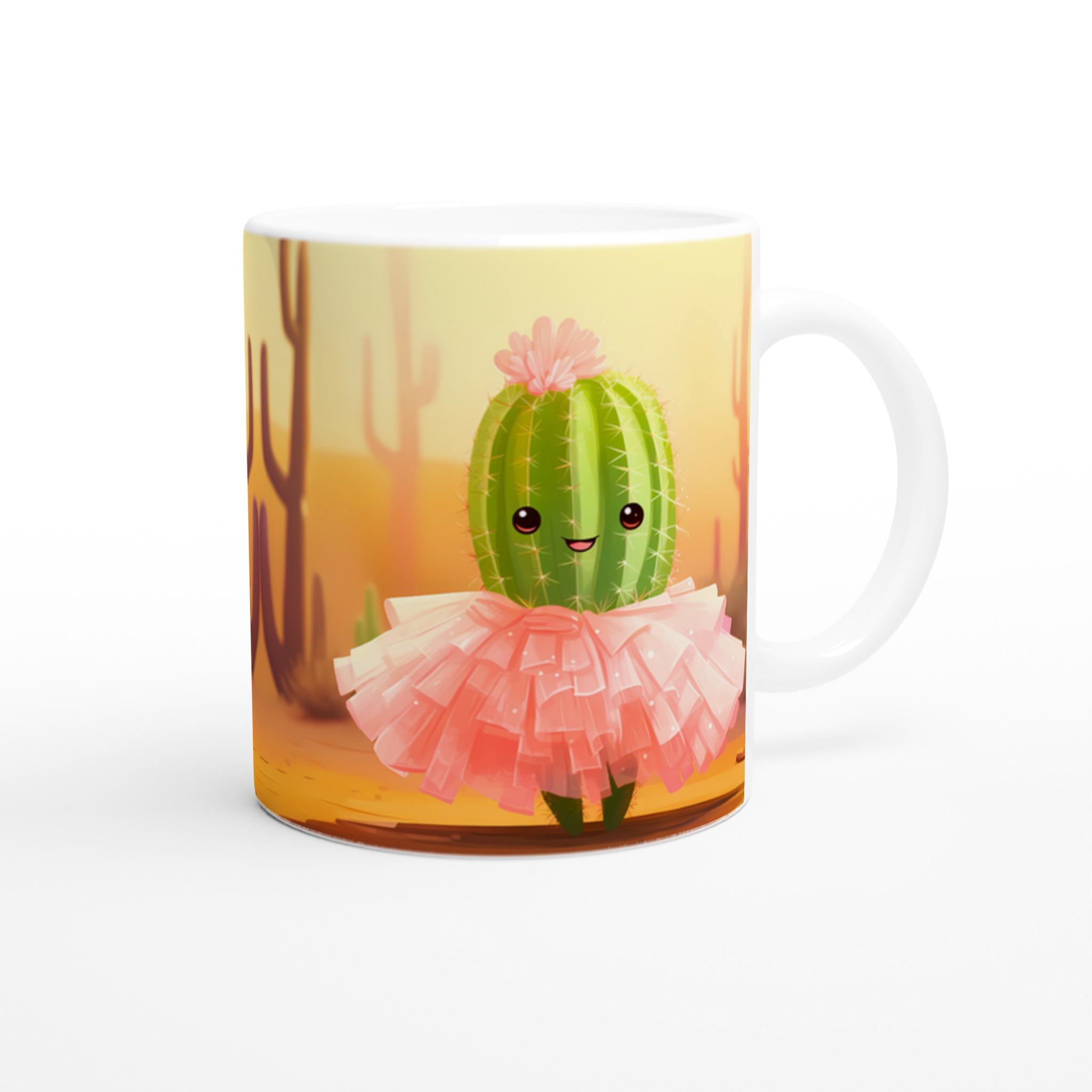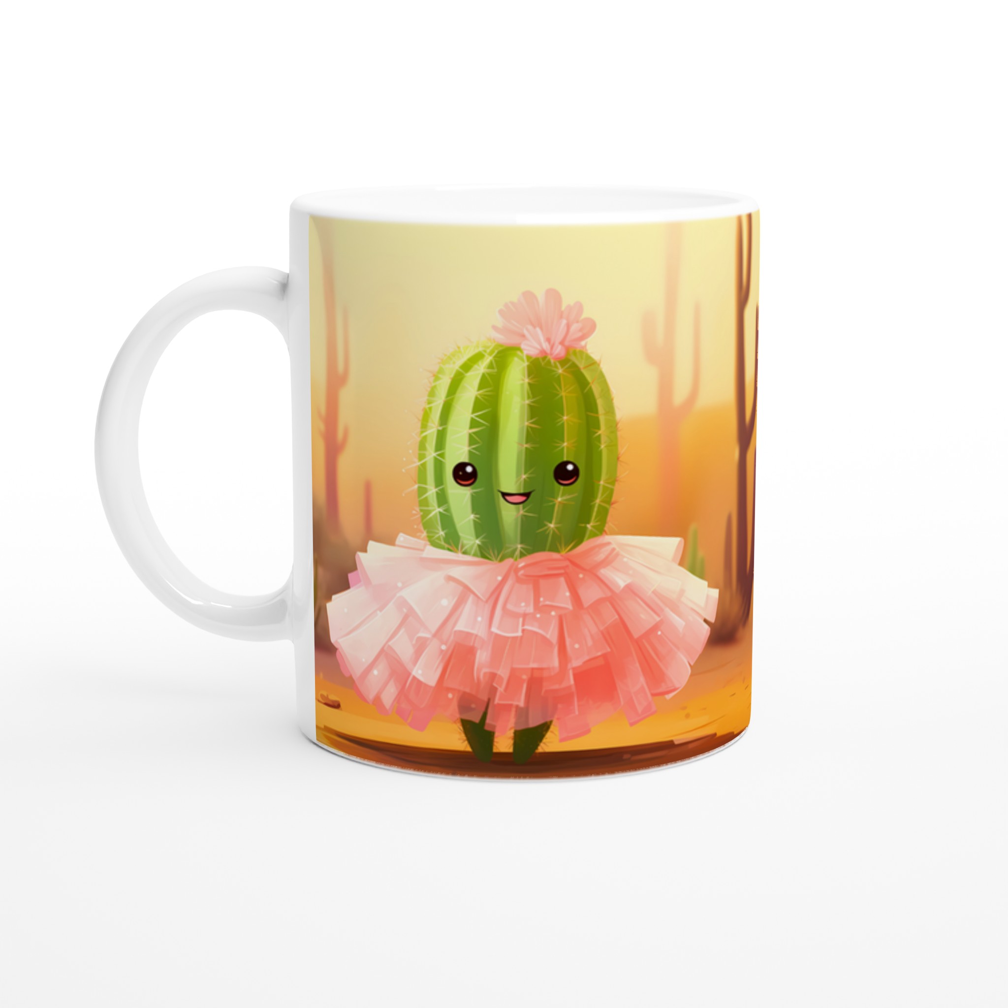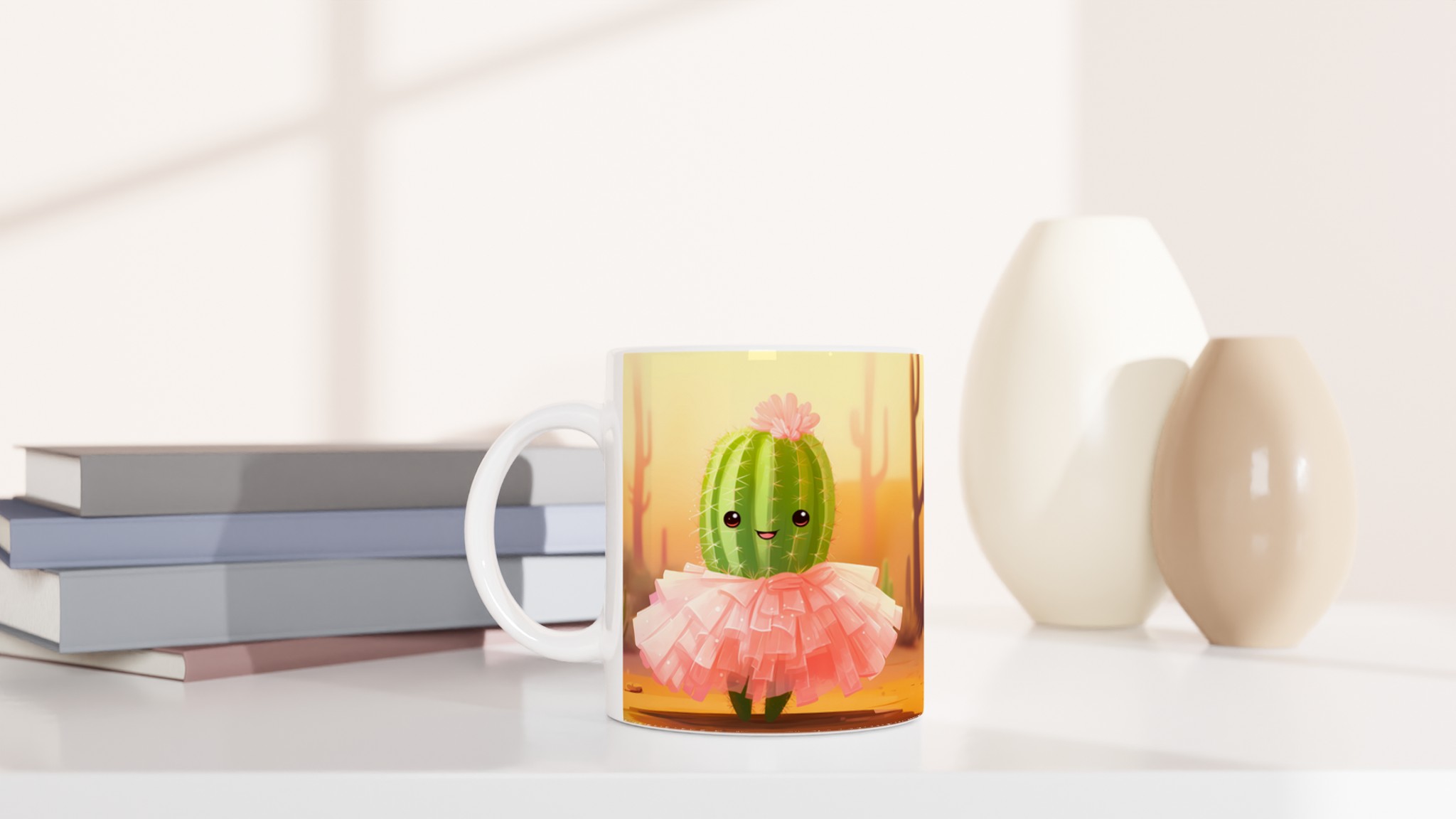 Lys upp din dag med vår förtjusande keramiska mugg med motiv av en söt kaktus-ballerina! Denna unika design kombinerar charmen hos öknens växter med den lekfulla elegansen av en dansare, klädd i en mjuk rosa tyllkjol och en matchande blomma på toppen. Den lilla kaktusens glada ansikte kommer garanterat att locka fram ett leende varje gång du tar en klunk.