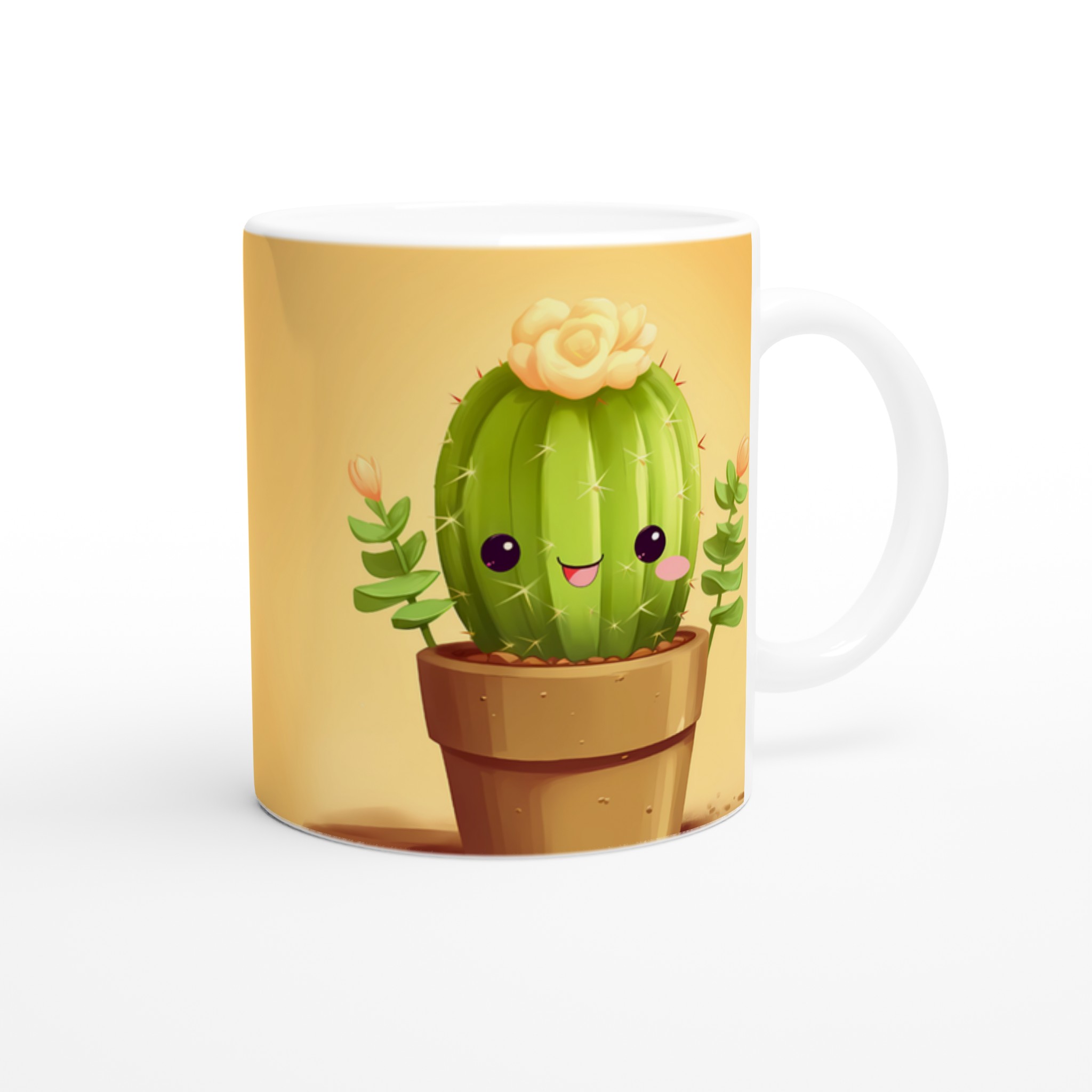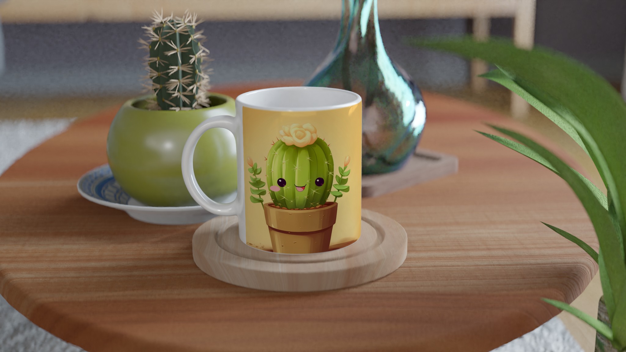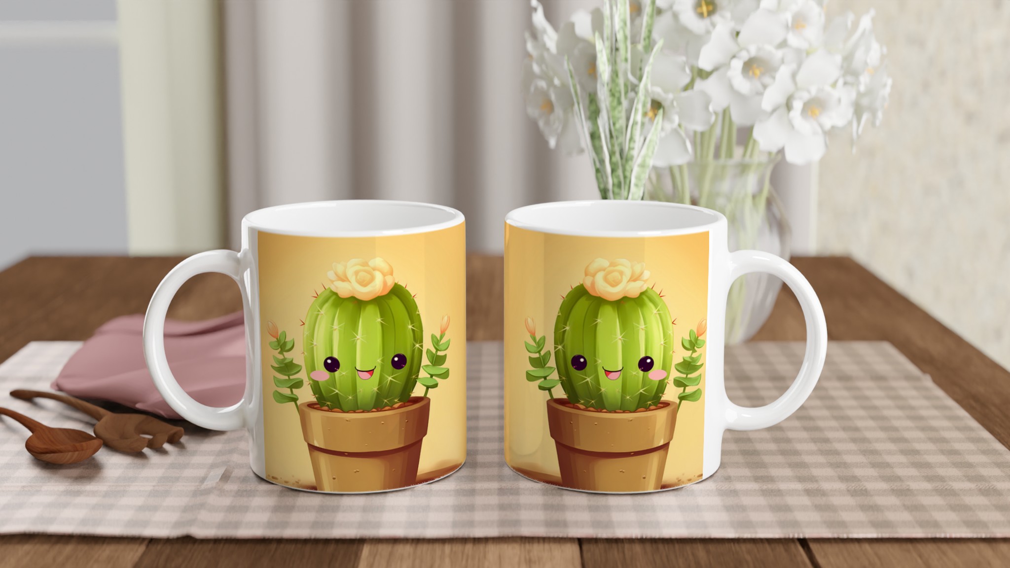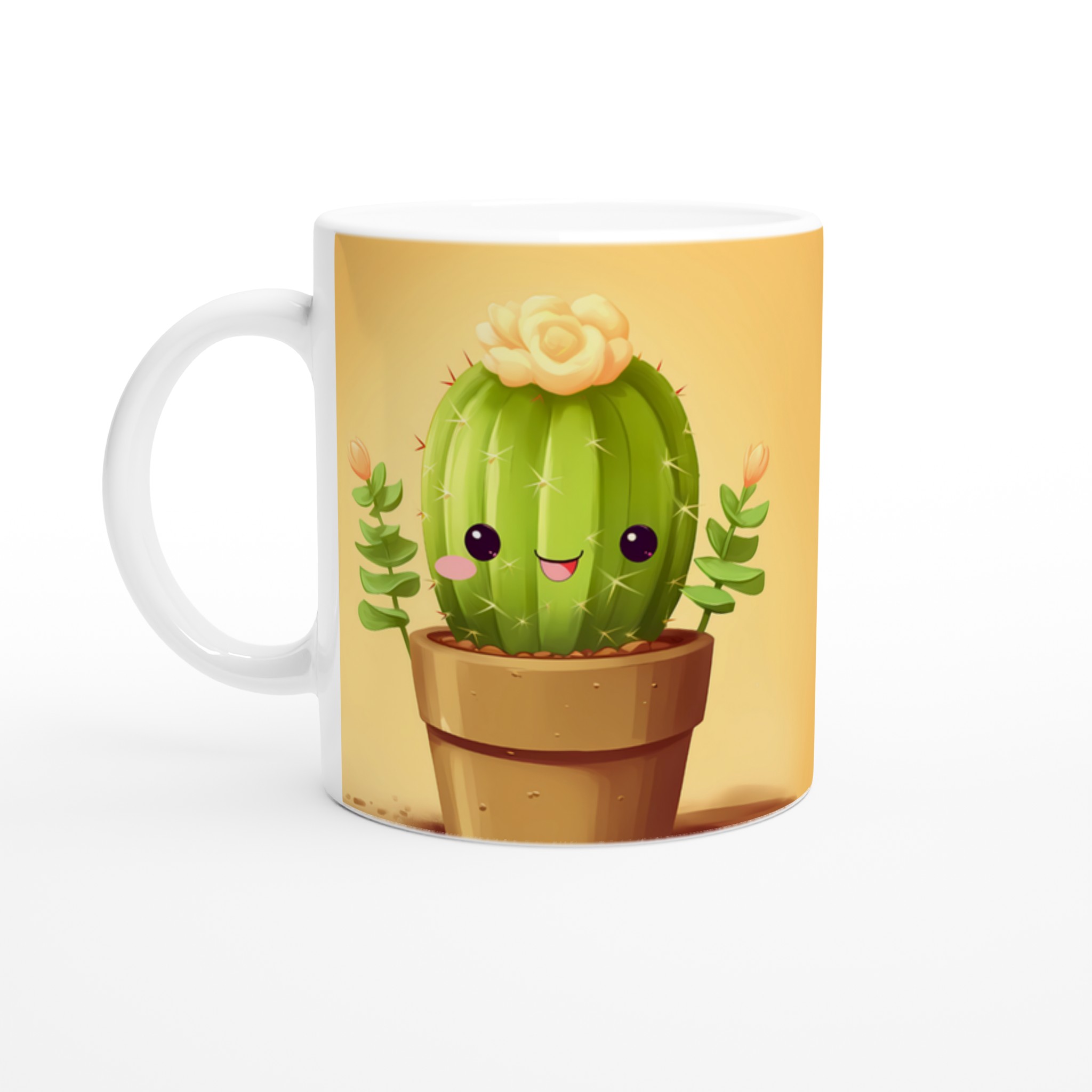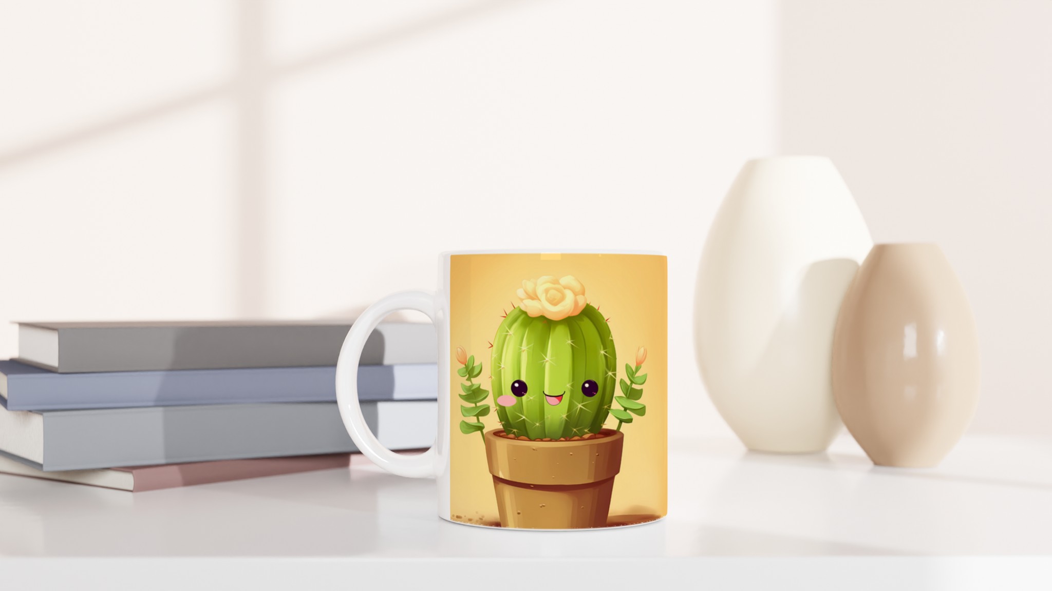 Denna bedårande keramiska mugg med en söt, leende kaktus blir snabbt en favorit för alla åldrar! Perfekt för morgonkaffet, kvällens varma choklad eller när du bara vill njuta av en kopp te med ett leende. Den blanka ytan framhäver det charmiga kaktustrycket med klara och levande färger, som håller sig fina även efter många turer i mikron och diskmaskinen.