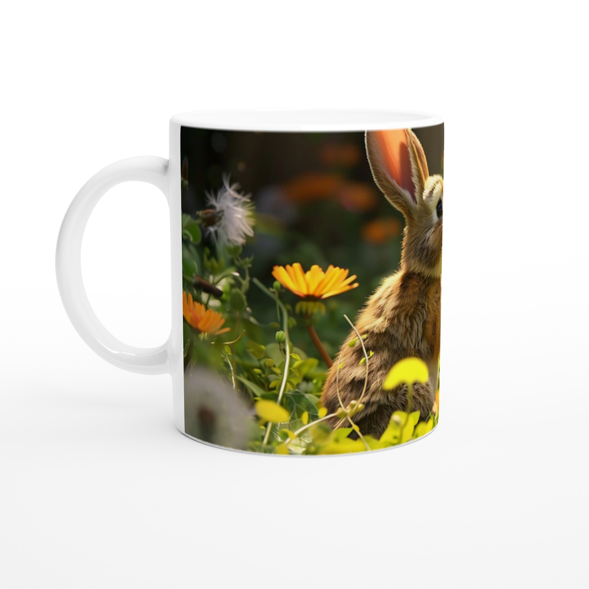 Föreställ dig en lugn morgon, omgiven av naturens skönhet, precis som den lilla kaninen som njuter av sin morot i det varma solljuset. Vår 11oz keramiska mugg är den perfekta duken för att fånga sådana magiska ögonblick, eller din egen unika design. Den blanka ytan ger ett skarpt och levande tryck som verkligen sticker ut, oavsett om det är en personlig design, ett roligt citat eller en present till någon du tycker om.